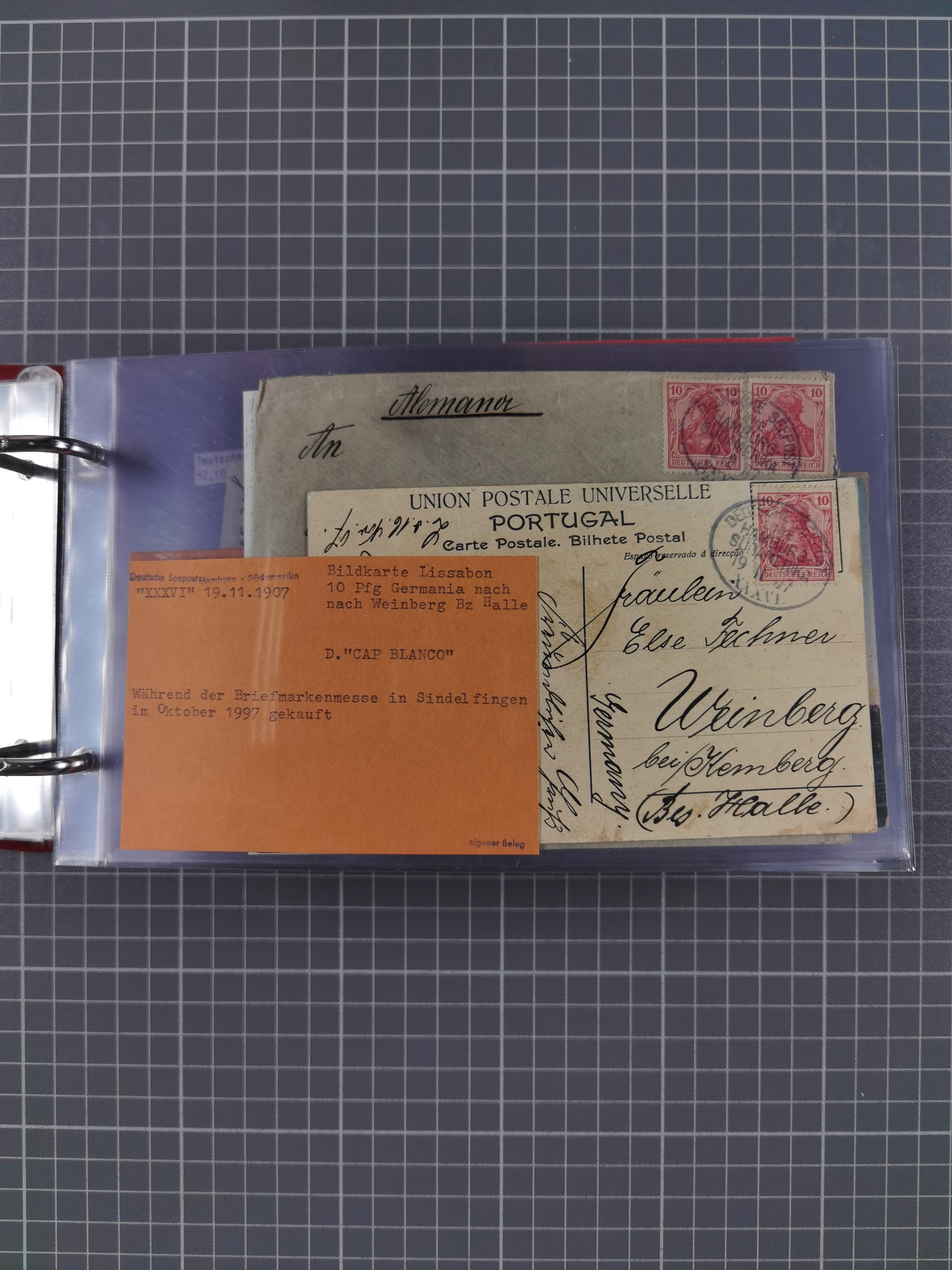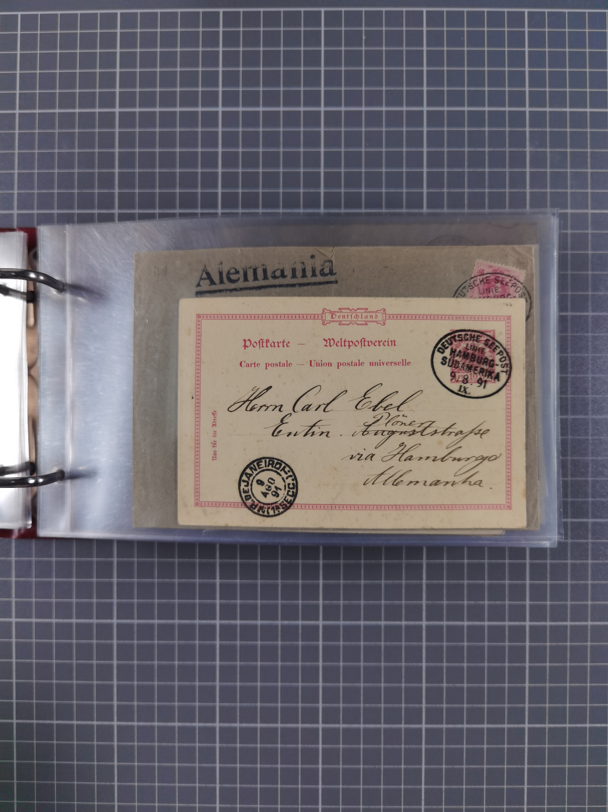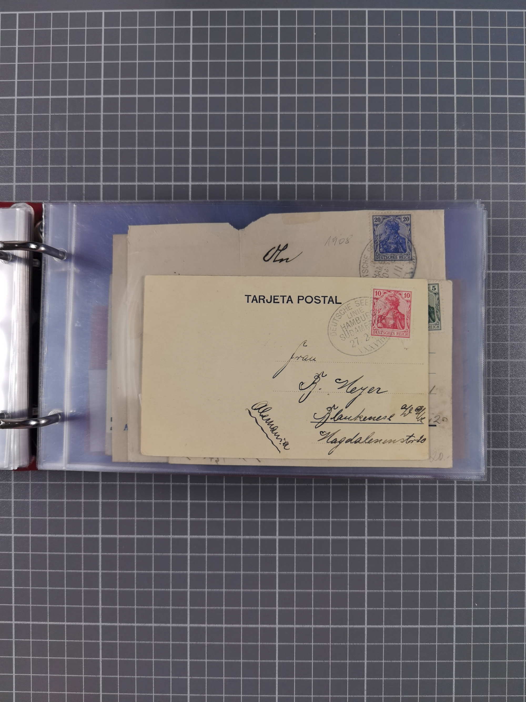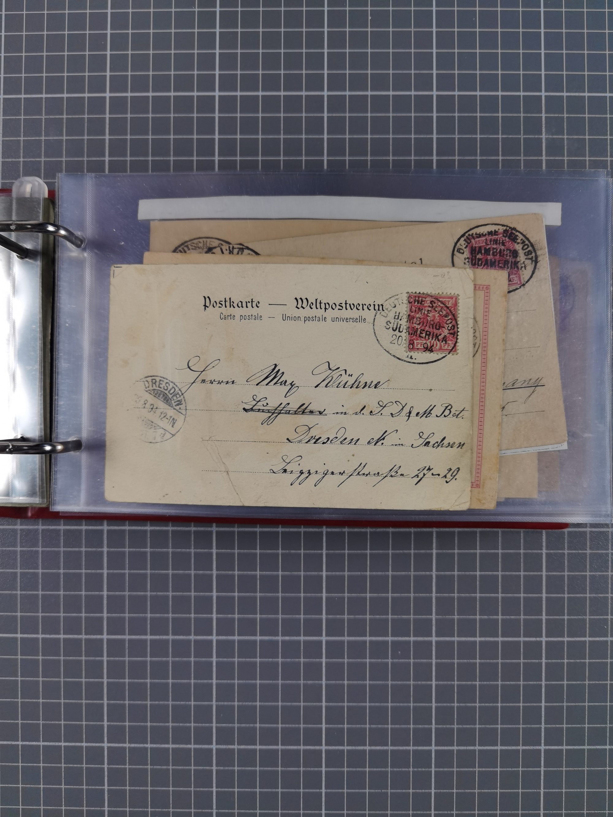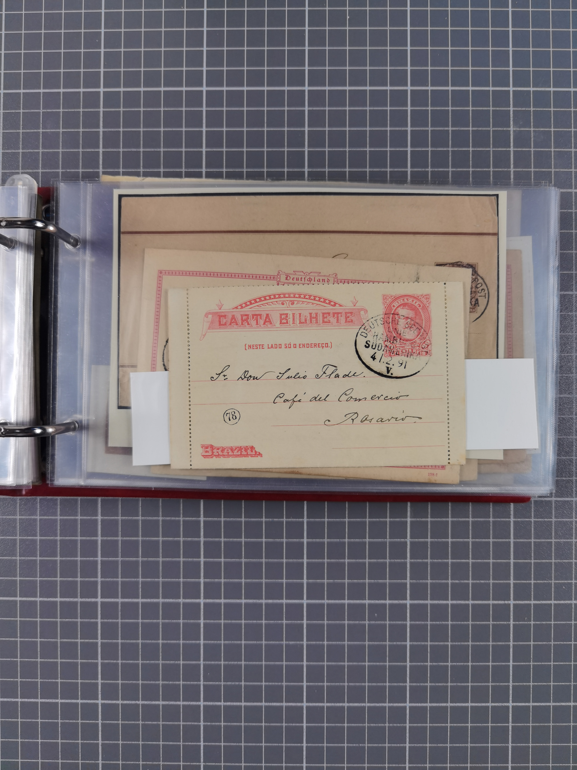 1891/1935 (ca.), umfangreiche Sammlung “DSP LINIE HAMBURG-SÜDAMERIKA I-LV” mit ca. 470 Briefen, Karten und GSK sowie wenigen Briefstücken mit Schwerpunkt vor 1914, dabei einige Belege mit “Paquebot”-Stempeln, Destinationen (u.a. 1895 nach Konstantinopel und GSK 1898 via Rottedam nach Jaluit), Bedarfspost aus der Infla-Zeit, Ozean-Brief 1913 und R-Ozean-Brief 1926. Die Erhaltung ist zum Teil etwas fehlerhaft, dafür fast nur klare Stempel, meist Bedarfspost, ex Steinmeyer