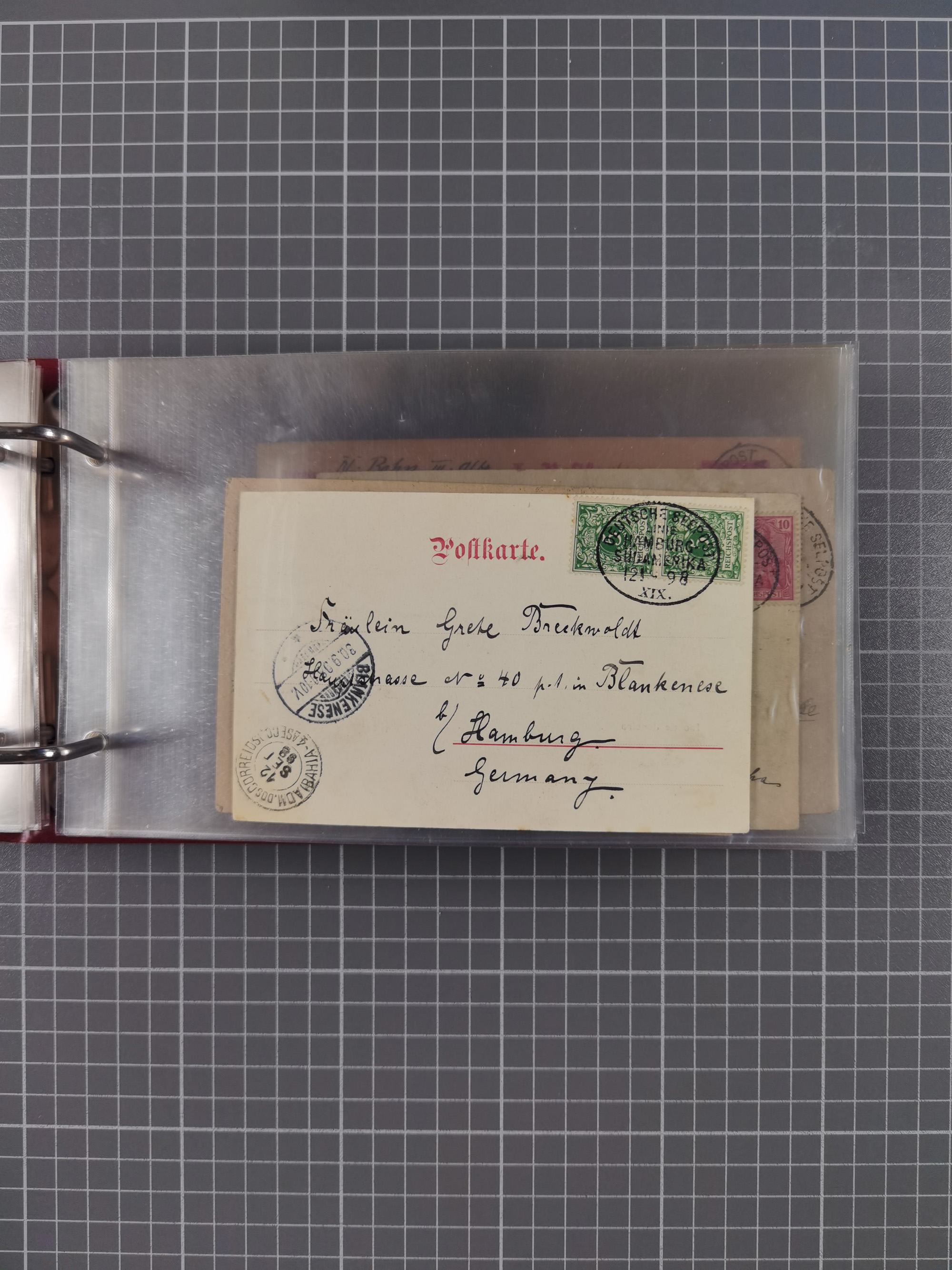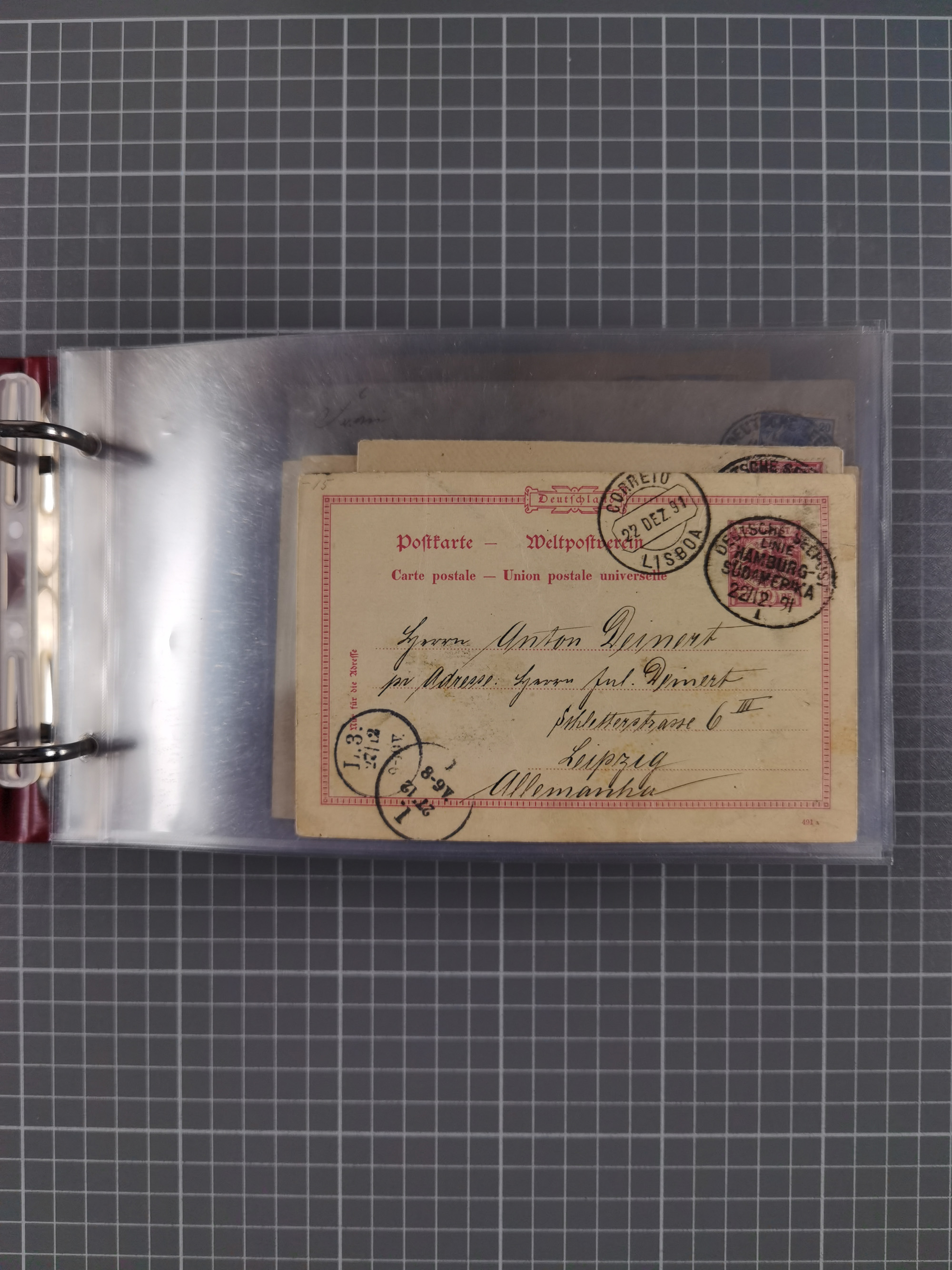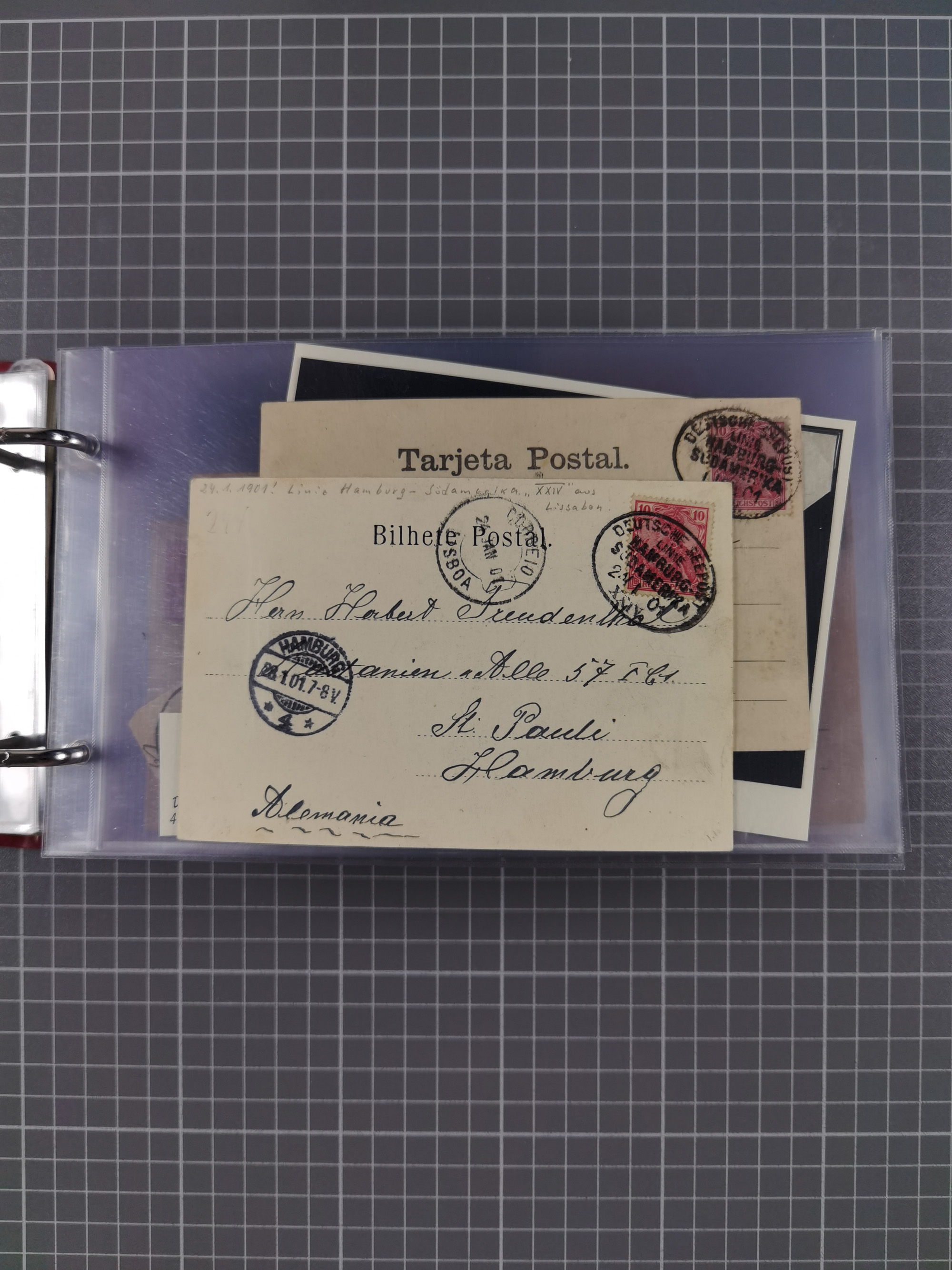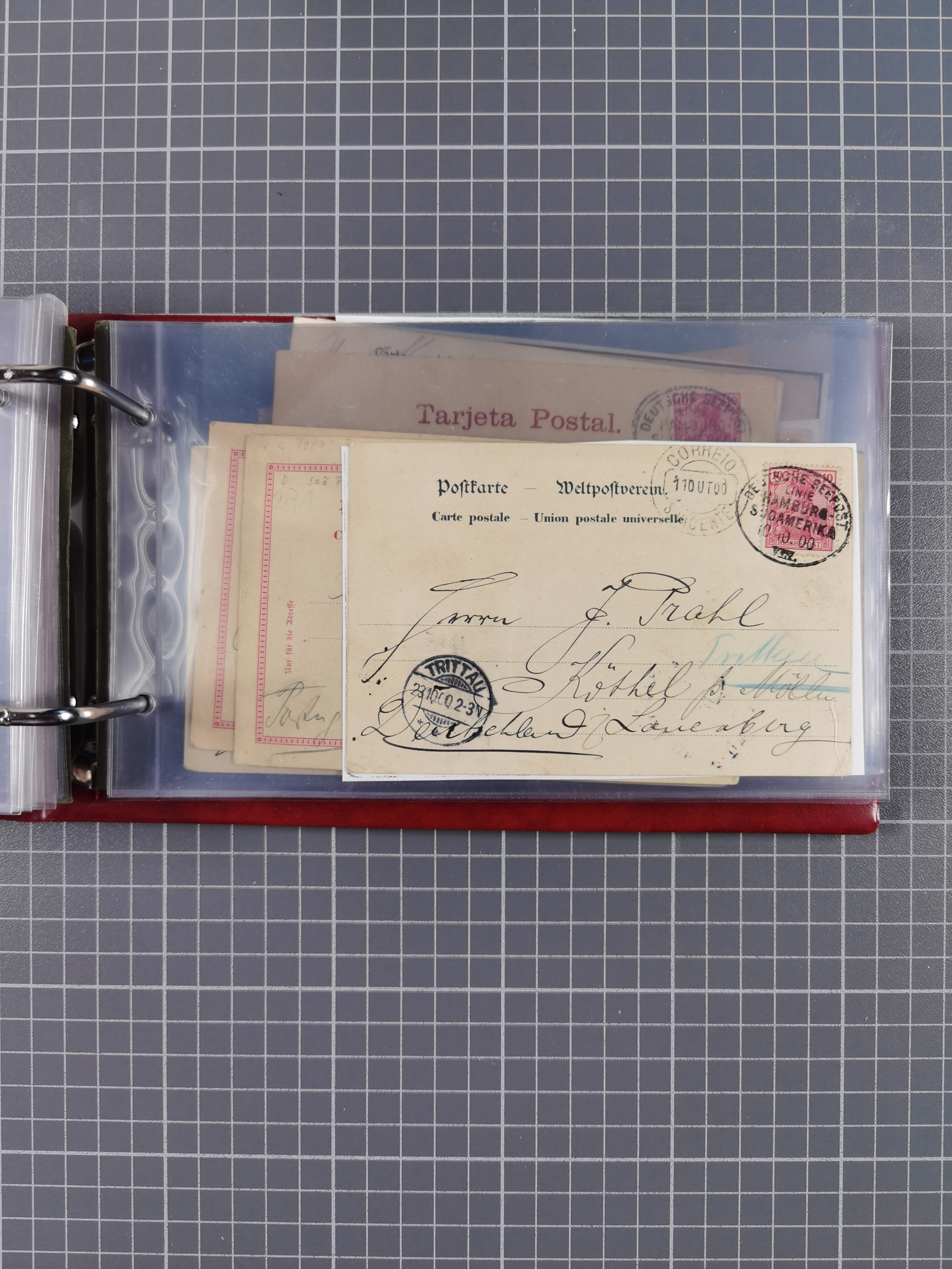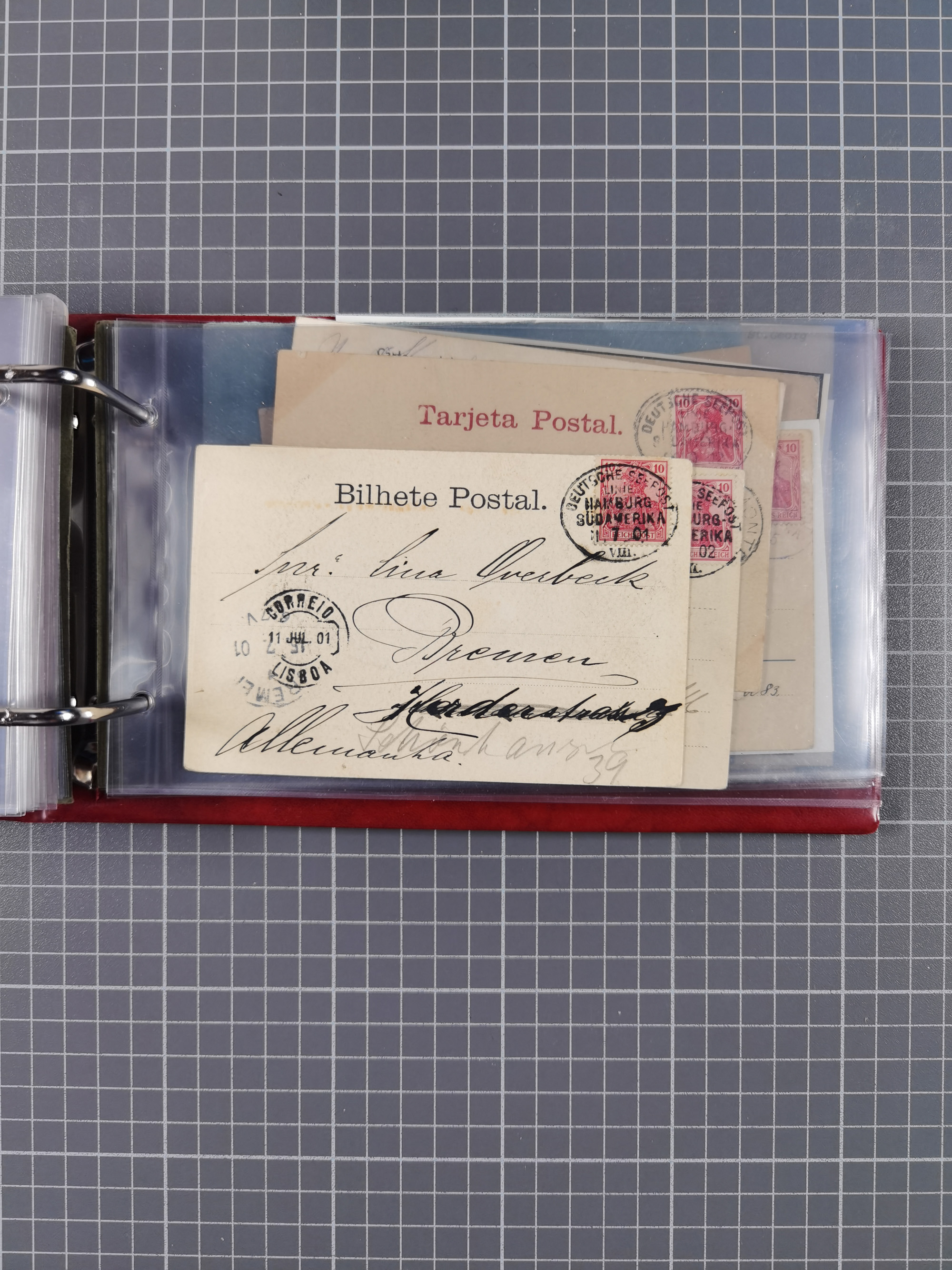 1891/1935 (ca.), umfangreiche Sammlung “DSP LINIE HAMBURG-SÜDAMERIKA I-LV” mit ca. 470 Briefen, Karten und GSK sowie wenigen Briefstücken mit Schwerpunkt vor 1914, dabei einige Belege mit “Paquebot”-Stempeln, Destinationen (u.a. 1895 nach Konstantinopel und GSK 1898 via Rottedam nach Jaluit), Bedarfspost aus der Infla-Zeit, Ozean-Brief 1913 und R-Ozean-Brief 1926. Die Erhaltung ist zum Teil etwas fehlerhaft, dafür fast nur klare Stempel, meist Bedarfspost, ex Steinmeyer