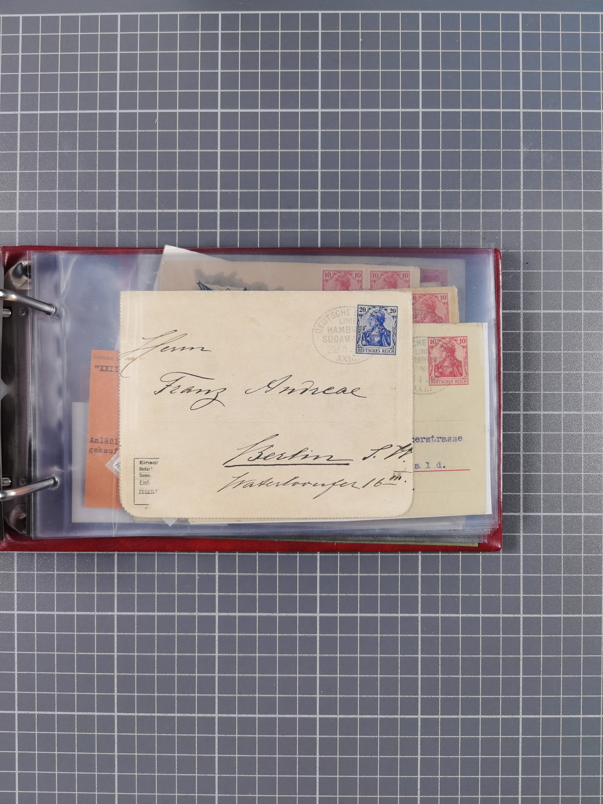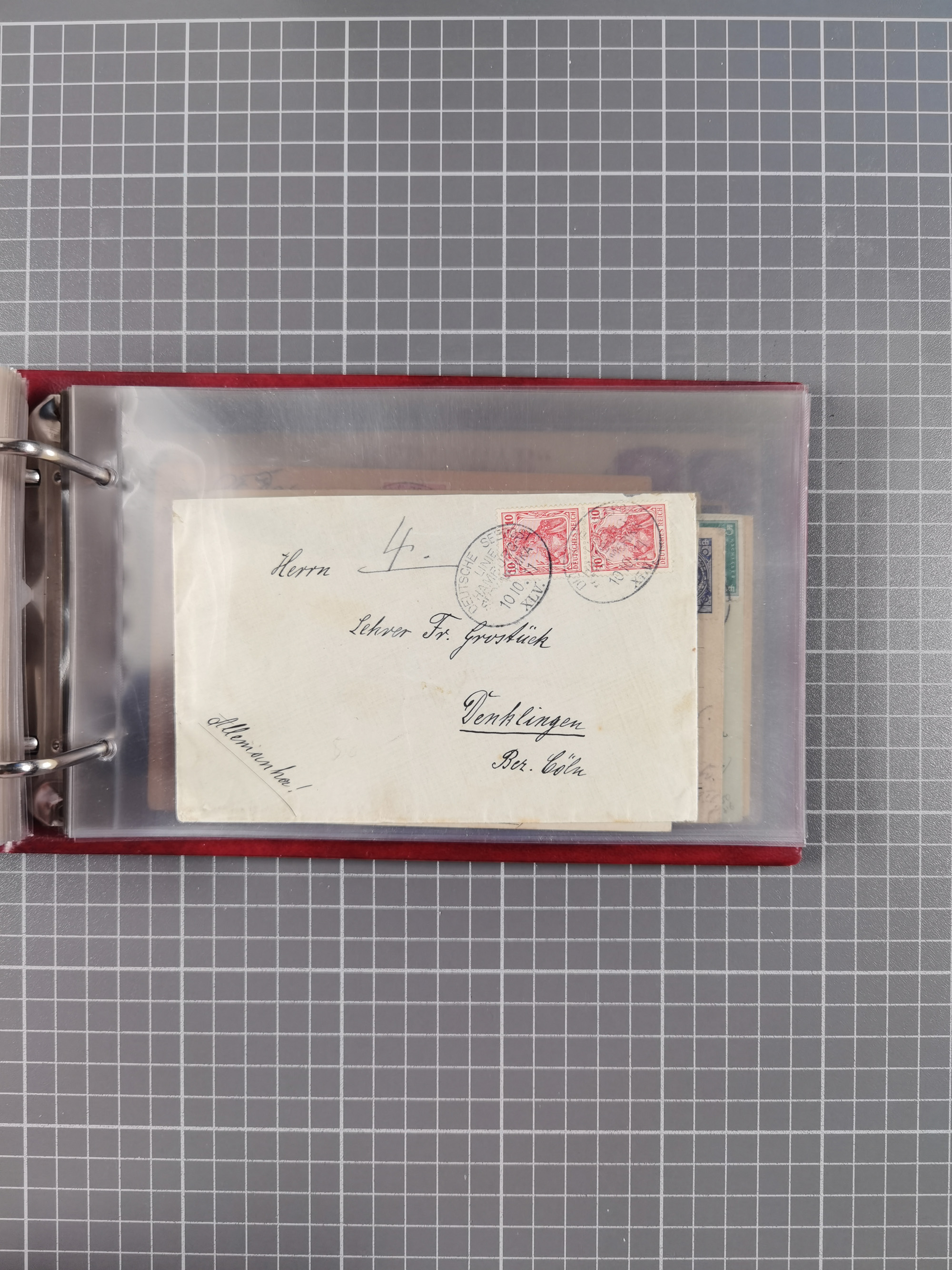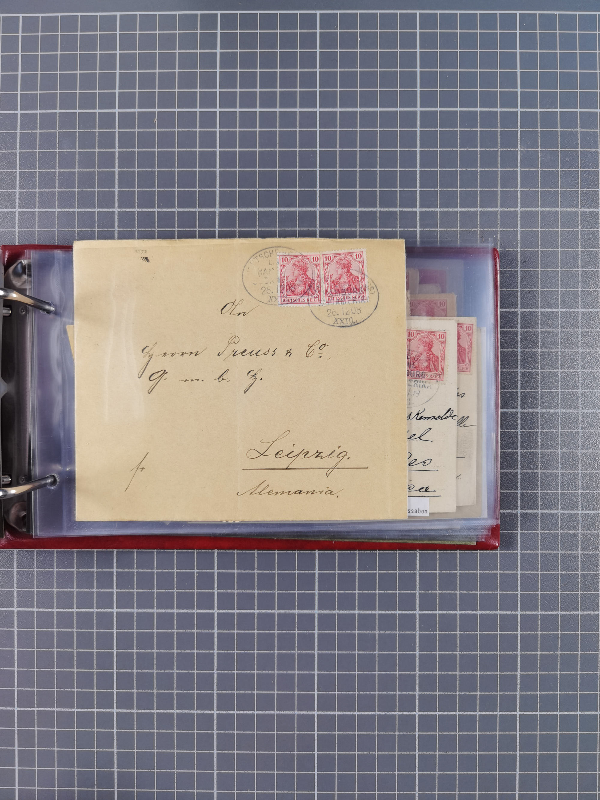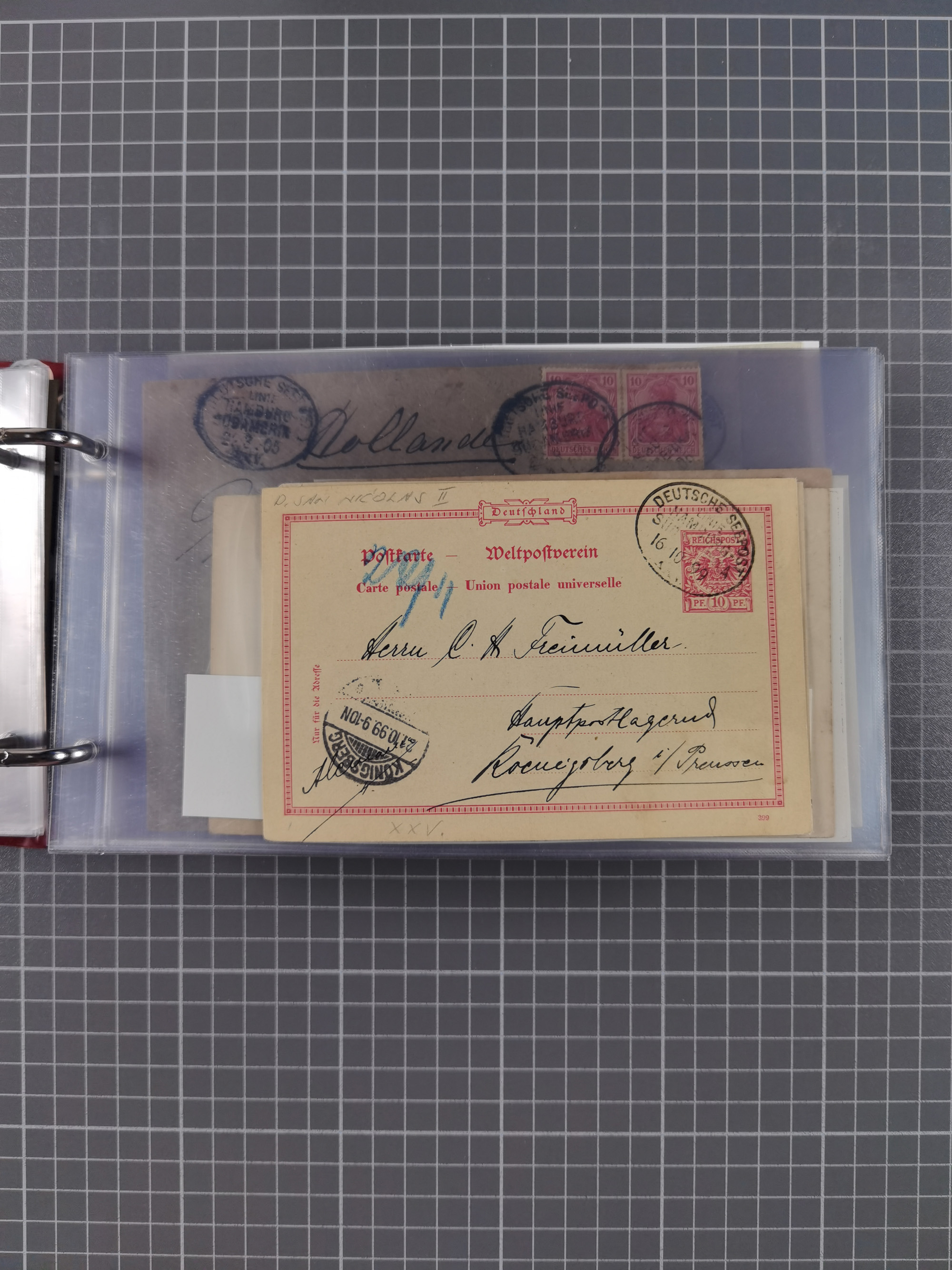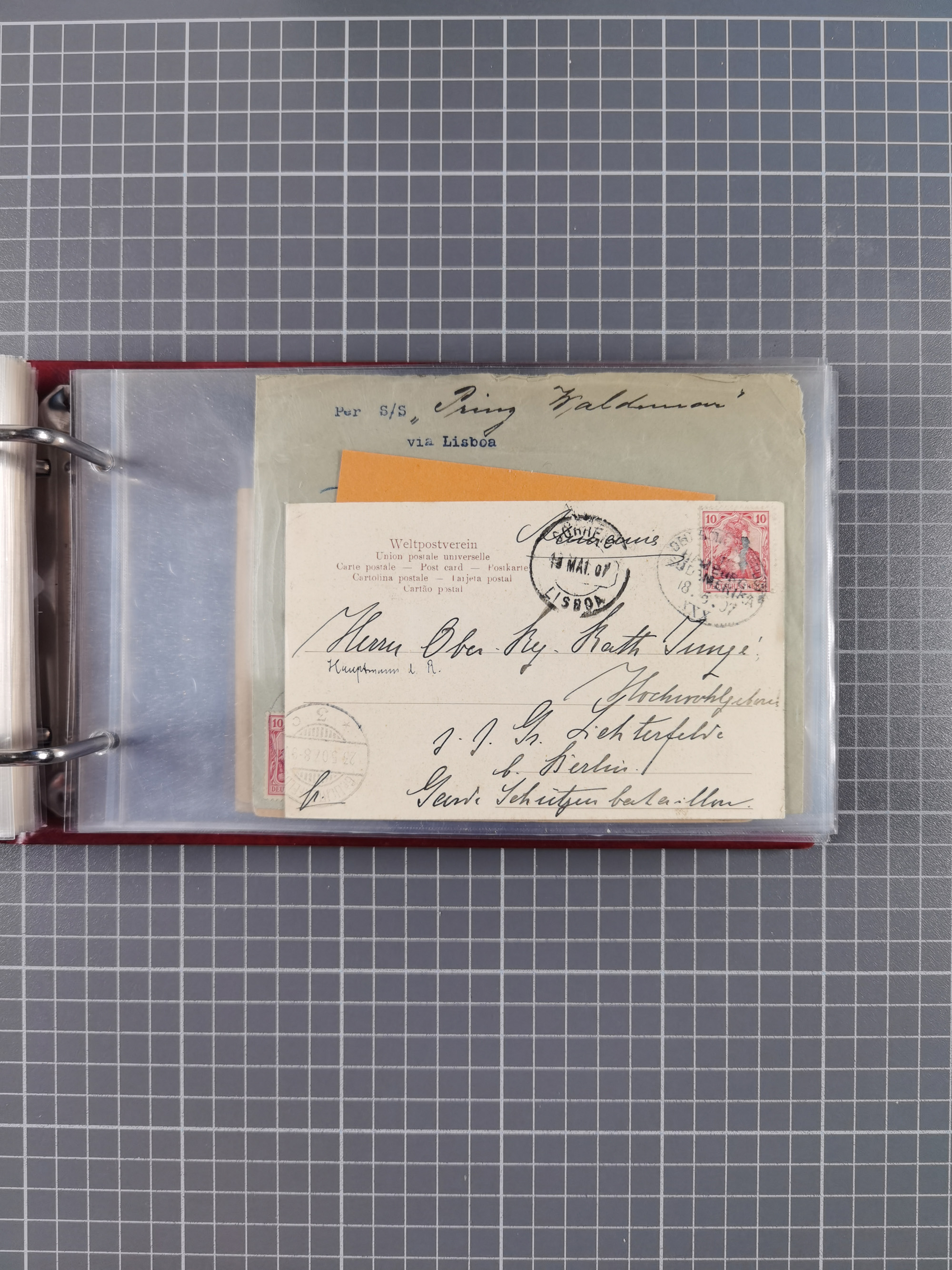 1887/1912, kleine Sammlung “DSP AUSTRALISCHE HAUPTLINIE” mit 35 Briefen, Karten und GSK, dabei frühe Post mit Aufgabe-Vermerken u.a. aus Aden, Port Sauíd und Suez, dazu eine Speisekarte vom Reichspostdampfer Scharnhorst 1905. Zum Teil kleine Spuren, meist in guter Erhaltung, ex Steinmeyer