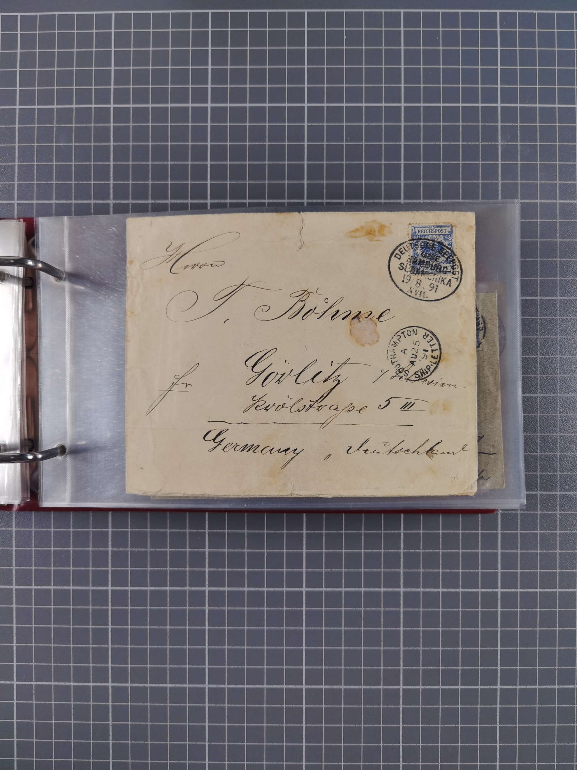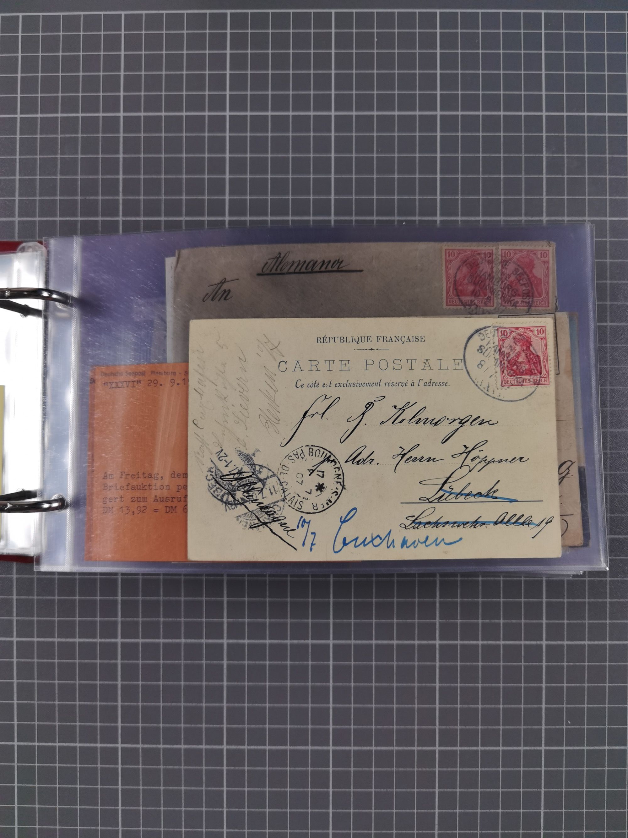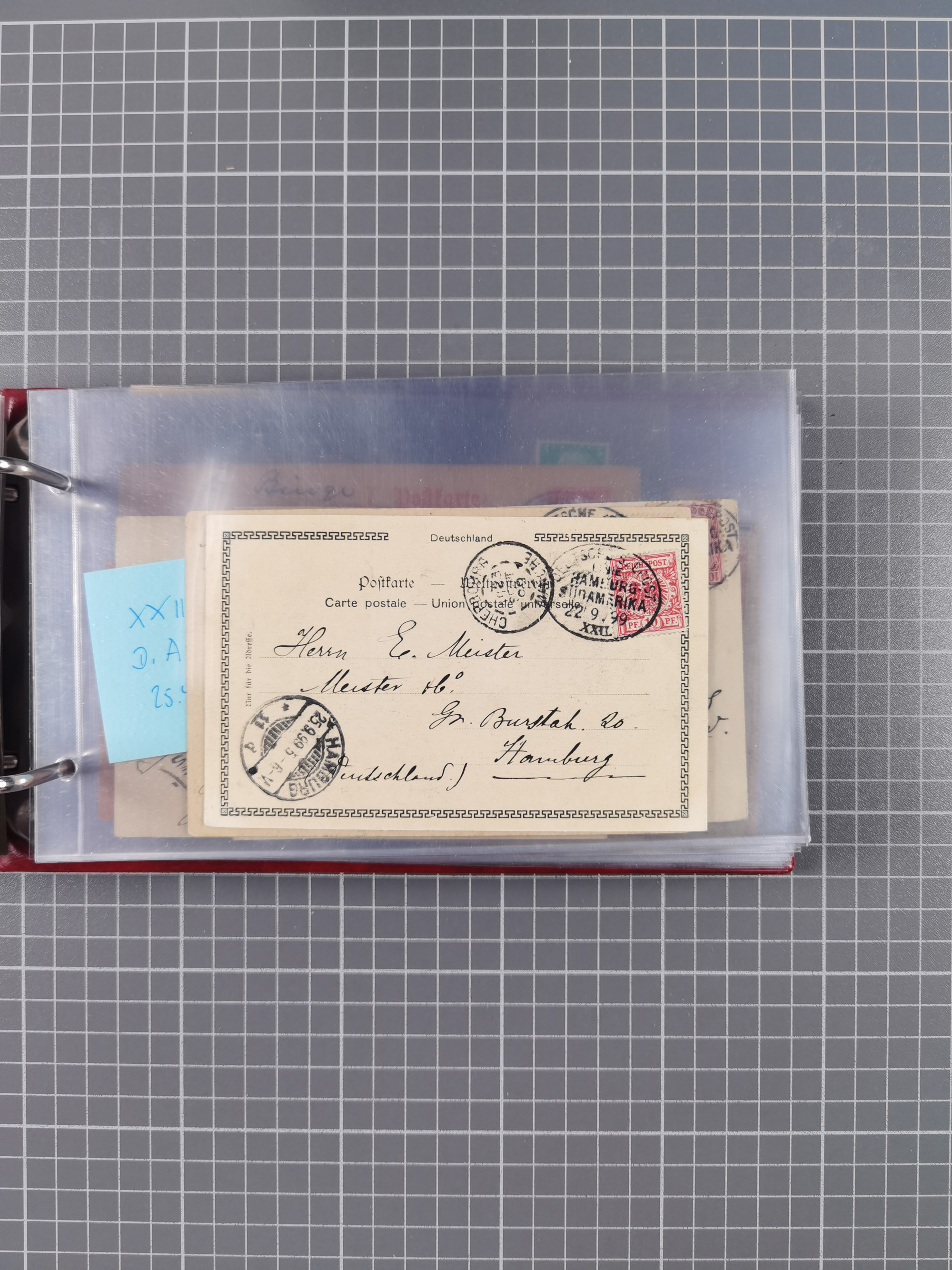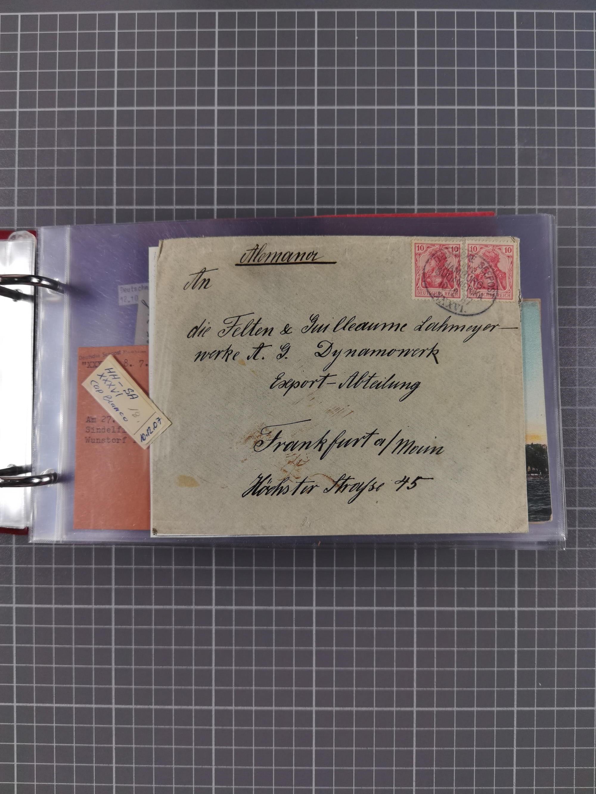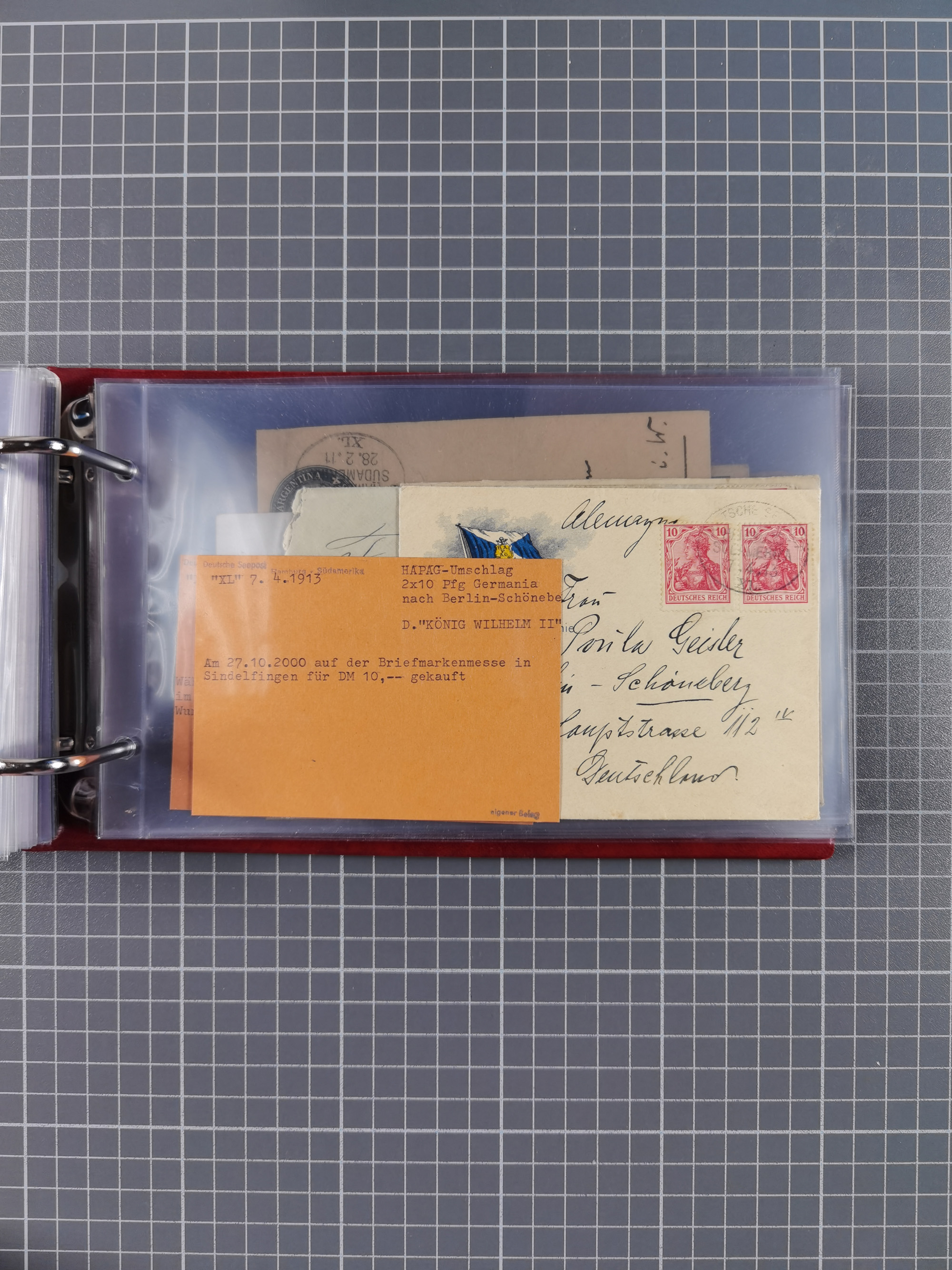 1887/1912, kleine Sammlung “DSP AUSTRALISCHE HAUPTLINIE” mit 35 Briefen, Karten und GSK, dabei frühe Post mit Aufgabe-Vermerken u.a. aus Aden, Port Sauíd und Suez, dazu eine Speisekarte vom Reichspostdampfer Scharnhorst 1905. Zum Teil kleine Spuren, meist in guter Erhaltung, ex Steinmeyer
