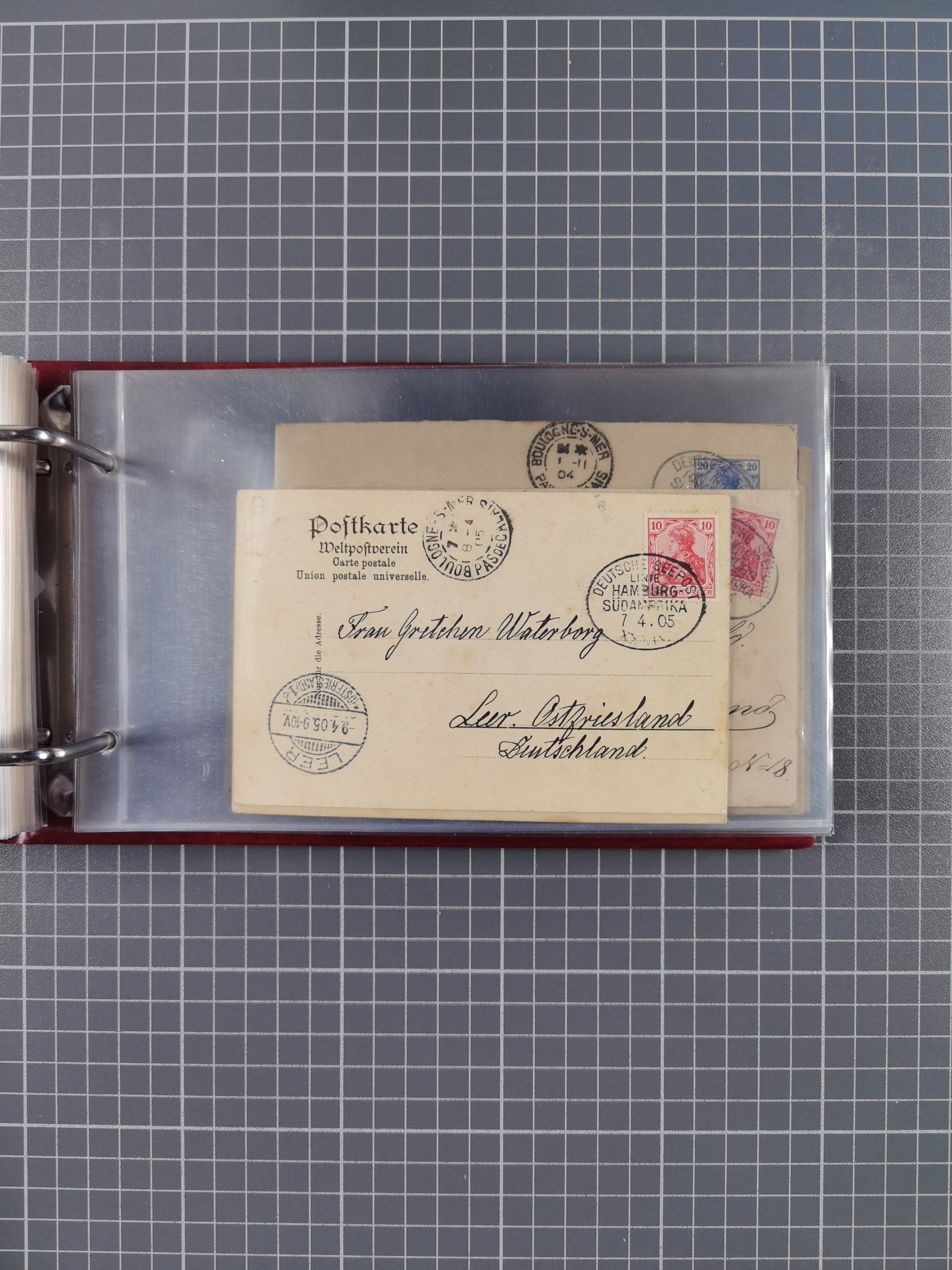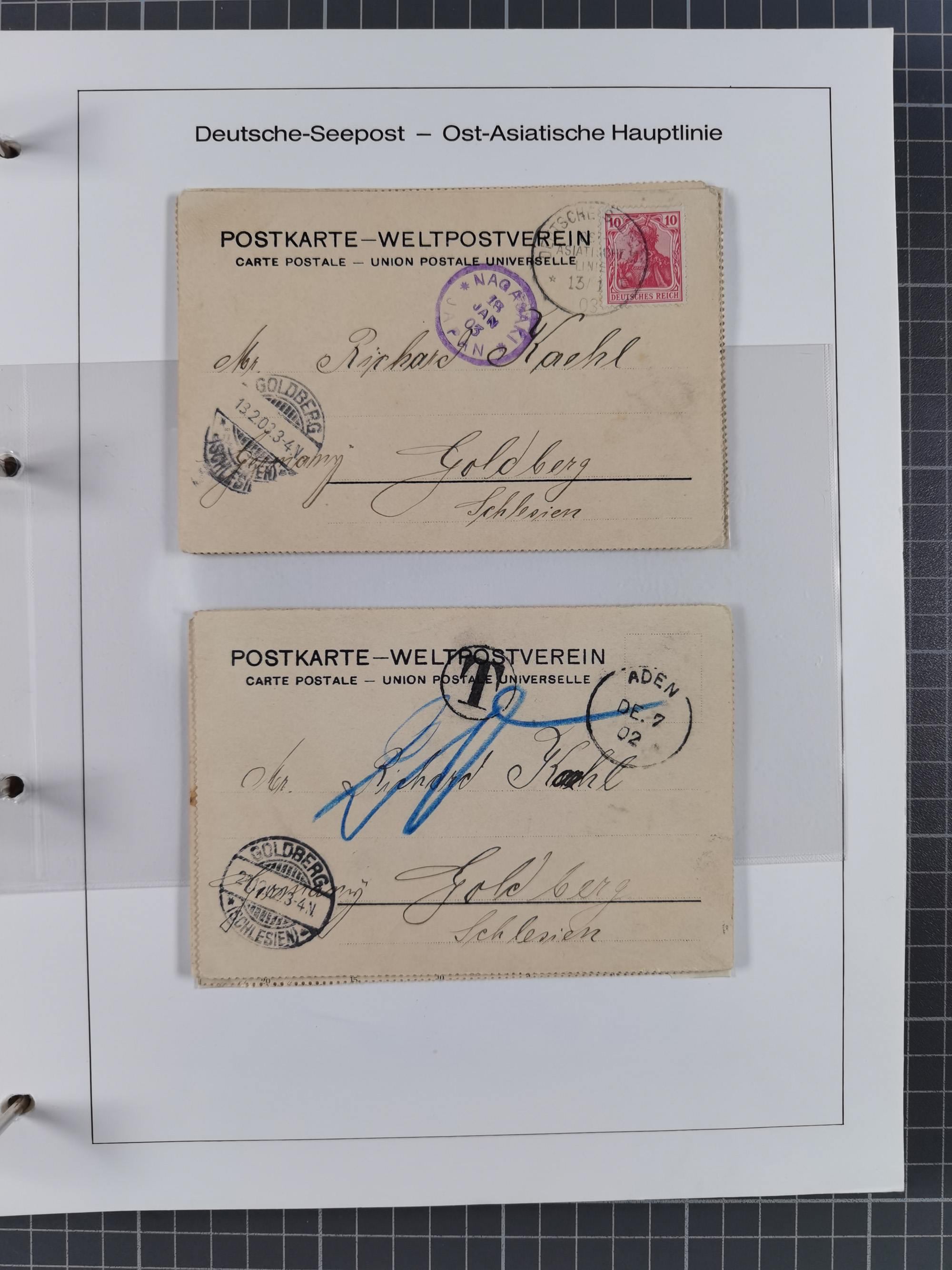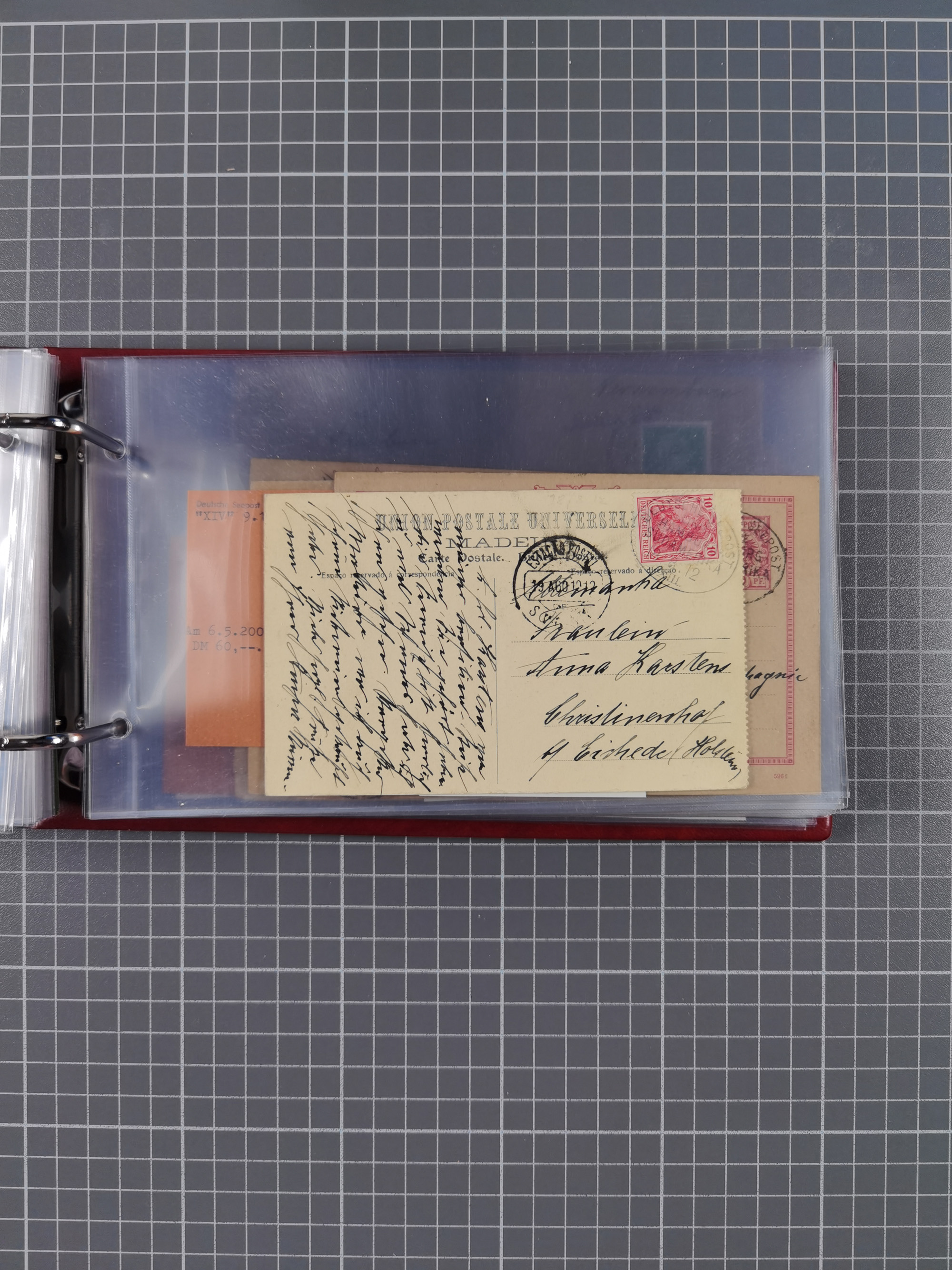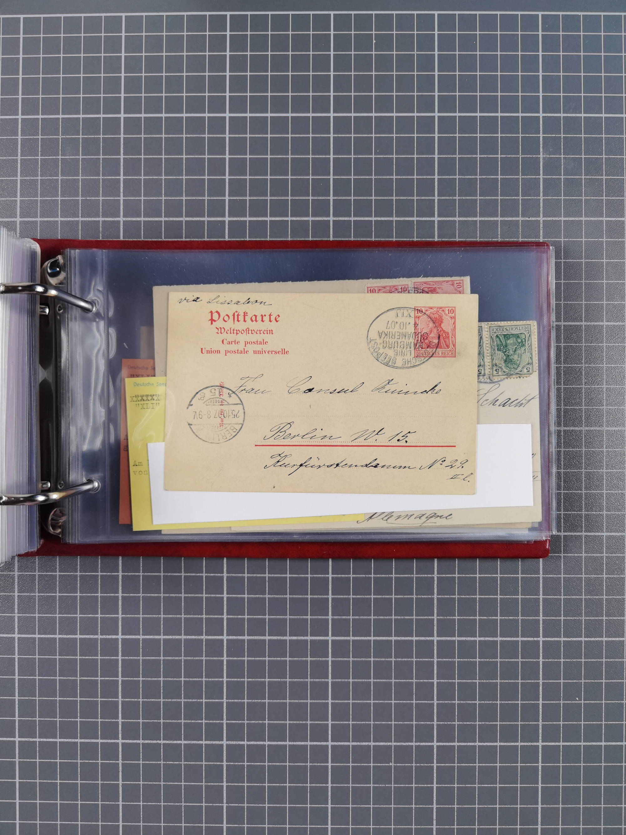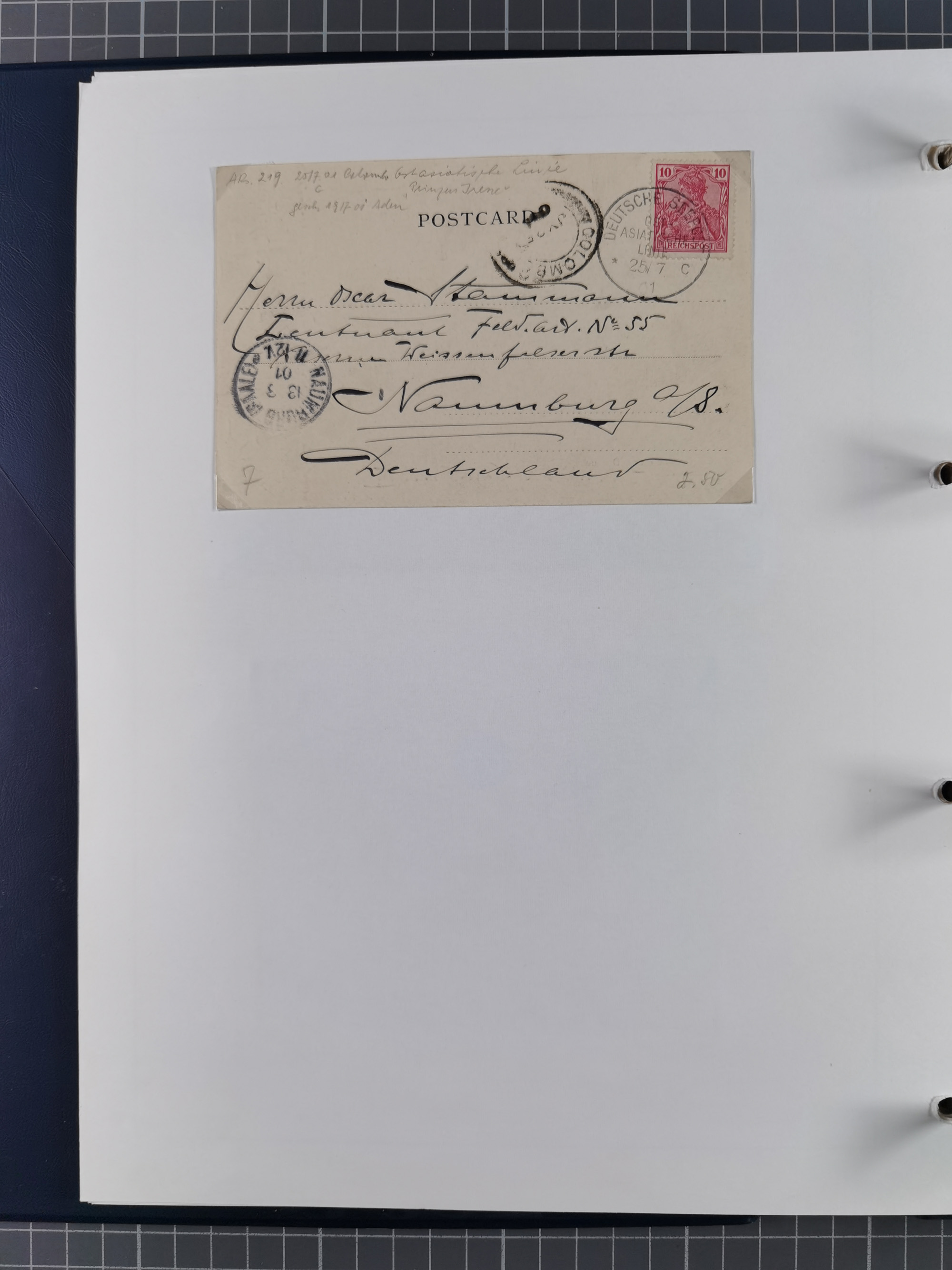 1887/1912, kleine Sammlung “DSP AUSTRALISCHE HAUPTLINIE” mit 35 Briefen, Karten und GSK, dabei frühe Post mit Aufgabe-Vermerken u.a. aus Aden, Port Sauíd und Suez, dazu eine Speisekarte vom Reichspostdampfer Scharnhorst 1905. Zum Teil kleine Spuren, meist in guter Erhaltung, ex Steinmeyer