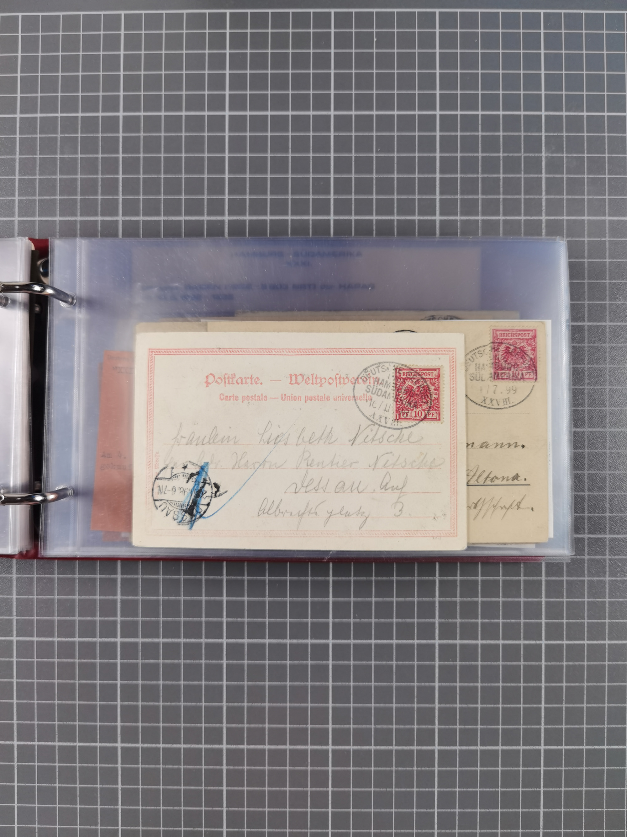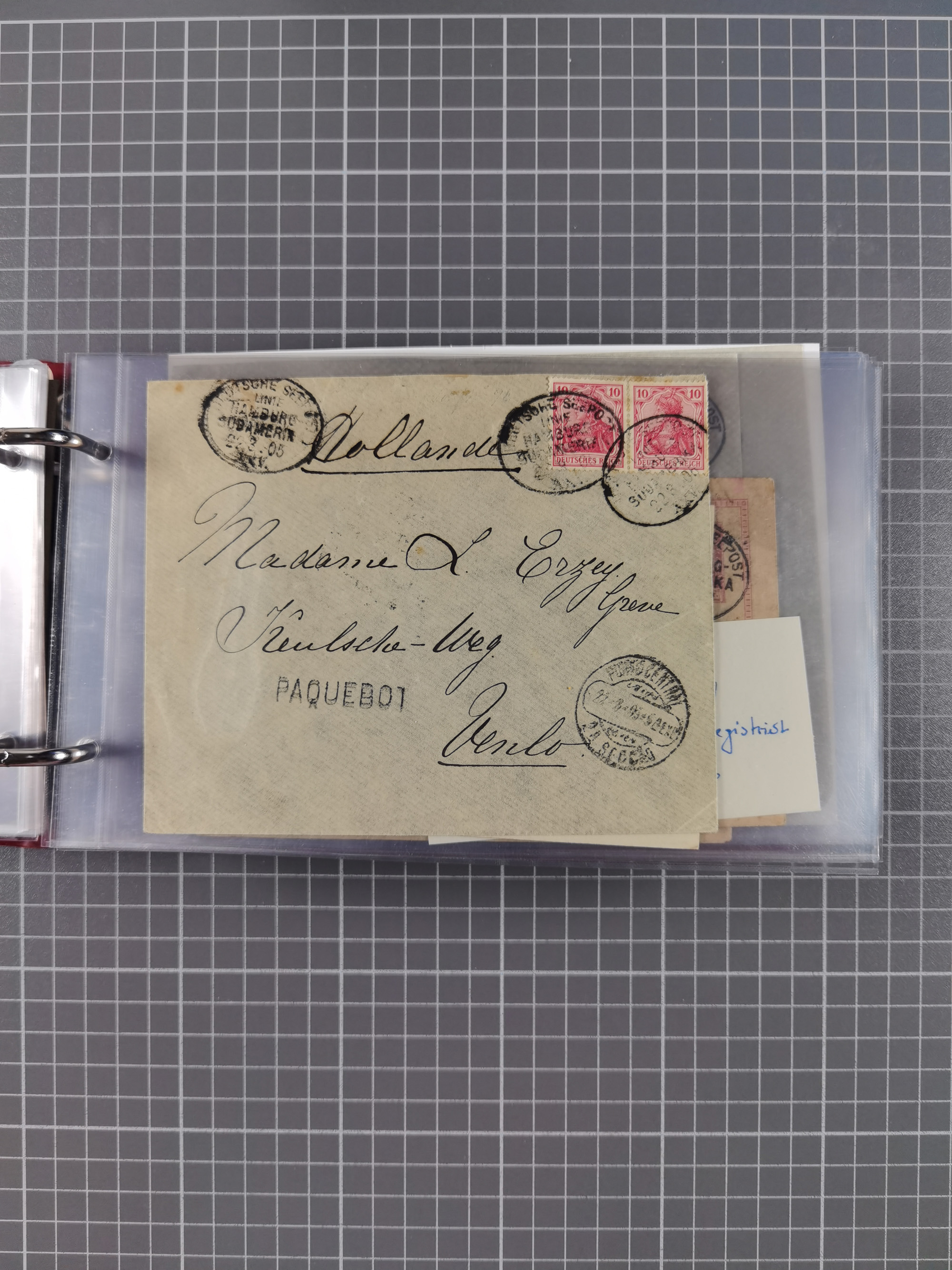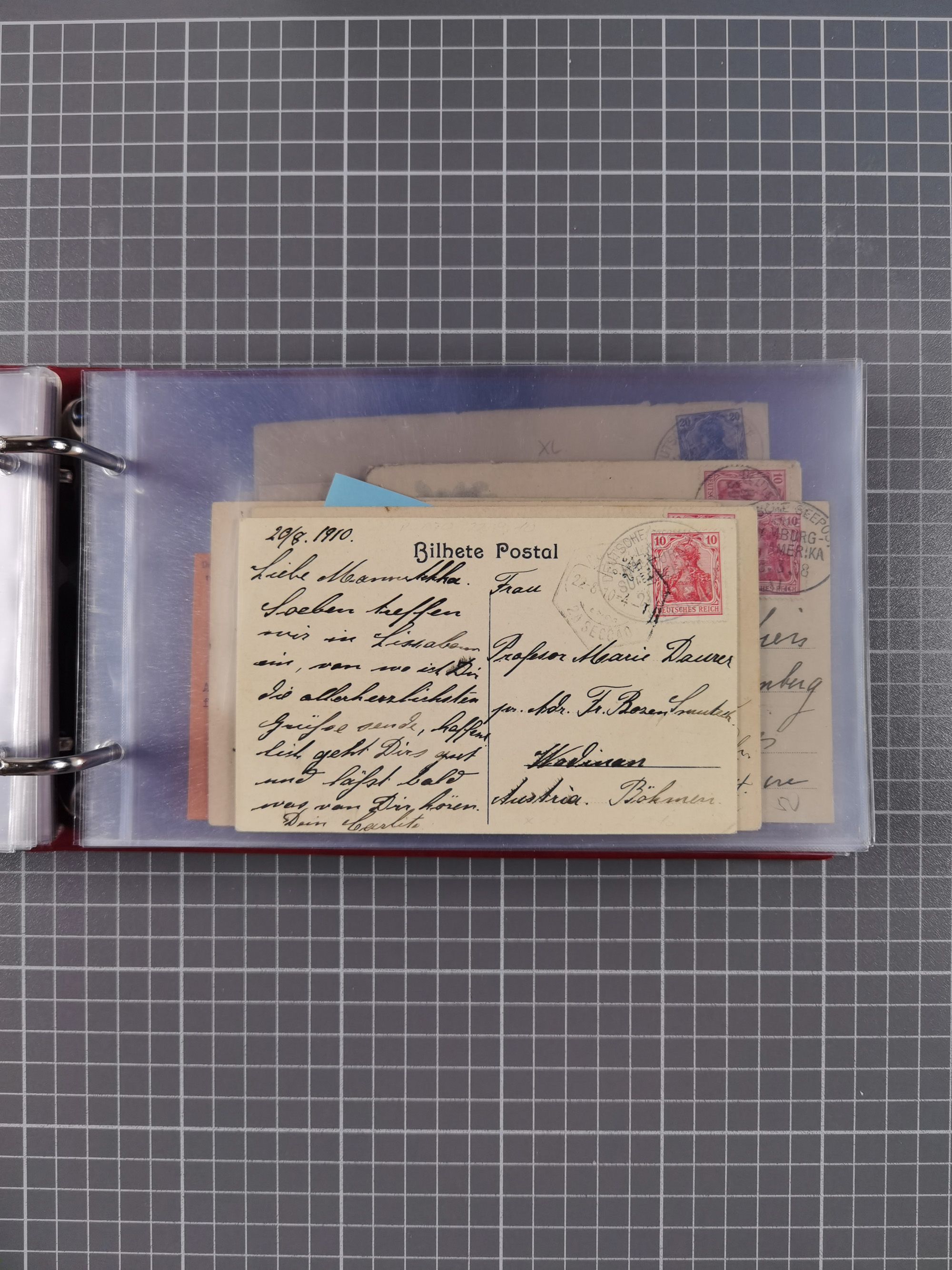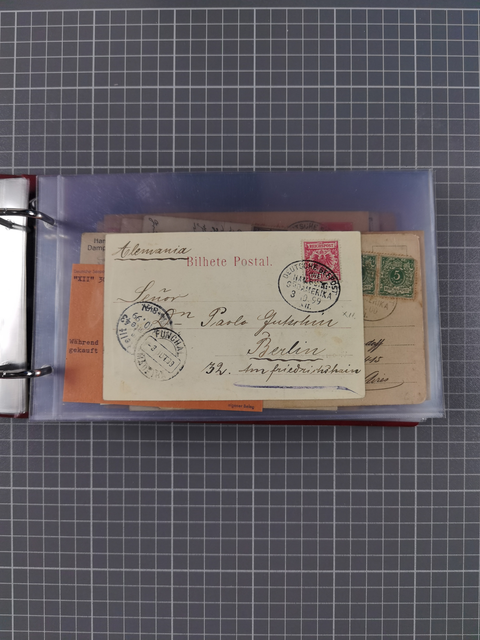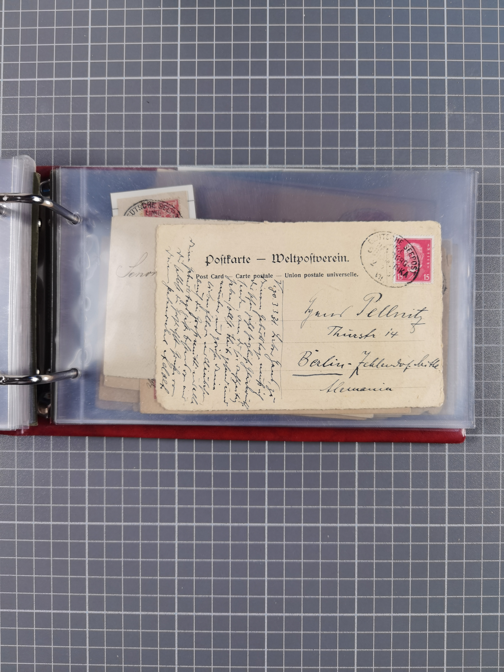 1887/1912, kleine Sammlung “DSP AUSTRALISCHE HAUPTLINIE” mit 35 Briefen, Karten und GSK, dabei frühe Post mit Aufgabe-Vermerken u.a. aus Aden, Port Sauíd und Suez, dazu eine Speisekarte vom Reichspostdampfer Scharnhorst 1905. Zum Teil kleine Spuren, meist in guter Erhaltung, ex Steinmeyer
