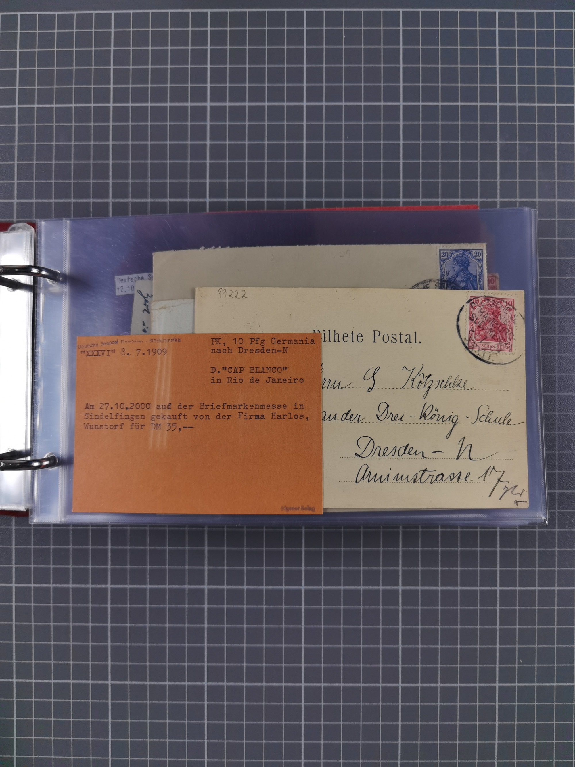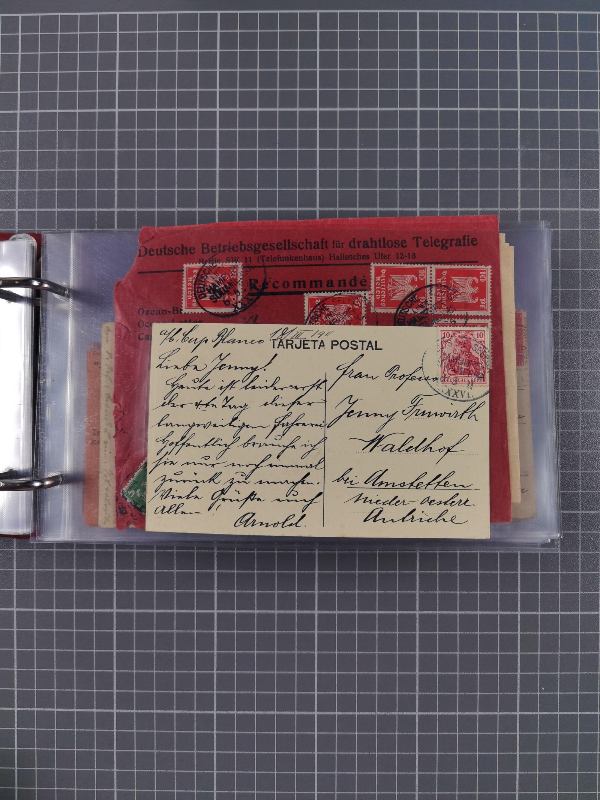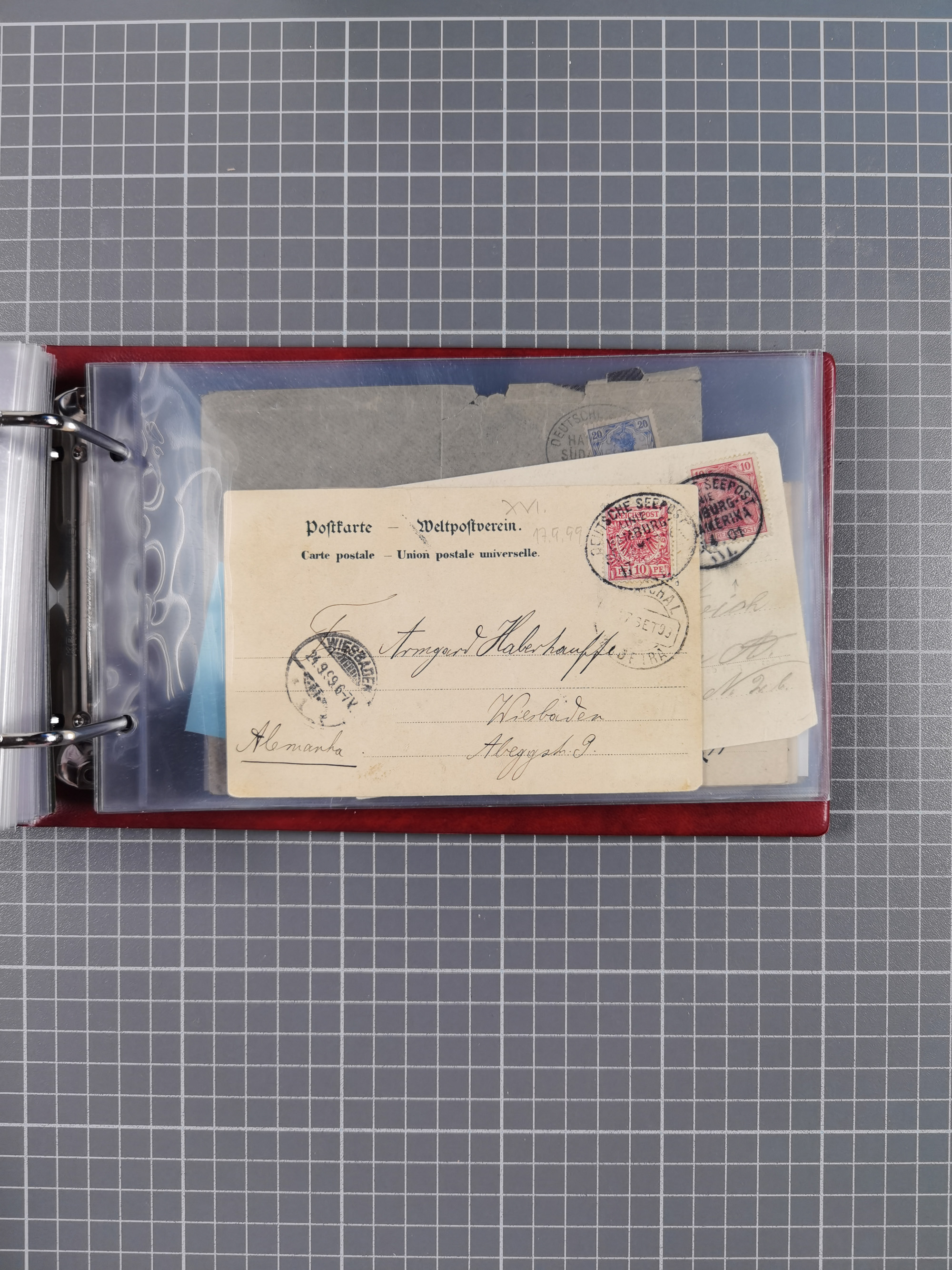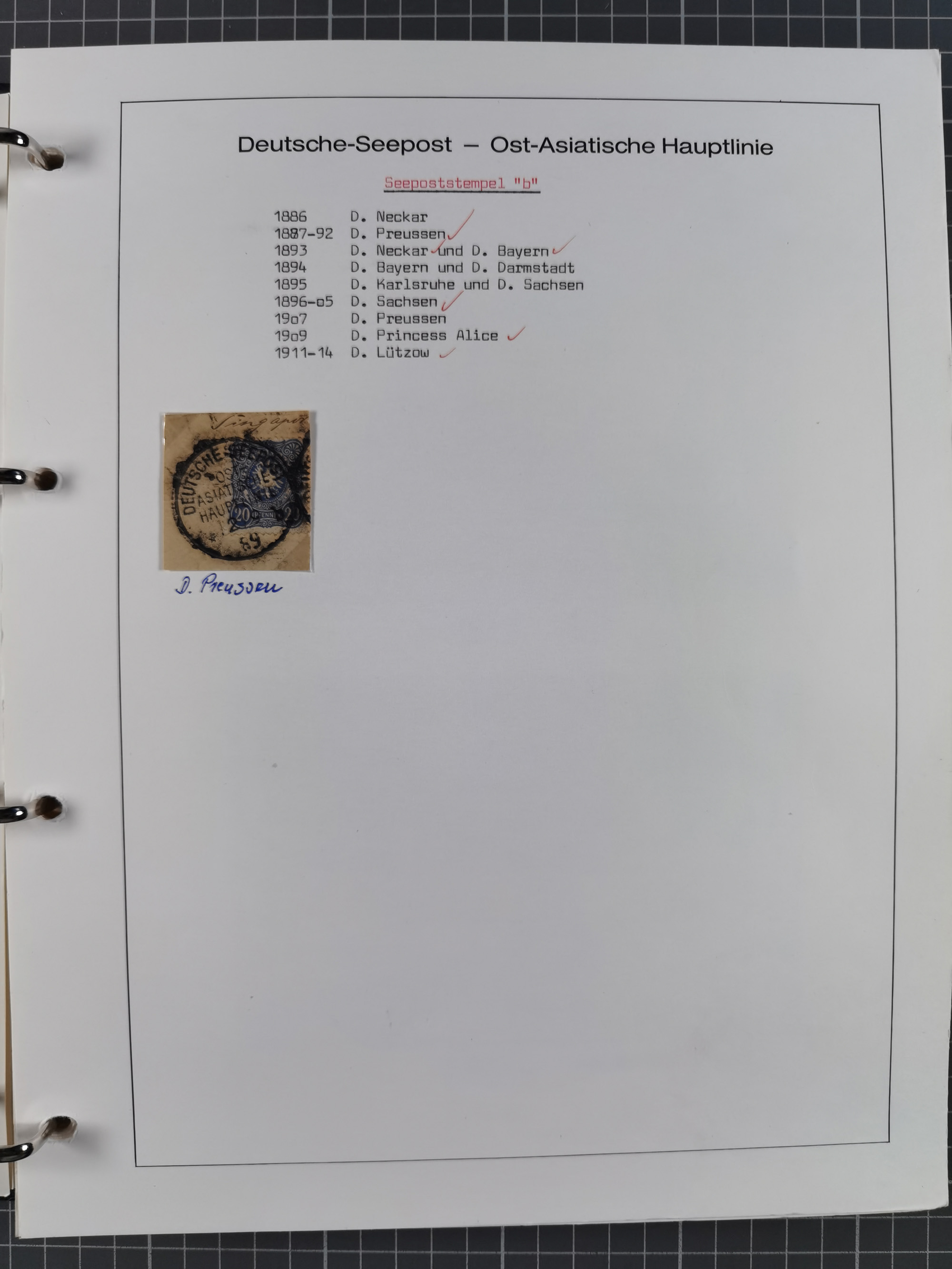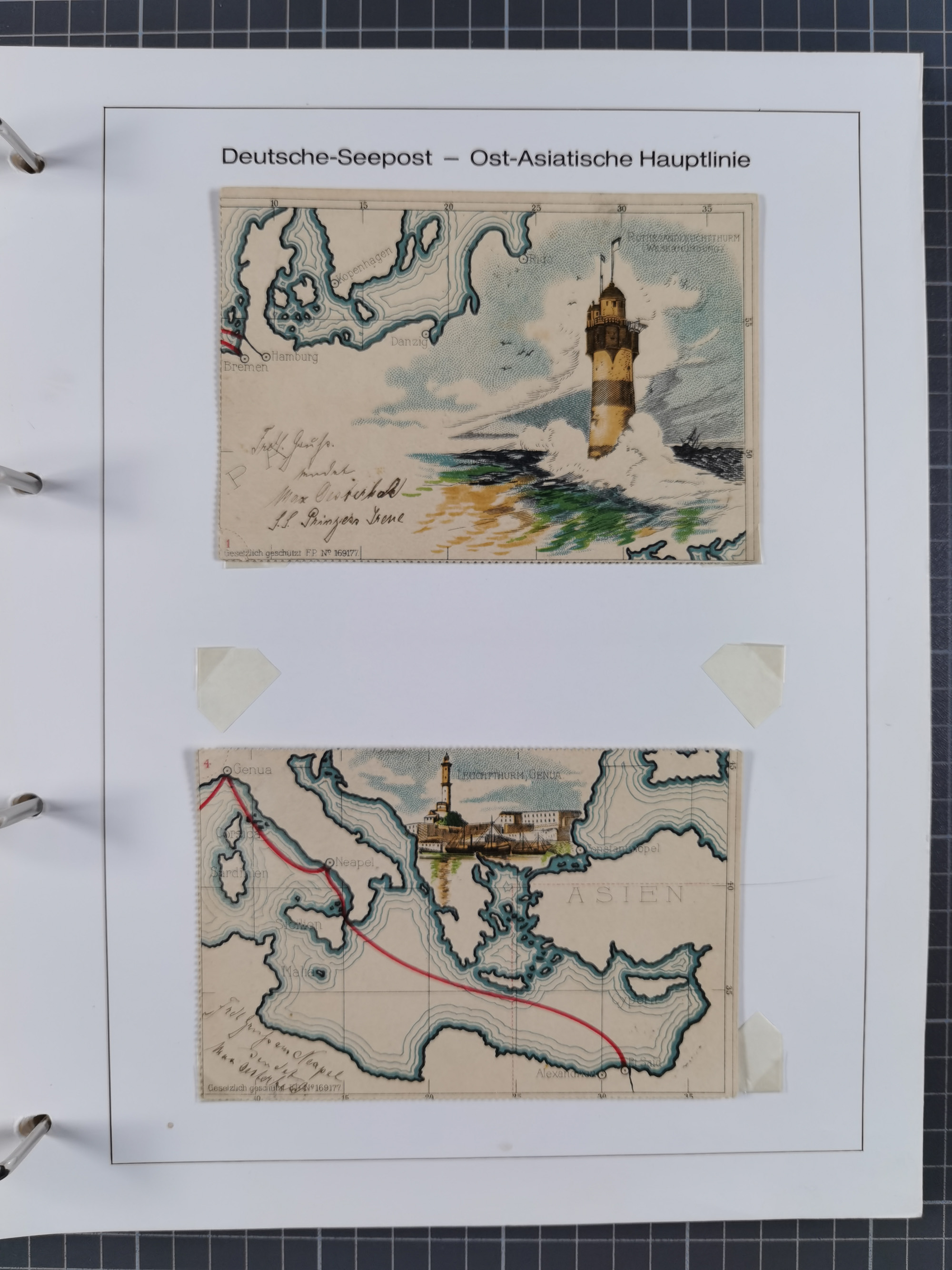 1887/1912, kleine Sammlung “DSP AUSTRALISCHE HAUPTLINIE” mit 35 Briefen, Karten und GSK, dabei frühe Post mit Aufgabe-Vermerken u.a. aus Aden, Port Sauíd und Suez, dazu eine Speisekarte vom Reichspostdampfer Scharnhorst 1905. Zum Teil kleine Spuren, meist in guter Erhaltung, ex Steinmeyer