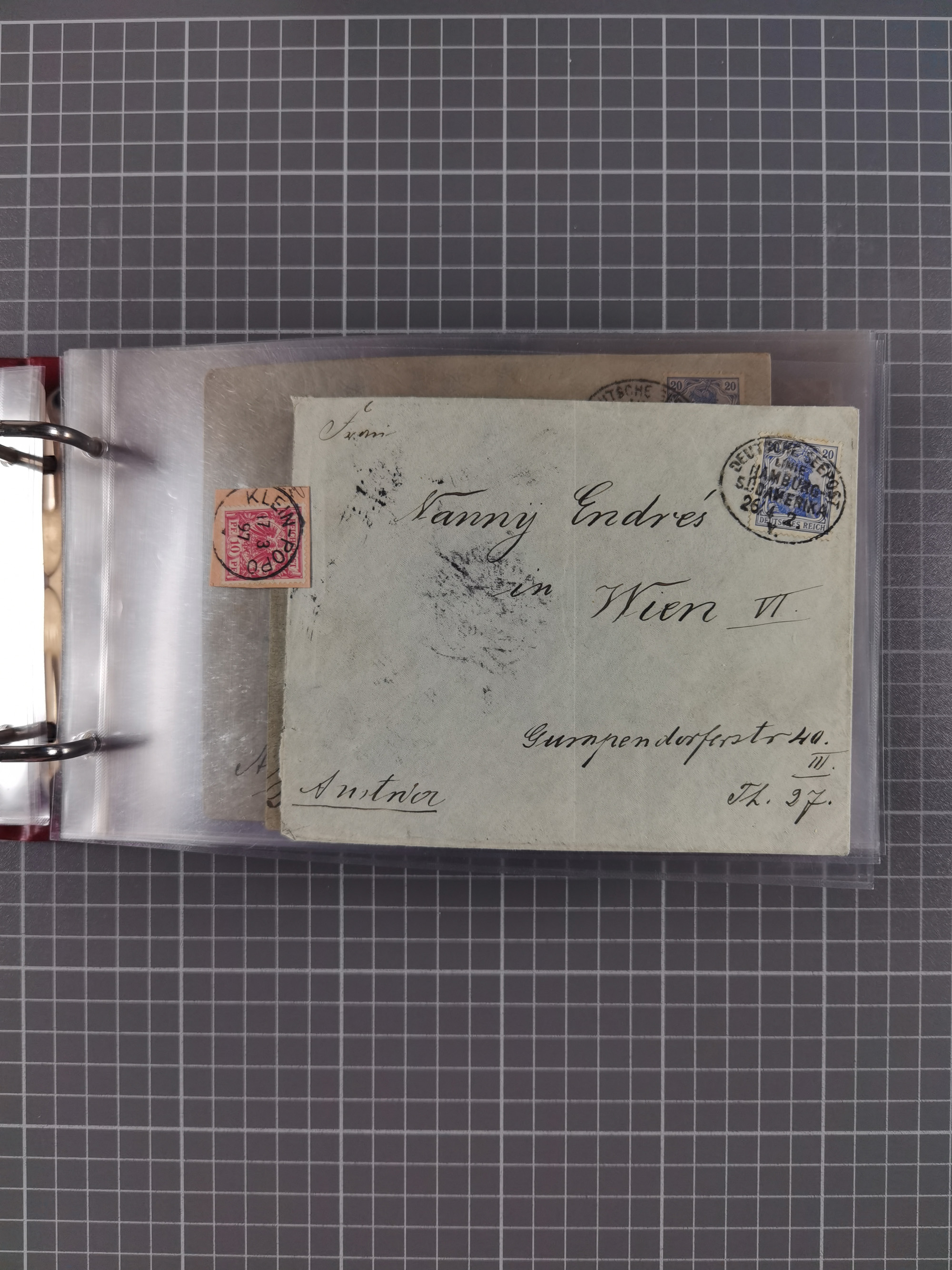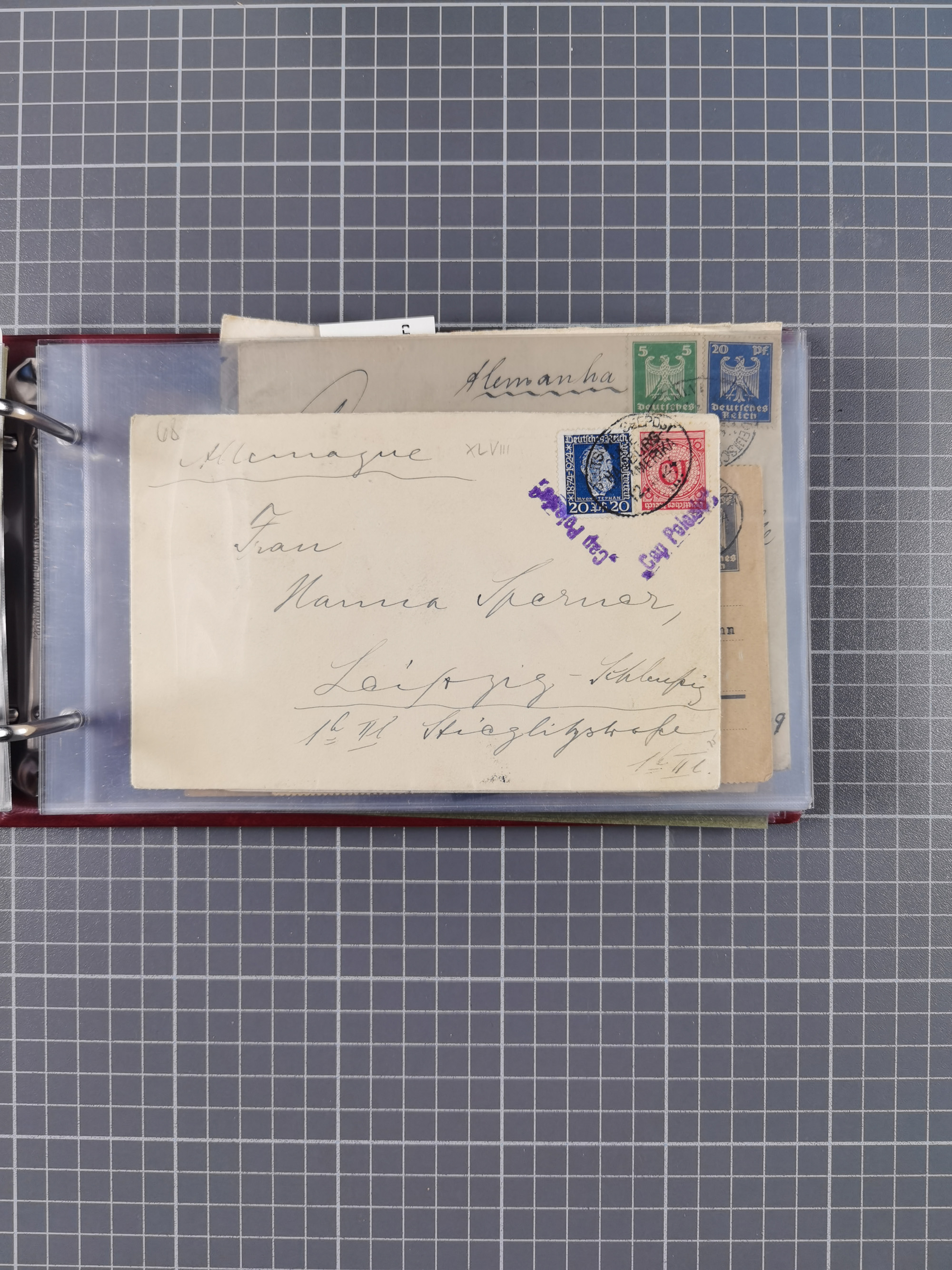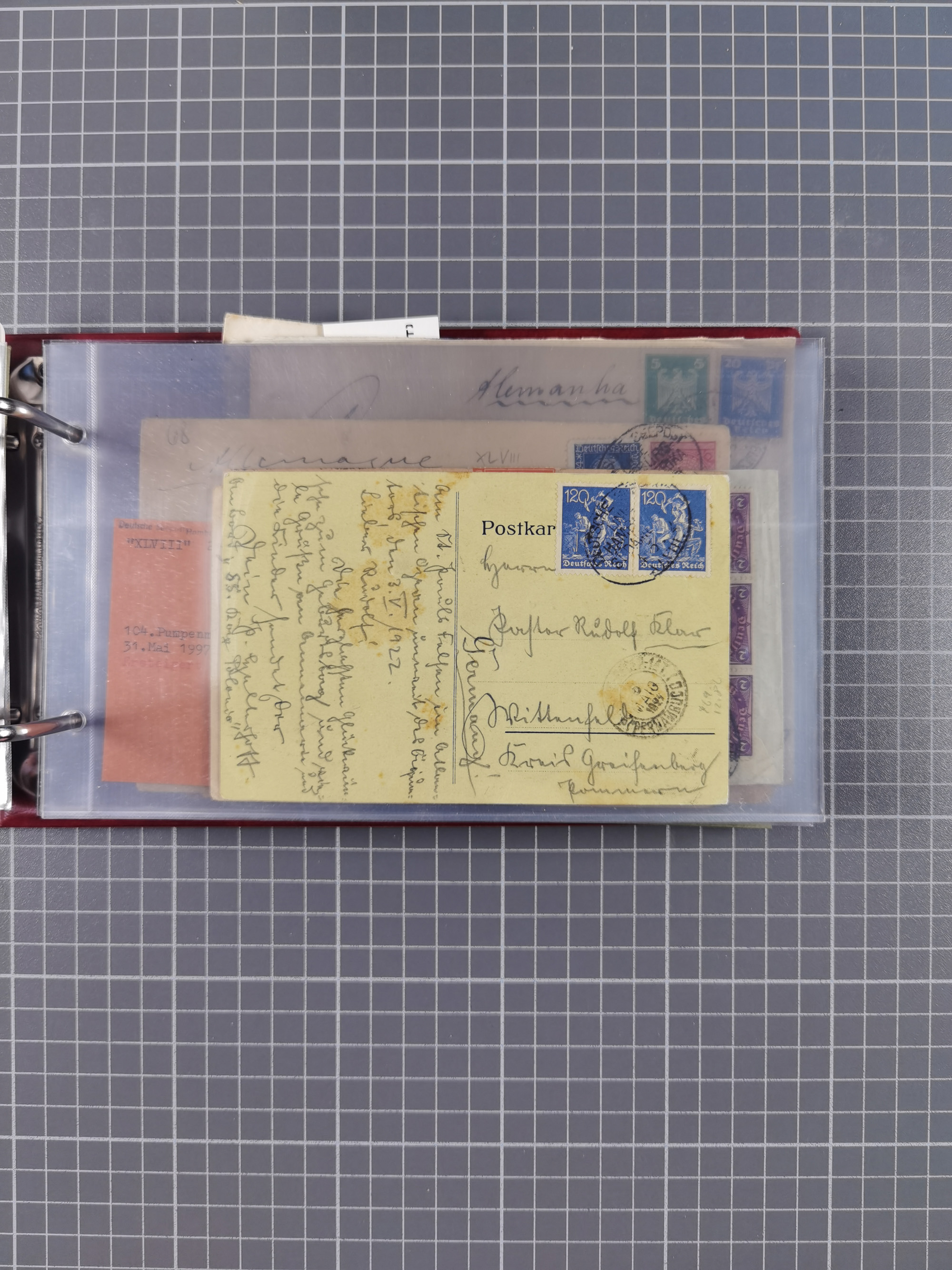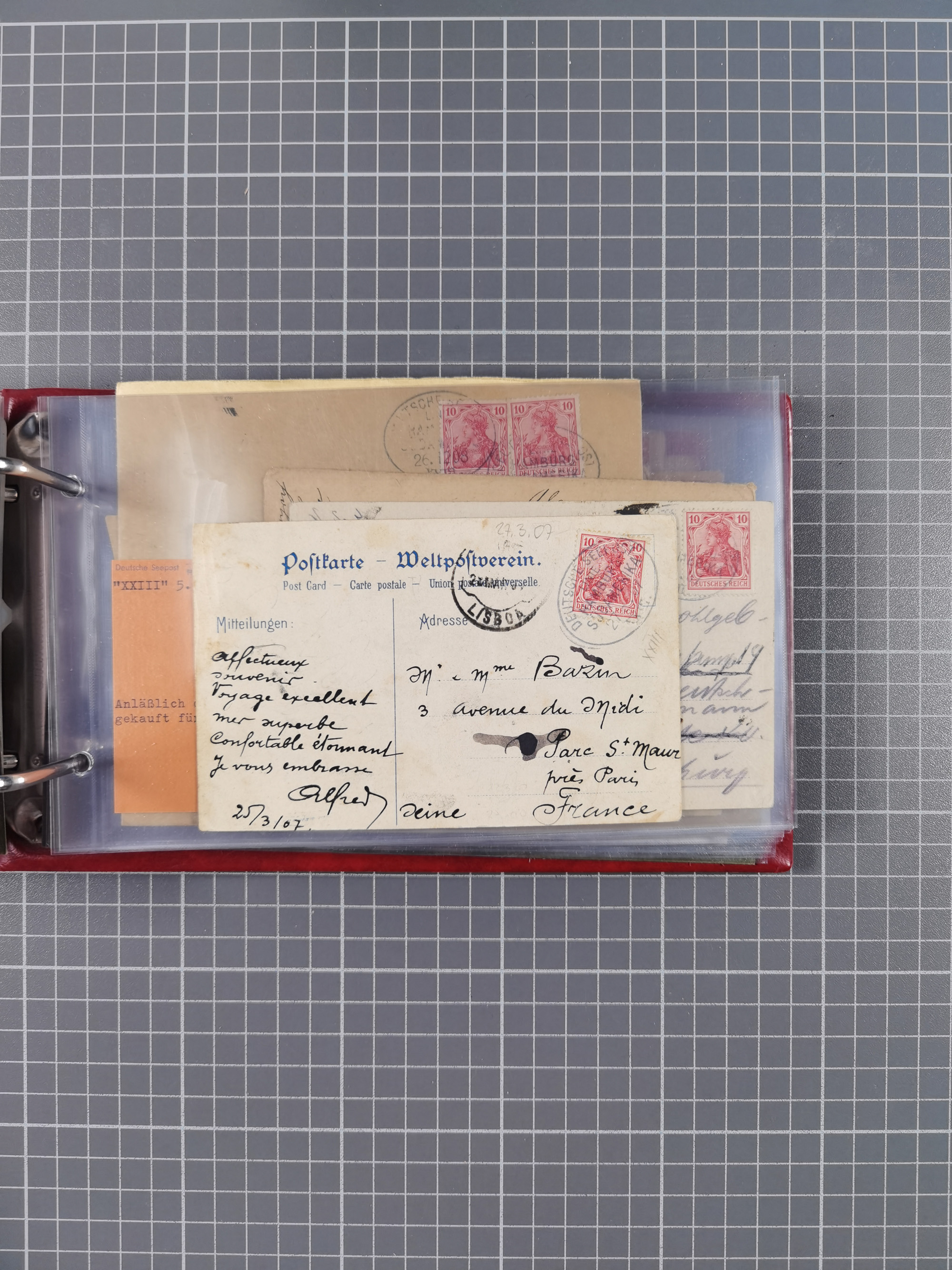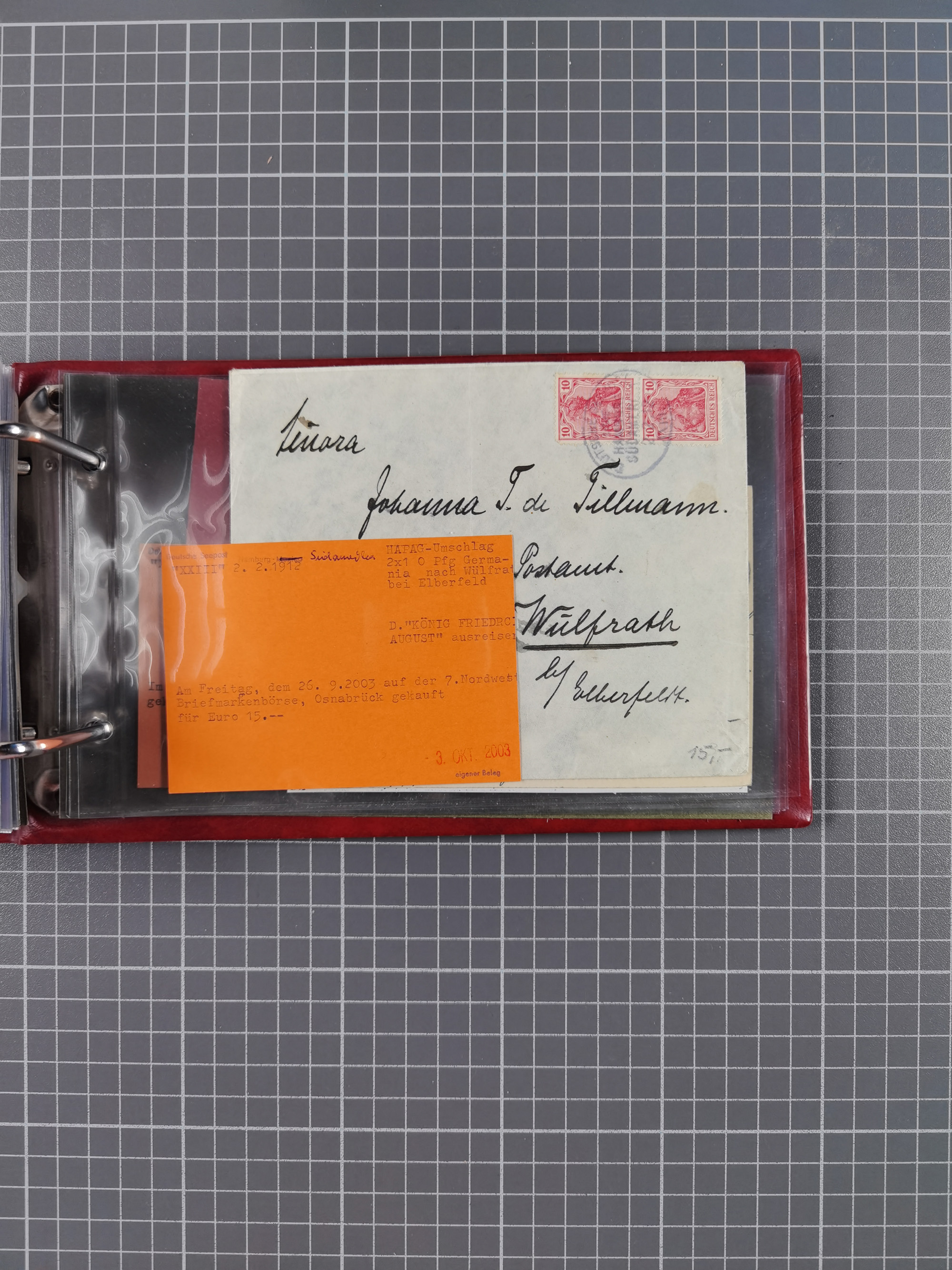1887/1912, kleine Sammlung “DSP AUSTRALISCHE HAUPTLINIE” mit 35 Briefen, Karten und GSK, dabei frühe Post mit Aufgabe-Vermerken u.a. aus Aden, Port Sauíd und Suez, dazu eine Speisekarte vom Reichspostdampfer Scharnhorst 1905. Zum Teil kleine Spuren, meist in guter Erhaltung, ex Steinmeyer
