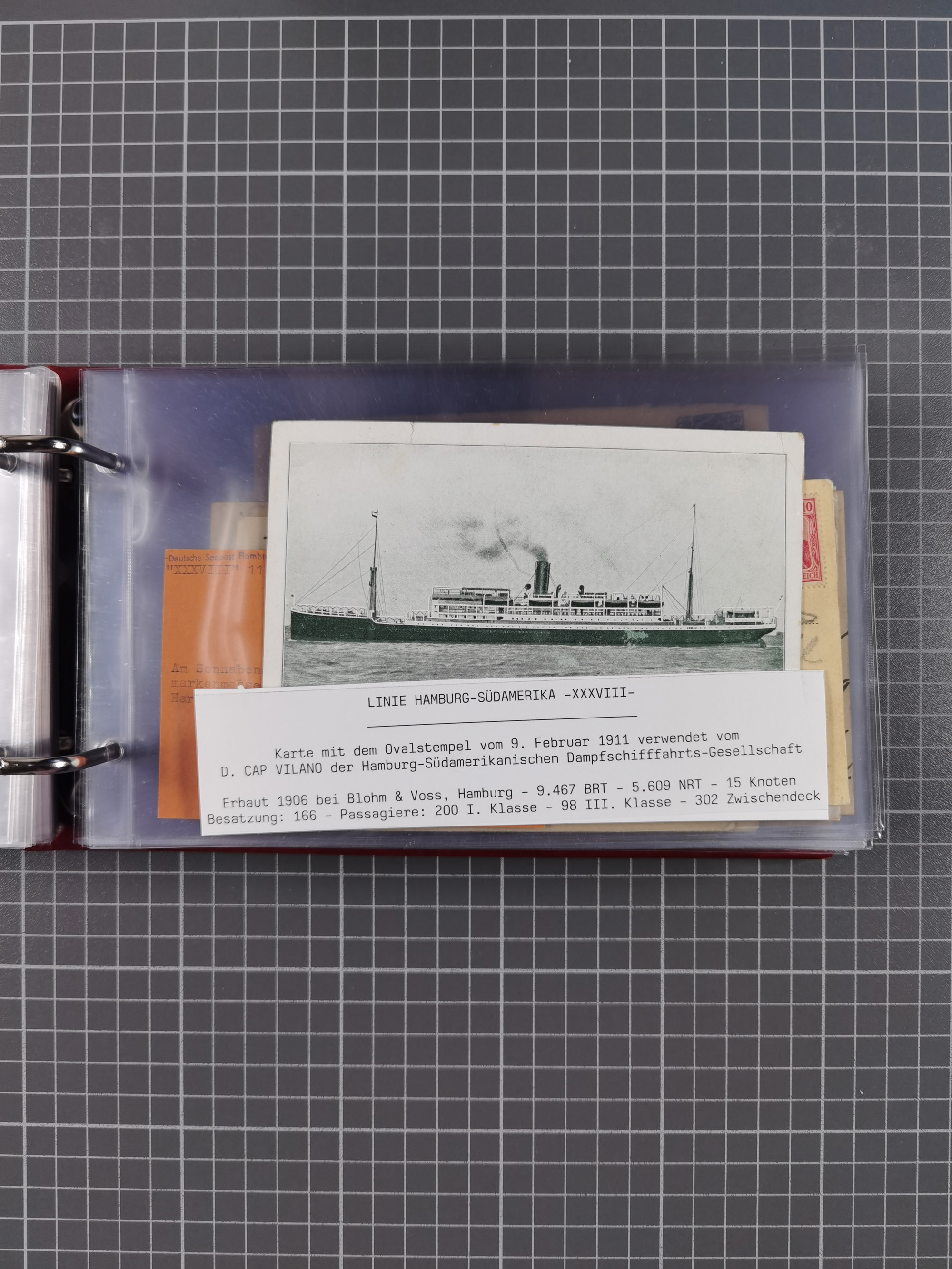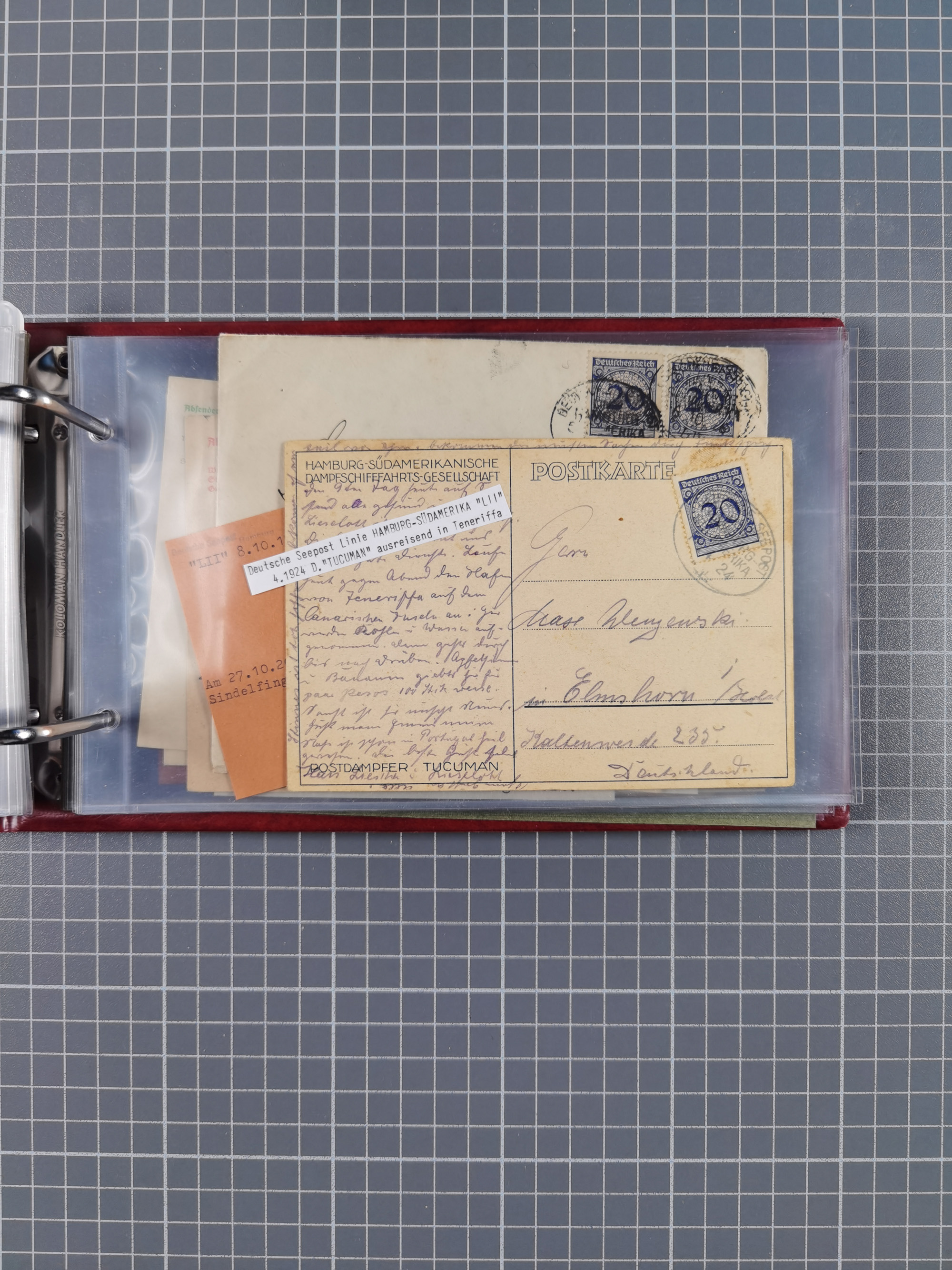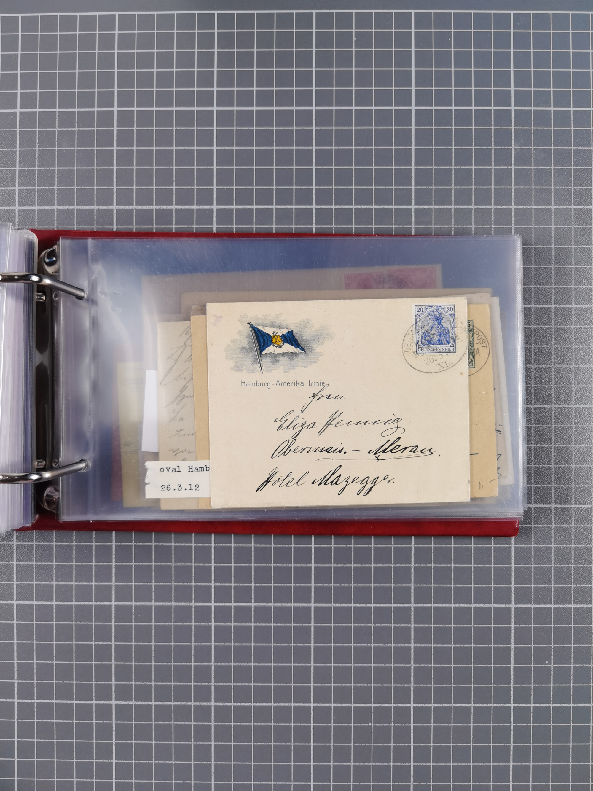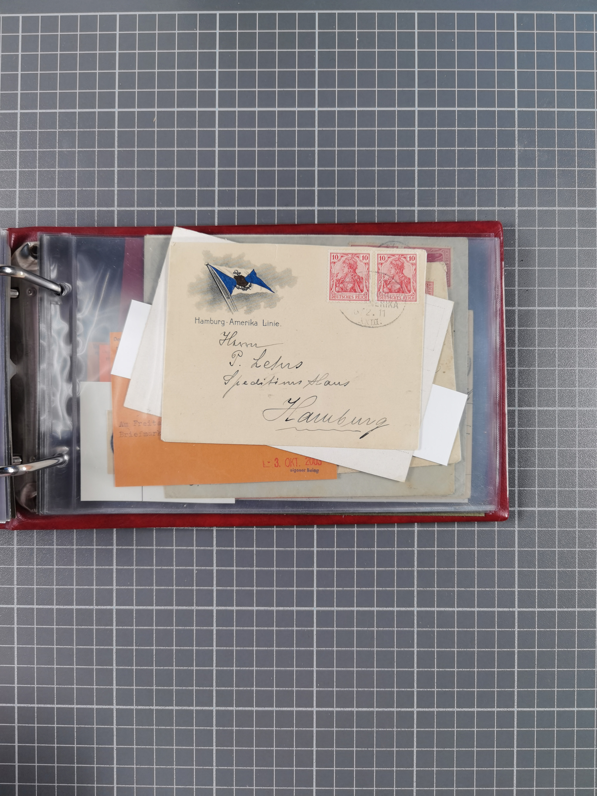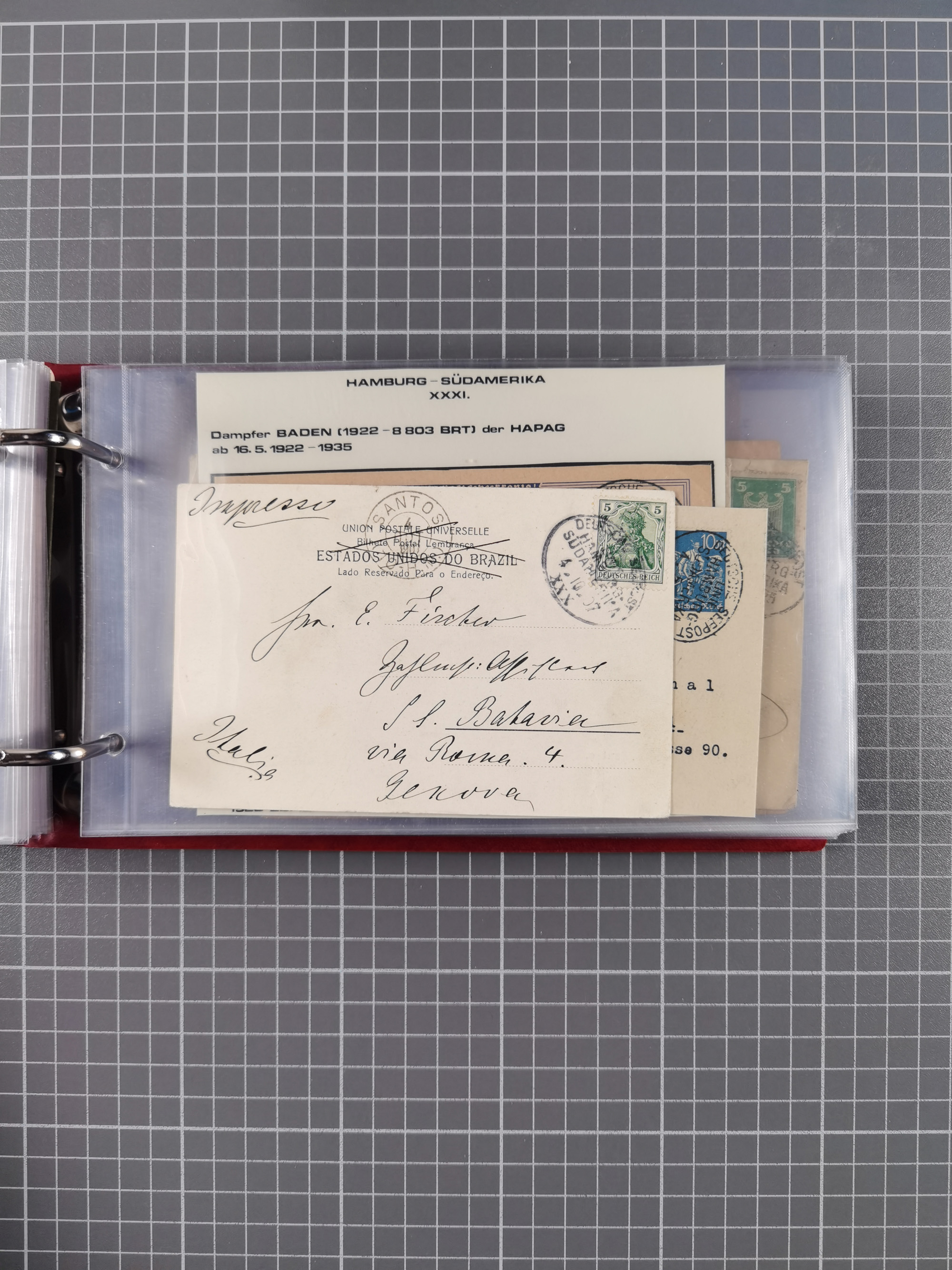 1826/1938, kleine Sammlung “Schiffspost aus Hamburg” mit ca. 35 Briefen, Karten und GSK, dabei u.a. Stempel “HAMBURG SCHIFFS BRIEF-POST” auf Faltbriefhülle 1826, Belege der Monte Oliva mit u.a. 40 Speisekarten und Belege D. Columbus. Dazu weitere Belege diverser Reisen mit u.a. London-Reise, Hamburg-Südamerika und Post der Monte Sarmiento mit über 40 Speisekarten sowie fünf Belege Gauturnfahrt 1935. Meist auf Albenblättern mit Beschriftung, ex Steinmeyer
