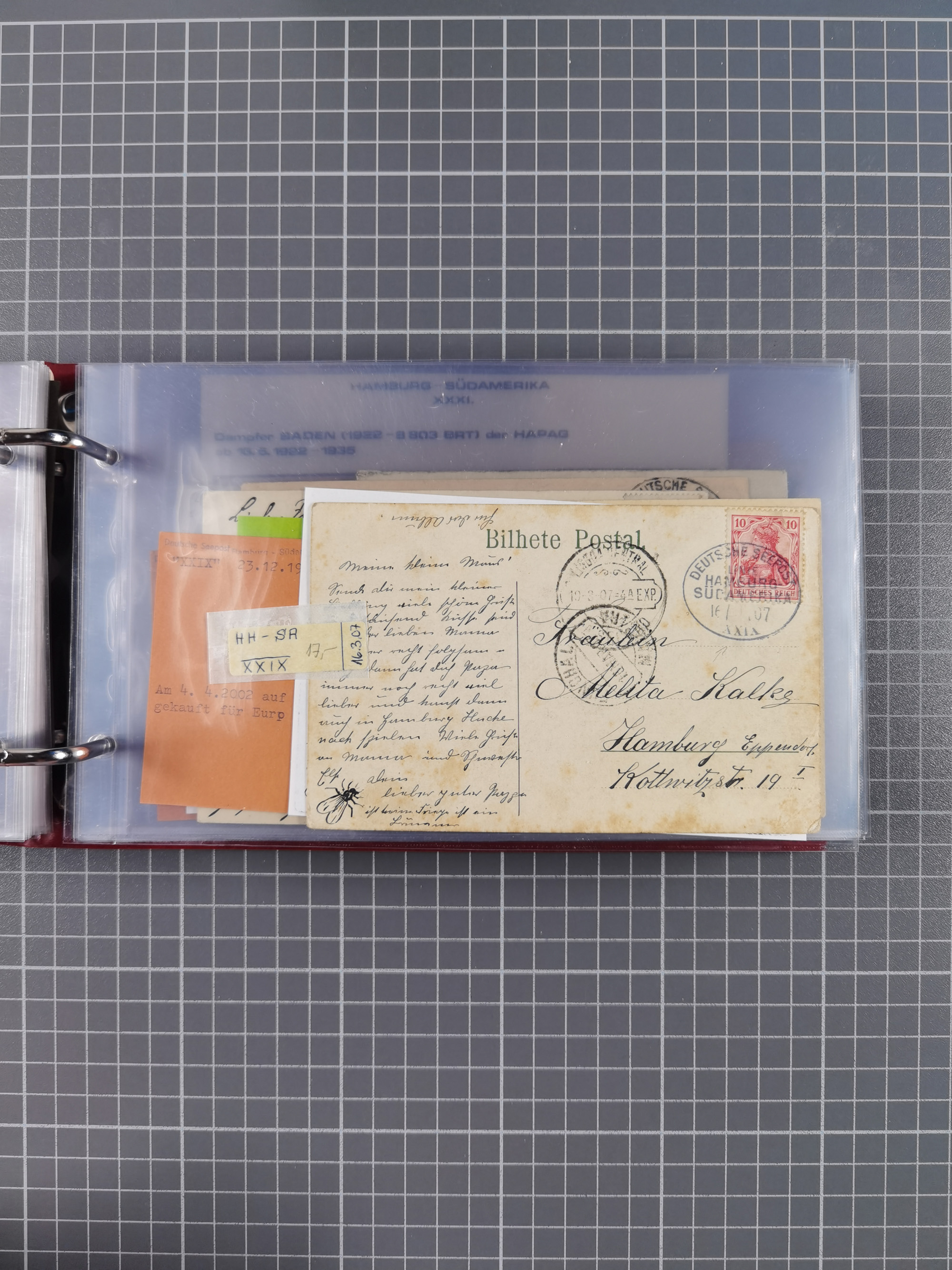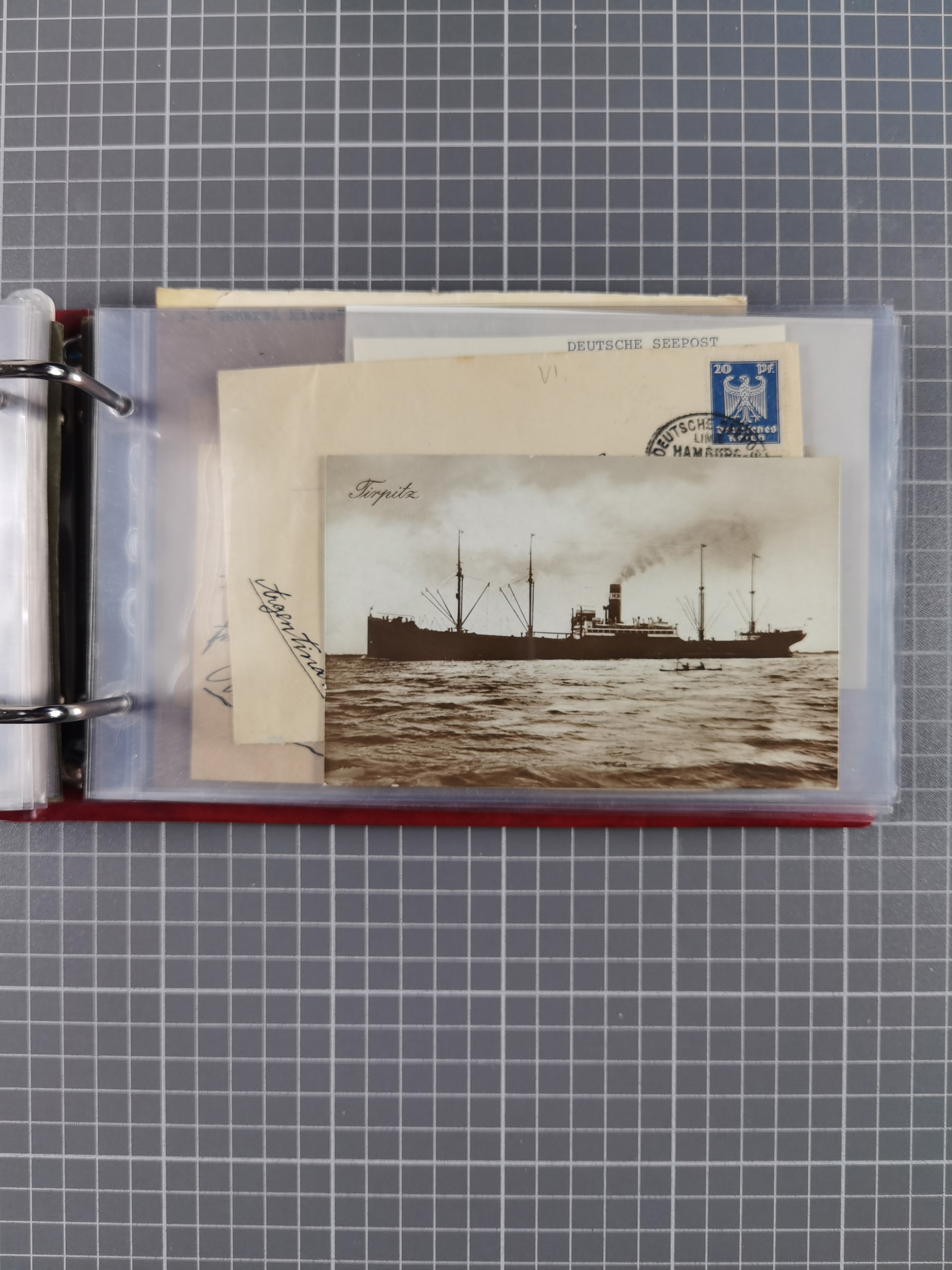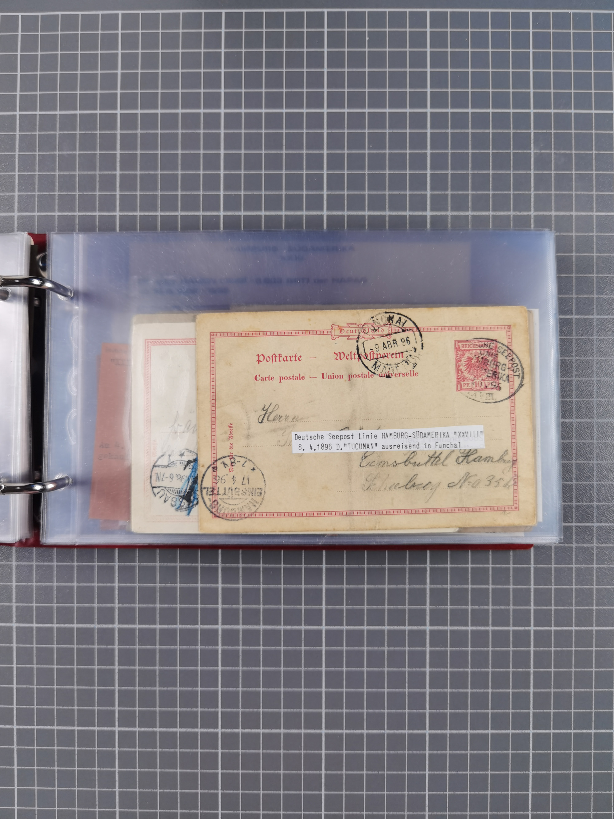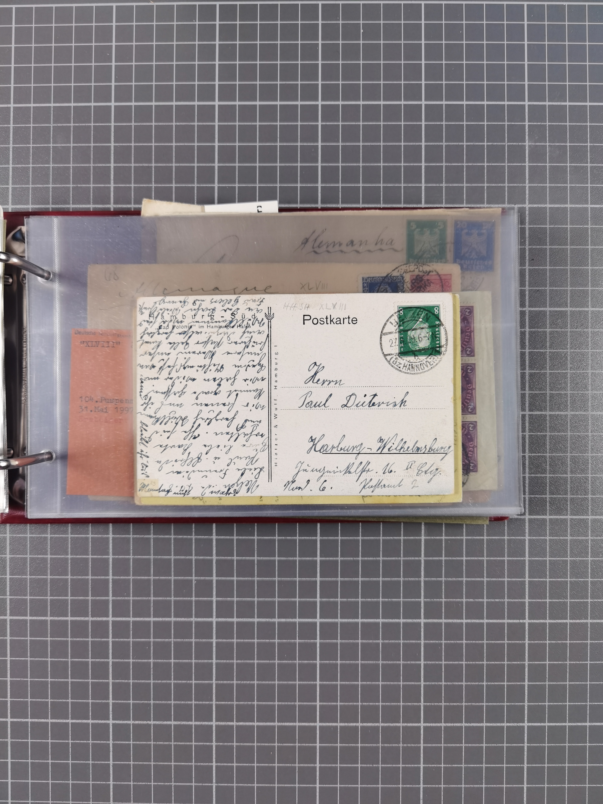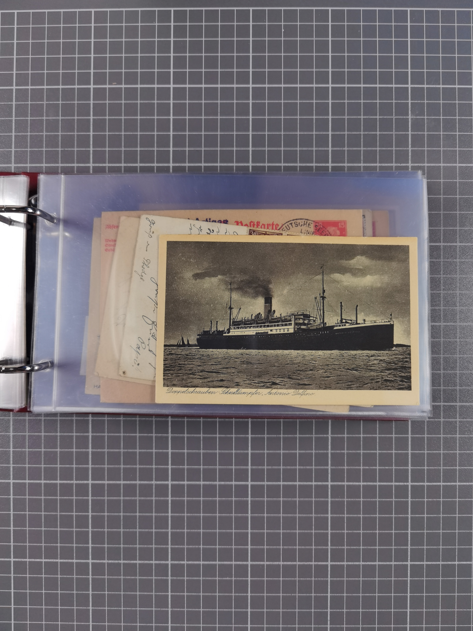 1826/1938, kleine Sammlung “Schiffspost aus Hamburg” mit ca. 35 Briefen, Karten und GSK, dabei u.a. Stempel “HAMBURG SCHIFFS BRIEF-POST” auf Faltbriefhülle 1826, Belege der Monte Oliva mit u.a. 40 Speisekarten und Belege D. Columbus. Dazu weitere Belege diverser Reisen mit u.a. London-Reise, Hamburg-Südamerika und Post der Monte Sarmiento mit über 40 Speisekarten sowie fünf Belege Gauturnfahrt 1935. Meist auf Albenblättern mit Beschriftung, ex Steinmeyer