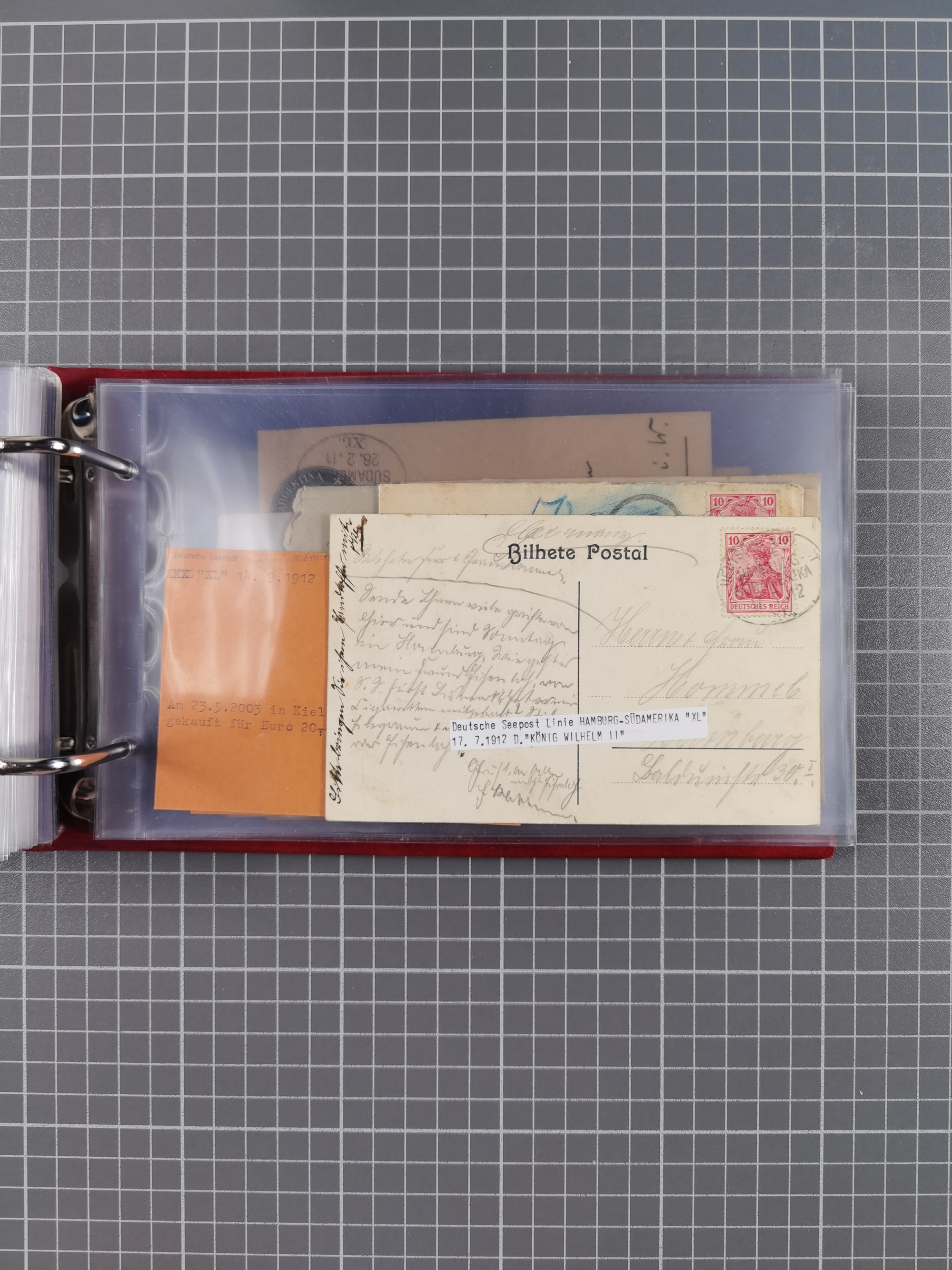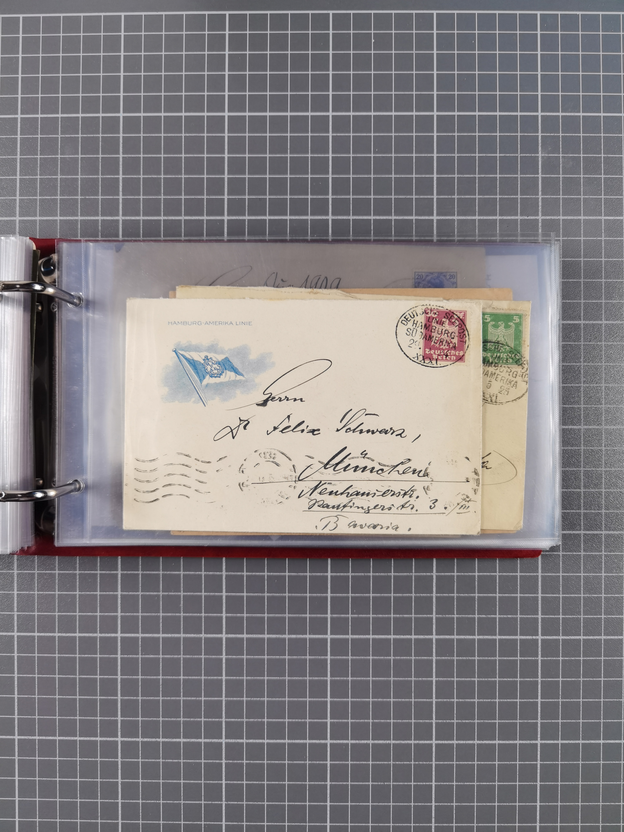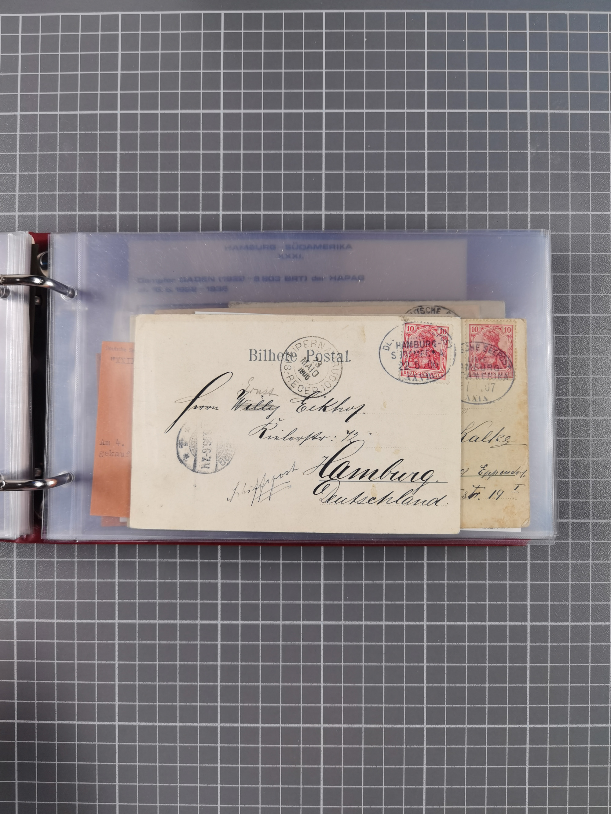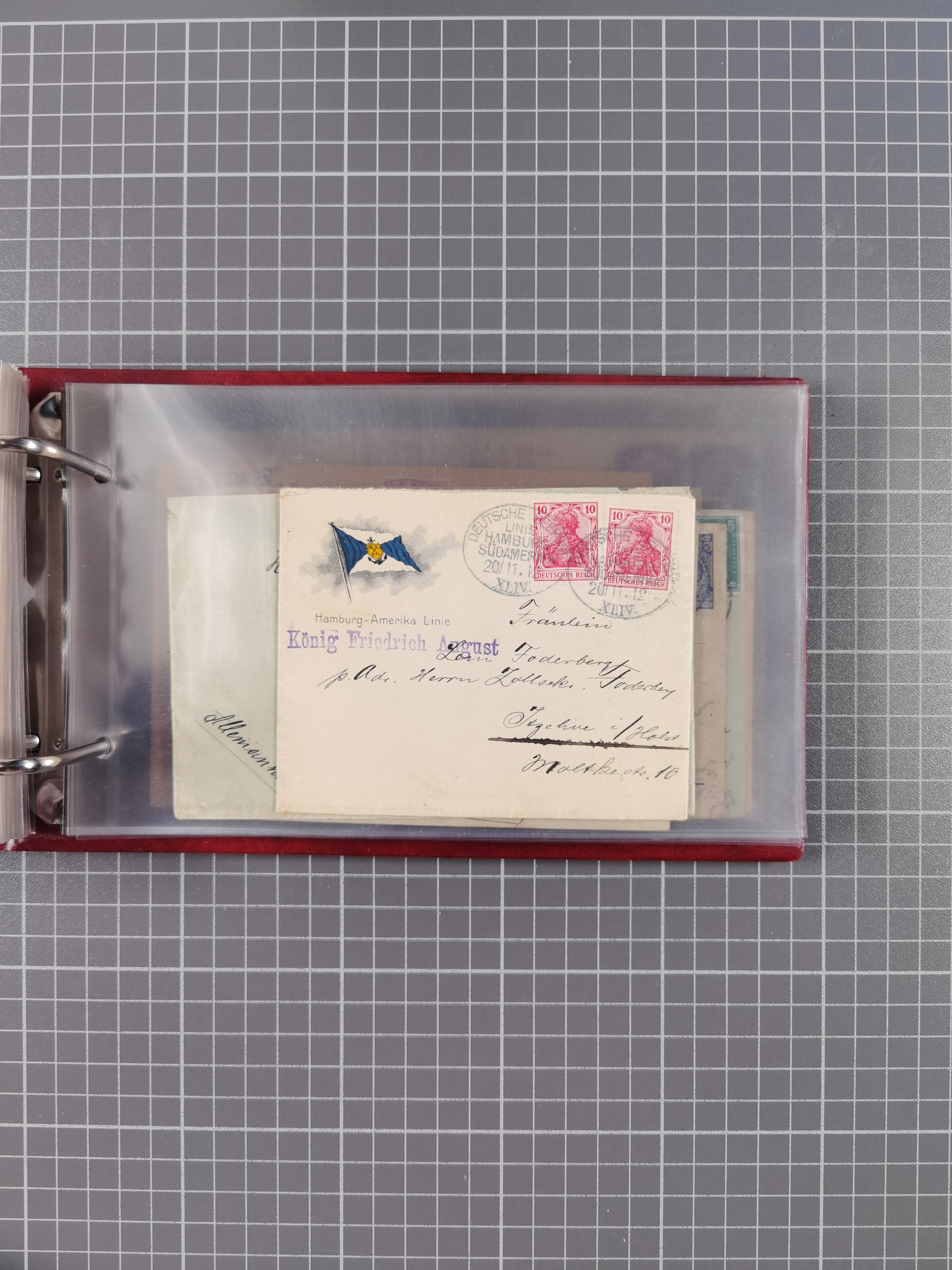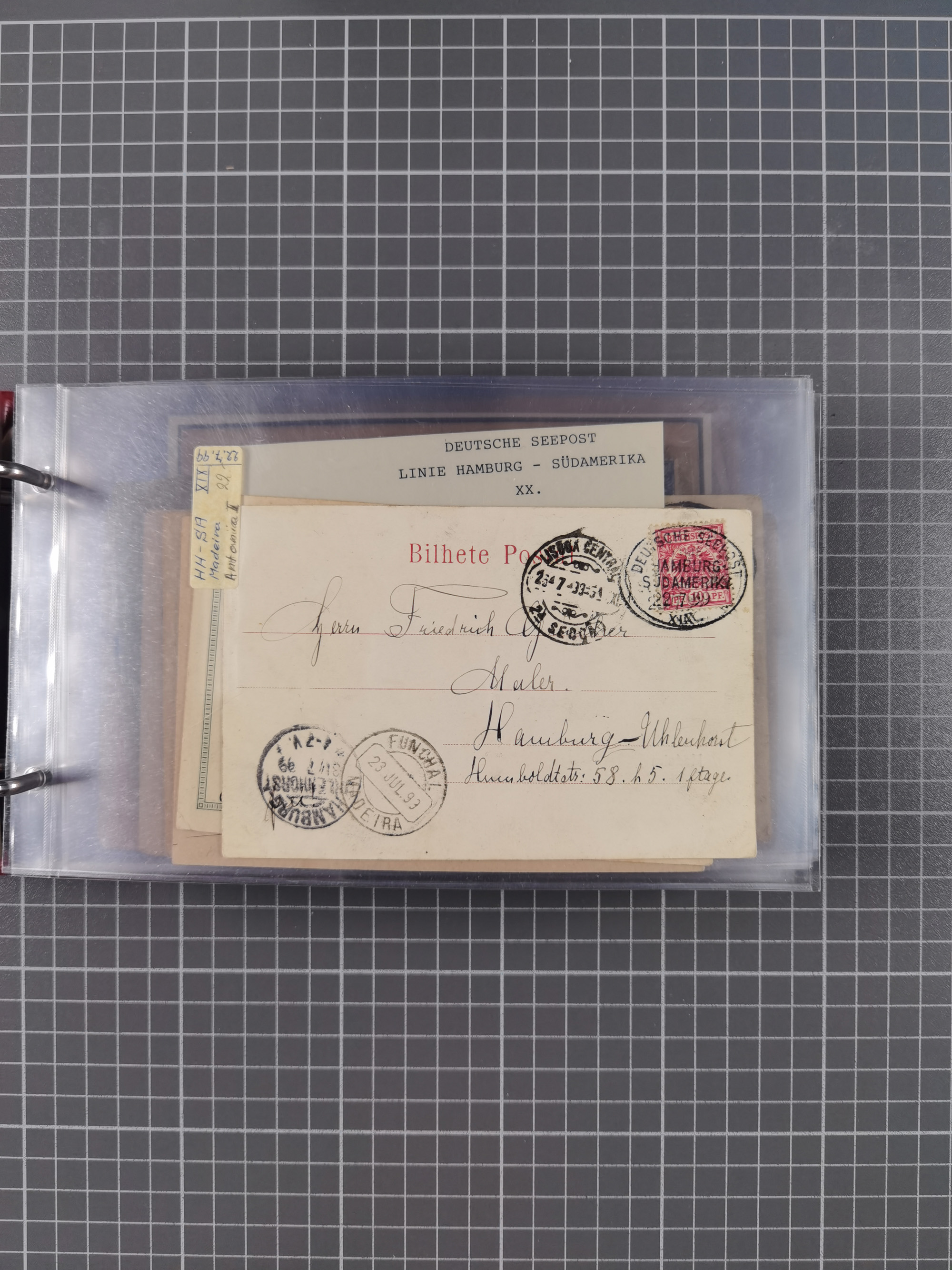1826/1938, kleine Sammlung “Schiffspost aus Hamburg” mit ca. 35 Briefen, Karten und GSK, dabei u.a. Stempel “HAMBURG SCHIFFS BRIEF-POST” auf Faltbriefhülle 1826, Belege der Monte Oliva mit u.a. 40 Speisekarten und Belege D. Columbus. Dazu weitere Belege diverser Reisen mit u.a. London-Reise, Hamburg-Südamerika und Post der Monte Sarmiento mit über 40 Speisekarten sowie fünf Belege Gauturnfahrt 1935. Meist auf Albenblättern mit Beschriftung, ex Steinmeyer