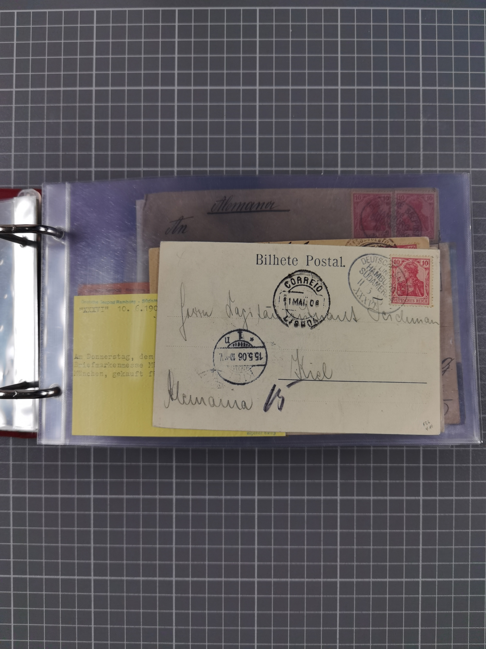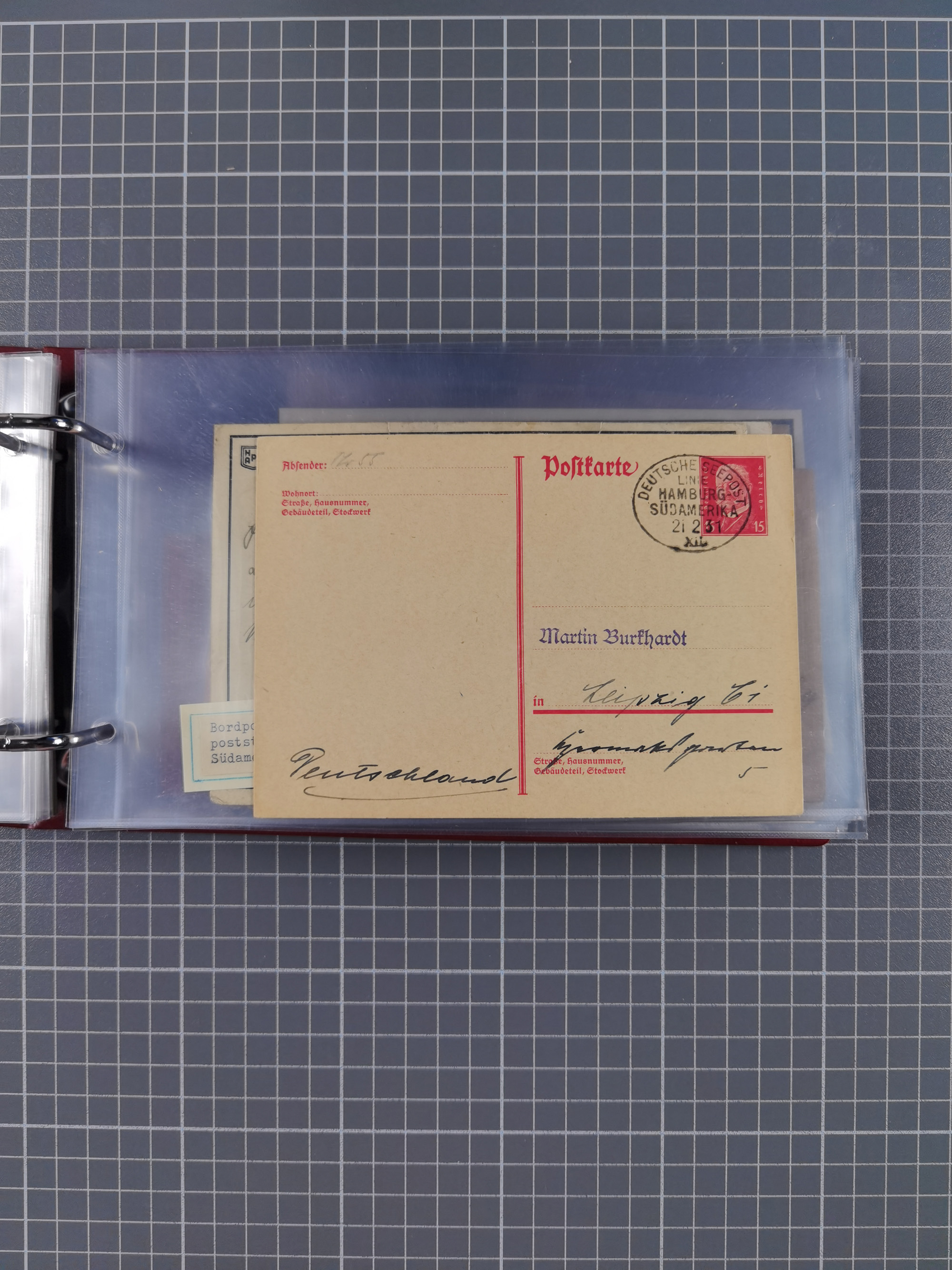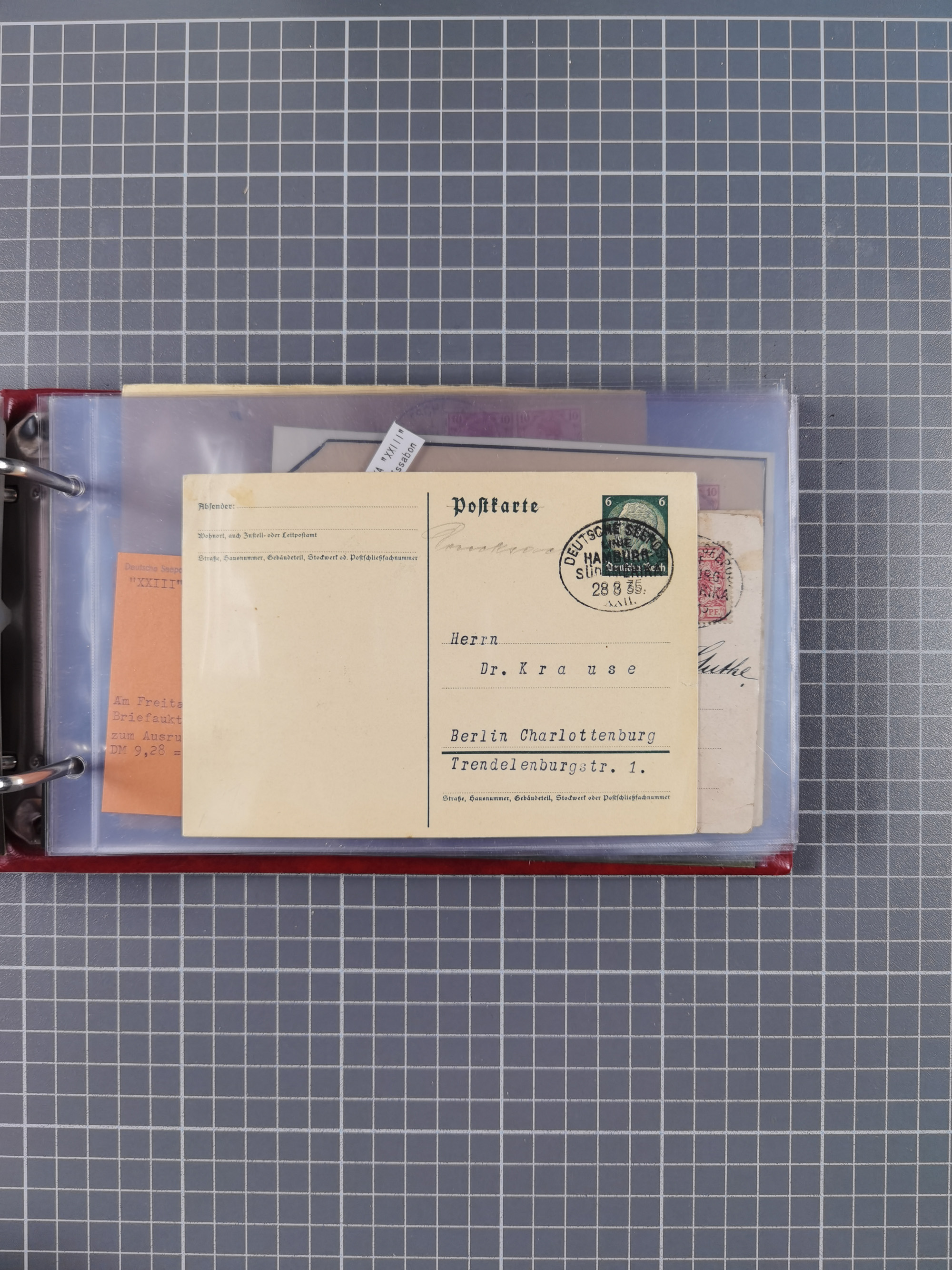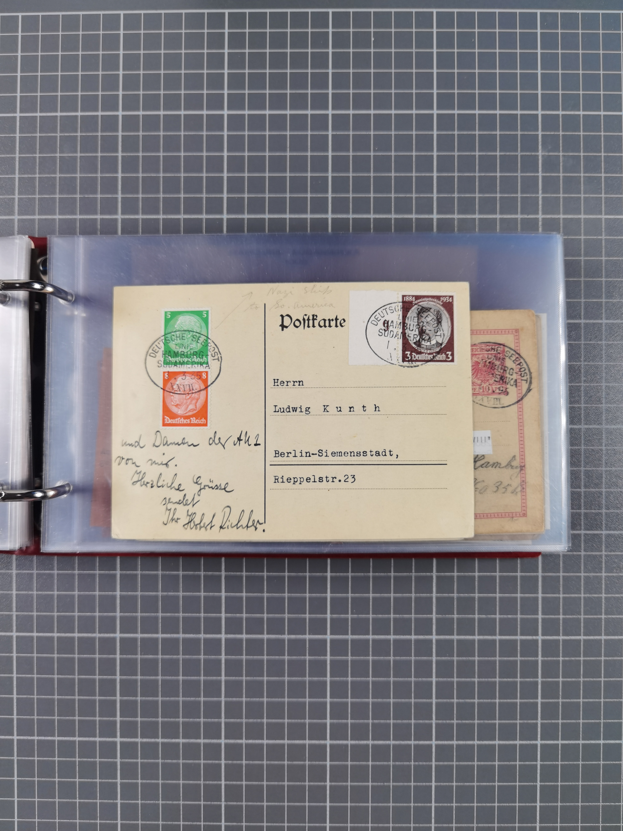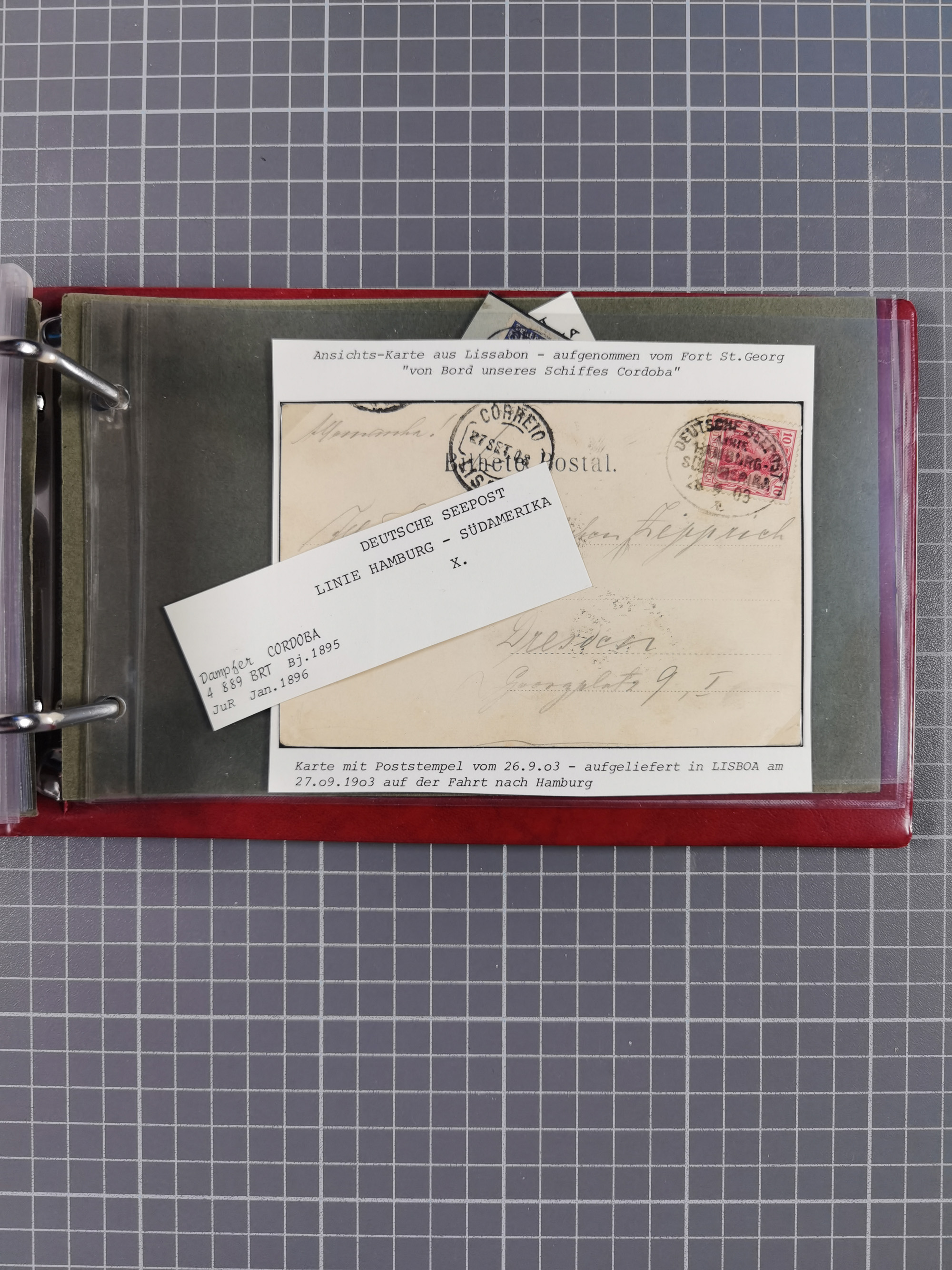 1826/1938, kleine Sammlung “Schiffspost aus Hamburg” mit ca. 35 Briefen, Karten und GSK, dabei u.a. Stempel “HAMBURG SCHIFFS BRIEF-POST” auf Faltbriefhülle 1826, Belege der Monte Oliva mit u.a. 40 Speisekarten und Belege D. Columbus. Dazu weitere Belege diverser Reisen mit u.a. London-Reise, Hamburg-Südamerika und Post der Monte Sarmiento mit über 40 Speisekarten sowie fünf Belege Gauturnfahrt 1935. Meist auf Albenblättern mit Beschriftung, ex Steinmeyer