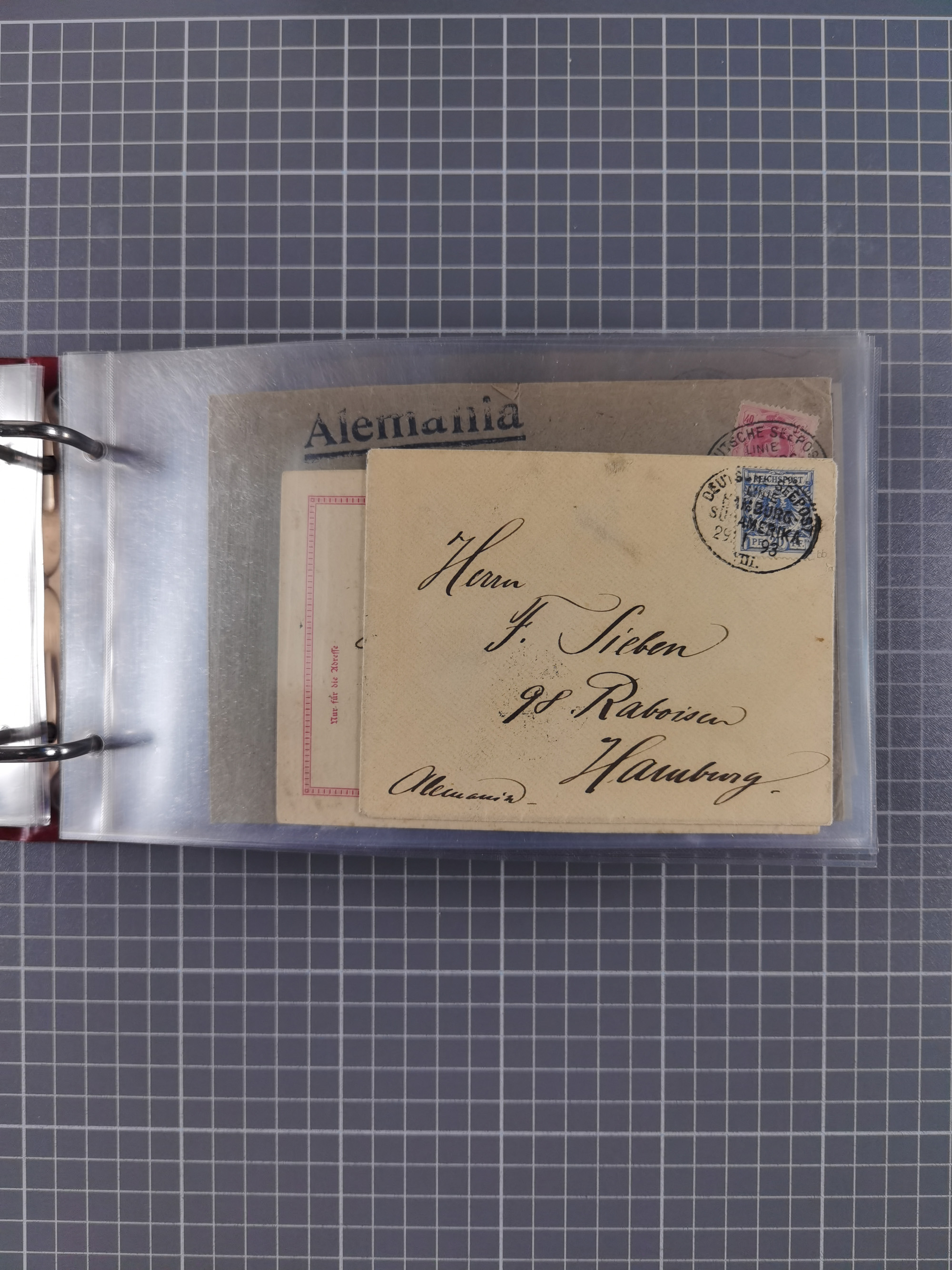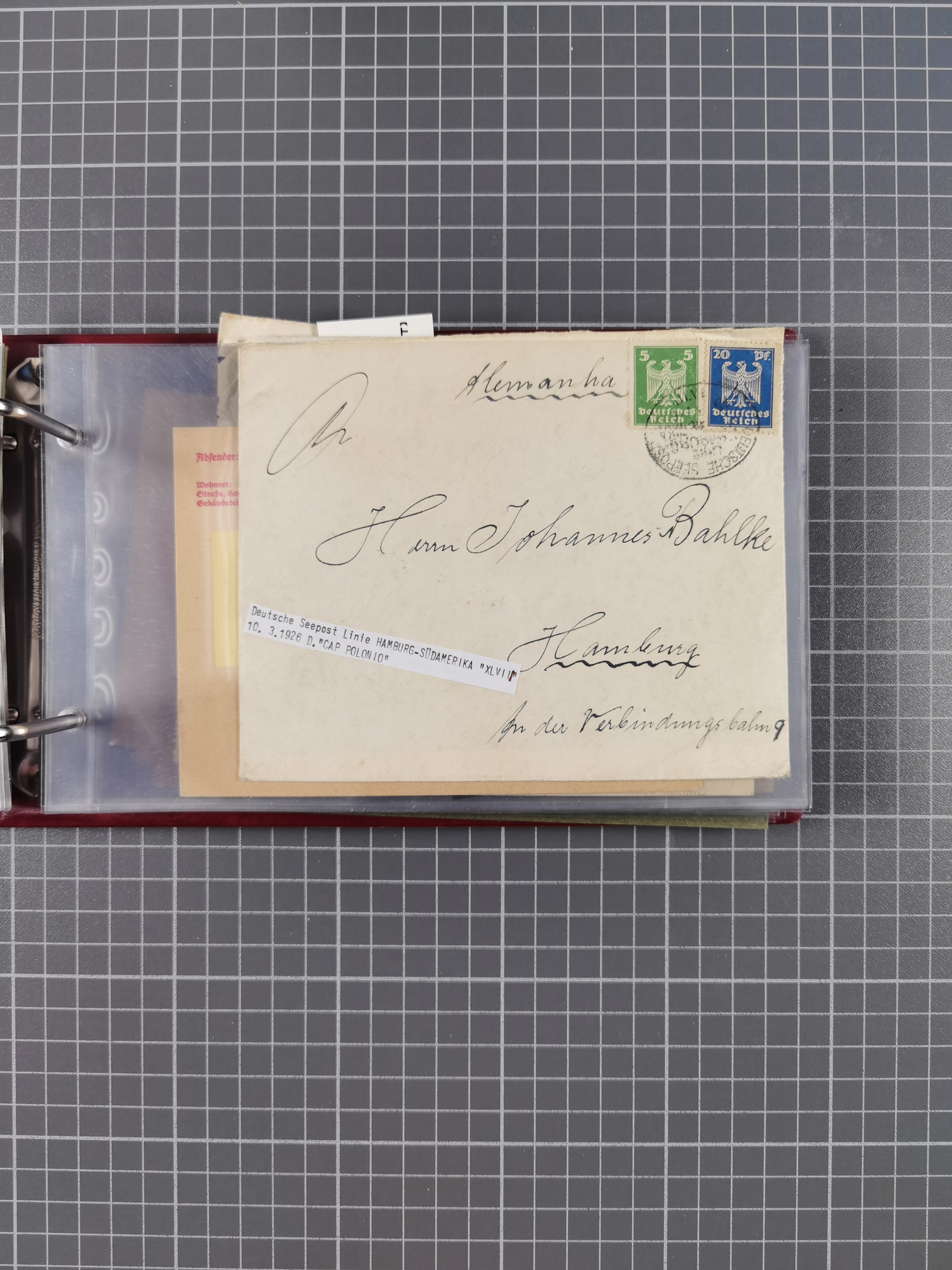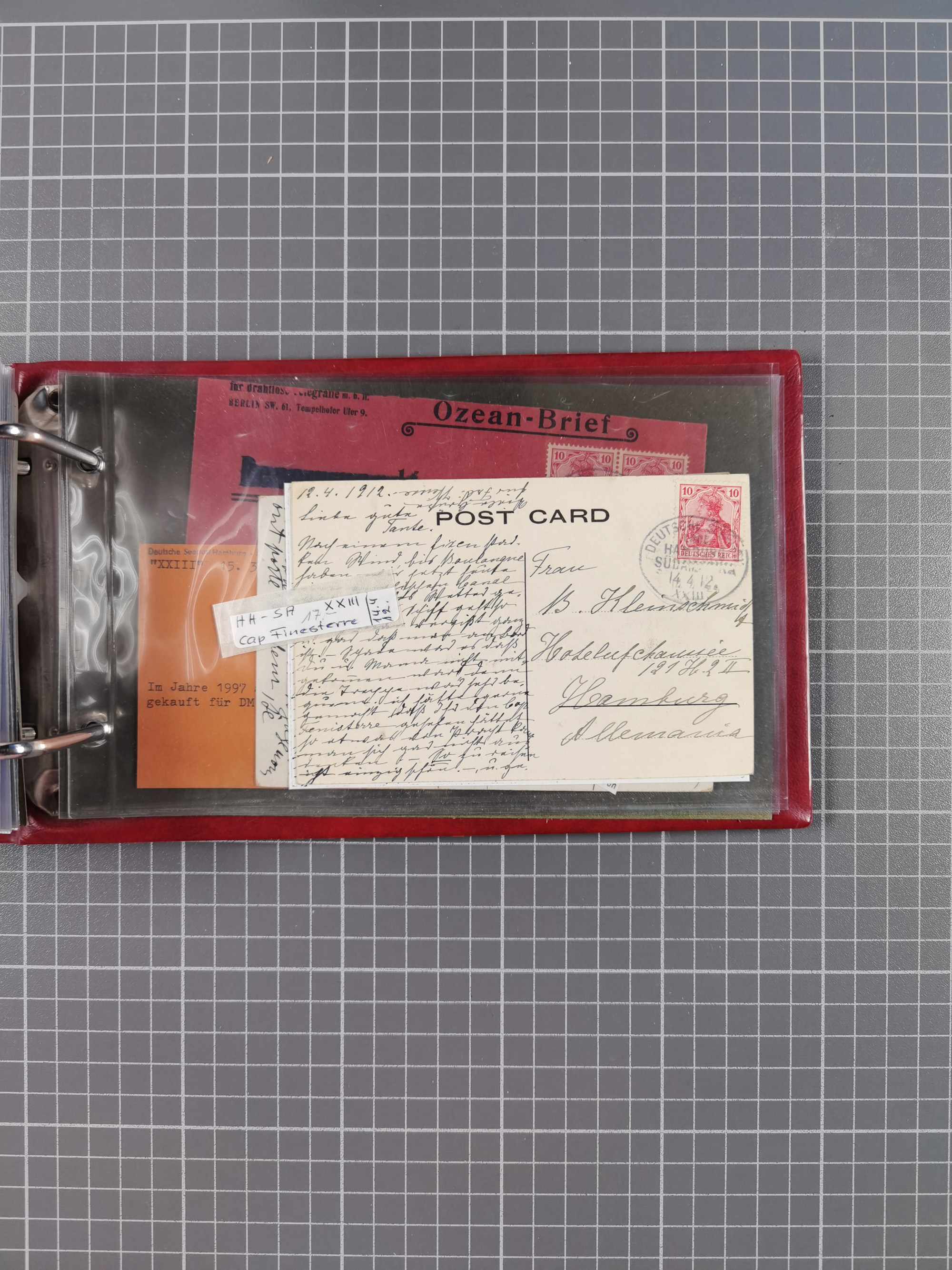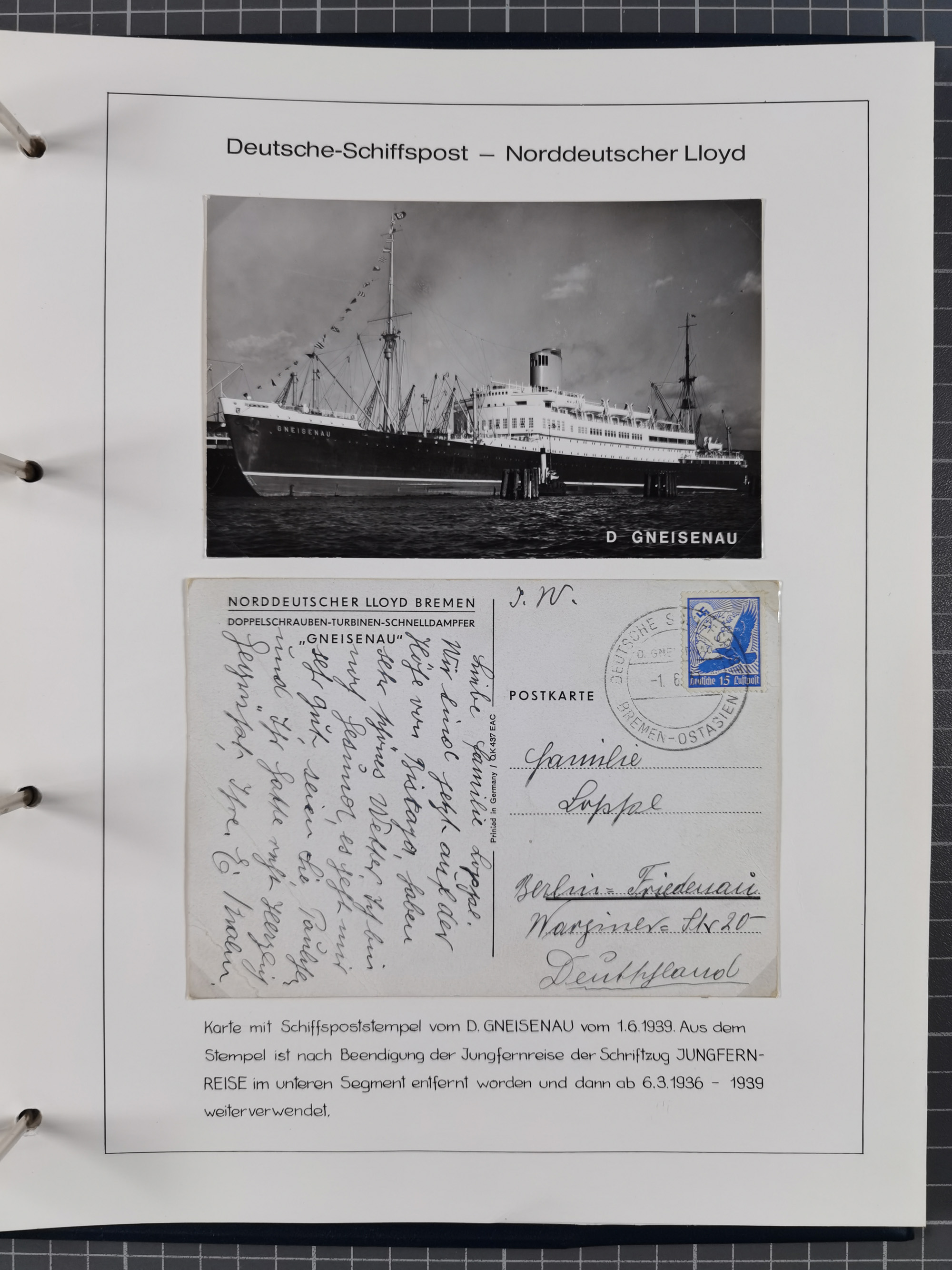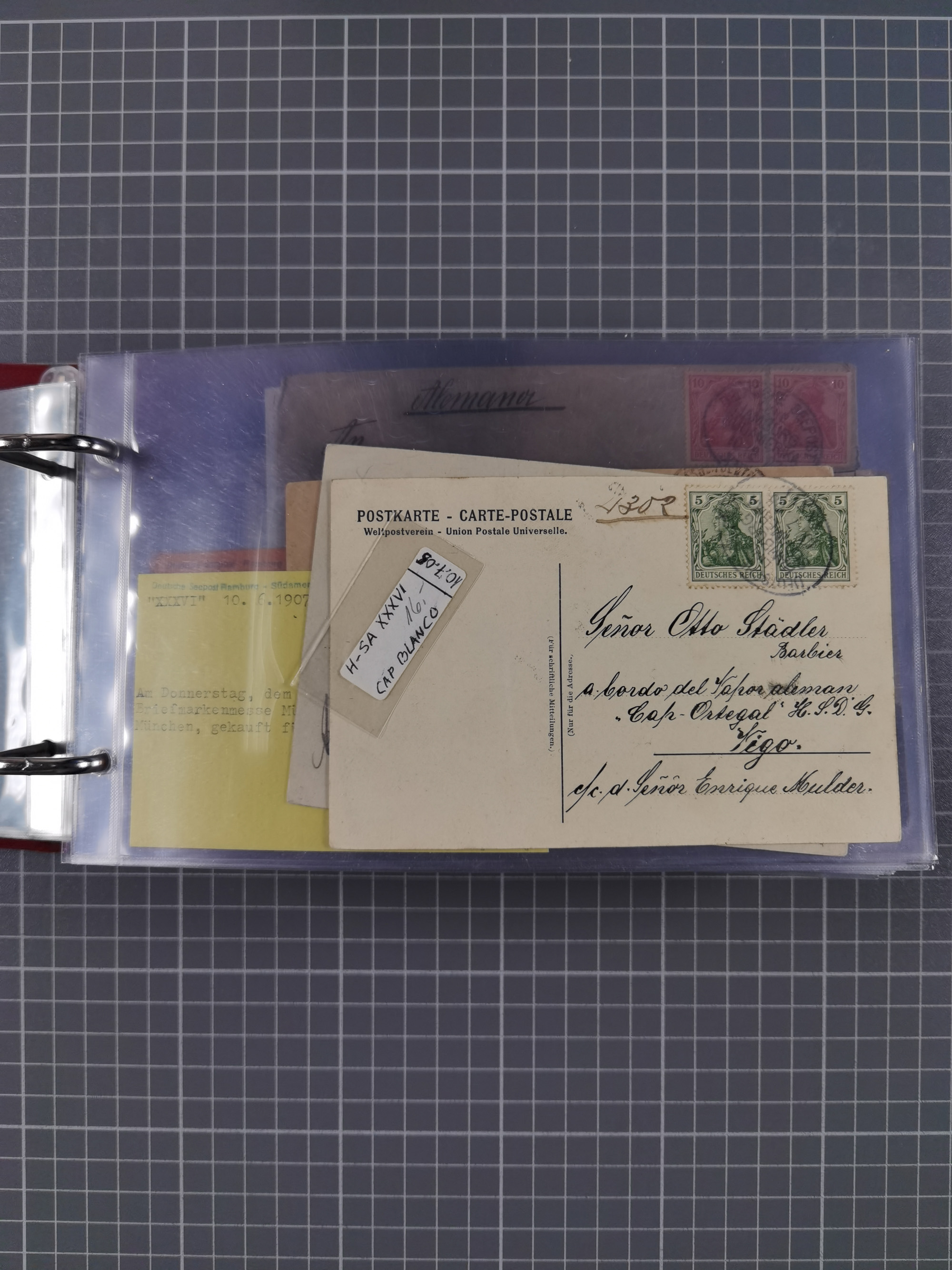 1826/1938, kleine Sammlung “Schiffspost aus Hamburg” mit ca. 35 Briefen, Karten und GSK, dabei u.a. Stempel “HAMBURG SCHIFFS BRIEF-POST” auf Faltbriefhülle 1826, Belege der Monte Oliva mit u.a. 40 Speisekarten und Belege D. Columbus. Dazu weitere Belege diverser Reisen mit u.a. London-Reise, Hamburg-Südamerika und Post der Monte Sarmiento mit über 40 Speisekarten sowie fünf Belege Gauturnfahrt 1935. Meist auf Albenblättern mit Beschriftung, ex Steinmeyer