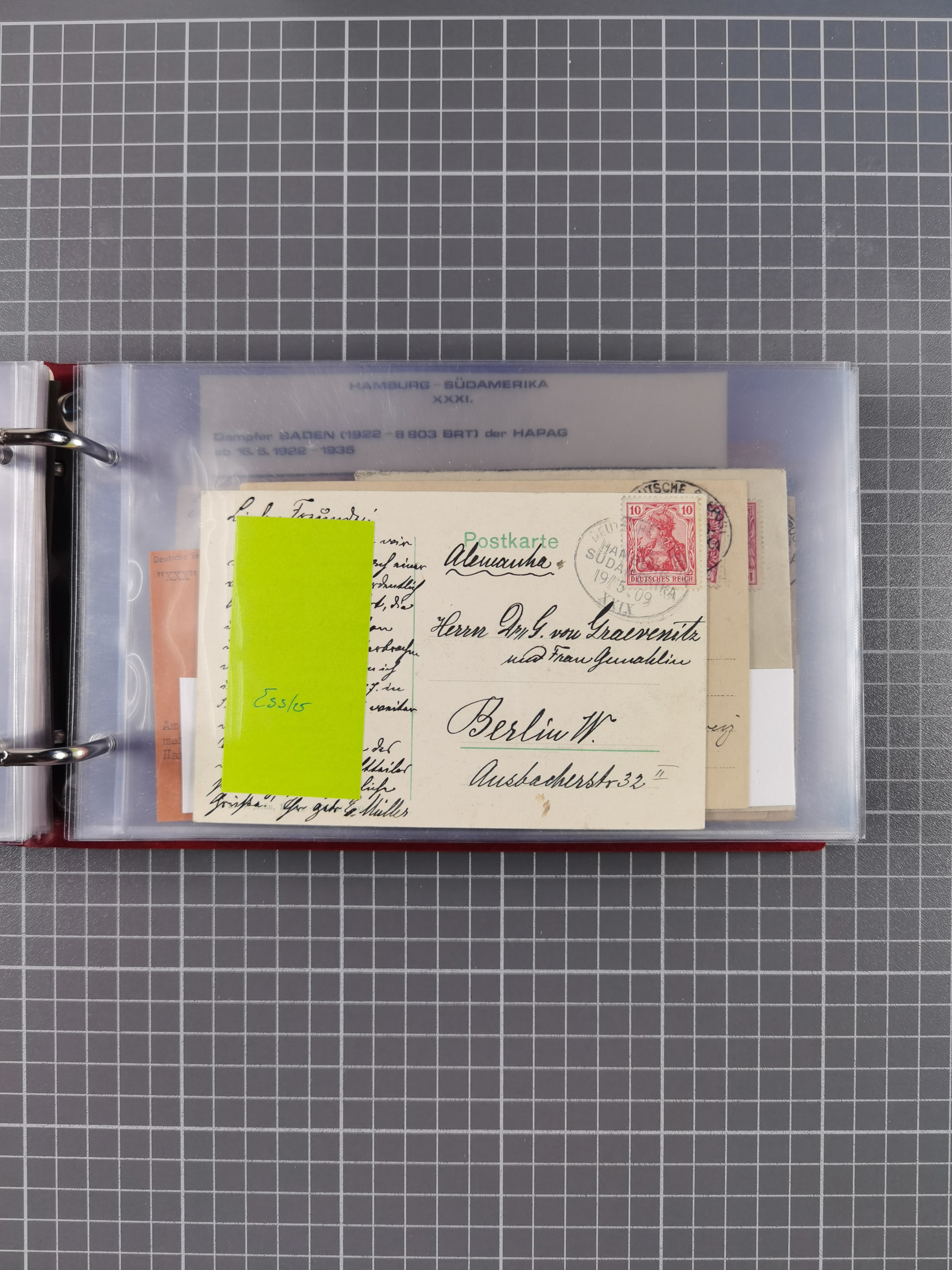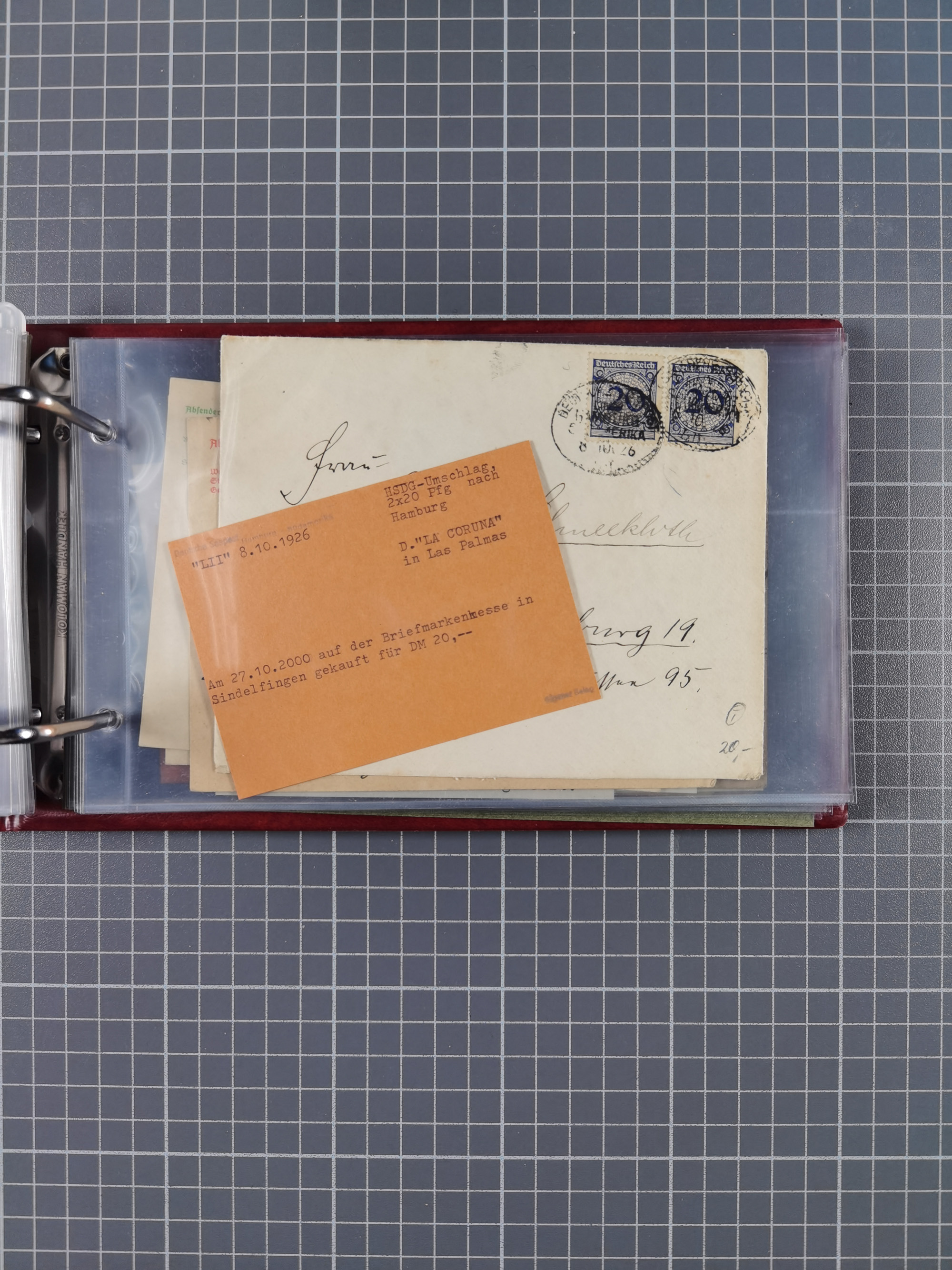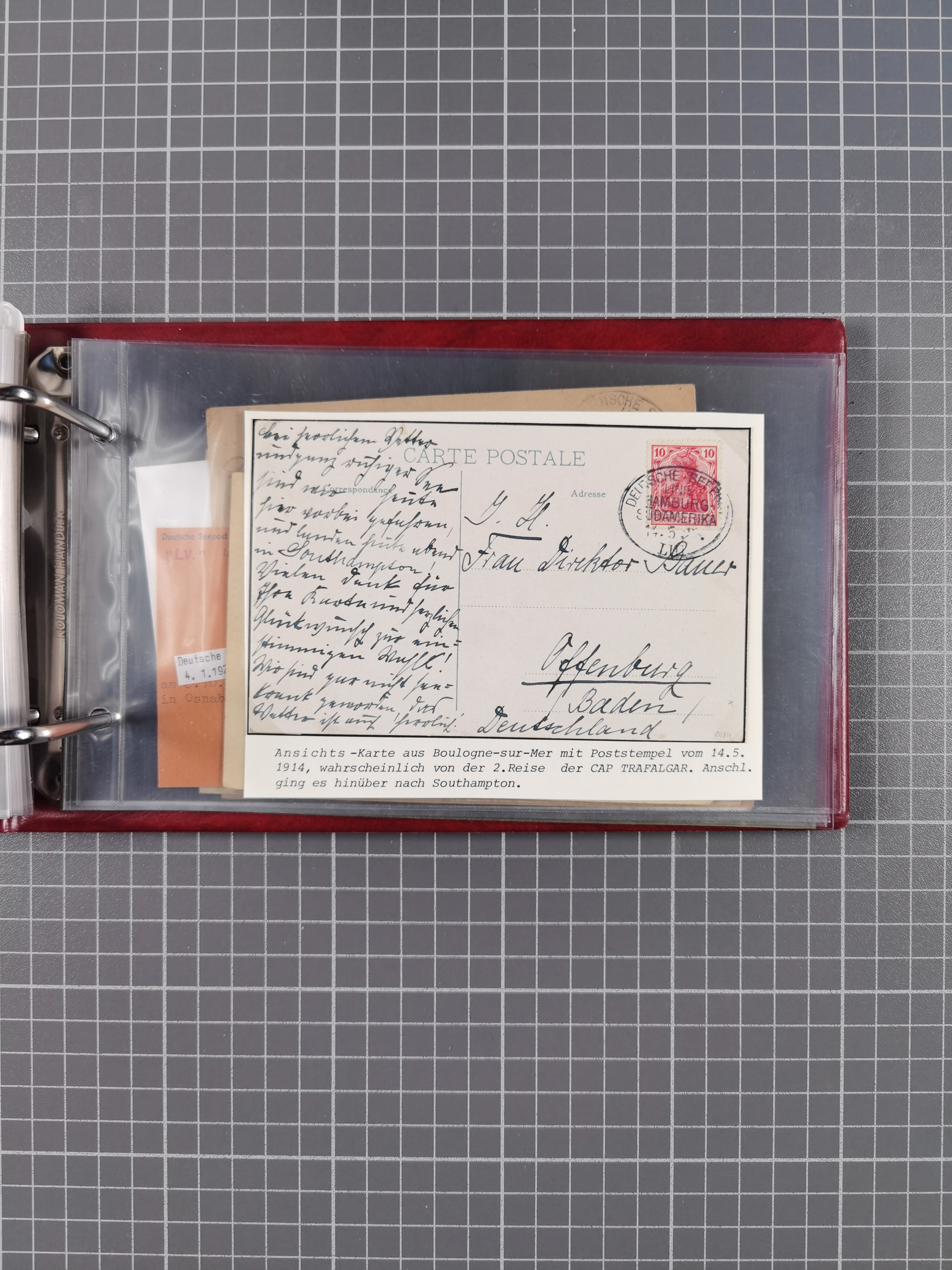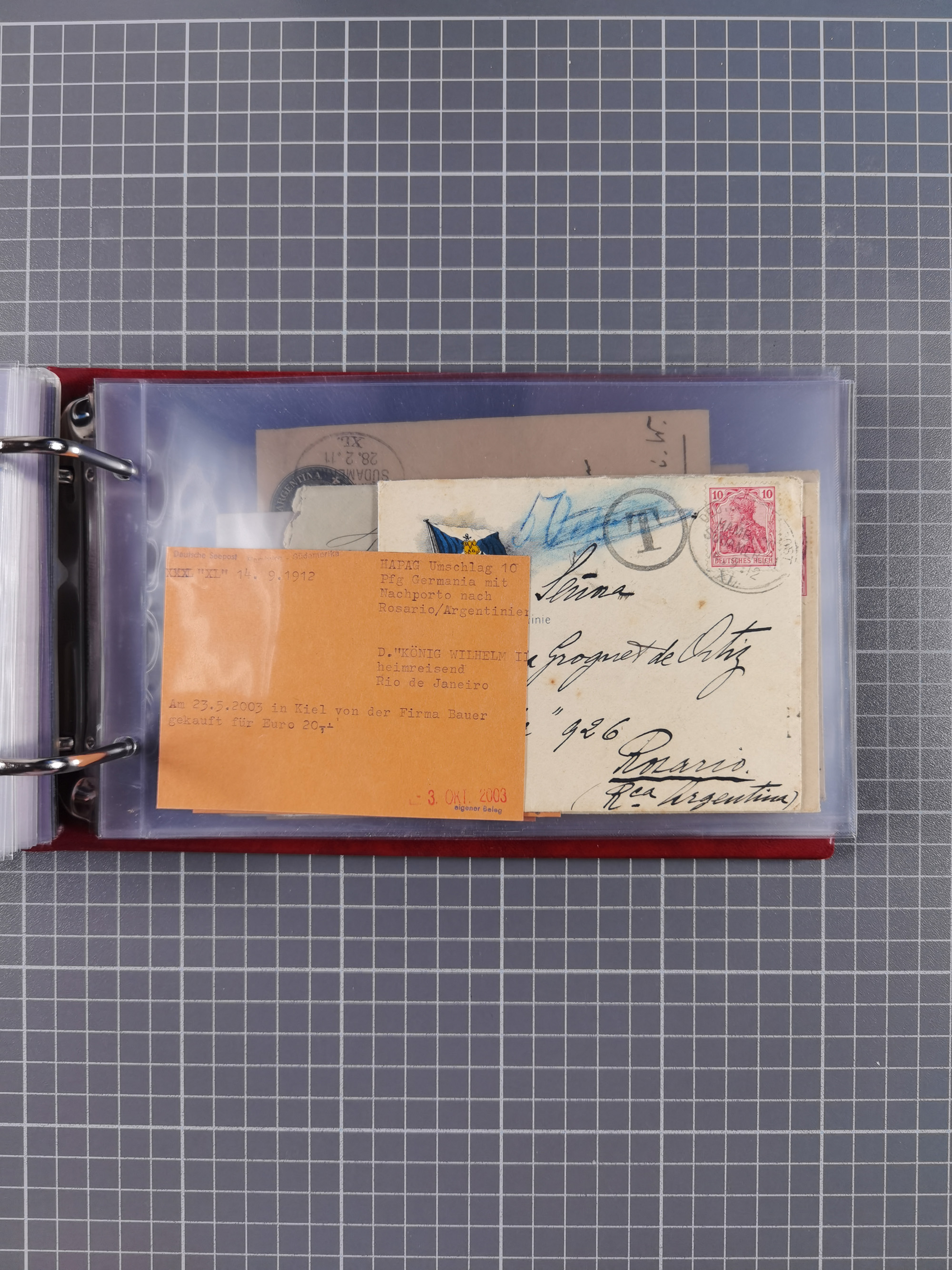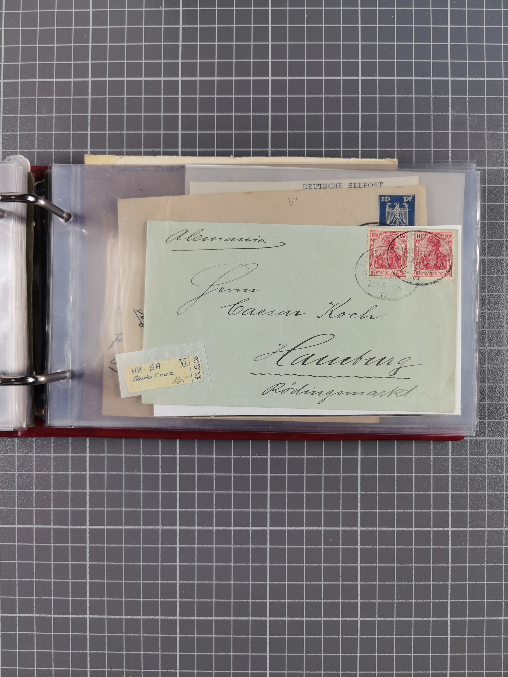 1826/1938, kleine Sammlung “Schiffspost aus Hamburg” mit ca. 35 Briefen, Karten und GSK, dabei u.a. Stempel “HAMBURG SCHIFFS BRIEF-POST” auf Faltbriefhülle 1826, Belege der Monte Oliva mit u.a. 40 Speisekarten und Belege D. Columbus. Dazu weitere Belege diverser Reisen mit u.a. London-Reise, Hamburg-Südamerika und Post der Monte Sarmiento mit über 40 Speisekarten sowie fünf Belege Gauturnfahrt 1935. Meist auf Albenblättern mit Beschriftung, ex Steinmeyer