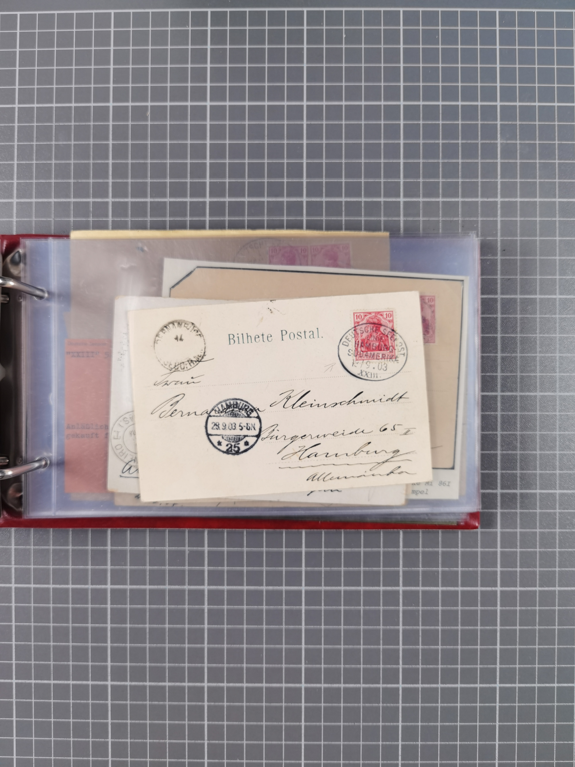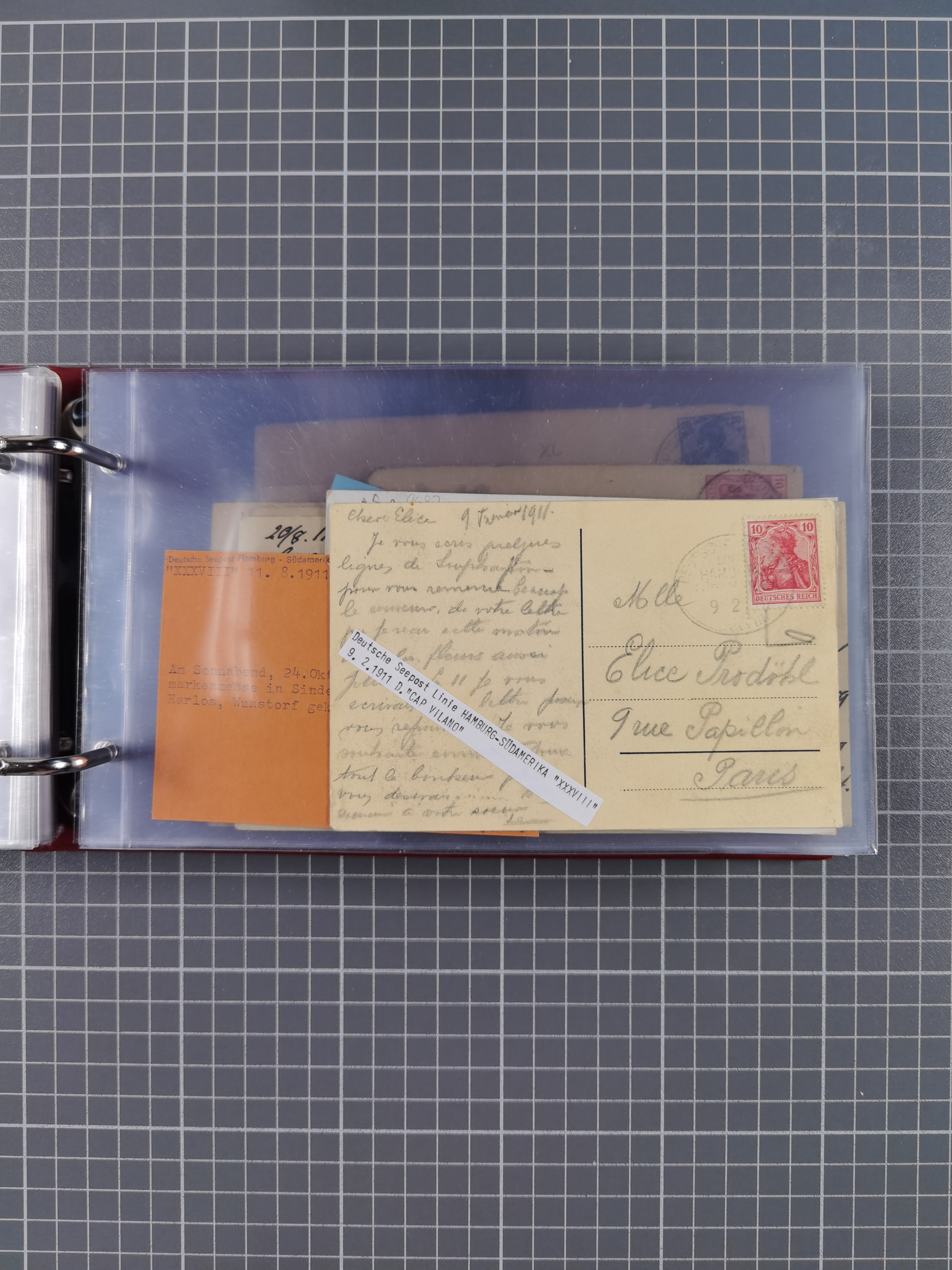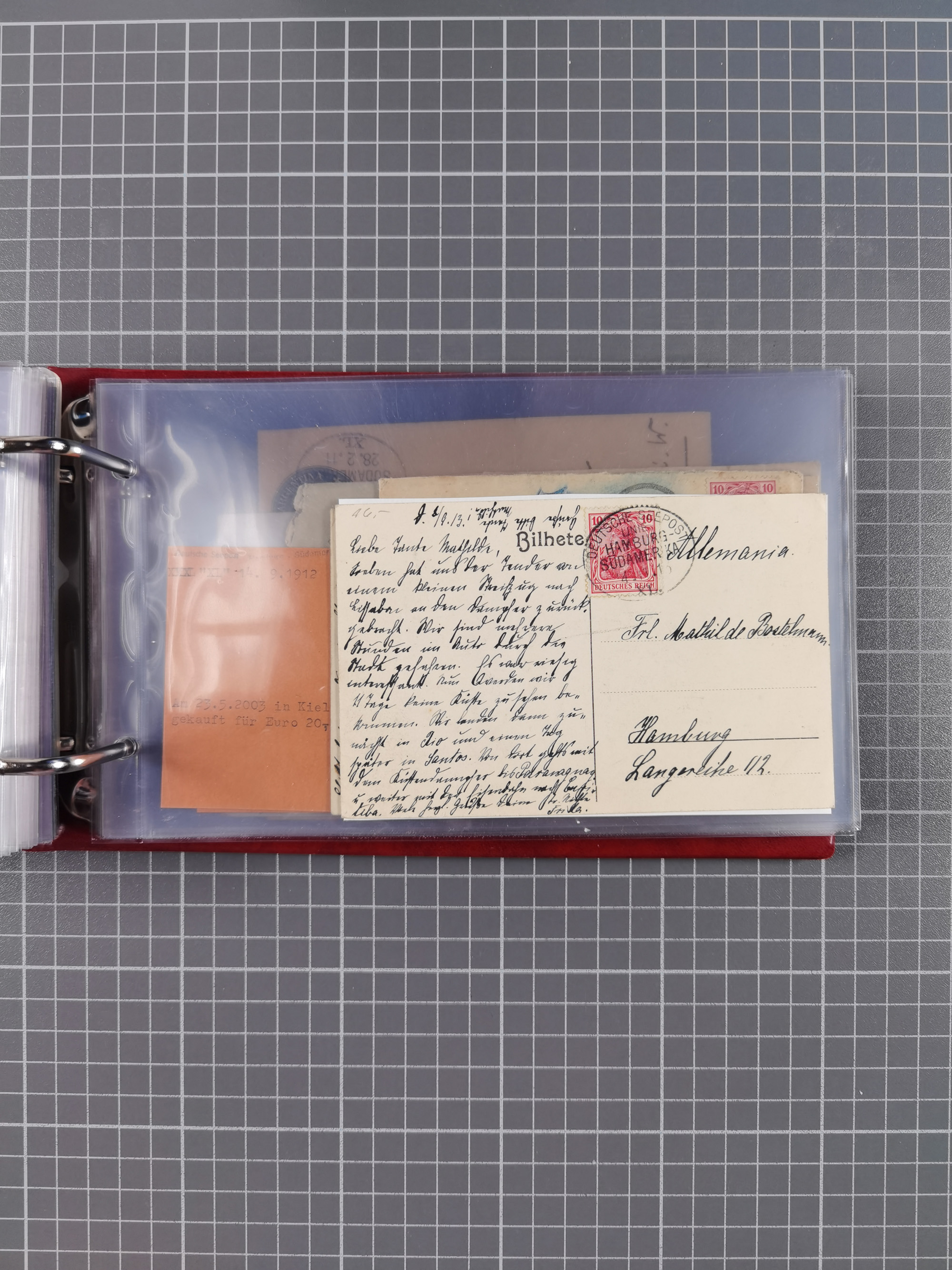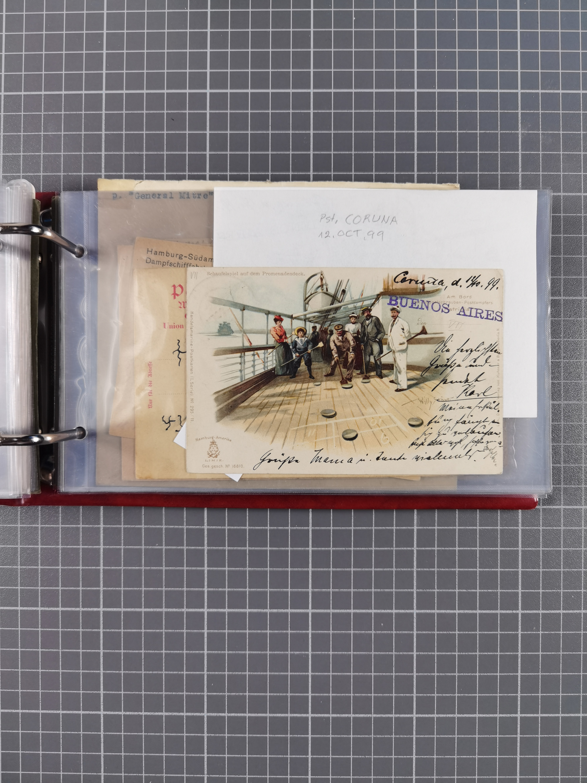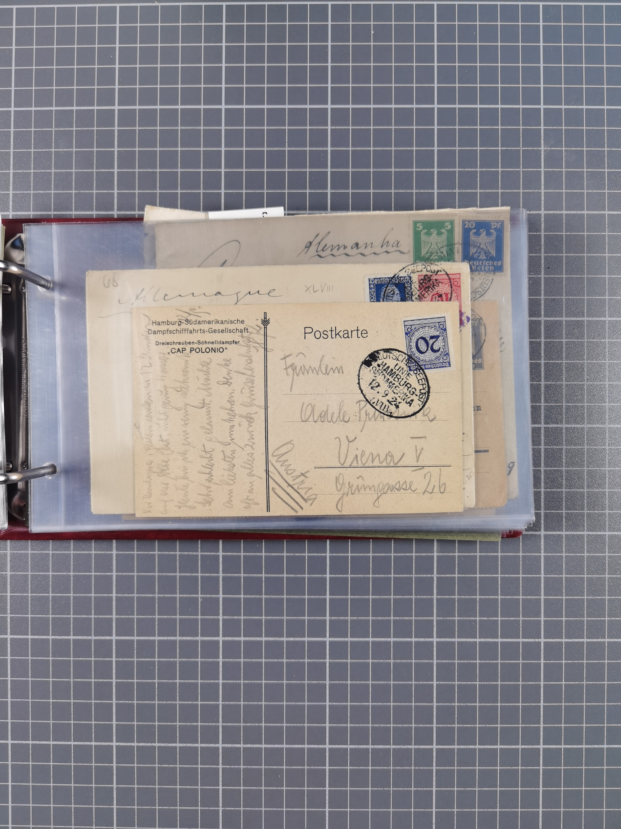 1826/1938, kleine Sammlung “Schiffspost aus Hamburg” mit ca. 35 Briefen, Karten und GSK, dabei u.a. Stempel “HAMBURG SCHIFFS BRIEF-POST” auf Faltbriefhülle 1826, Belege der Monte Oliva mit u.a. 40 Speisekarten und Belege D. Columbus. Dazu weitere Belege diverser Reisen mit u.a. London-Reise, Hamburg-Südamerika und Post der Monte Sarmiento mit über 40 Speisekarten sowie fünf Belege Gauturnfahrt 1935. Meist auf Albenblättern mit Beschriftung, ex Steinmeyer