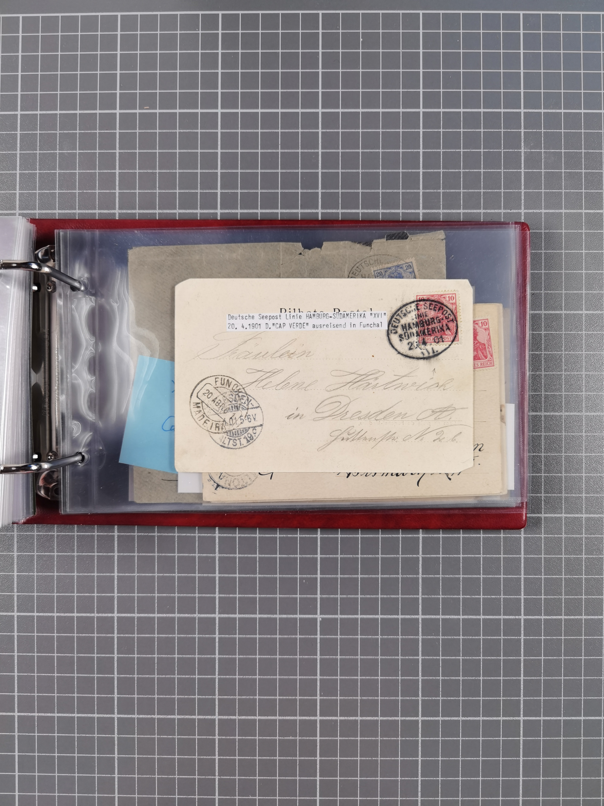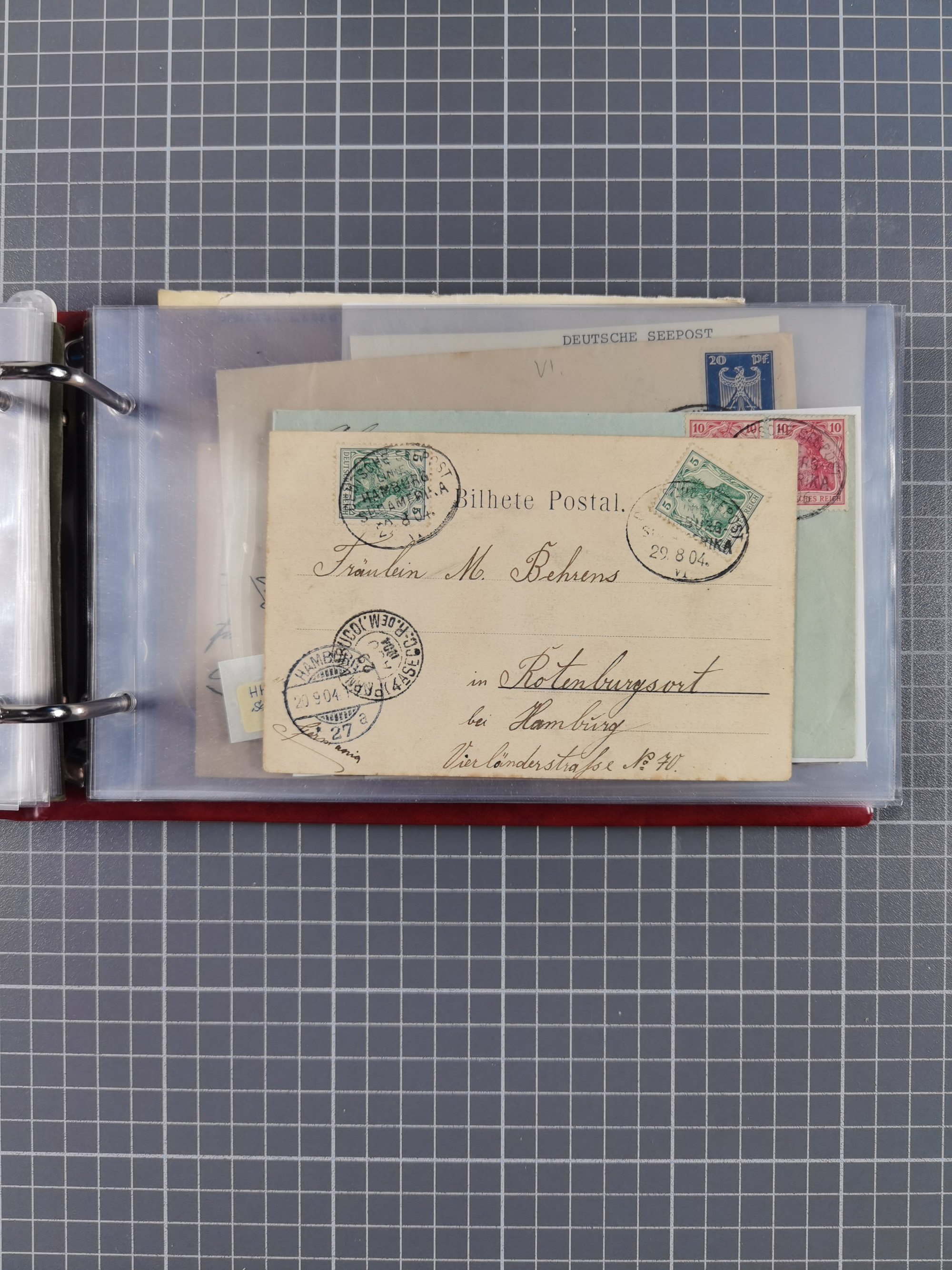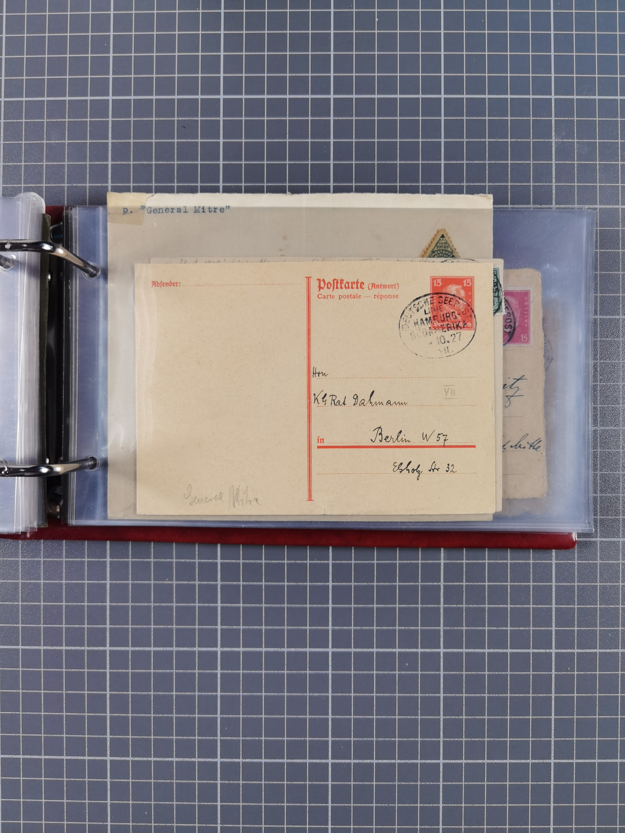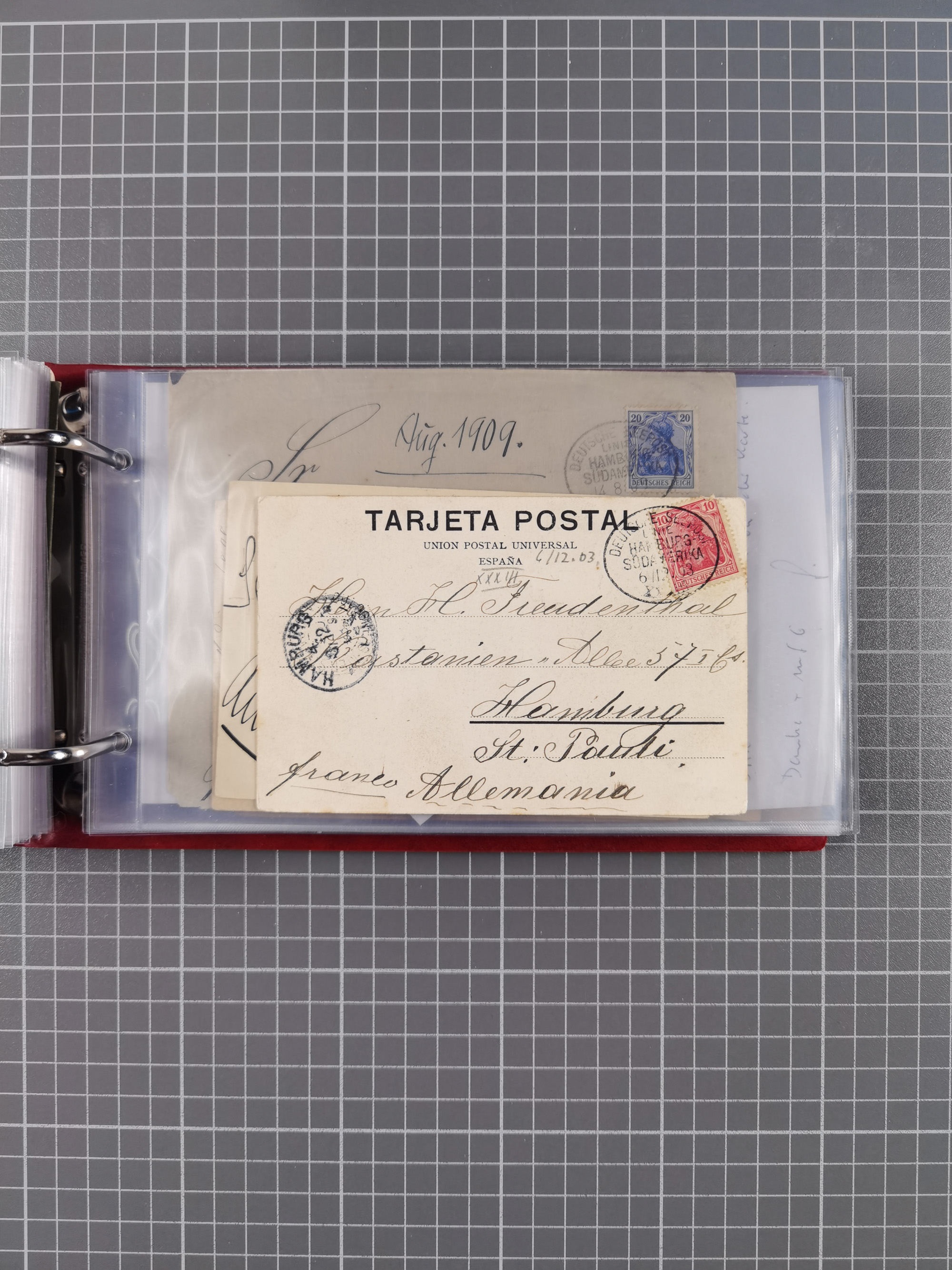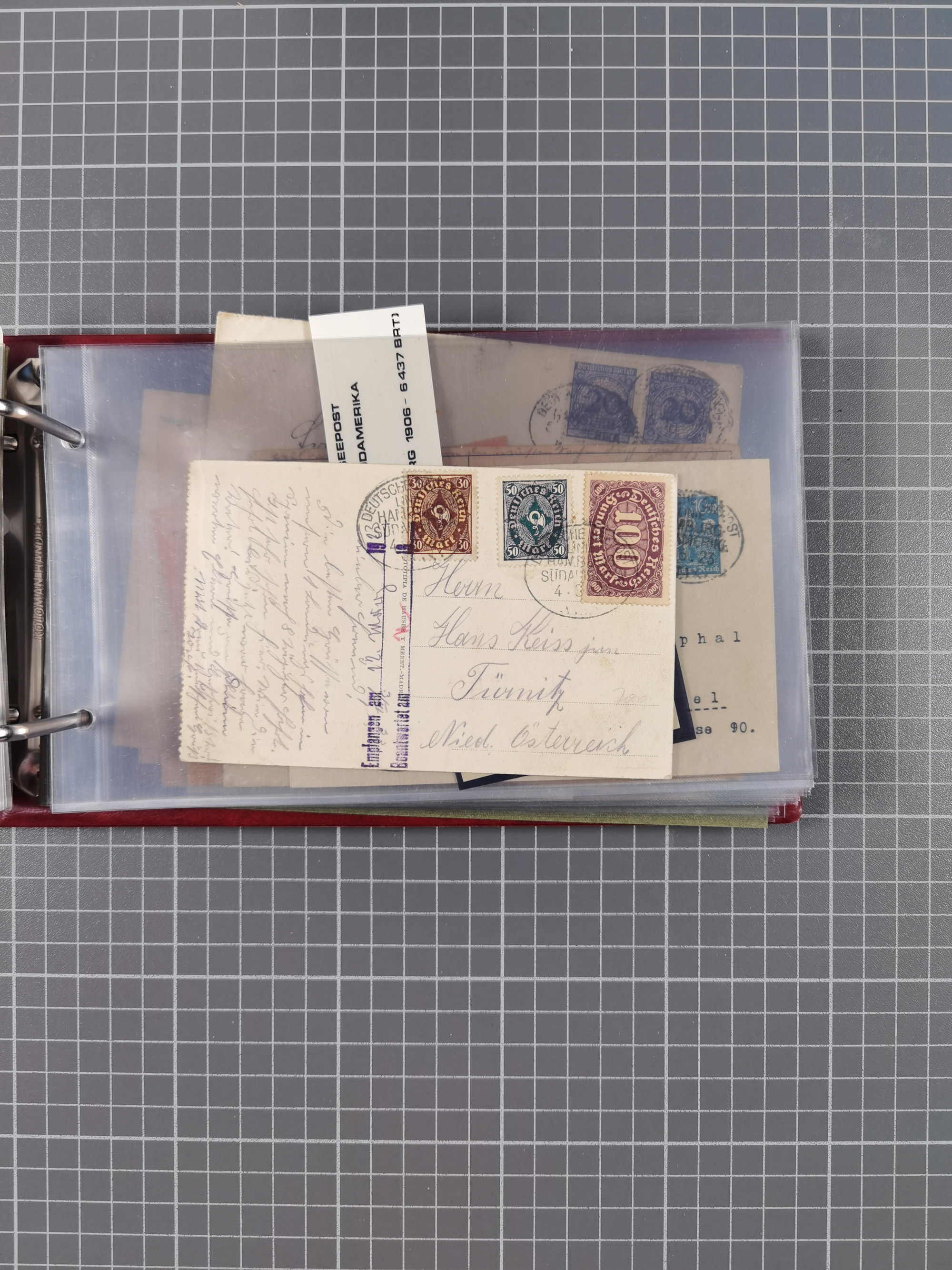 1826/1938, kleine Sammlung “Schiffspost aus Hamburg” mit ca. 35 Briefen, Karten und GSK, dabei u.a. Stempel “HAMBURG SCHIFFS BRIEF-POST” auf Faltbriefhülle 1826, Belege der Monte Oliva mit u.a. 40 Speisekarten und Belege D. Columbus. Dazu weitere Belege diverser Reisen mit u.a. London-Reise, Hamburg-Südamerika und Post der Monte Sarmiento mit über 40 Speisekarten sowie fünf Belege Gauturnfahrt 1935. Meist auf Albenblättern mit Beschriftung, ex Steinmeyer
