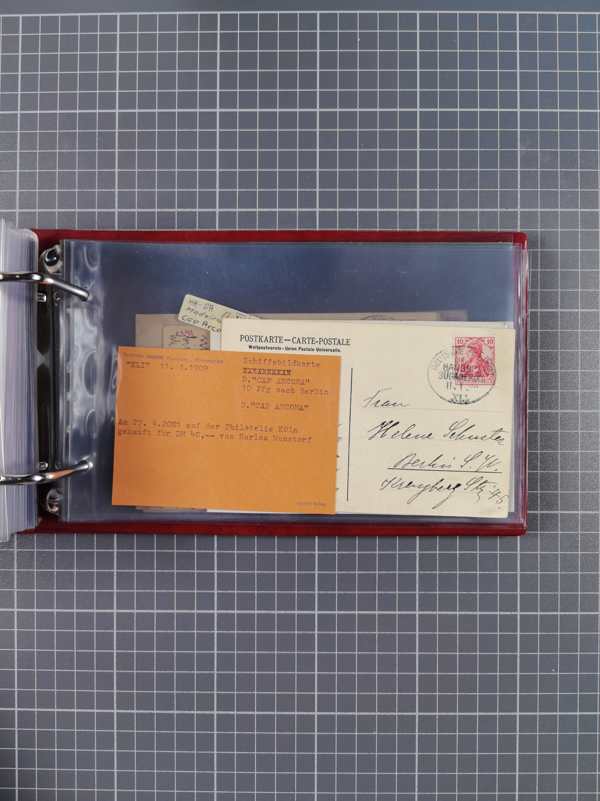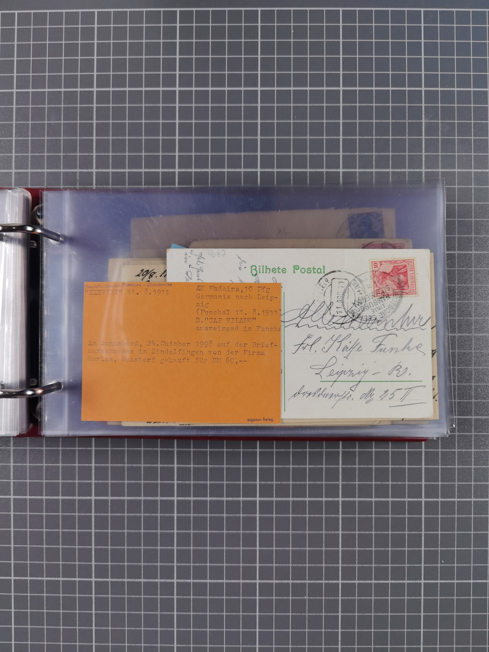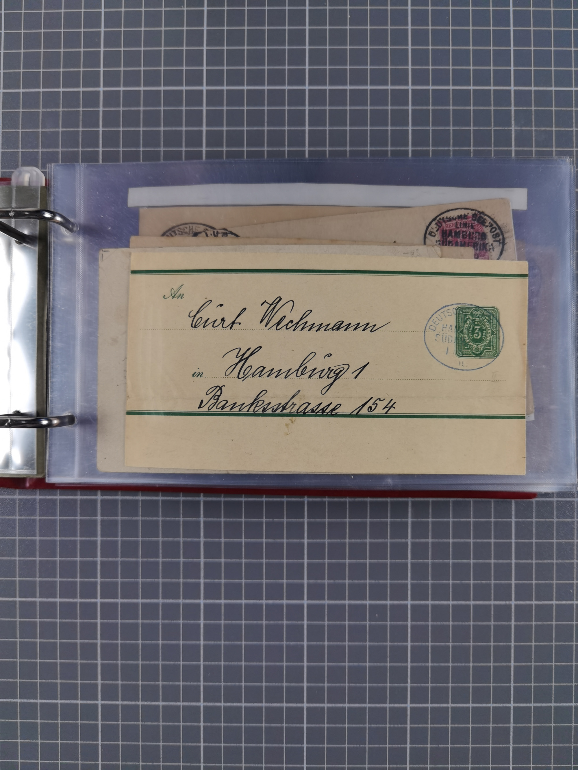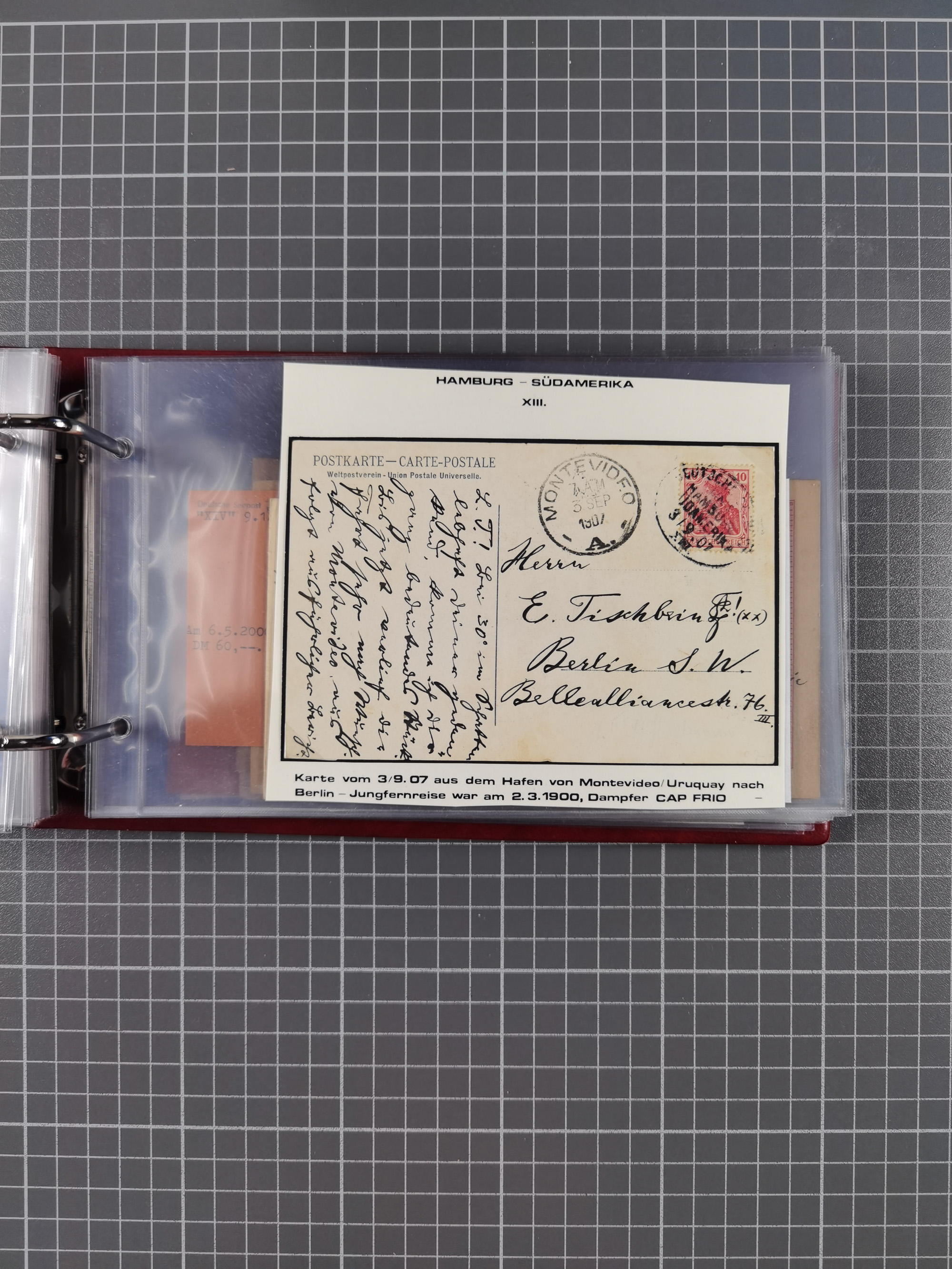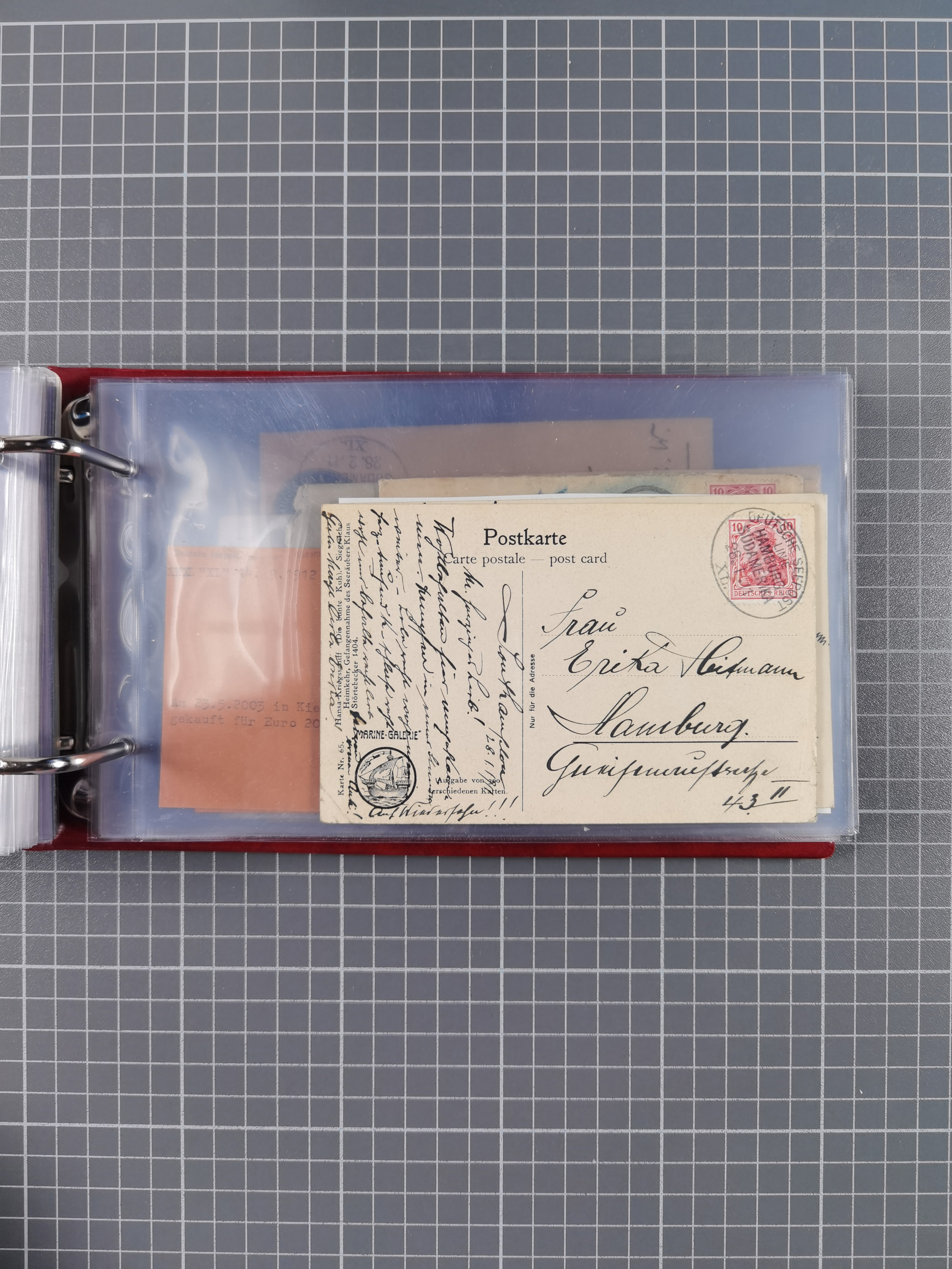 1826/1938, kleine Sammlung “Schiffspost aus Hamburg” mit ca. 35 Briefen, Karten und GSK, dabei u.a. Stempel “HAMBURG SCHIFFS BRIEF-POST” auf Faltbriefhülle 1826, Belege der Monte Oliva mit u.a. 40 Speisekarten und Belege D. Columbus. Dazu weitere Belege diverser Reisen mit u.a. London-Reise, Hamburg-Südamerika und Post der Monte Sarmiento mit über 40 Speisekarten sowie fünf Belege Gauturnfahrt 1935. Meist auf Albenblättern mit Beschriftung, ex Steinmeyer