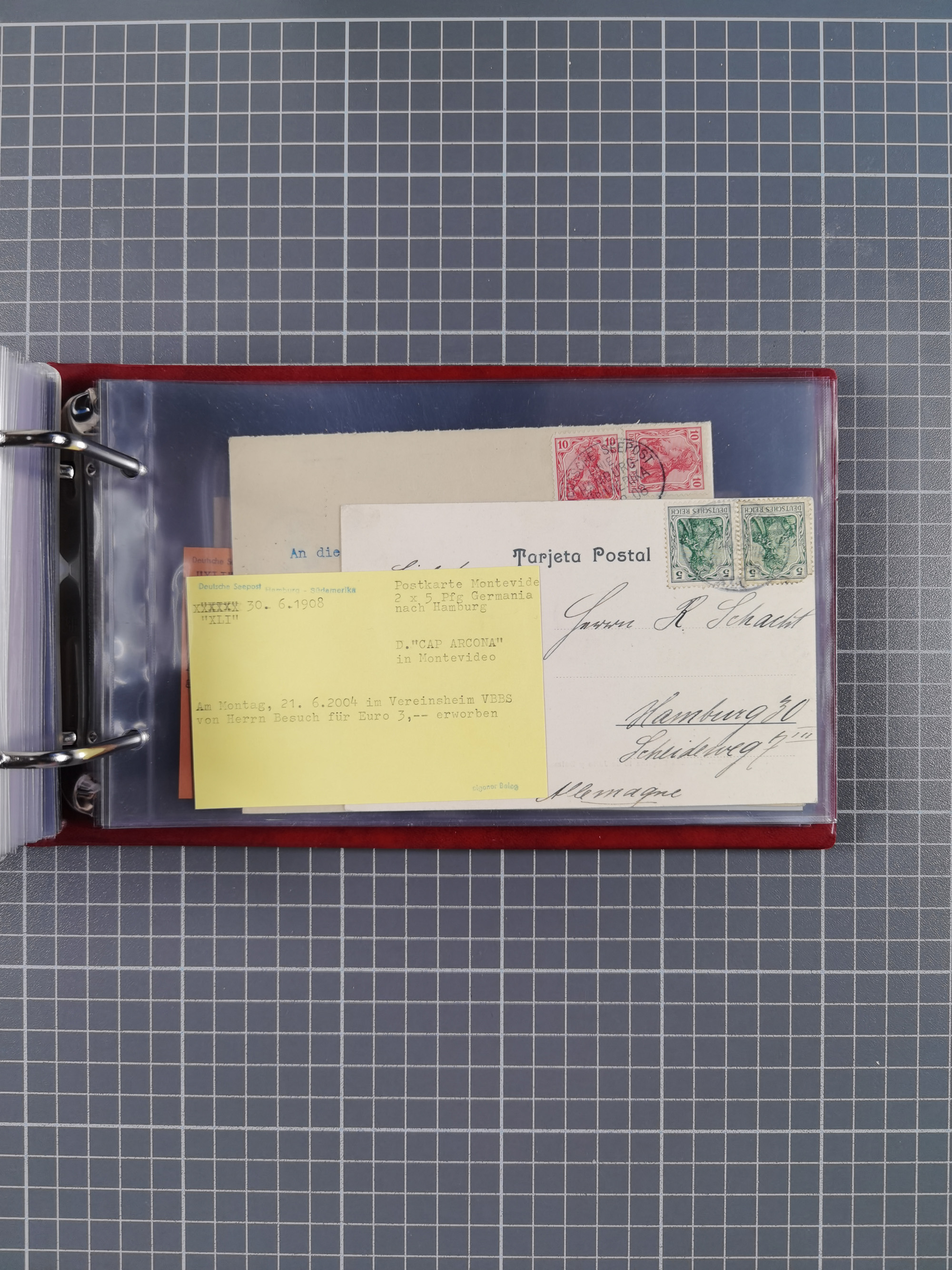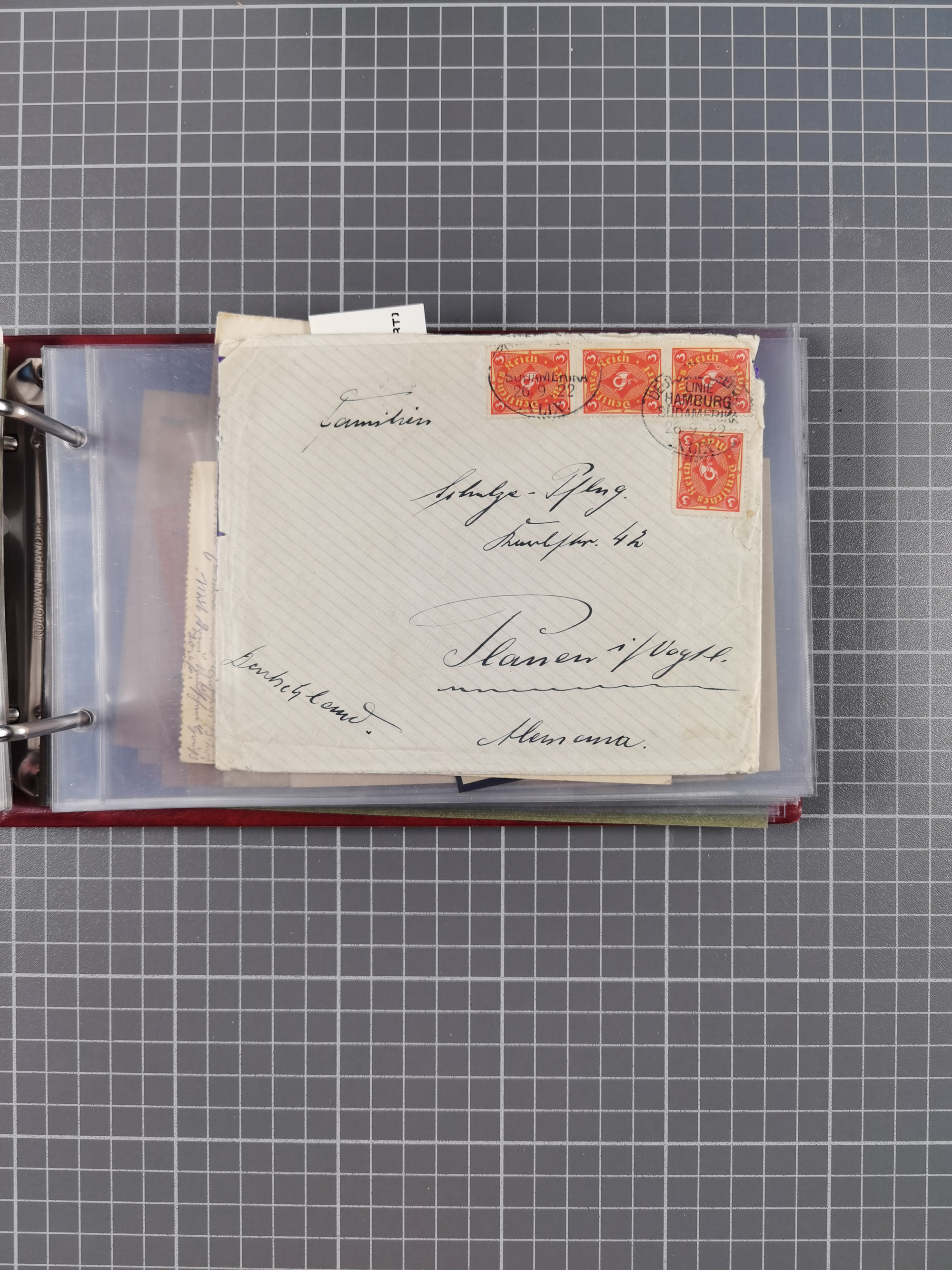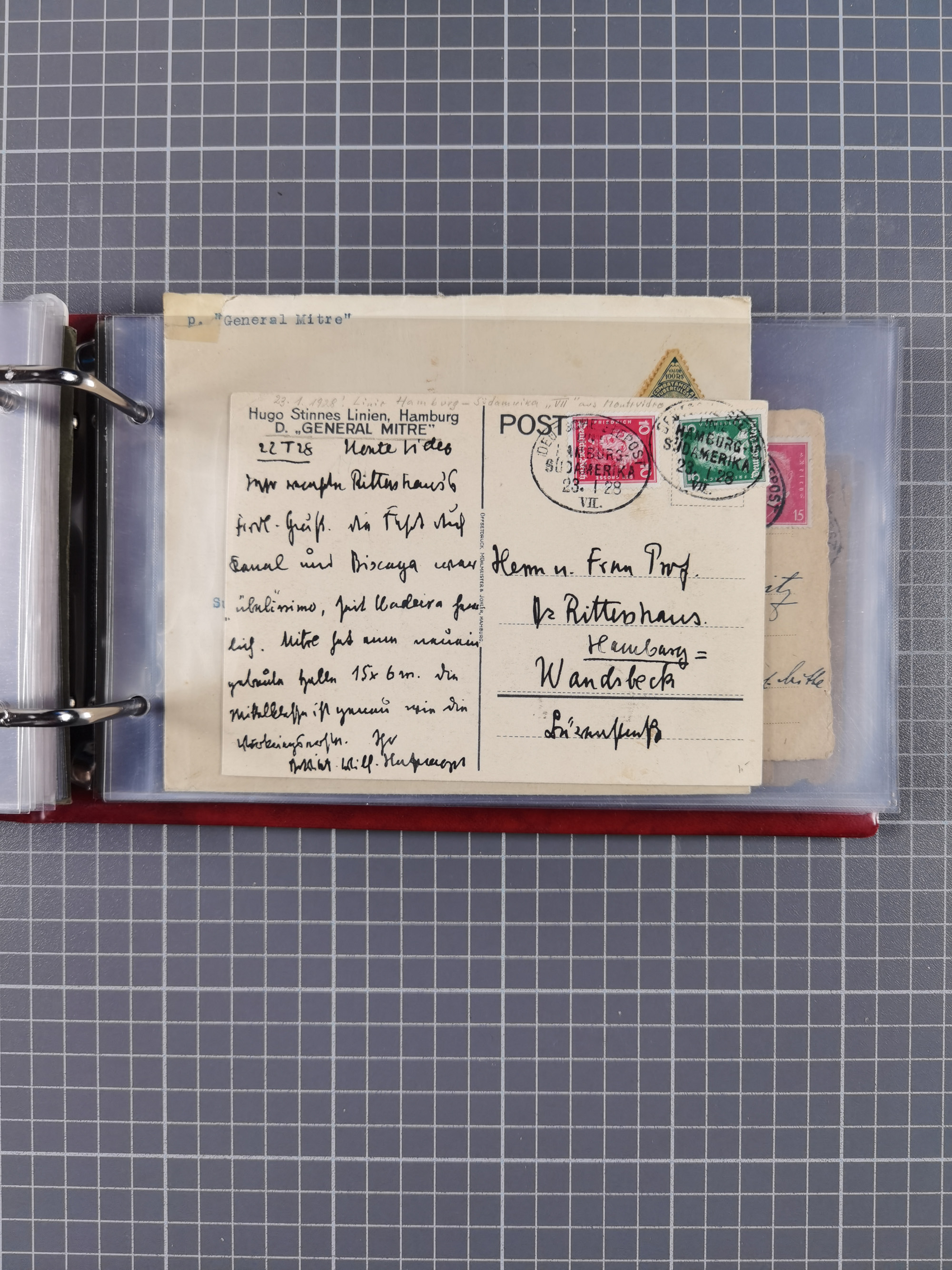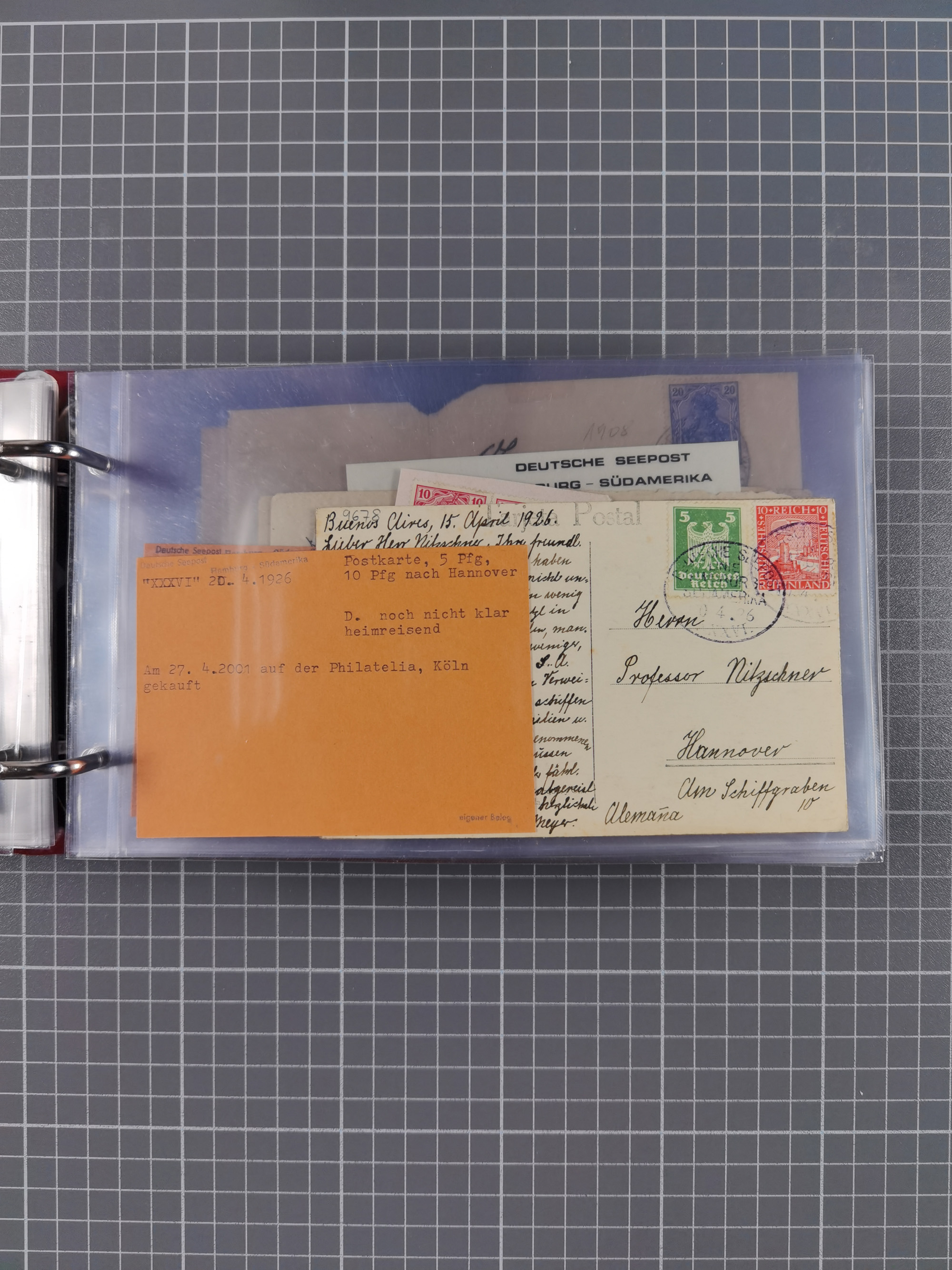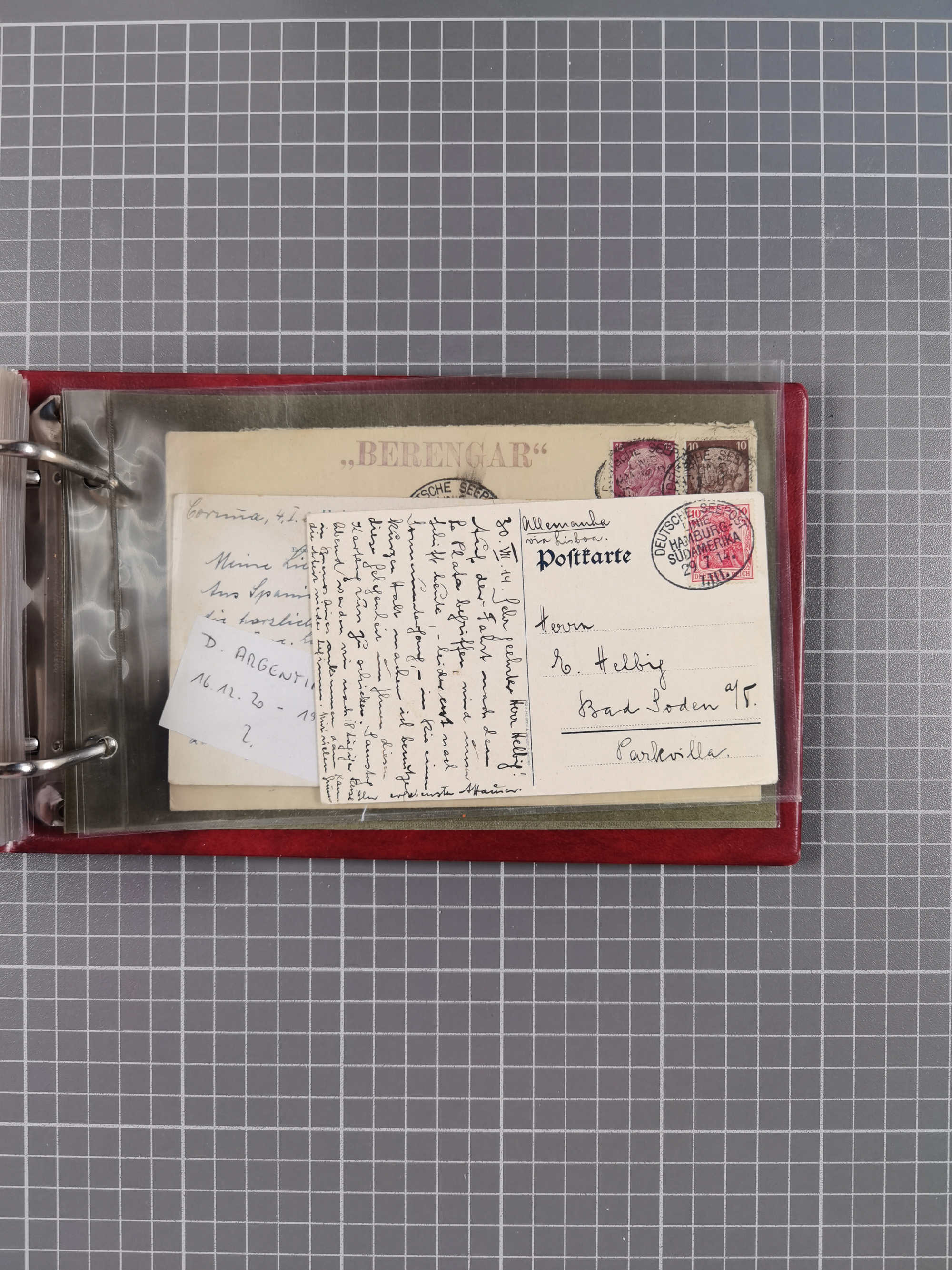 1826/1938, kleine Sammlung “Schiffspost aus Hamburg” mit ca. 35 Briefen, Karten und GSK, dabei u.a. Stempel “HAMBURG SCHIFFS BRIEF-POST” auf Faltbriefhülle 1826, Belege der Monte Oliva mit u.a. 40 Speisekarten und Belege D. Columbus. Dazu weitere Belege diverser Reisen mit u.a. London-Reise, Hamburg-Südamerika und Post der Monte Sarmiento mit über 40 Speisekarten sowie fünf Belege Gauturnfahrt 1935. Meist auf Albenblättern mit Beschriftung, ex Steinmeyer