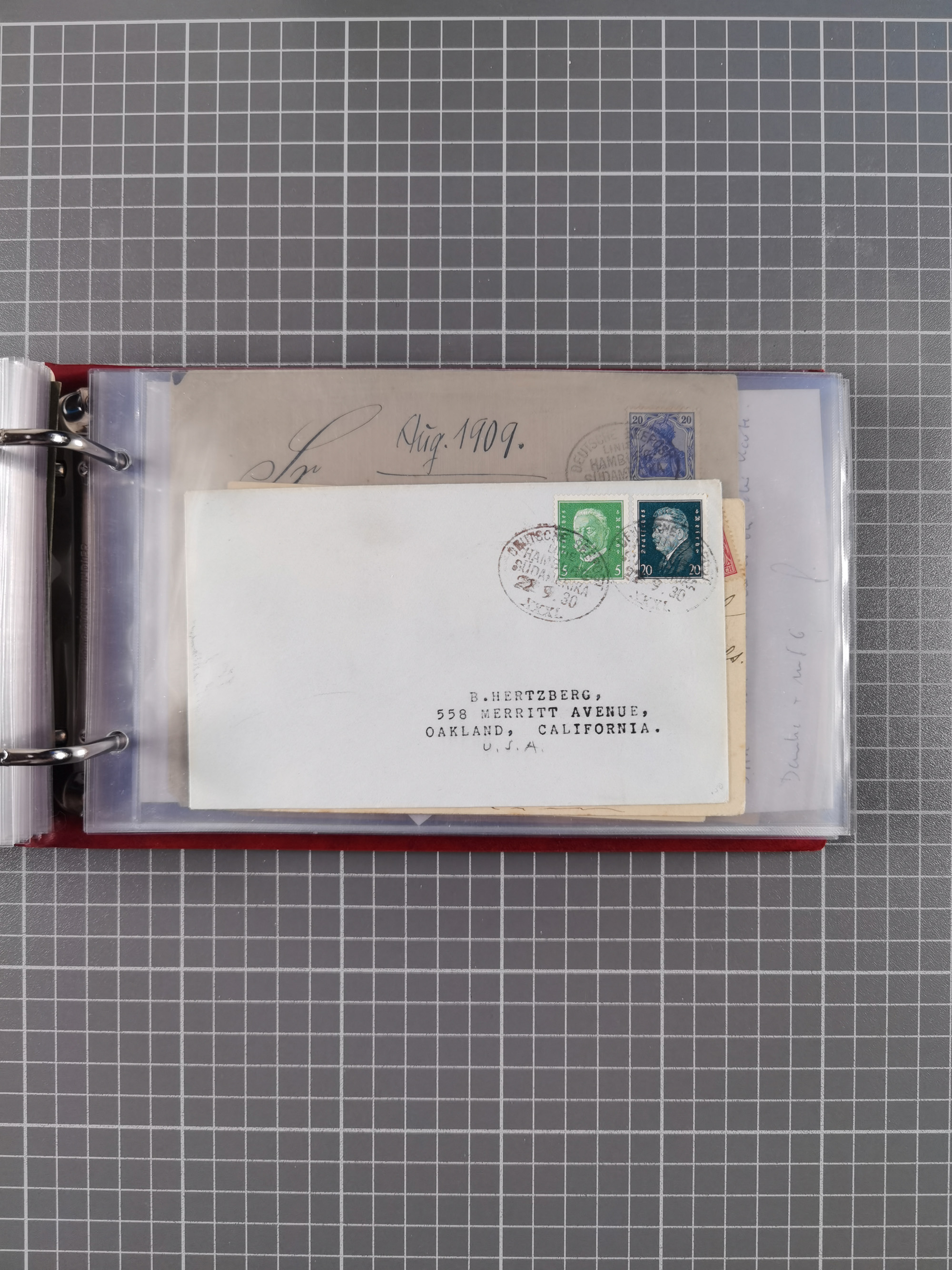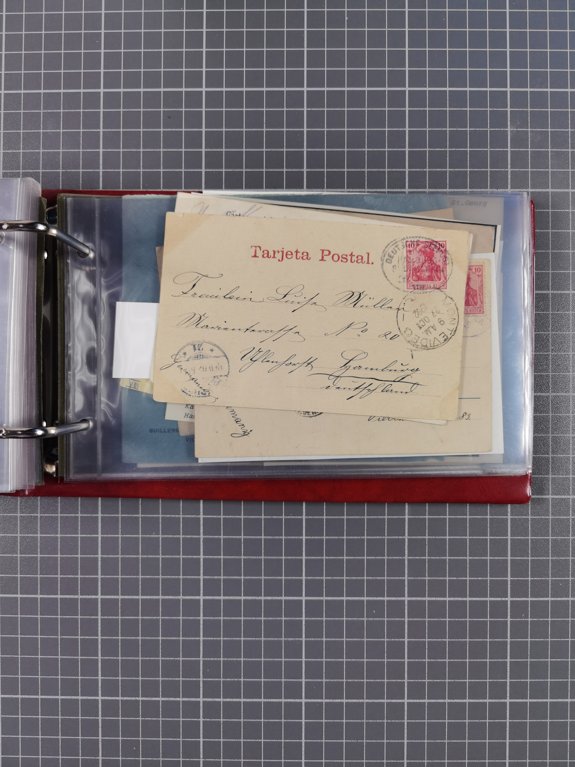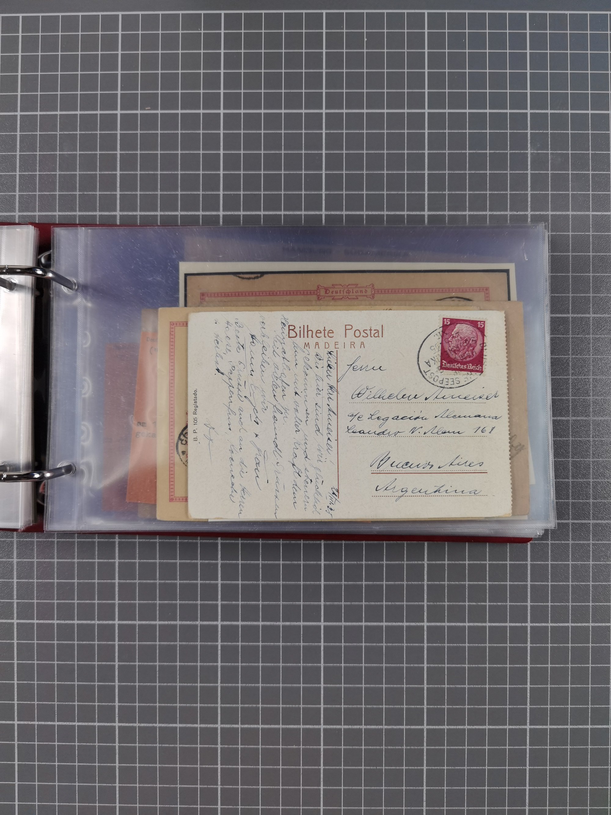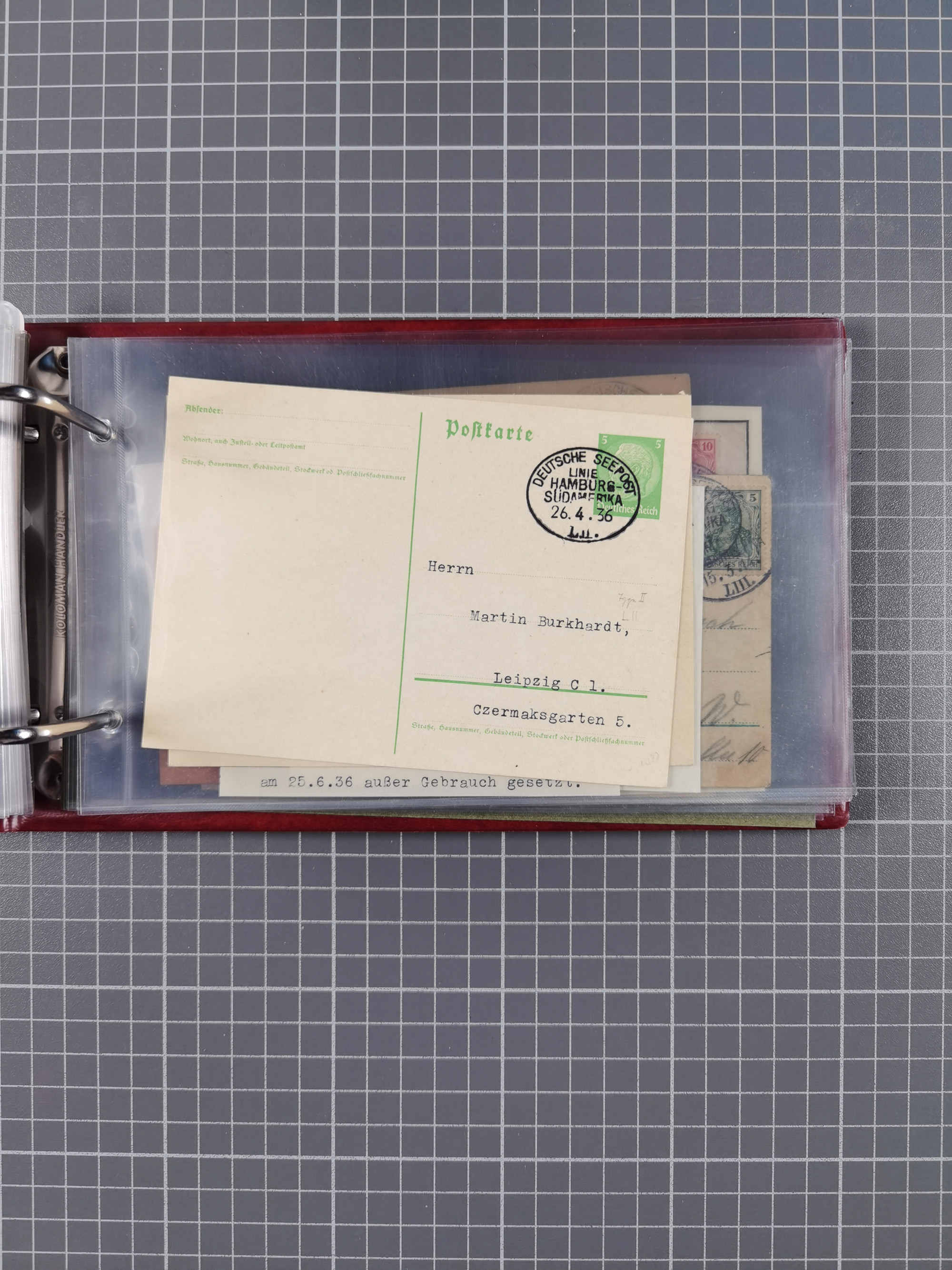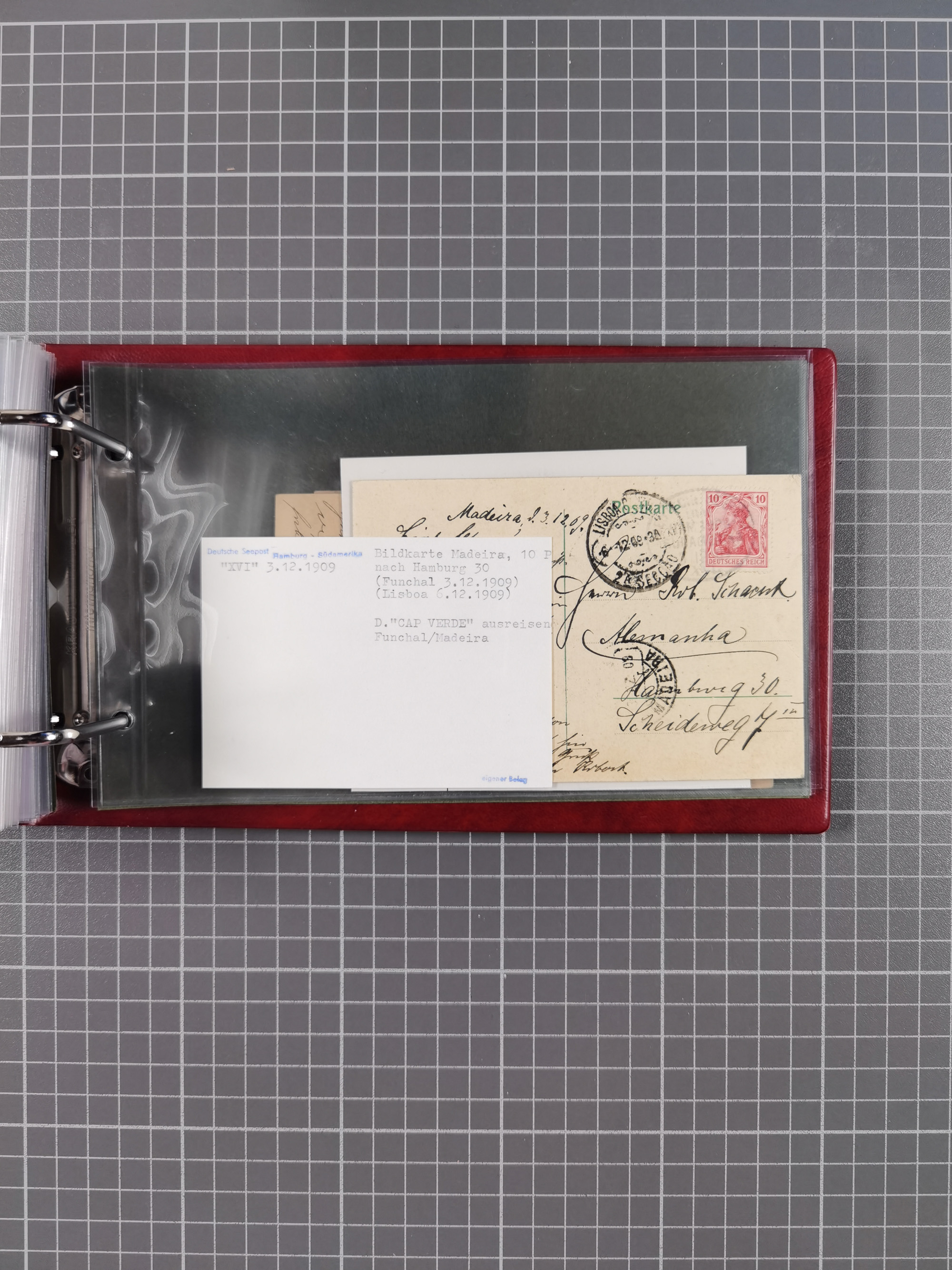 1826/1938, kleine Sammlung “Schiffspost aus Hamburg” mit ca. 35 Briefen, Karten und GSK, dabei u.a. Stempel “HAMBURG SCHIFFS BRIEF-POST” auf Faltbriefhülle 1826, Belege der Monte Oliva mit u.a. 40 Speisekarten und Belege D. Columbus. Dazu weitere Belege diverser Reisen mit u.a. London-Reise, Hamburg-Südamerika und Post der Monte Sarmiento mit über 40 Speisekarten sowie fünf Belege Gauturnfahrt 1935. Meist auf Albenblättern mit Beschriftung, ex Steinmeyer