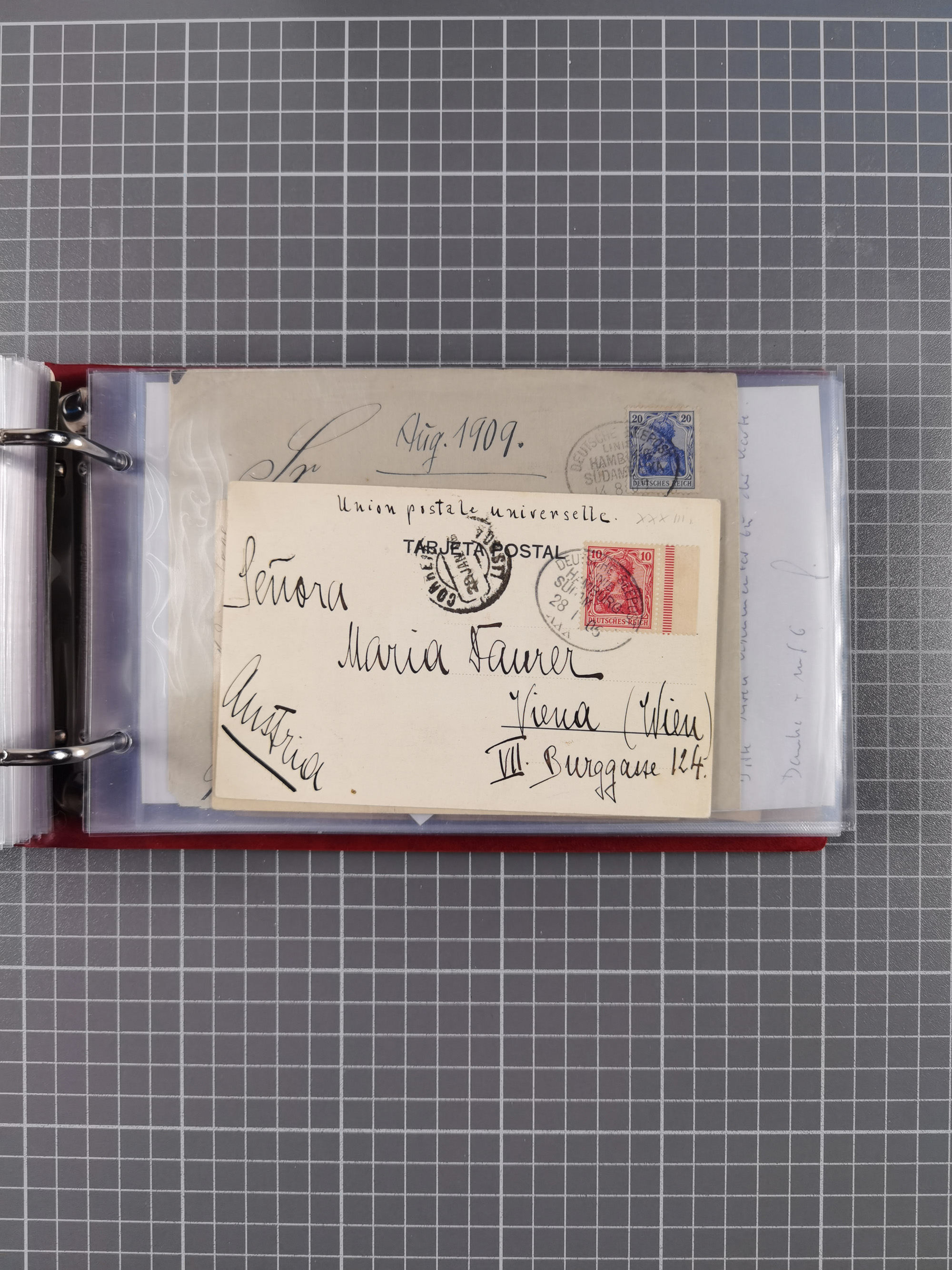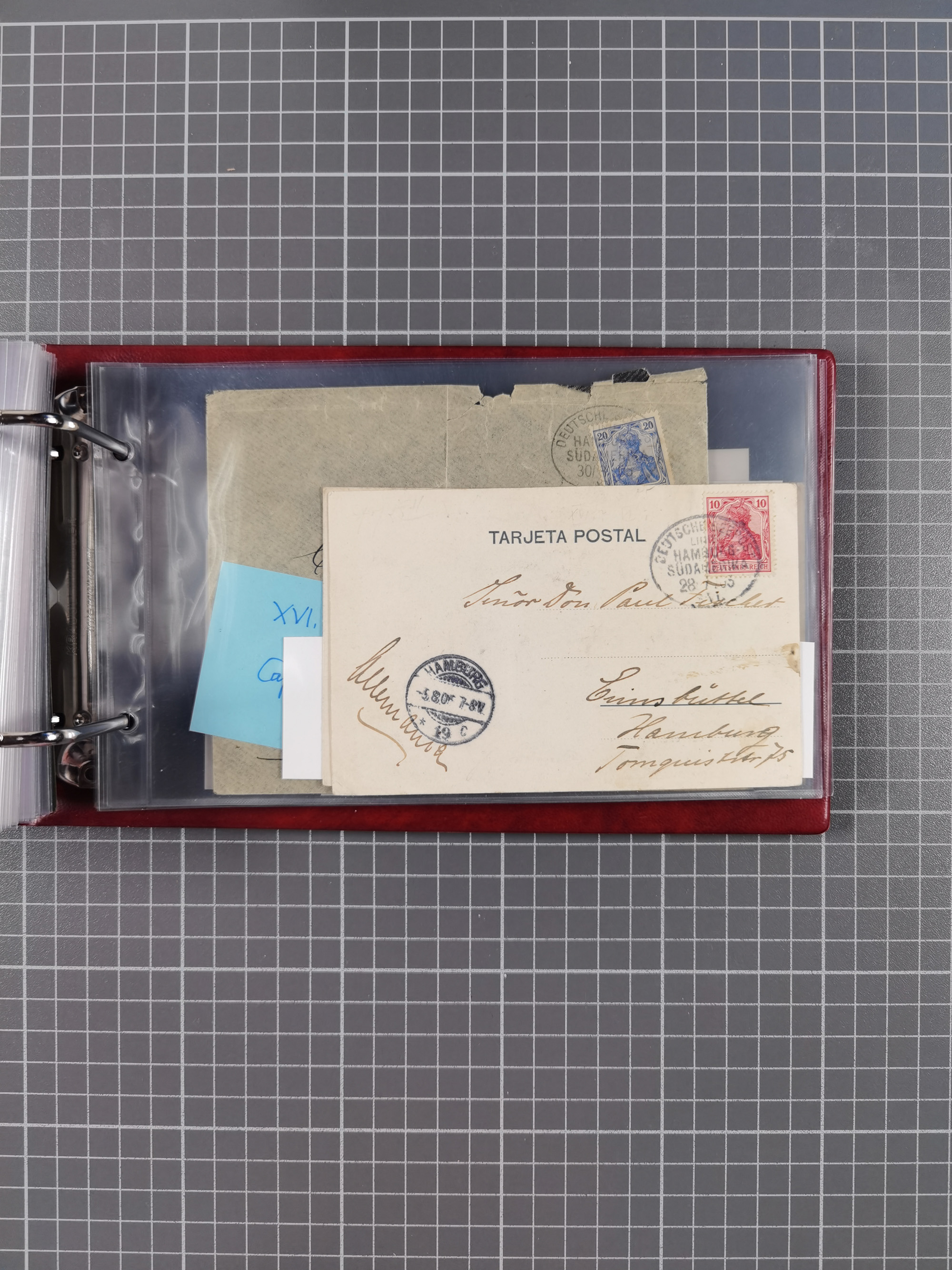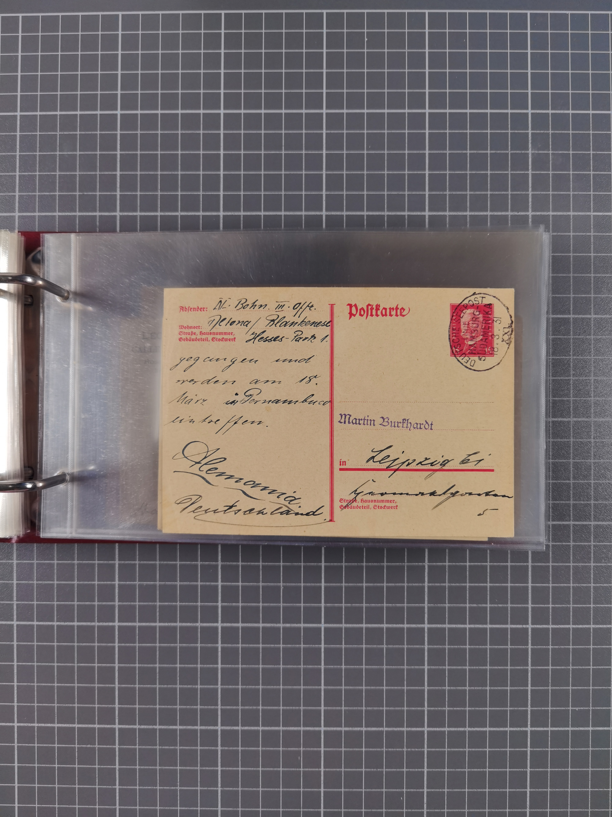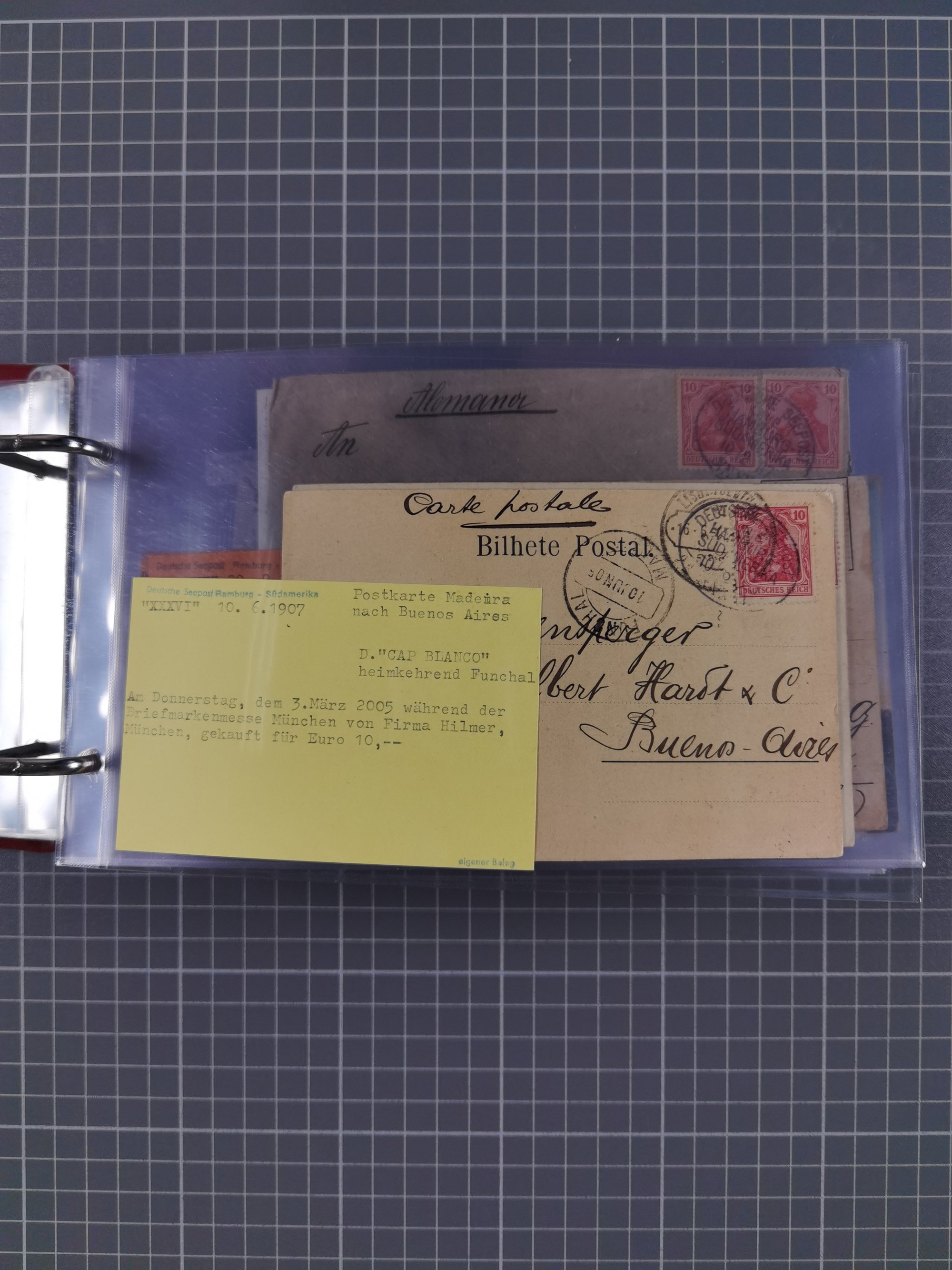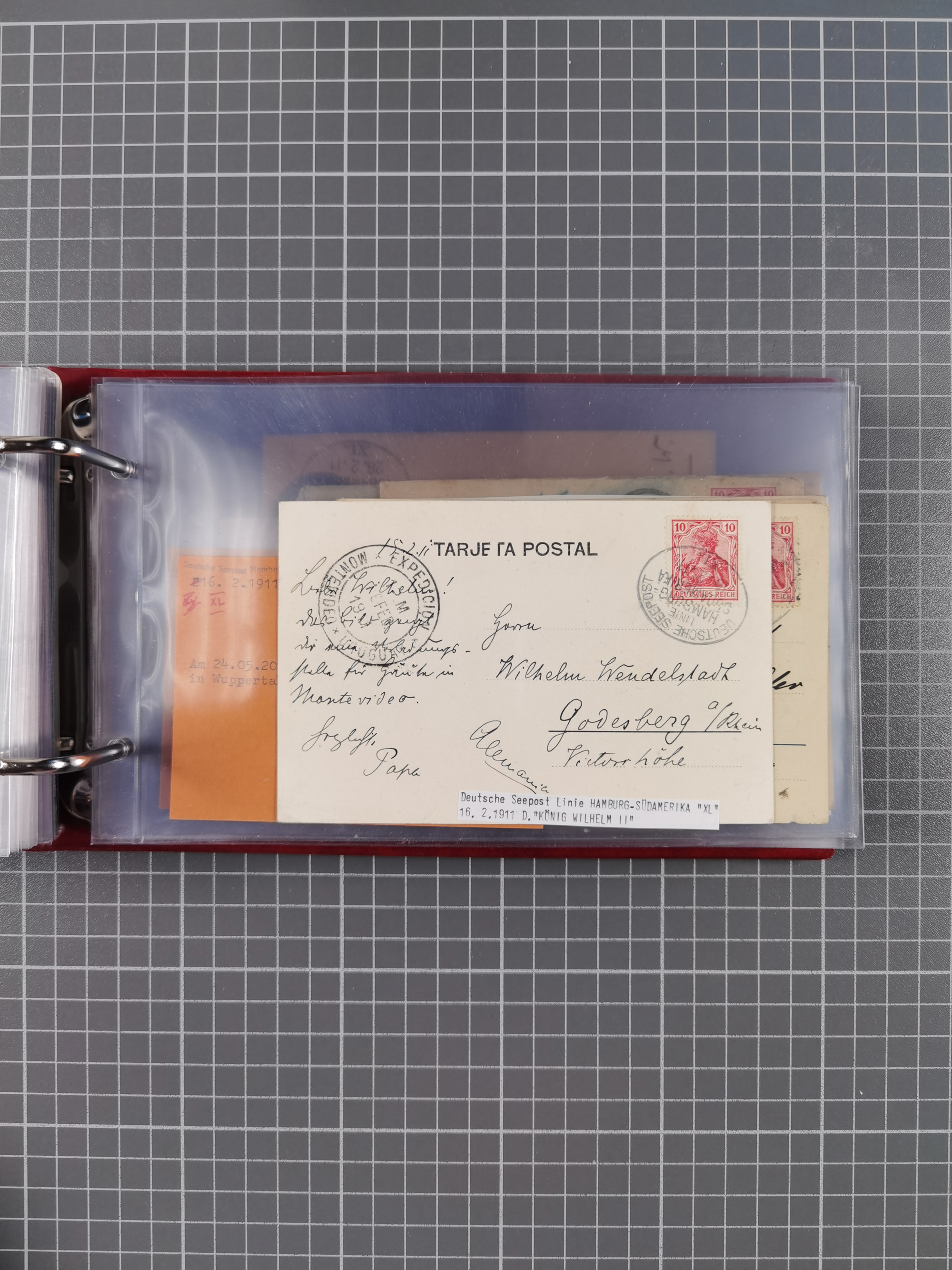 1826/1938, kleine Sammlung “Schiffspost aus Hamburg” mit ca. 35 Briefen, Karten und GSK, dabei u.a. Stempel “HAMBURG SCHIFFS BRIEF-POST” auf Faltbriefhülle 1826, Belege der Monte Oliva mit u.a. 40 Speisekarten und Belege D. Columbus. Dazu weitere Belege diverser Reisen mit u.a. London-Reise, Hamburg-Südamerika und Post der Monte Sarmiento mit über 40 Speisekarten sowie fünf Belege Gauturnfahrt 1935. Meist auf Albenblättern mit Beschriftung, ex Steinmeyer