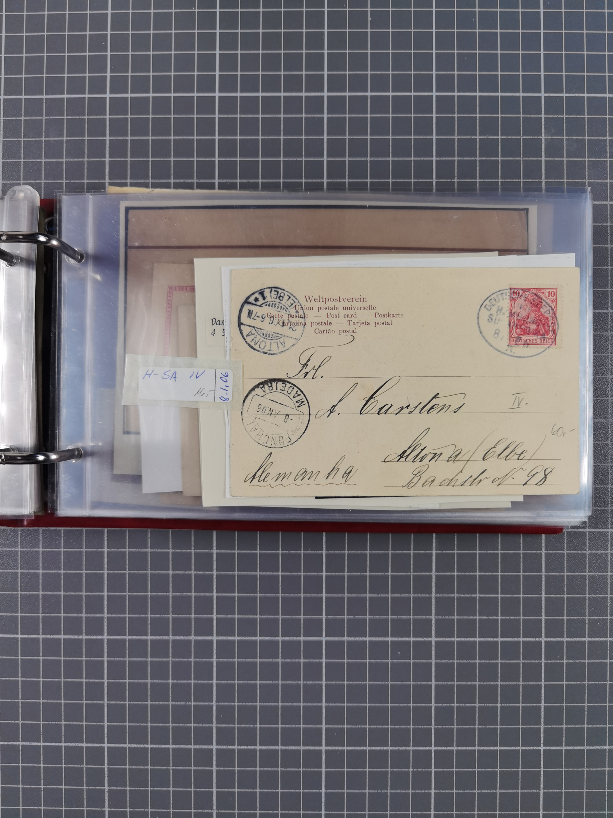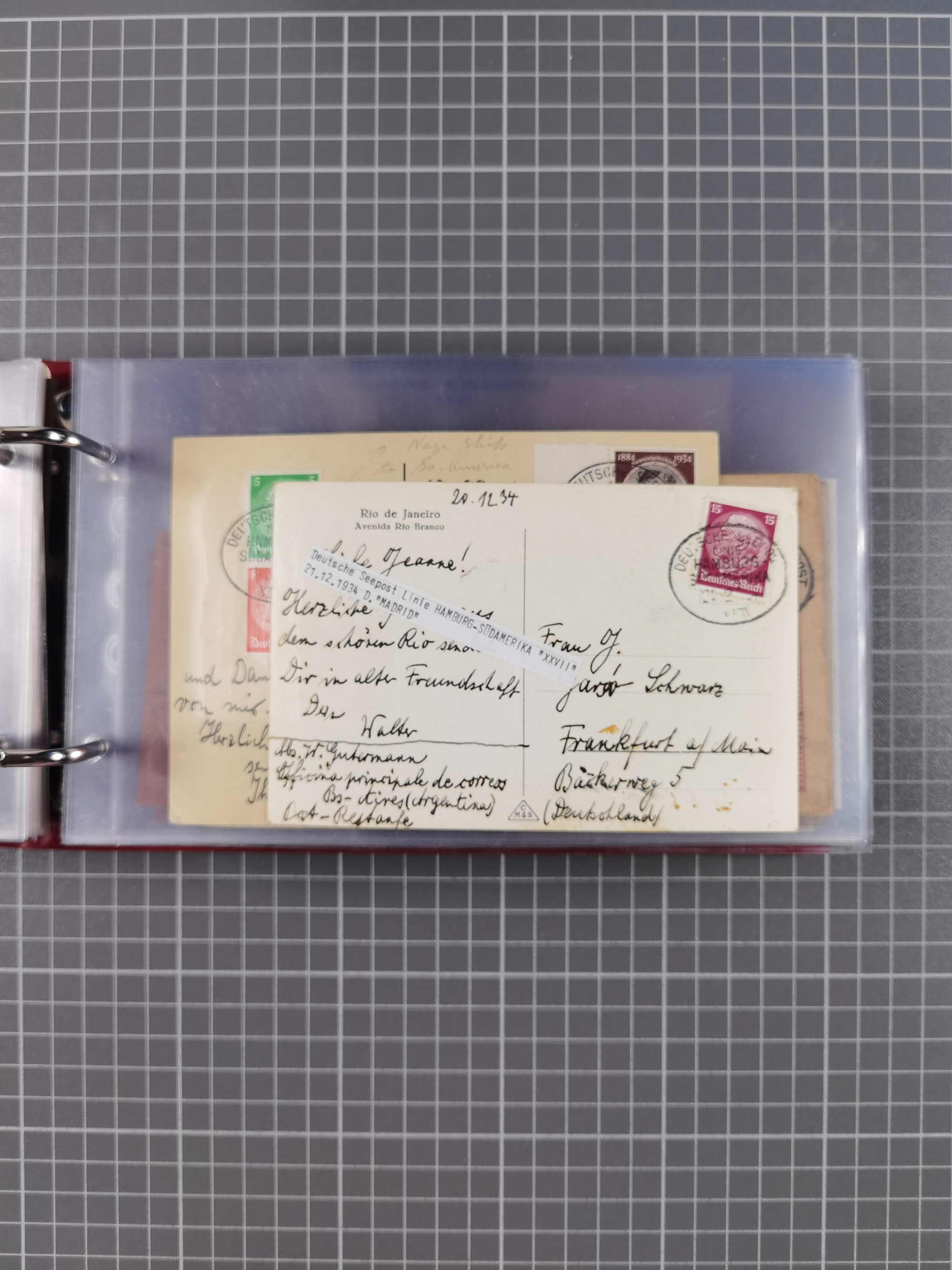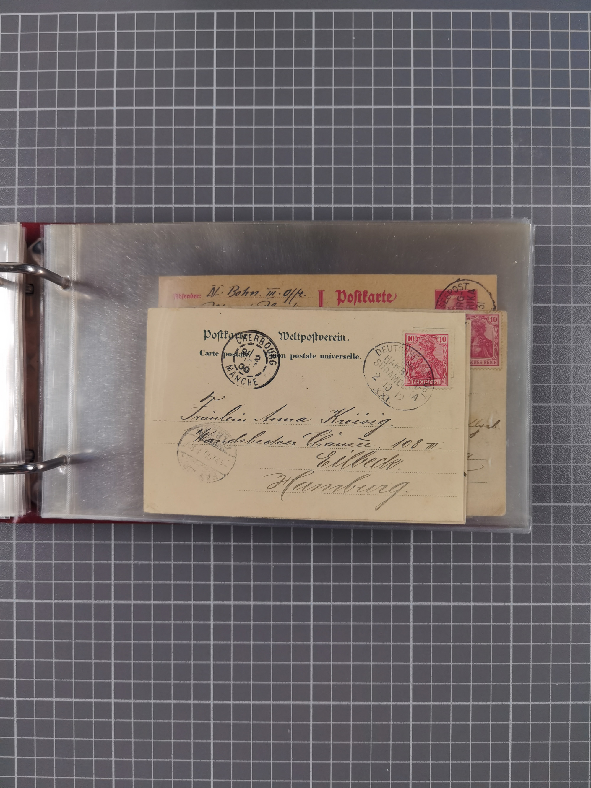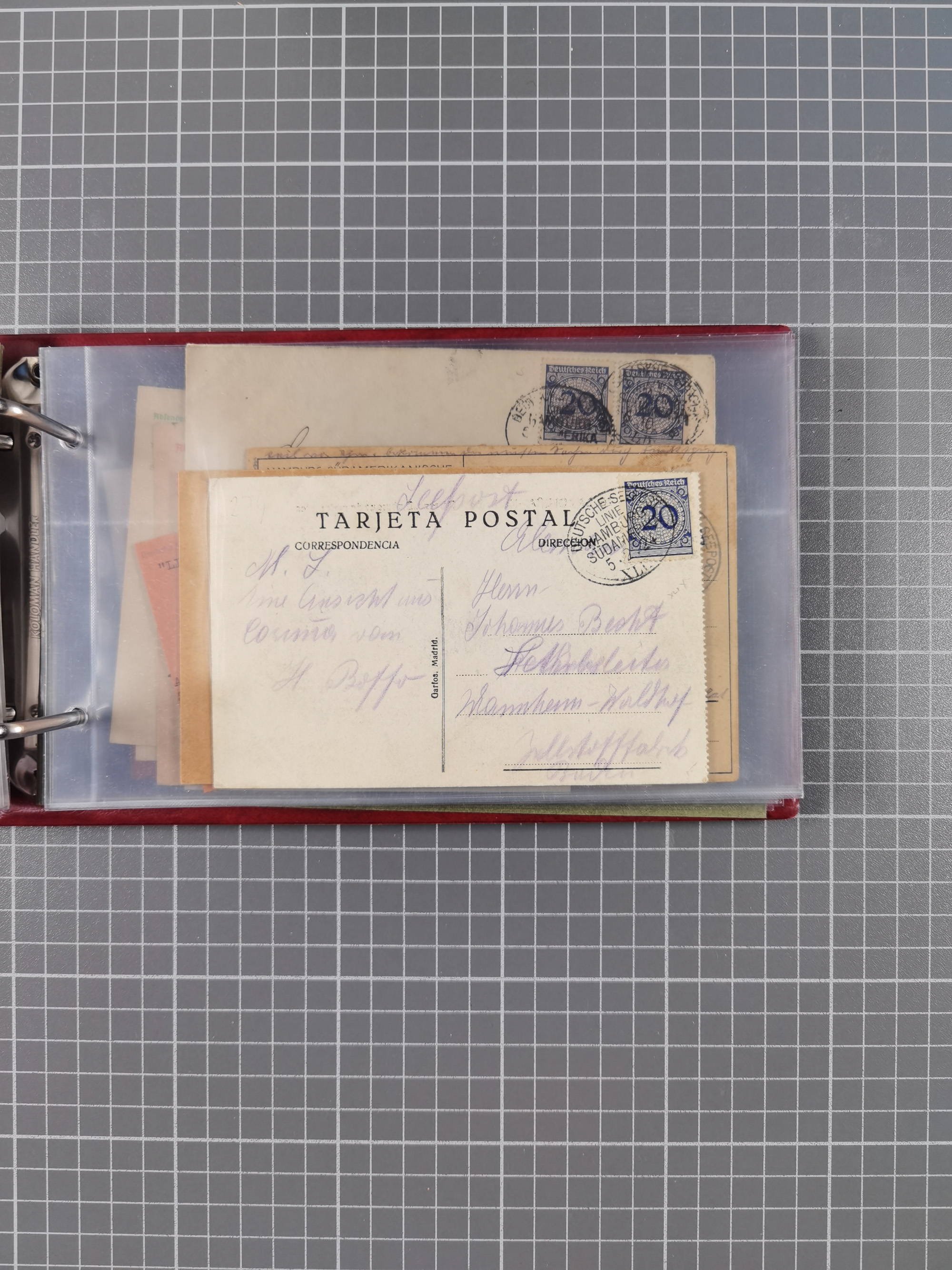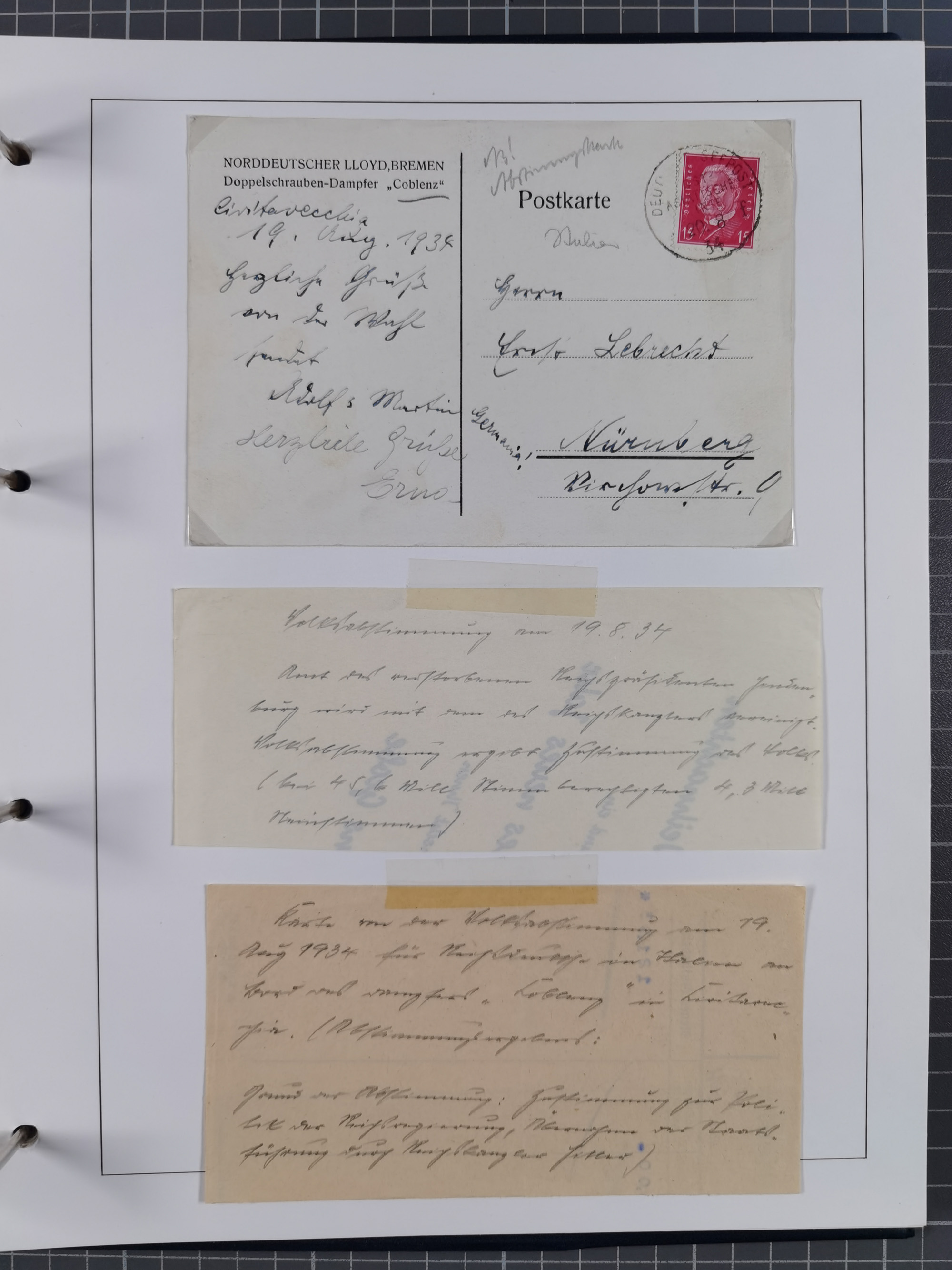 1826/1938, kleine Sammlung “Schiffspost aus Hamburg” mit ca. 35 Briefen, Karten und GSK, dabei u.a. Stempel “HAMBURG SCHIFFS BRIEF-POST” auf Faltbriefhülle 1826, Belege der Monte Oliva mit u.a. 40 Speisekarten und Belege D. Columbus. Dazu weitere Belege diverser Reisen mit u.a. London-Reise, Hamburg-Südamerika und Post der Monte Sarmiento mit über 40 Speisekarten sowie fünf Belege Gauturnfahrt 1935. Meist auf Albenblättern mit Beschriftung, ex Steinmeyer