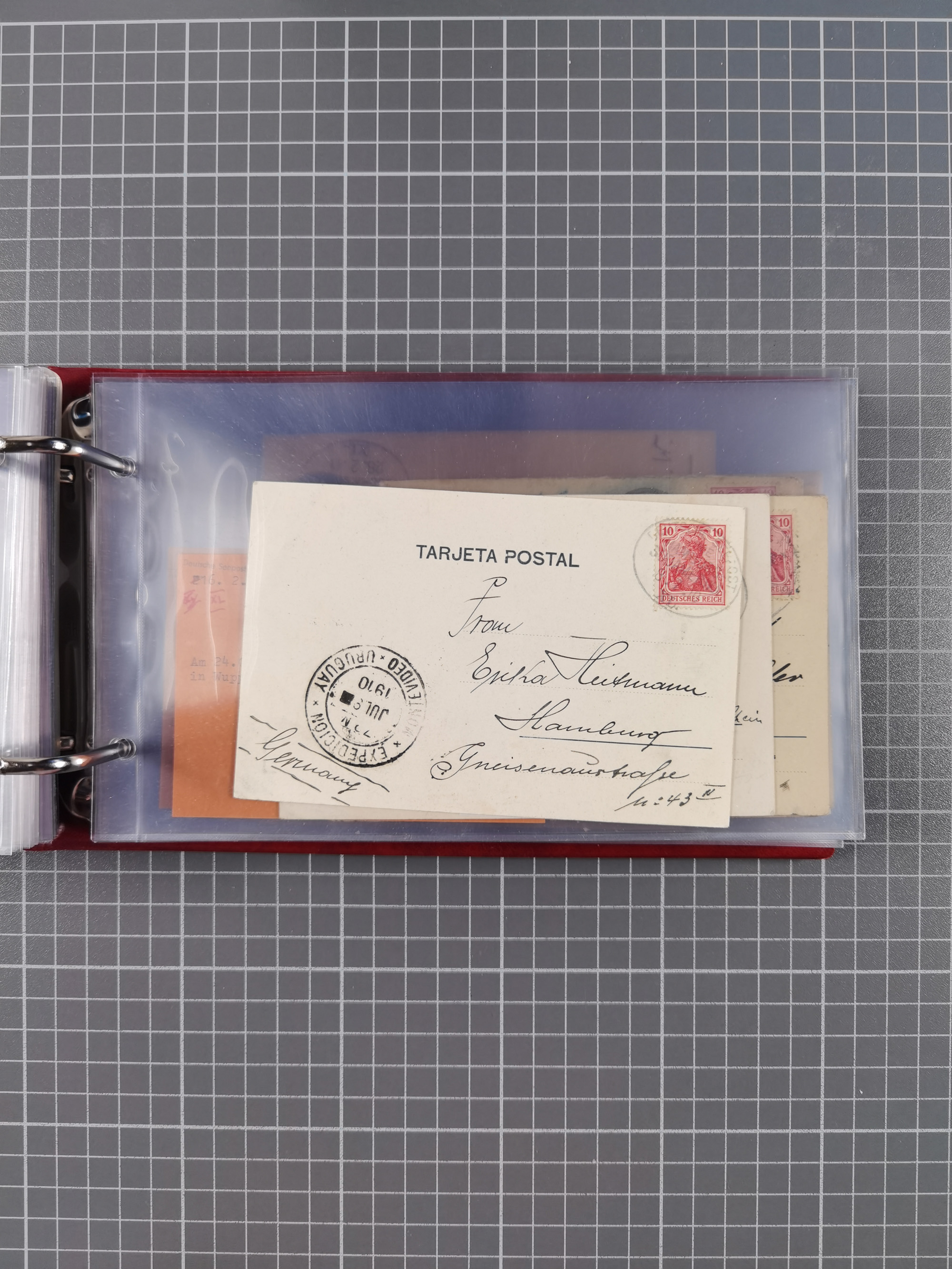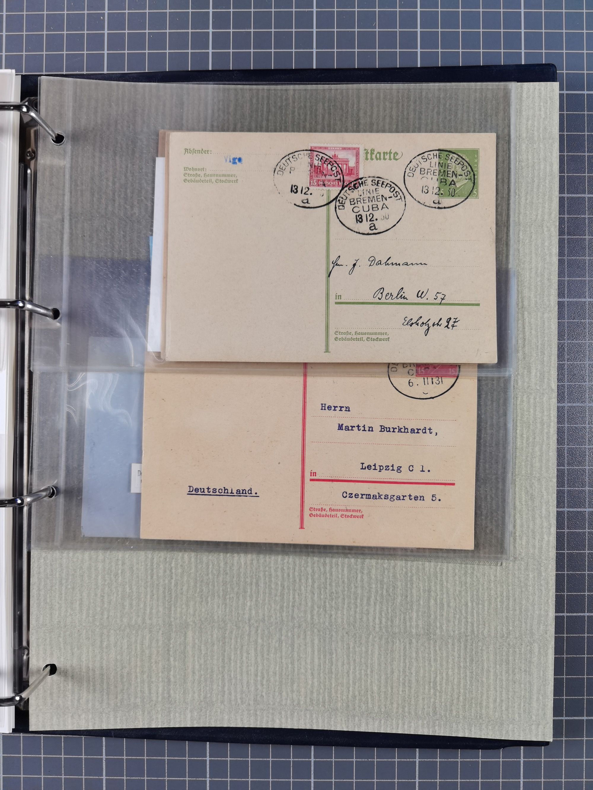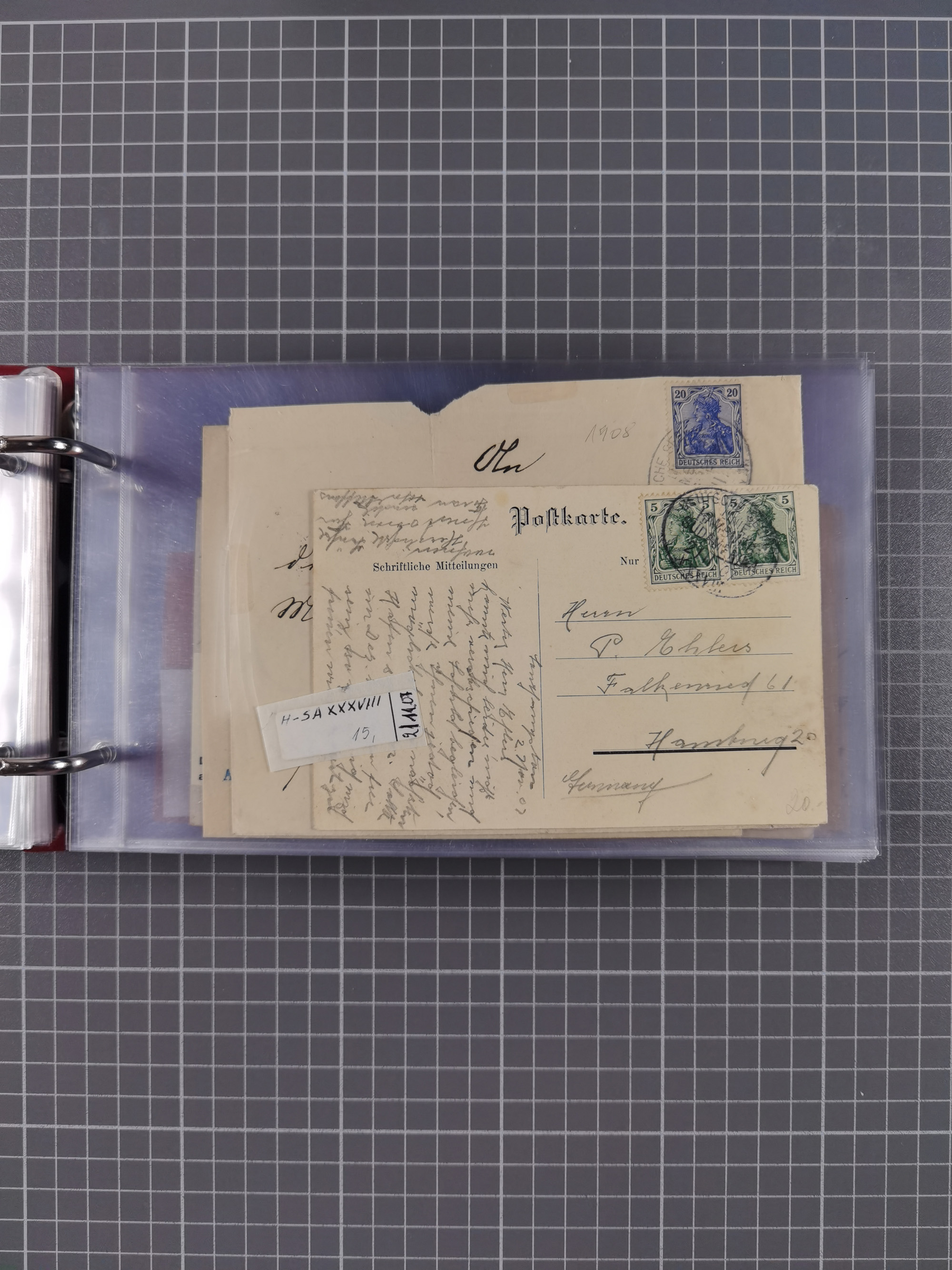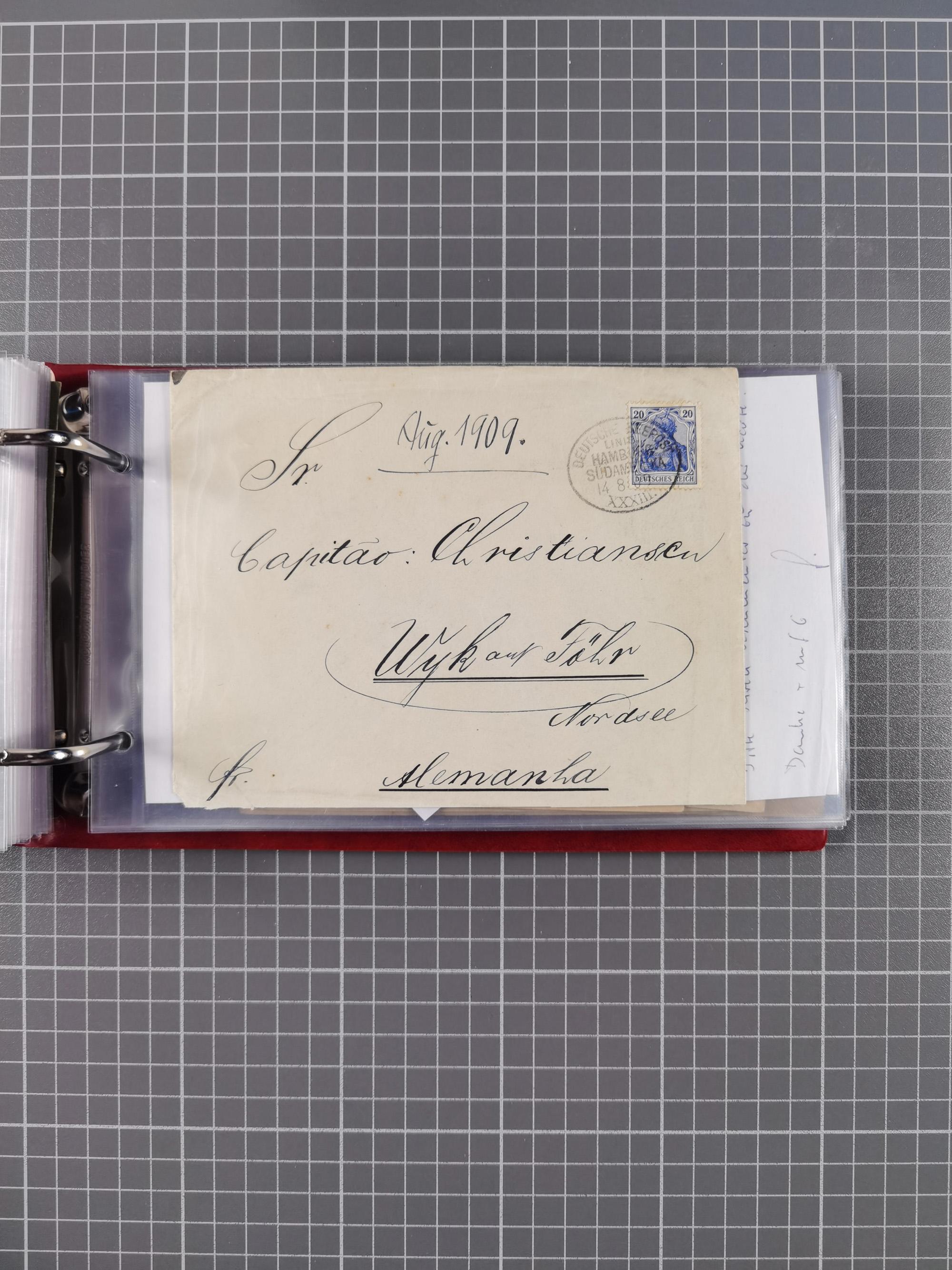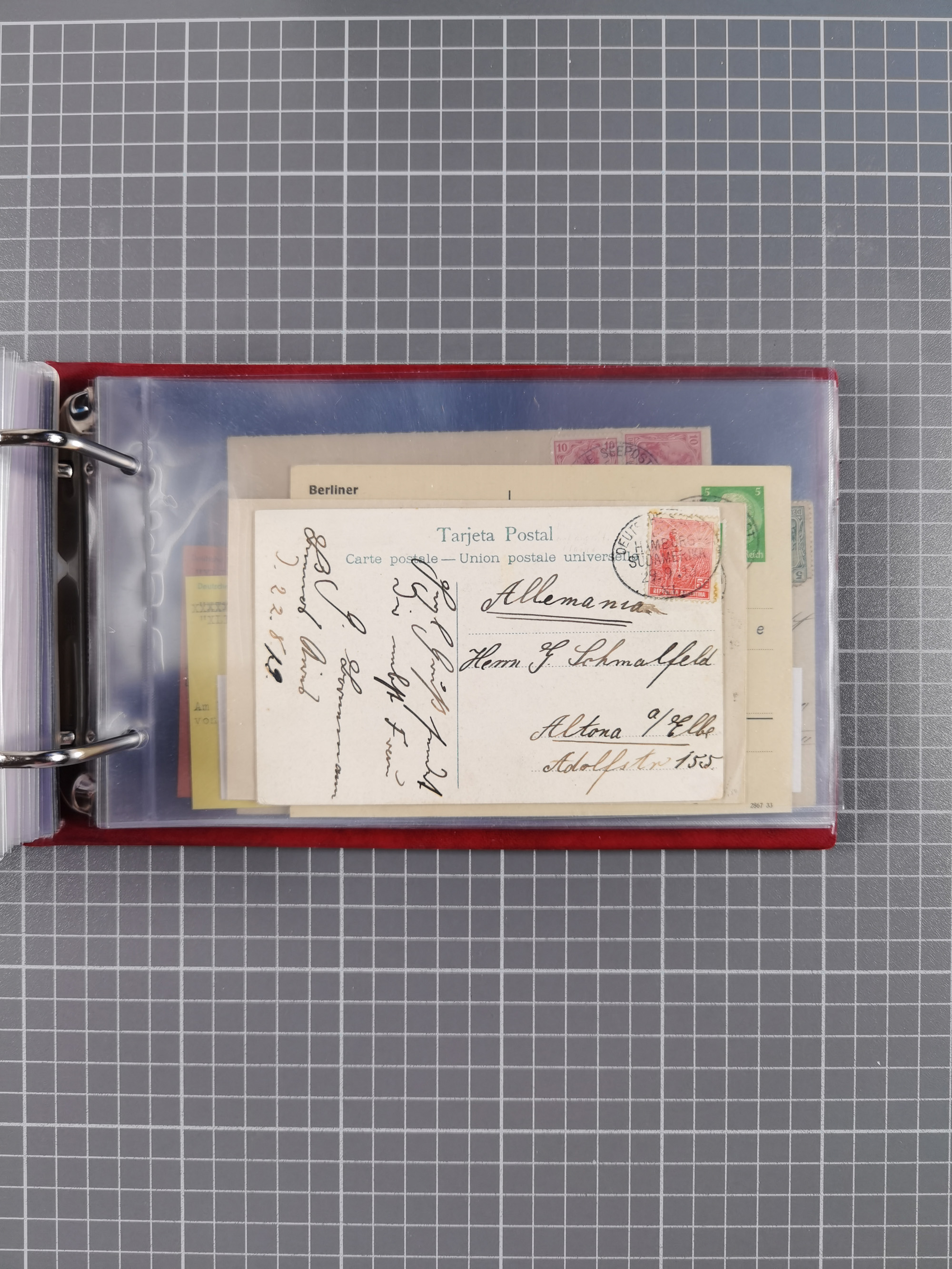 1826/1938, kleine Sammlung “Schiffspost aus Hamburg” mit ca. 35 Briefen, Karten und GSK, dabei u.a. Stempel “HAMBURG SCHIFFS BRIEF-POST” auf Faltbriefhülle 1826, Belege der Monte Oliva mit u.a. 40 Speisekarten und Belege D. Columbus. Dazu weitere Belege diverser Reisen mit u.a. London-Reise, Hamburg-Südamerika und Post der Monte Sarmiento mit über 40 Speisekarten sowie fünf Belege Gauturnfahrt 1935. Meist auf Albenblättern mit Beschriftung, ex Steinmeyer