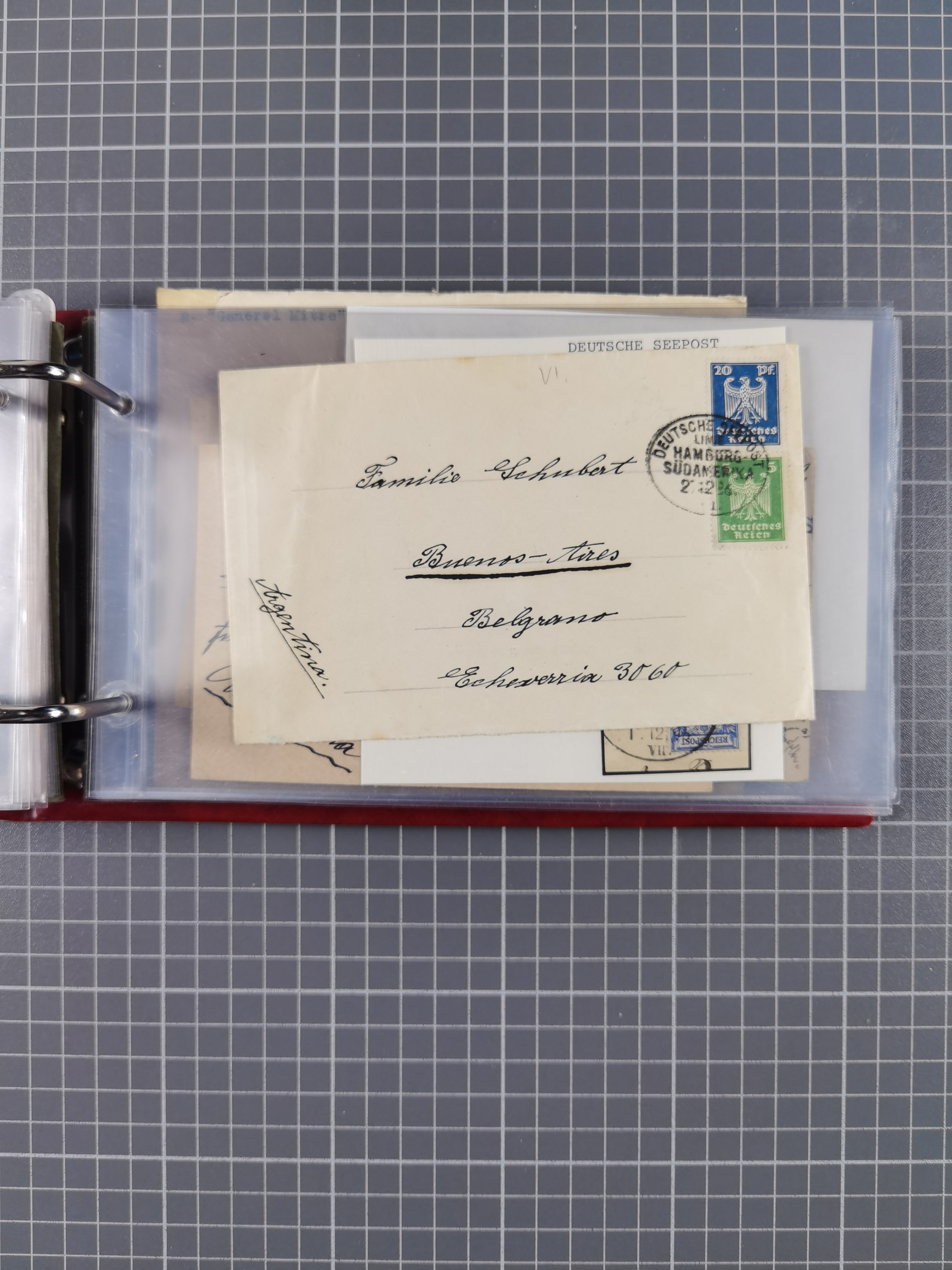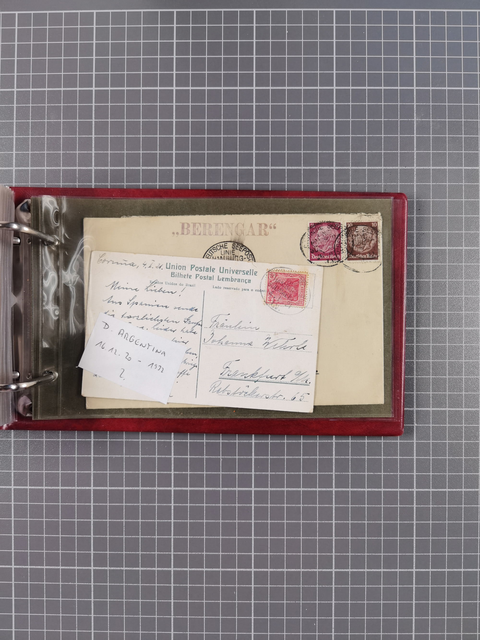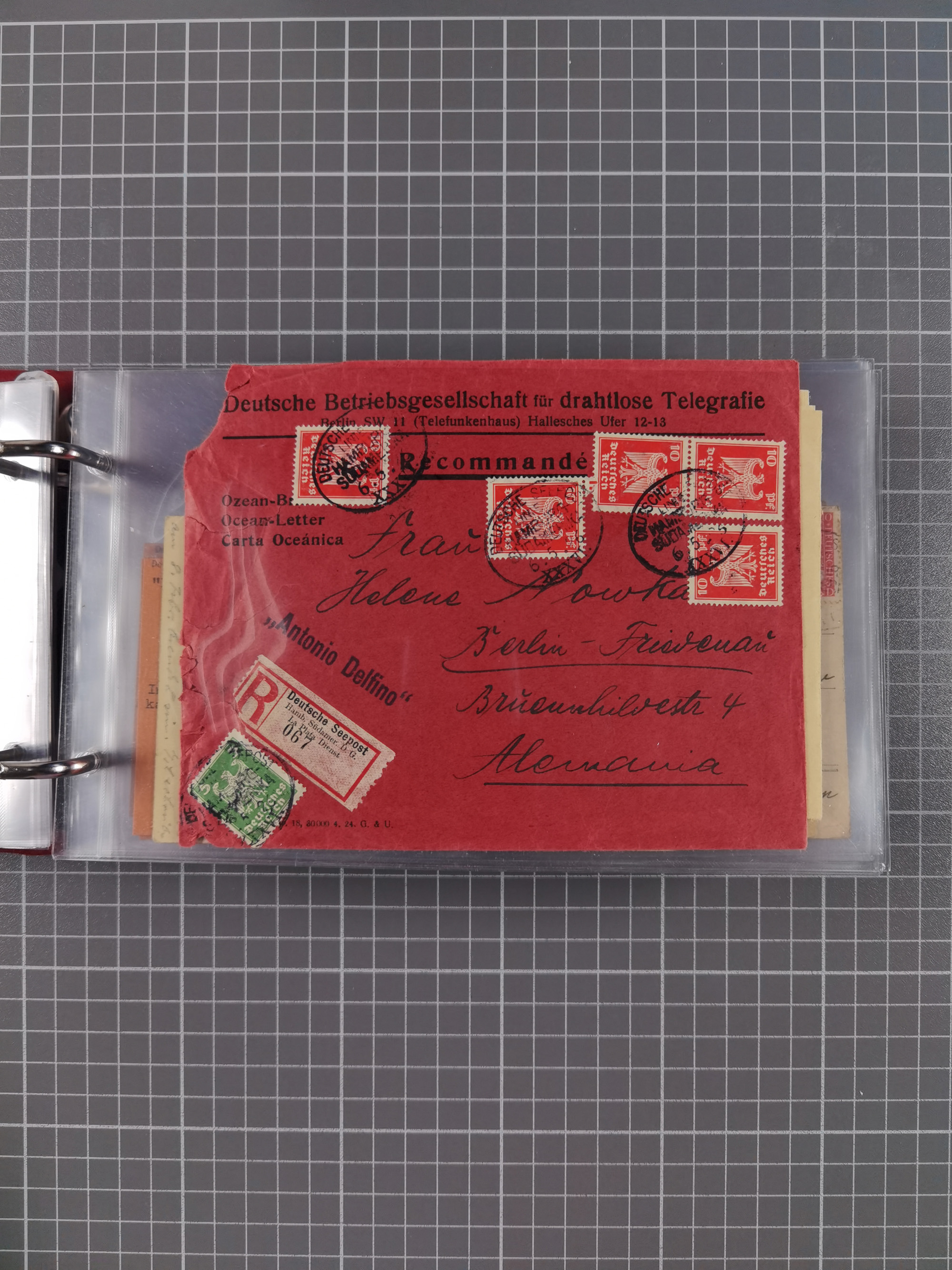 1924, “DSP LINE BREMEN-LA PLATA a 20.9.24” mehrfach klar auf Rentenpfennig 10 und 20 Pfg. als tarifgerechte Frankatur auf Ozean-Vordruckbrief (Recommandé gestrichen) nach München. Der Umschlag oben mit Randfehlern, ansonsten in guter Erhaltung
