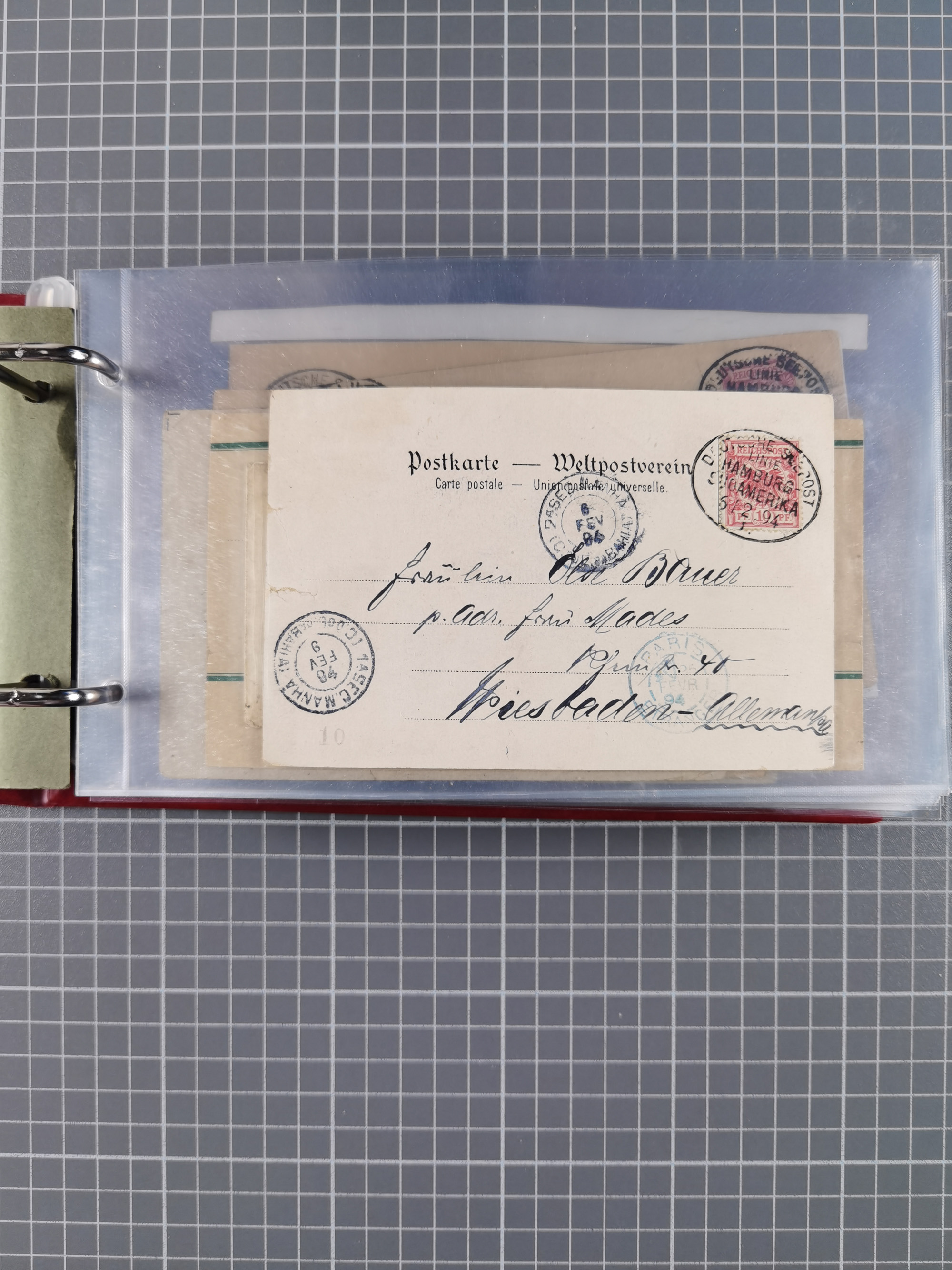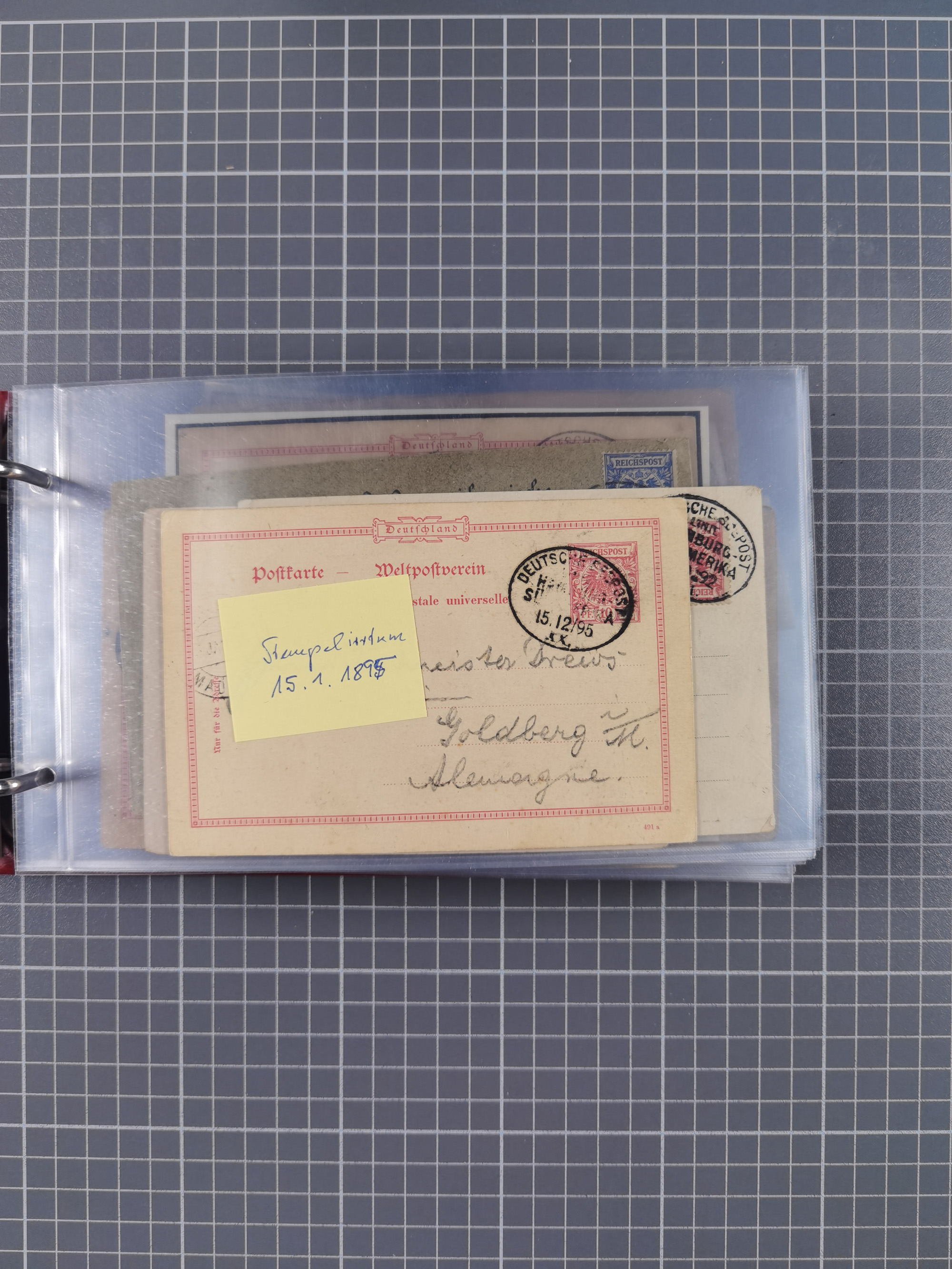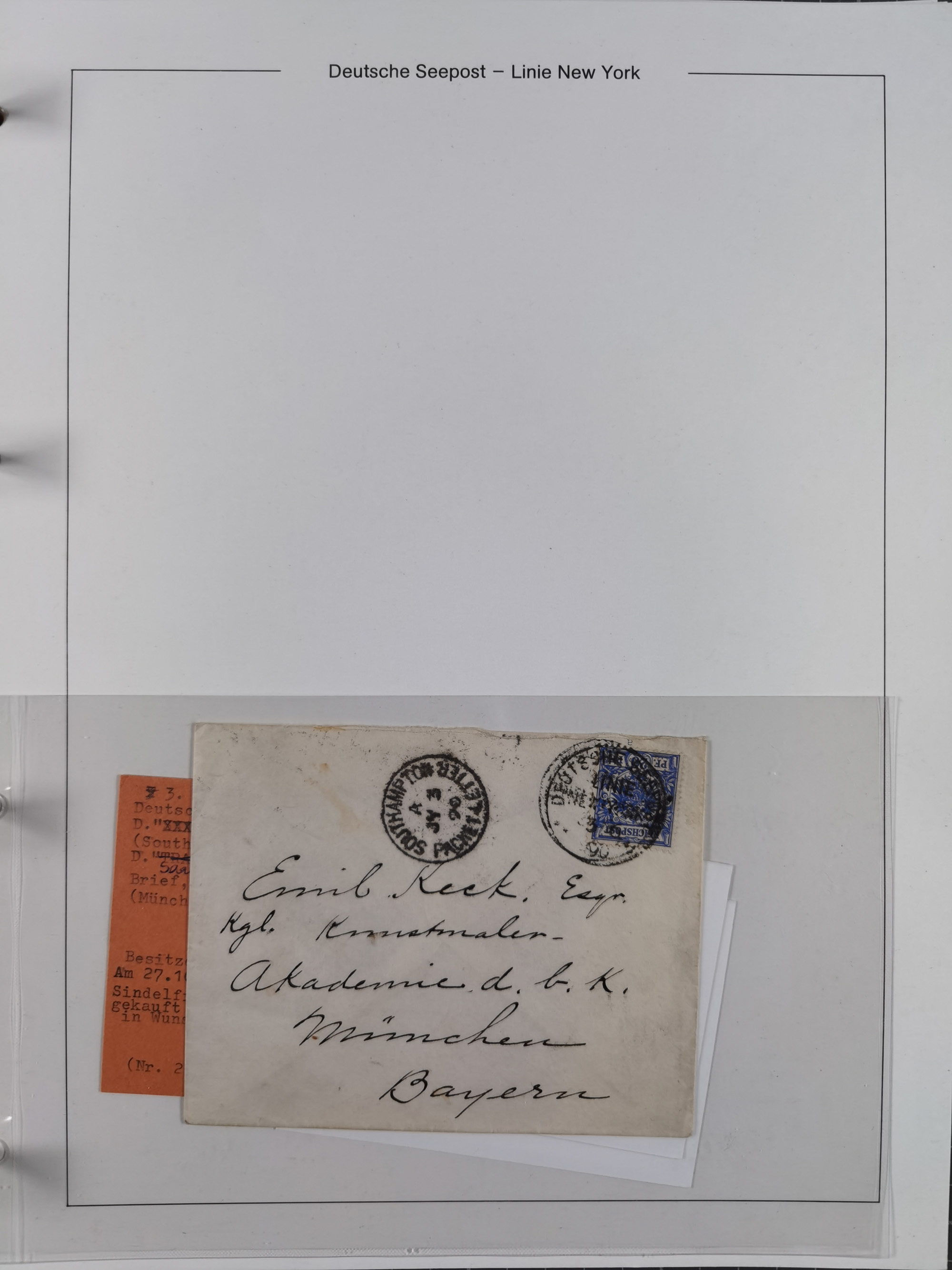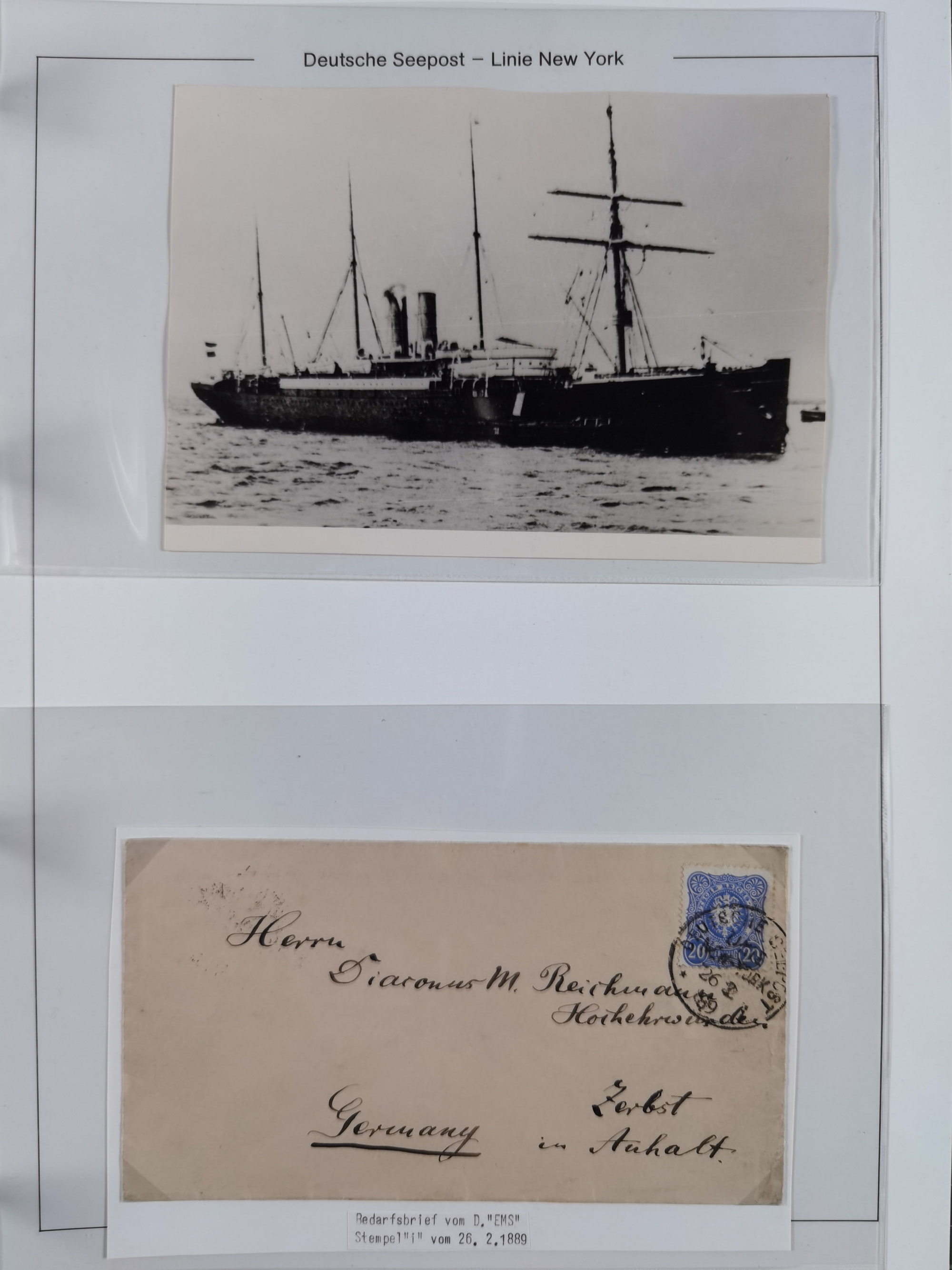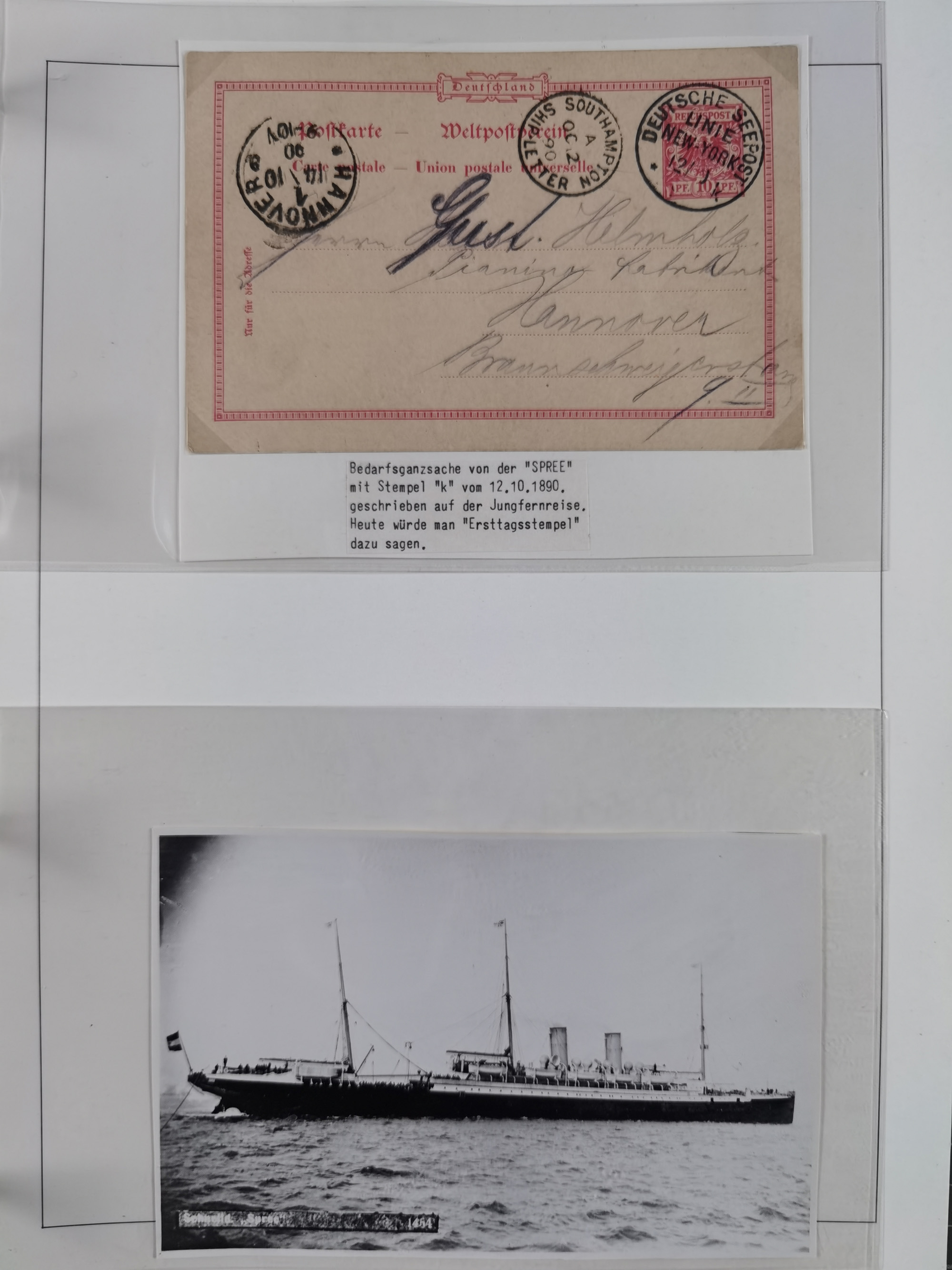 1889/91, Sammlung “DSP LINIE NEW YorK” mit Unterscheidungsbuchstaben “a” bis “l” mit 36 Briefen und GSK mit durchgehend klaren Abschlägen, oft mit Beschreibung der verschiedenen Dampfer. Meist in guter Erhaltung, in dieser Art recht selten, ex Steinmeyer