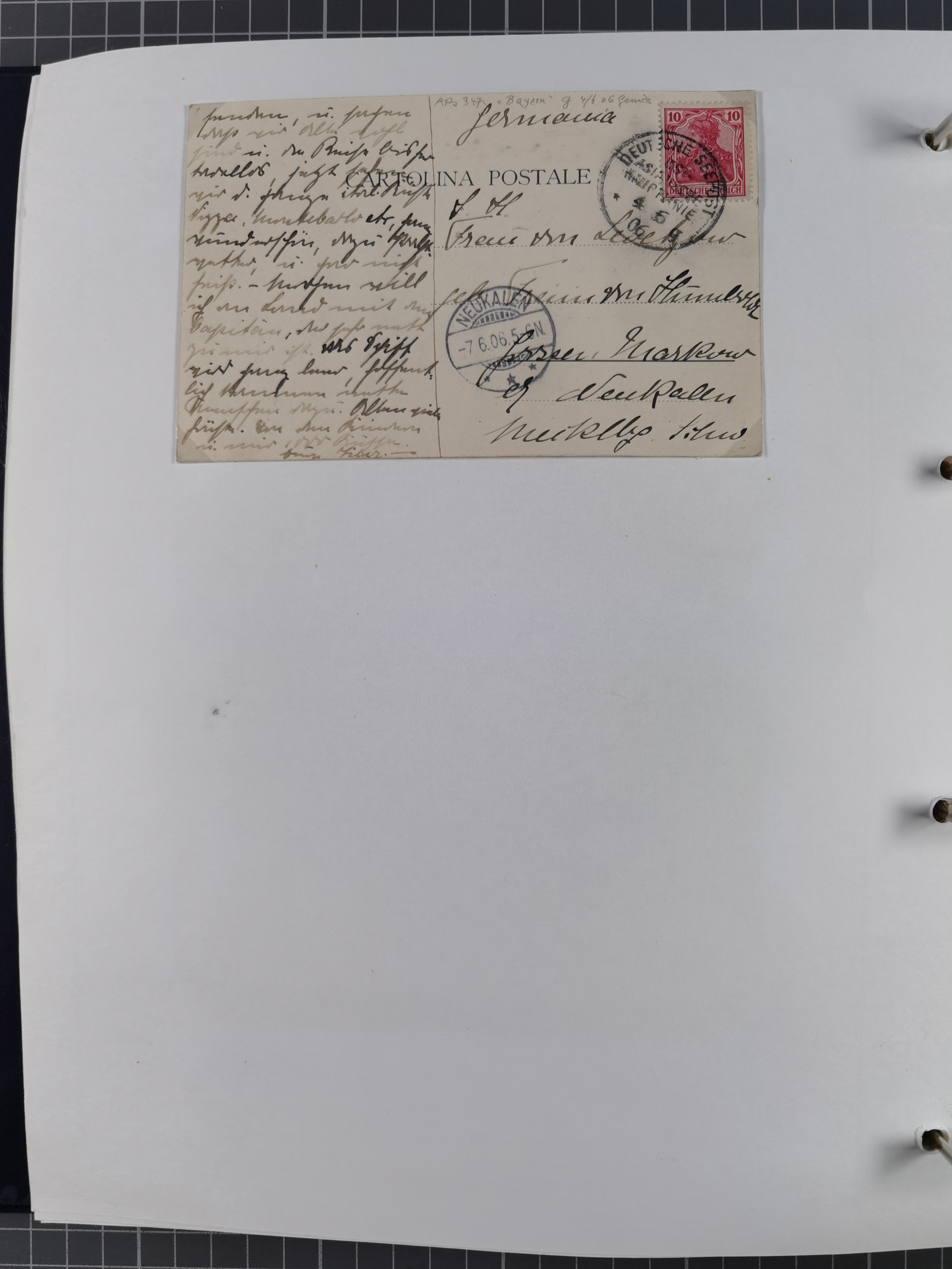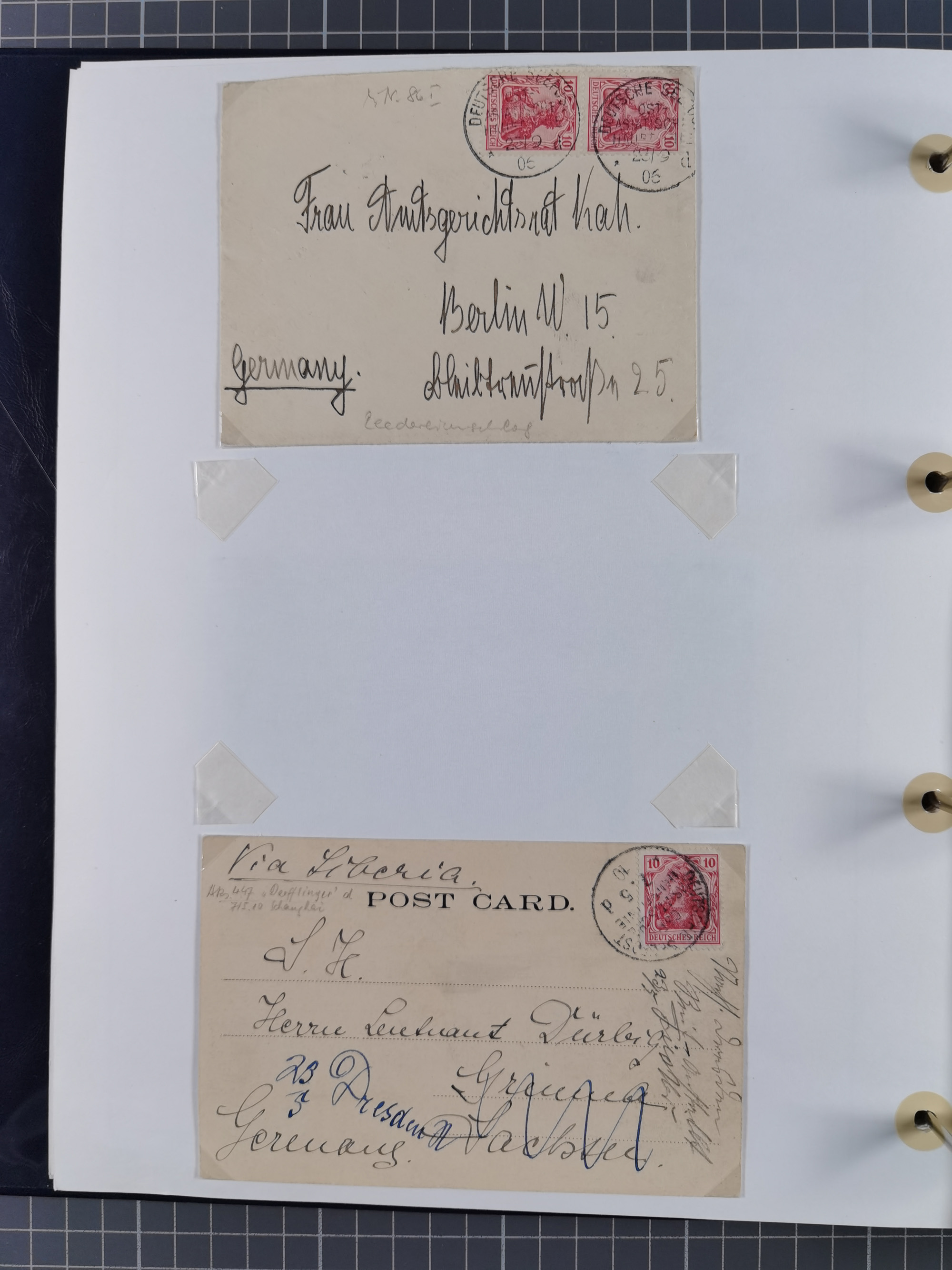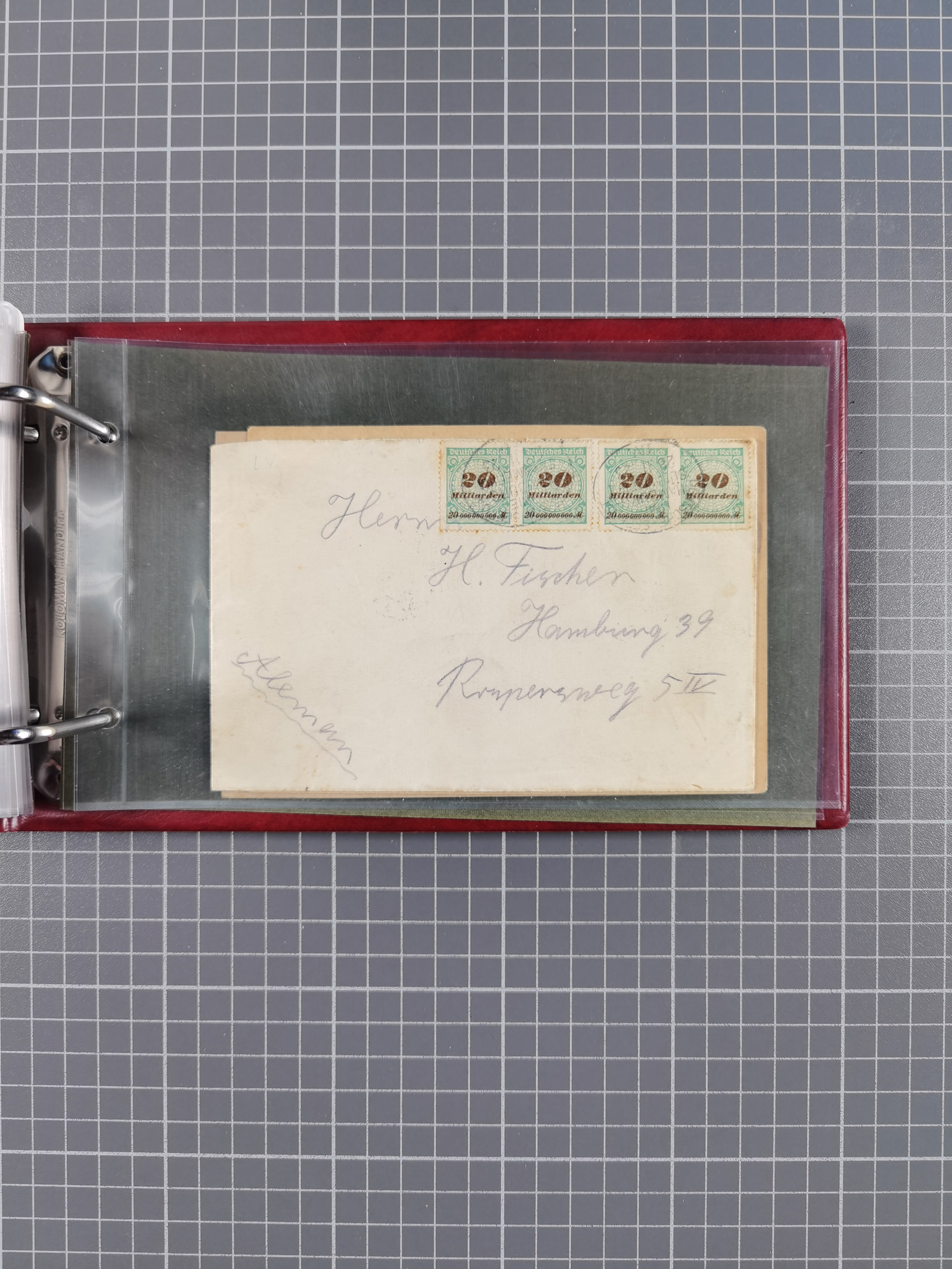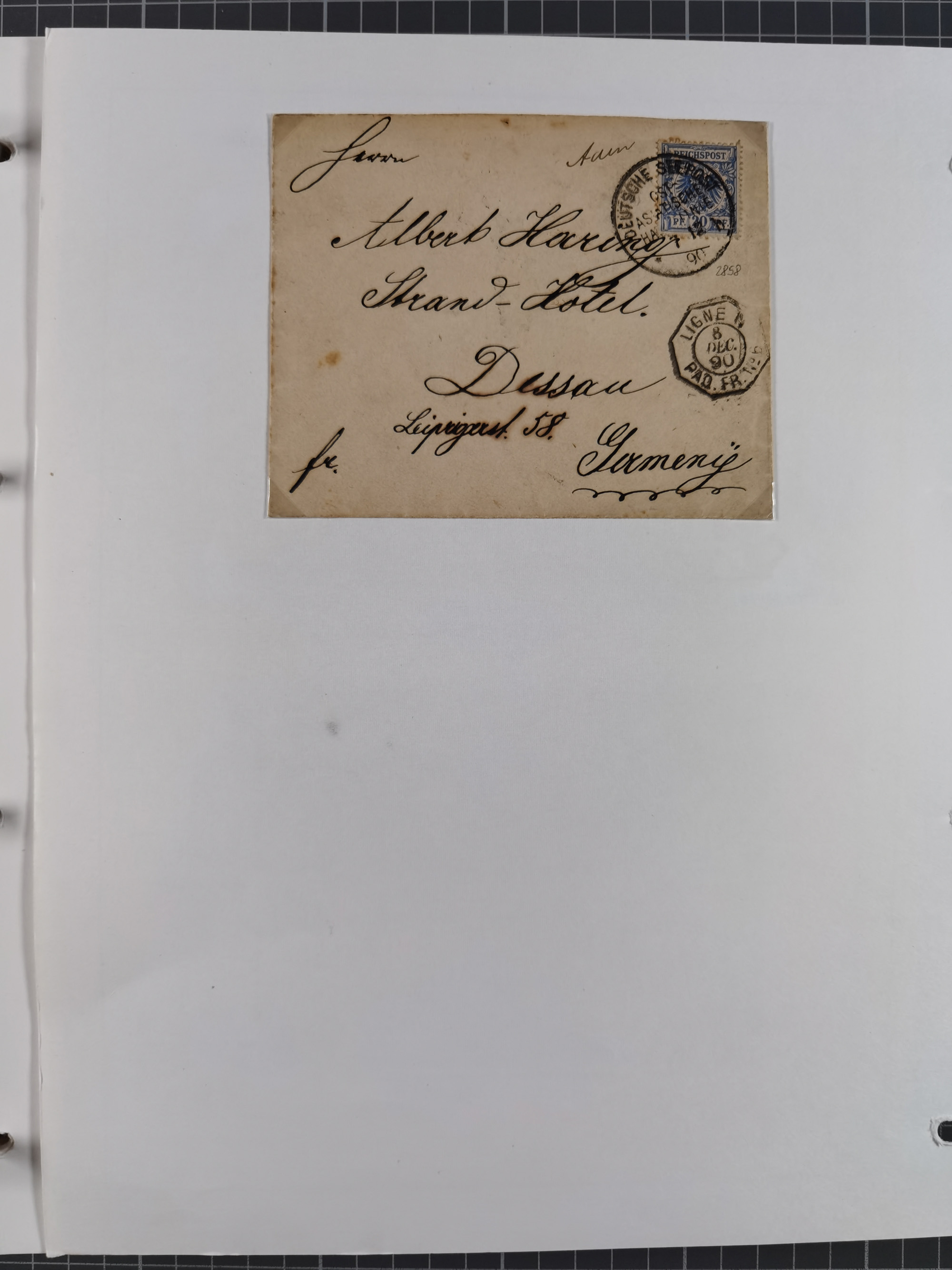 “DSP SYDNEY-HONGKONG *a 18.,4.04” (D. Medan), viermla klar auf vier Einzelmarken Germania 5 Pfg. als tarifgerechte Mehrfachfrankatur auf Brief nach Alzey mit Ankunftsstempel. Die Marken zum Teil mit Gelbflecken, ansonsten in guter Erhaltung. Ein seltener Schiffspoststempel aus der Südsee