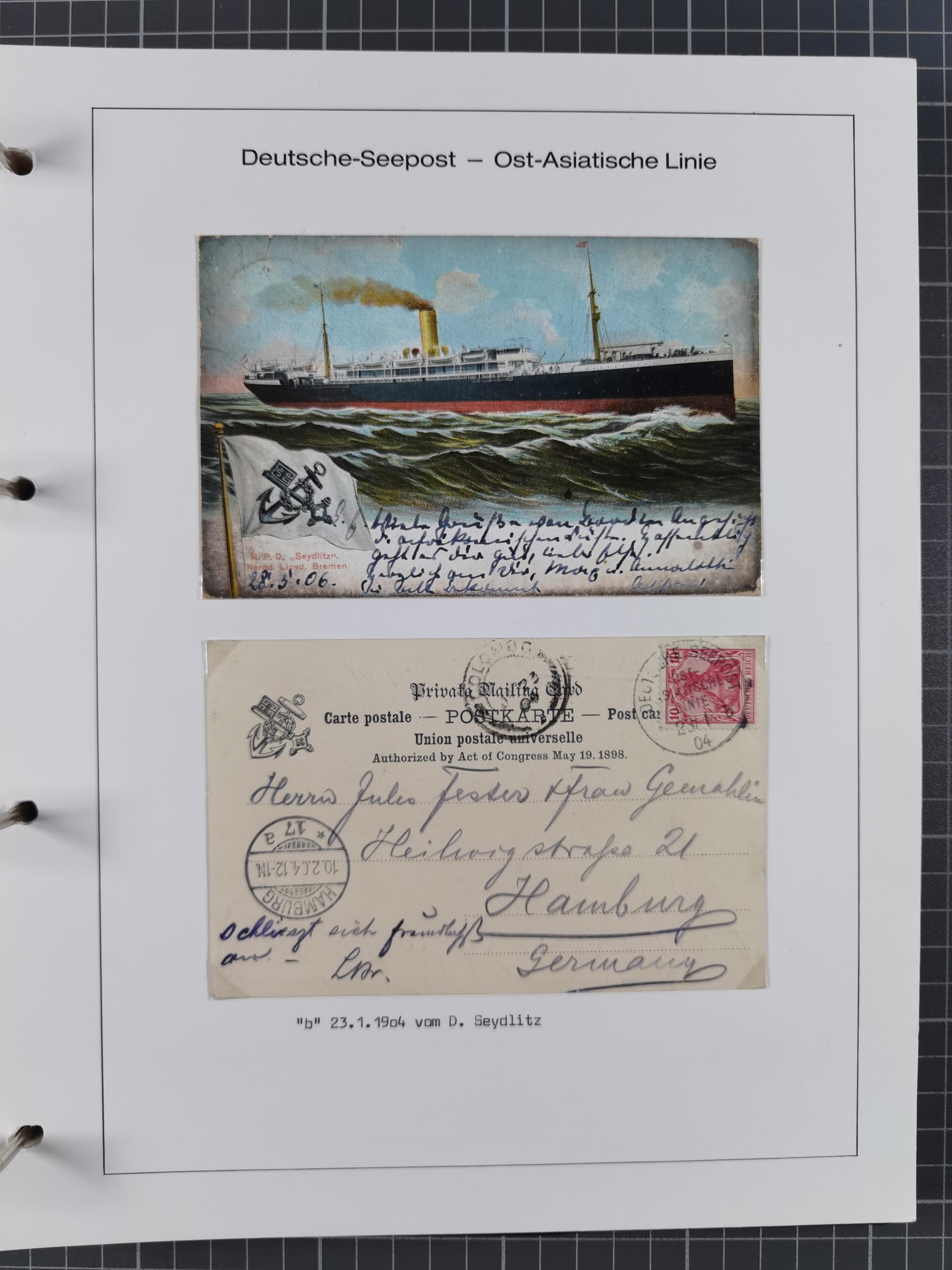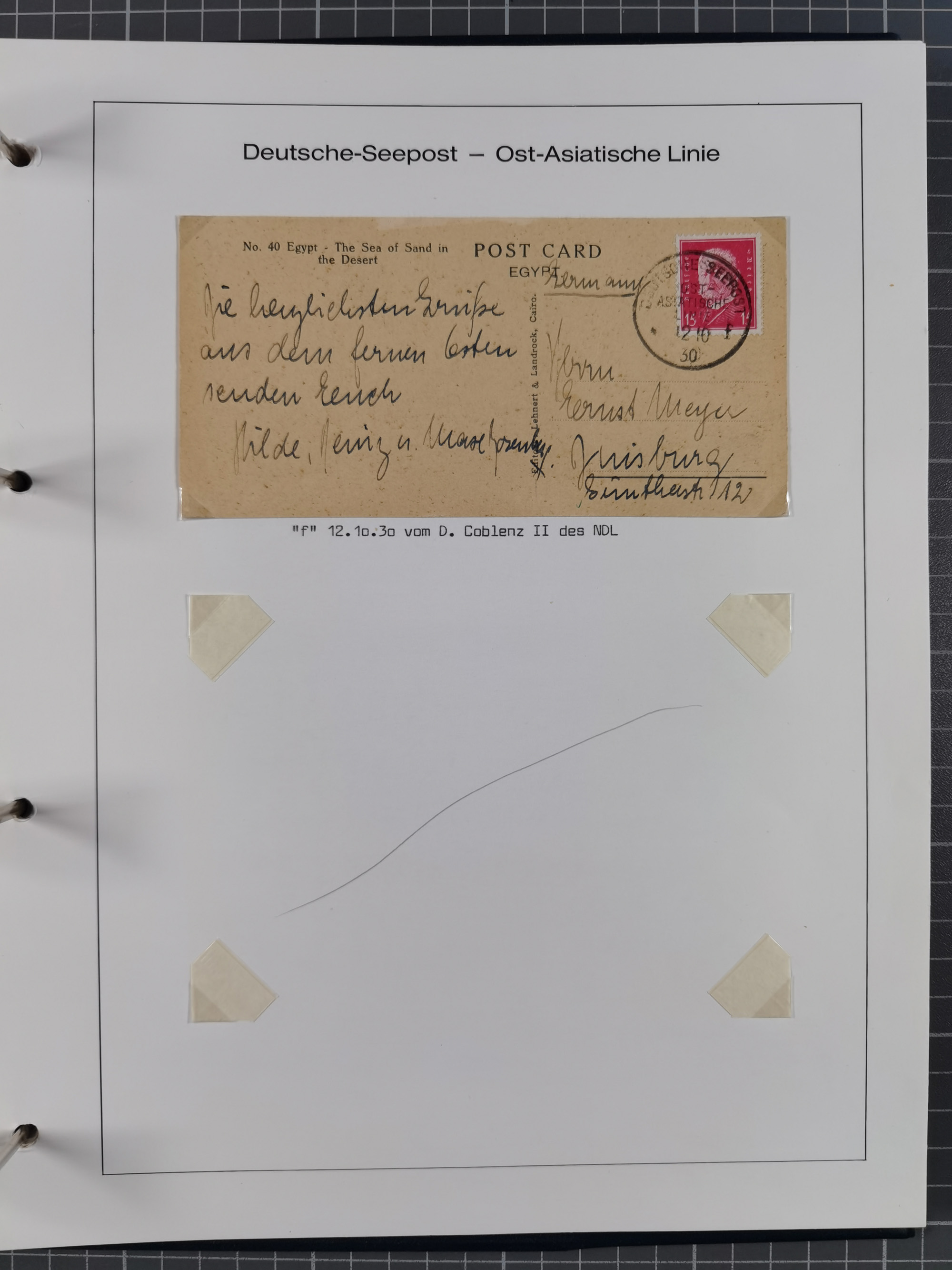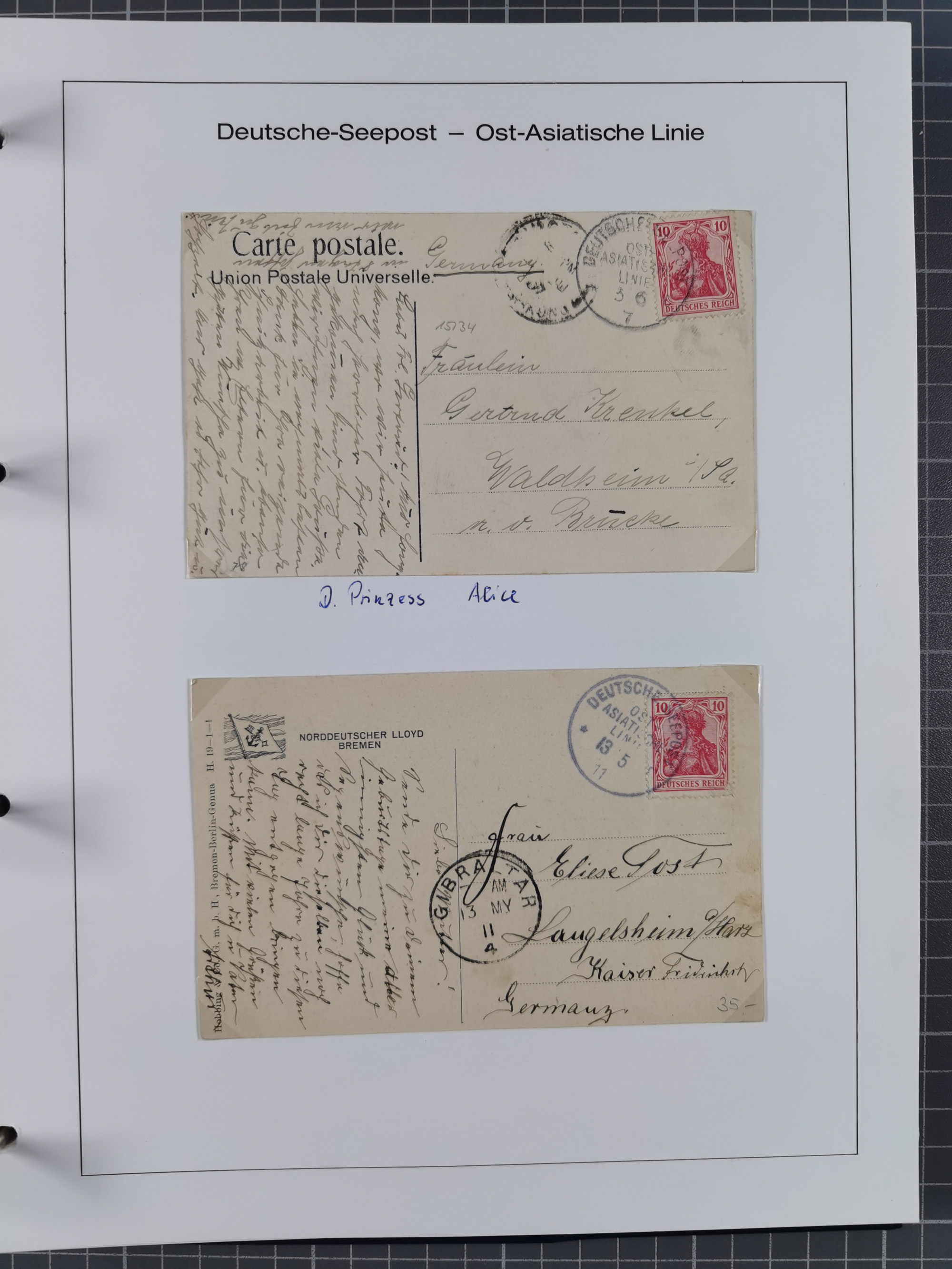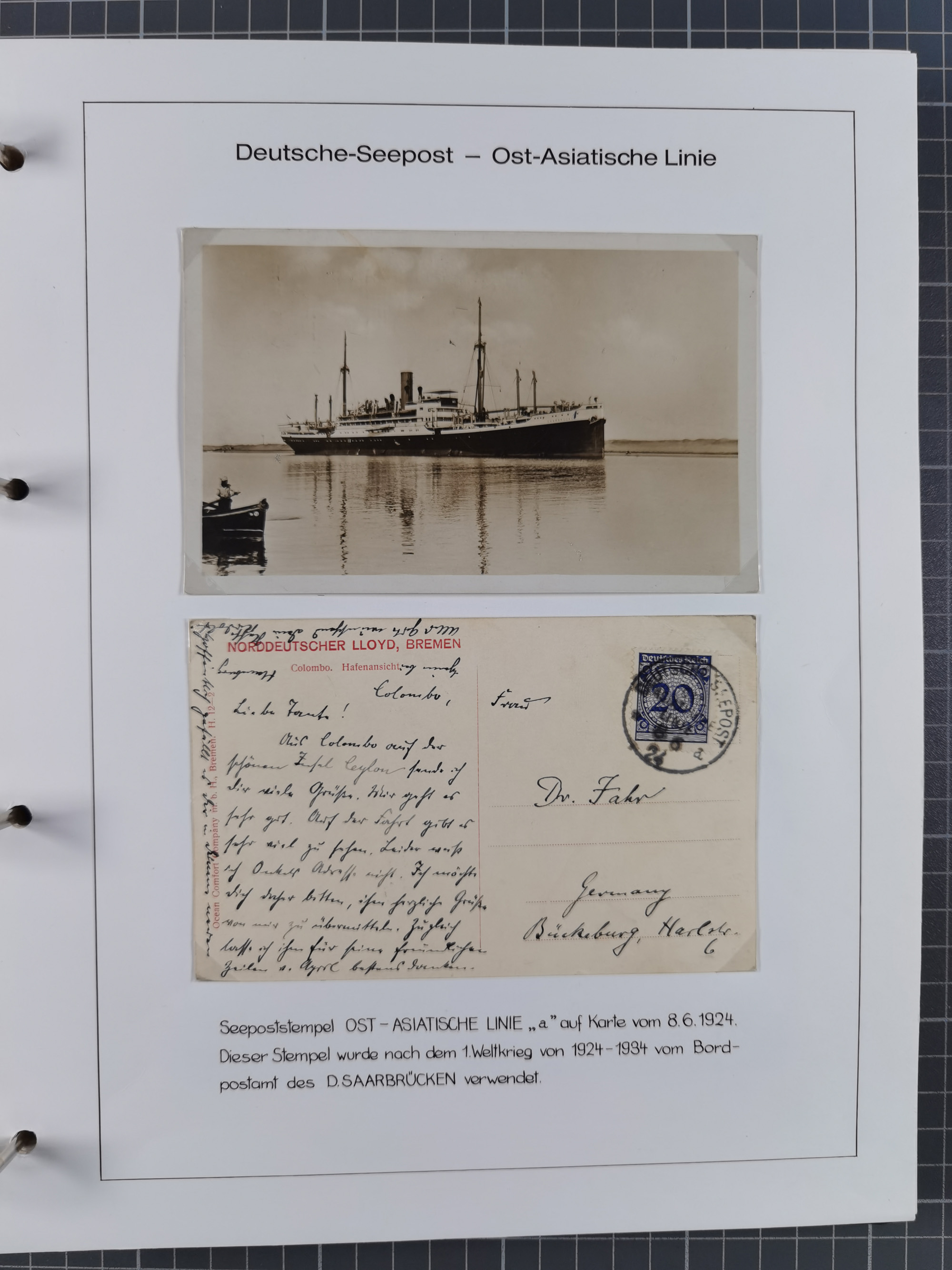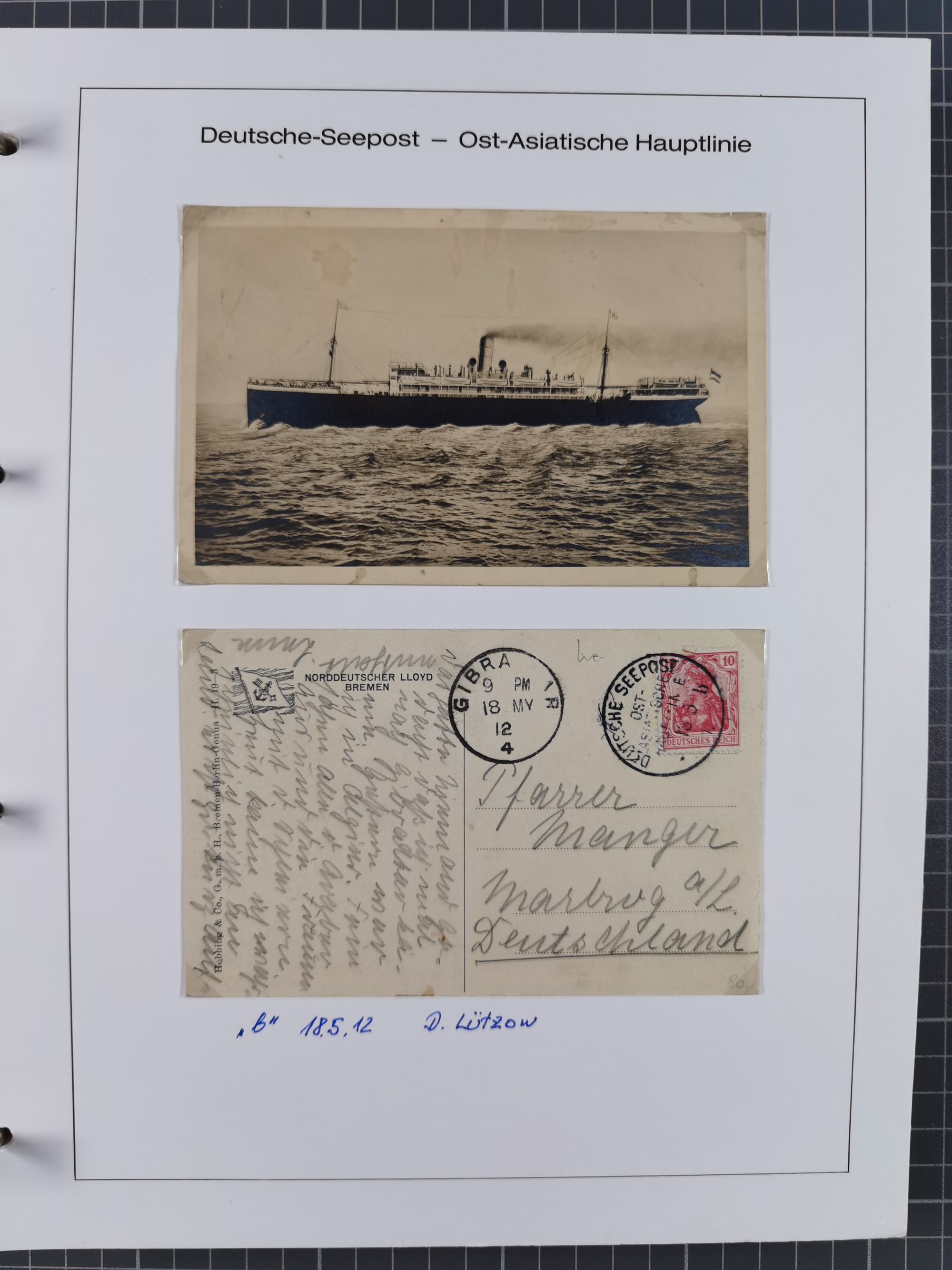 1887/1938, Sammlung “OST-ASIATISCHE HAUPTLINIE” und “OST-ASIATISCHE LINIE” mit ca. 120 Briefen, Karten und GSK, dabei frühe Post mit Aufgabe-Vermerken und R-Briefvorderseite 1905 mit R-Zettel “Deutsch Seepost…” und Ra2 “Reichspostdampfer Prinze Heinrich”. Fast durchgehen in guter Erhaltung und meist auf Albenblättern mit Beschriftung, ex Steinmeyer