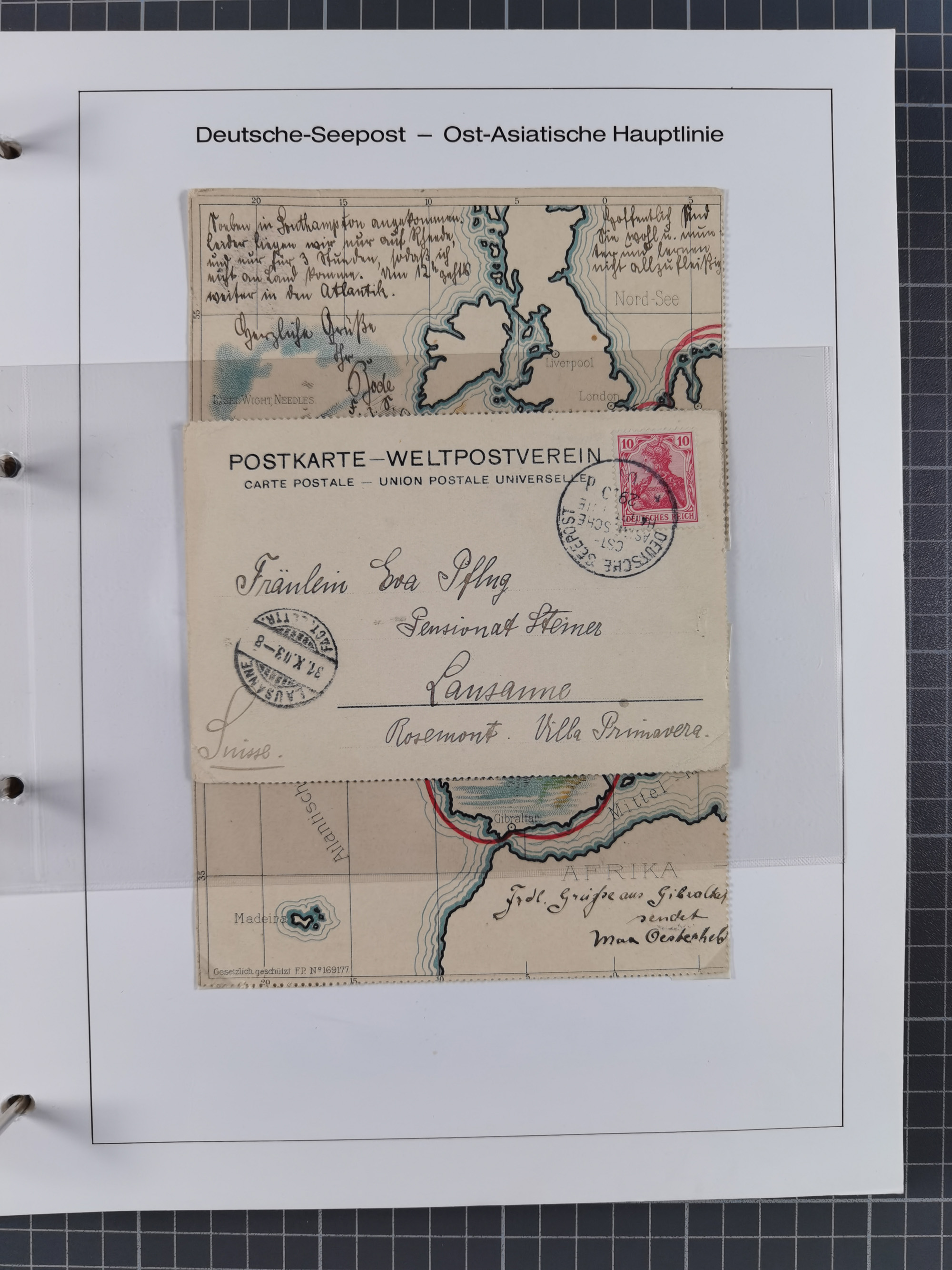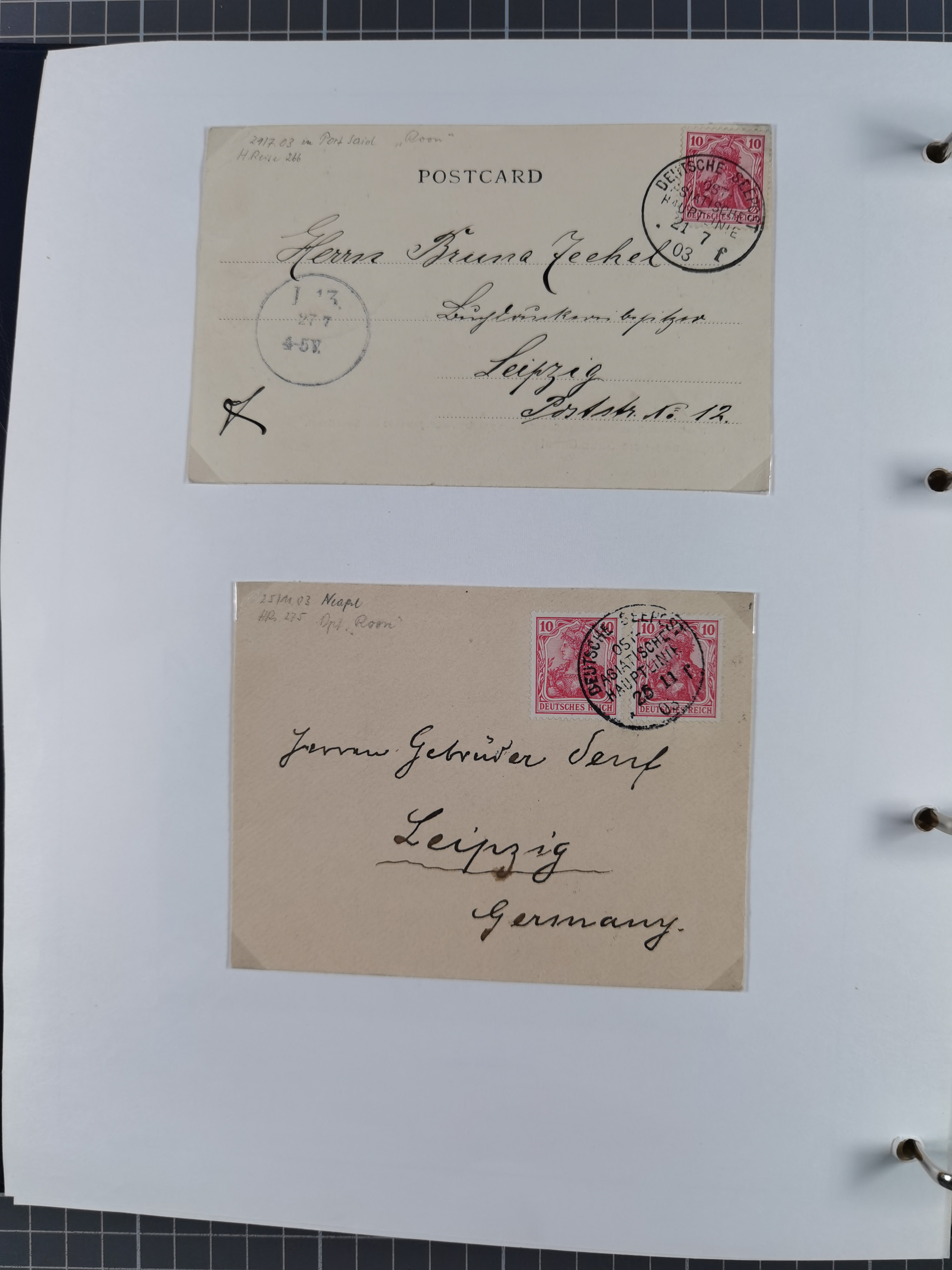 “DSP OST-ASIATISCHE HAUPTLINIE *d 25.3.10” mehrfach klar auf senkrechtem Viererstreifen Germania 10 Pfg. auf R-Brief mit R-Zettel “Deutsche Seepost Ostasiatische Linie” via Anvers nach Borna mit Ankunftsstempel, in guter Erhaltung