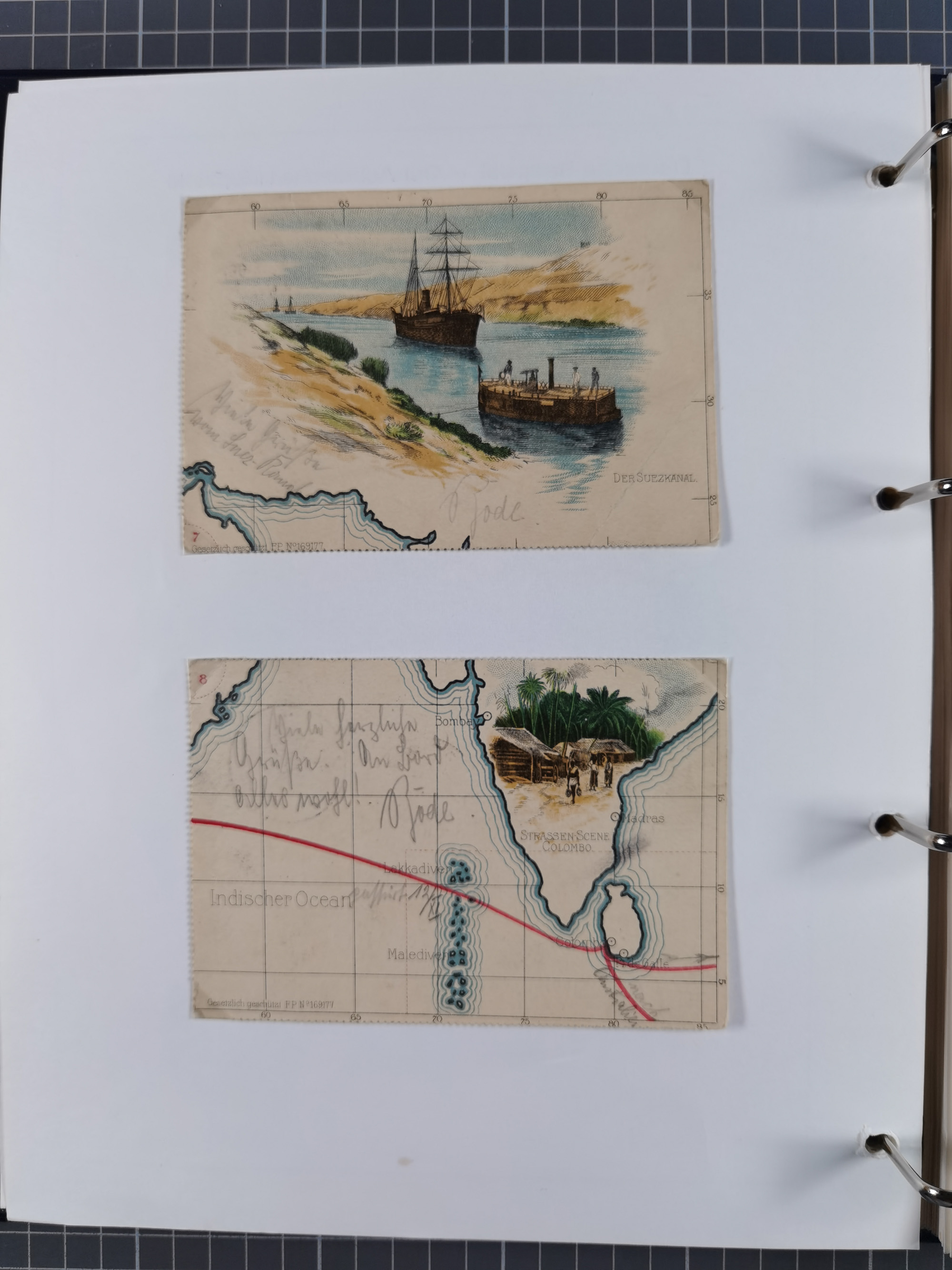 “DSP OST-INDISCHE LINIE *l 8.4.06" klar auf Germania 10 Pfg. auf Ansichtskarte “Alexandria” mit Text und Datierung “Suez 8.4.06” nach Vegesack bei Bremen mit vorderseitigem Ankunftsstempel, in einwandfreier Erhaltung