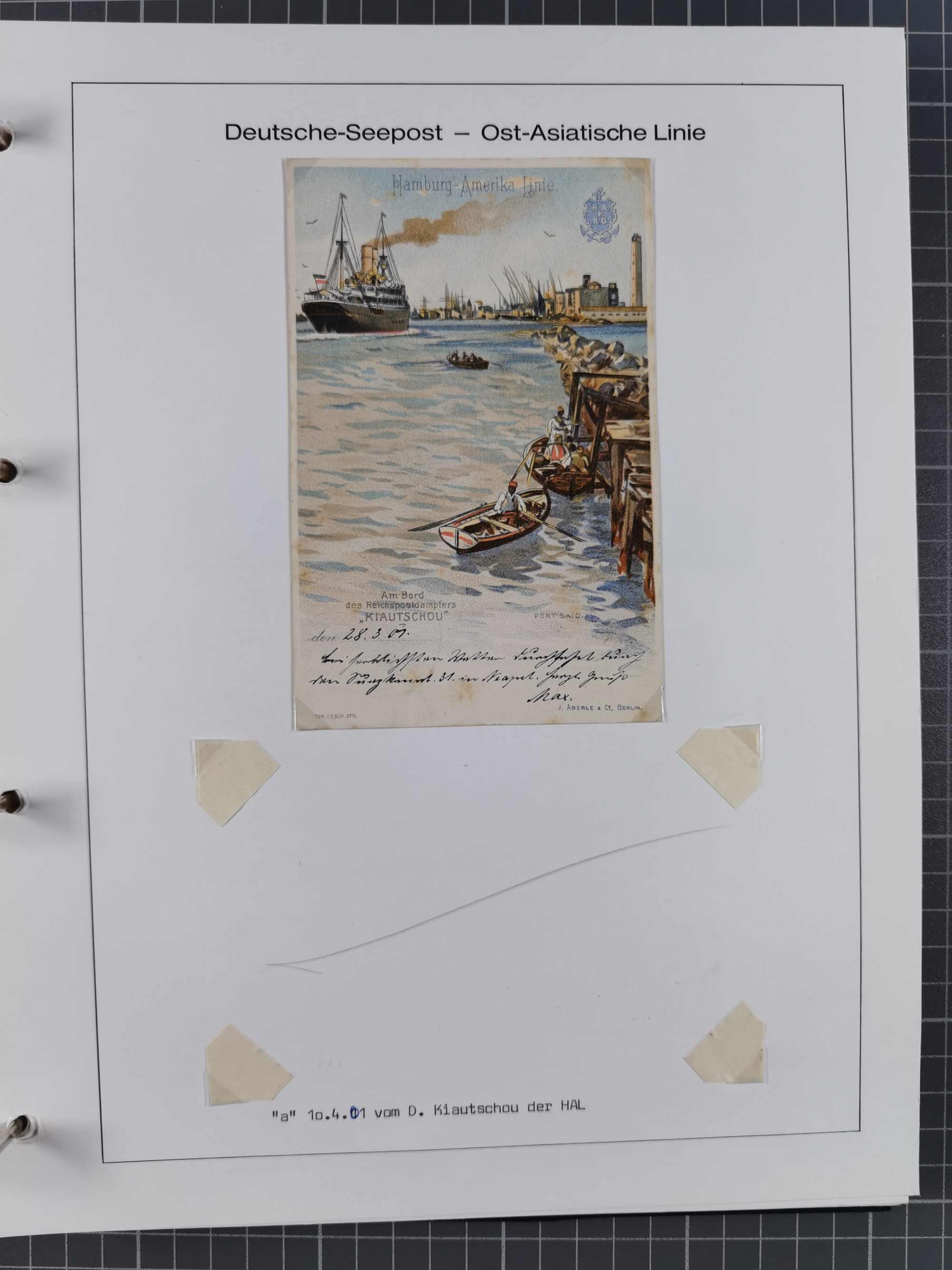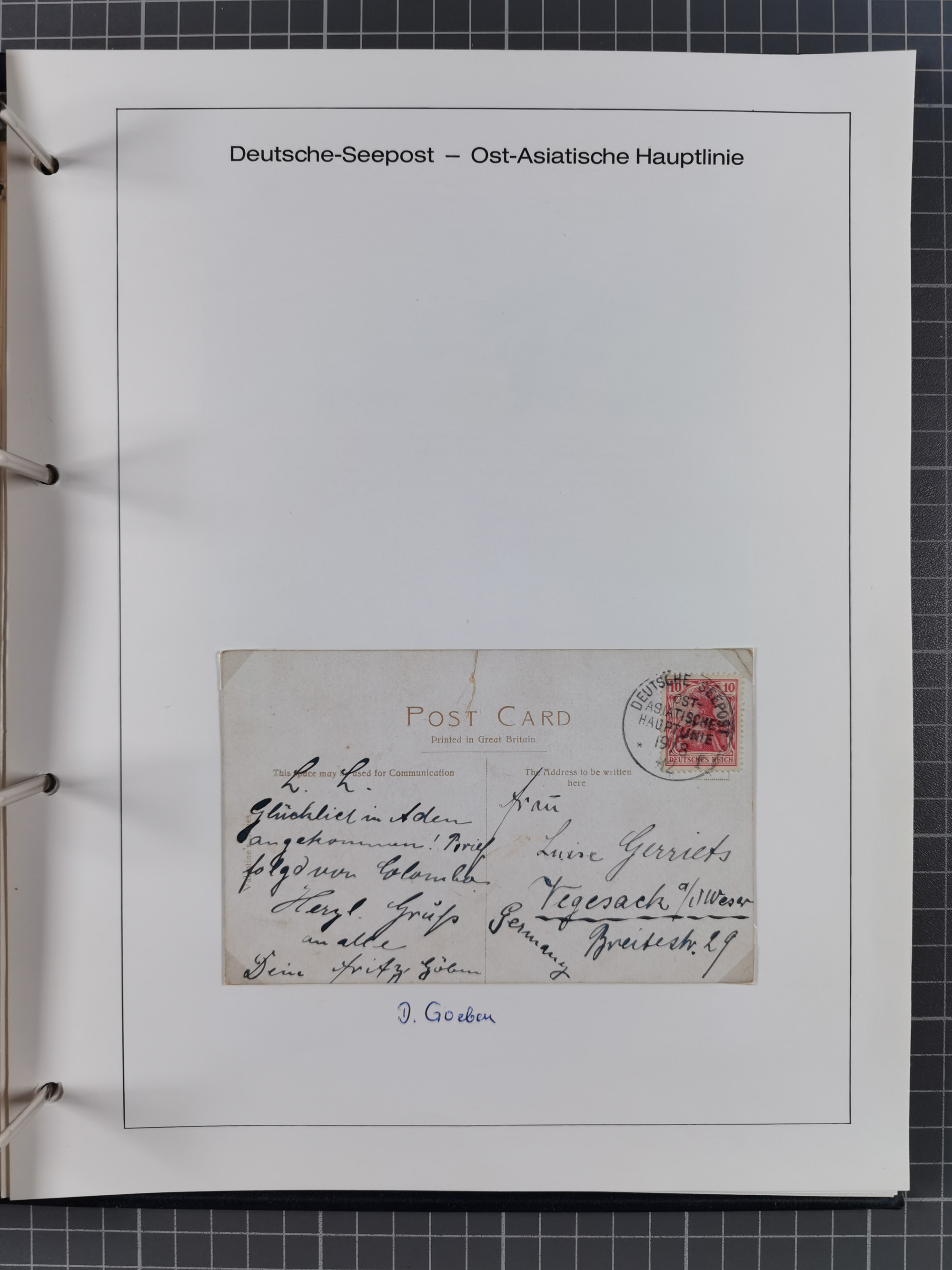 “DSP OST-INDISCHE LINIE *gg 24.10.04" klar auf Germania 10 Pfg. auf Ansichtskarte “Port Said” mit Grußtext nach Elsfleth mit vorderseitigem Ankunftsstempel. Die Karte links unten fehlerhaft, ansonsten in guter Erhaltung
