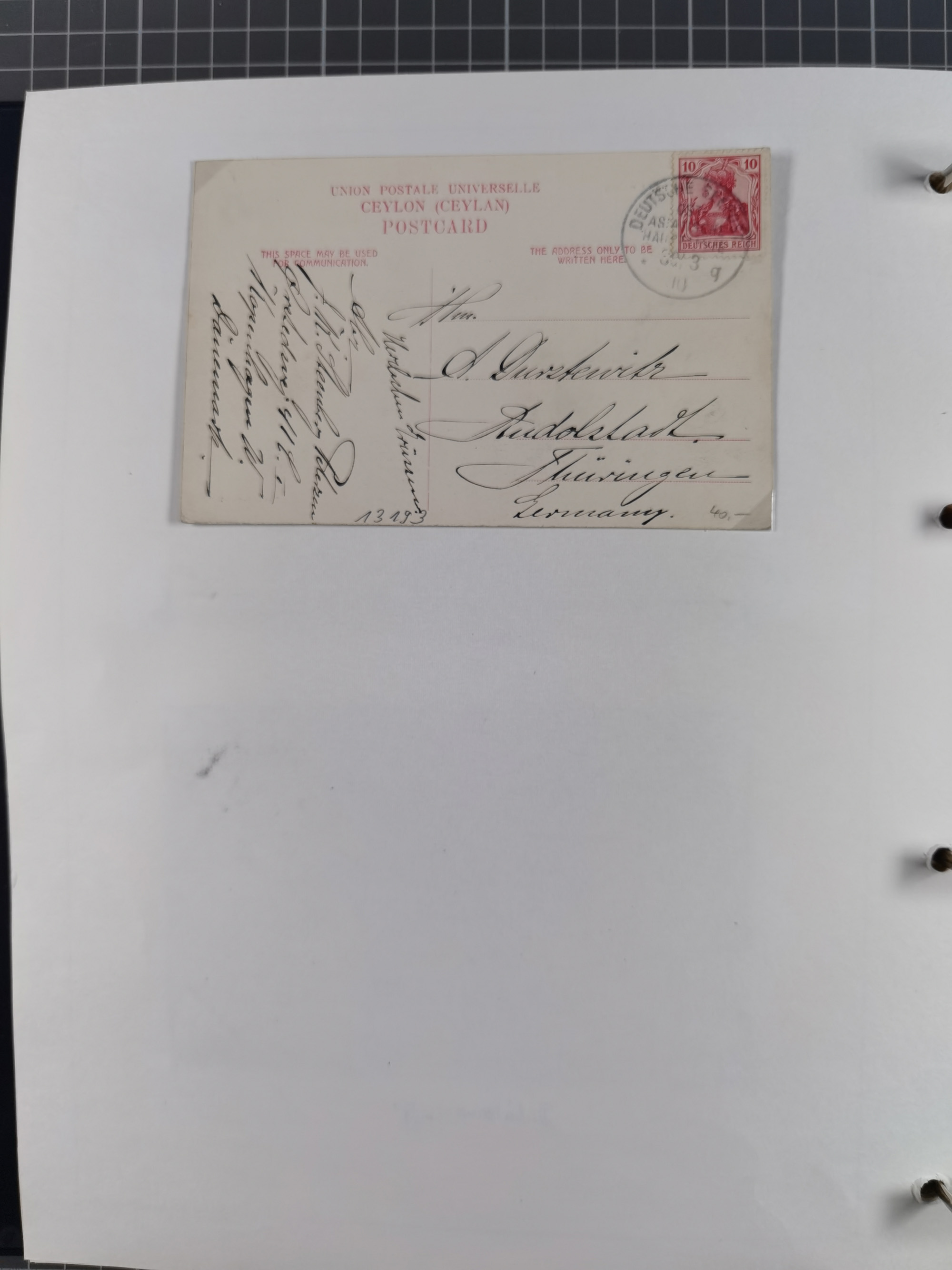 “DSP OST-INDISCHE LINIE *b 22.9.03 (D.Braunfels) sehr klar auf Germania 10 Pfg. auf Ansichtskarte ”Triplicane, Madras" mit Text nach Bremen mit vorderseitigem Ankunftsstempel, in einwandfreier Erhaltung, selten