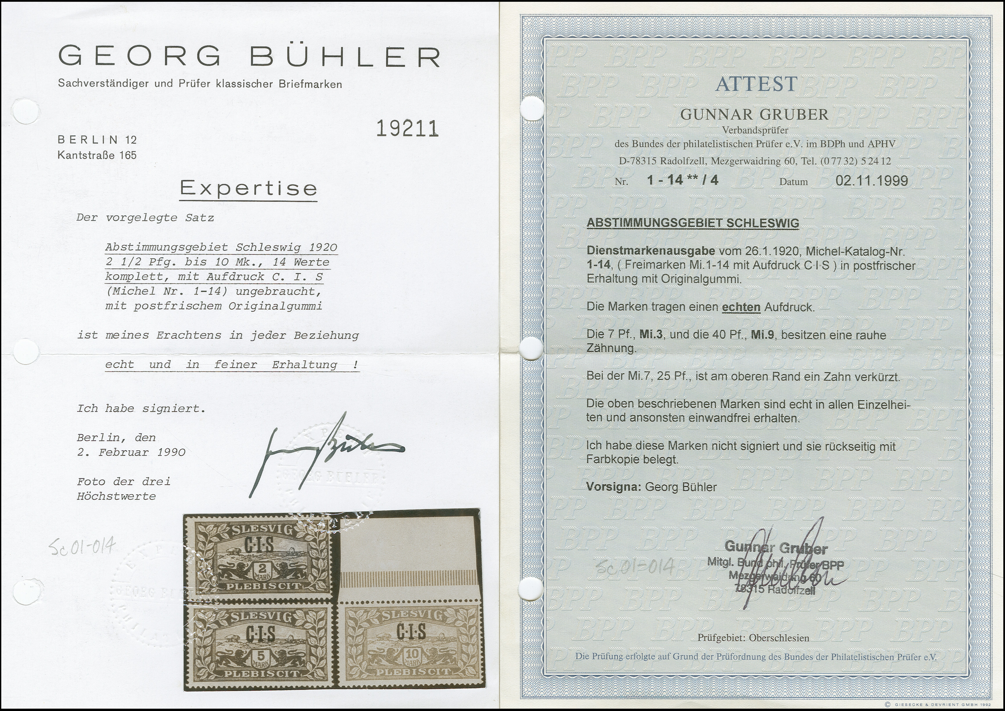 1920, CIS 1-10 Mark, 10 Mark mit Oberrand, postfrisch, 10 Mark mit herstellungsbedingt gummifreien Stellen am Oberrand, tadellos, sign. Bühler und Fotoattest Gruber BPP (1999)