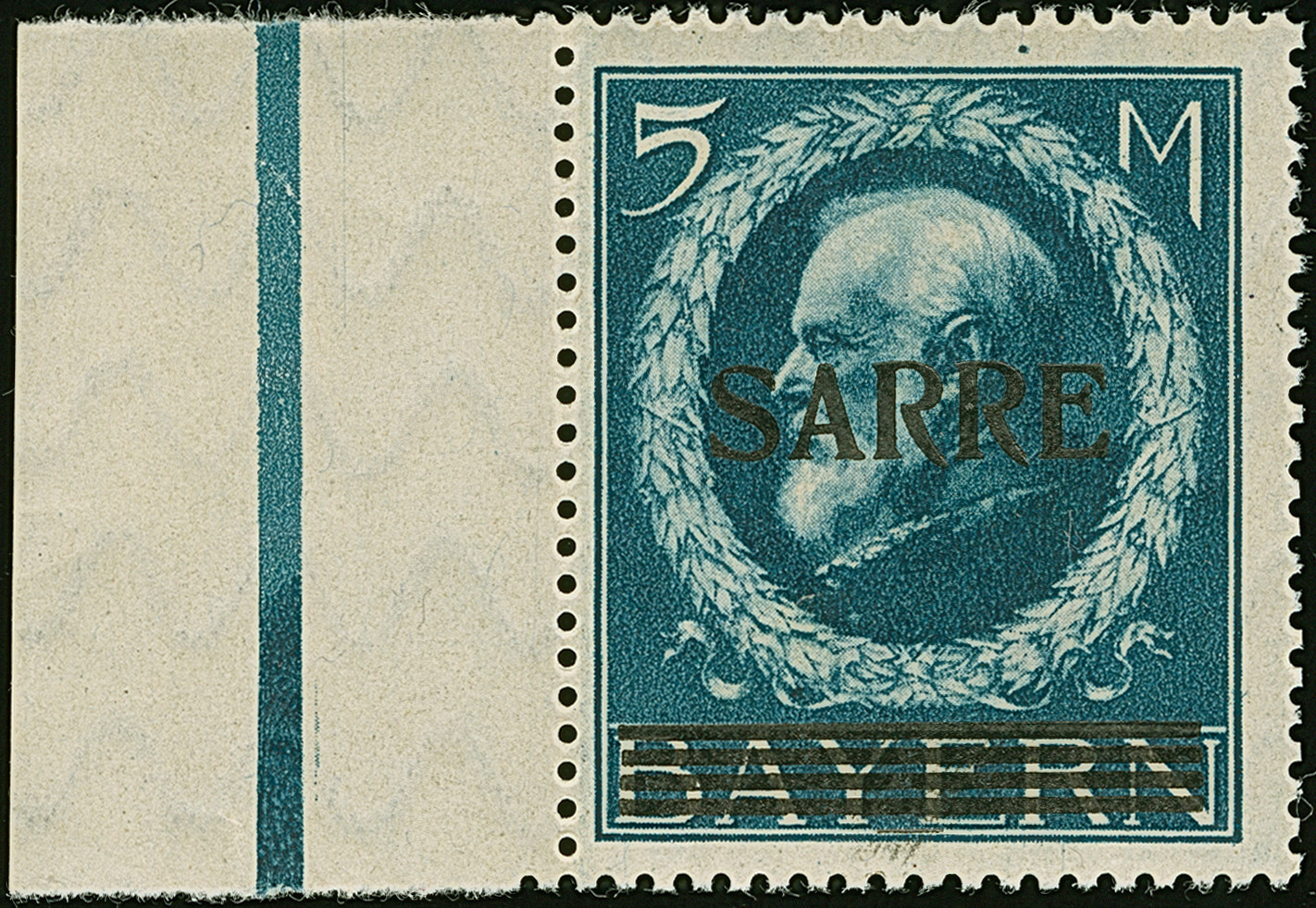5 M. mit linken Bogenrand, postfrisch in einwandfreier Erhaltung. Signiert LV Saar und Schupp, Fotoattest Bernhard BPP (2025)