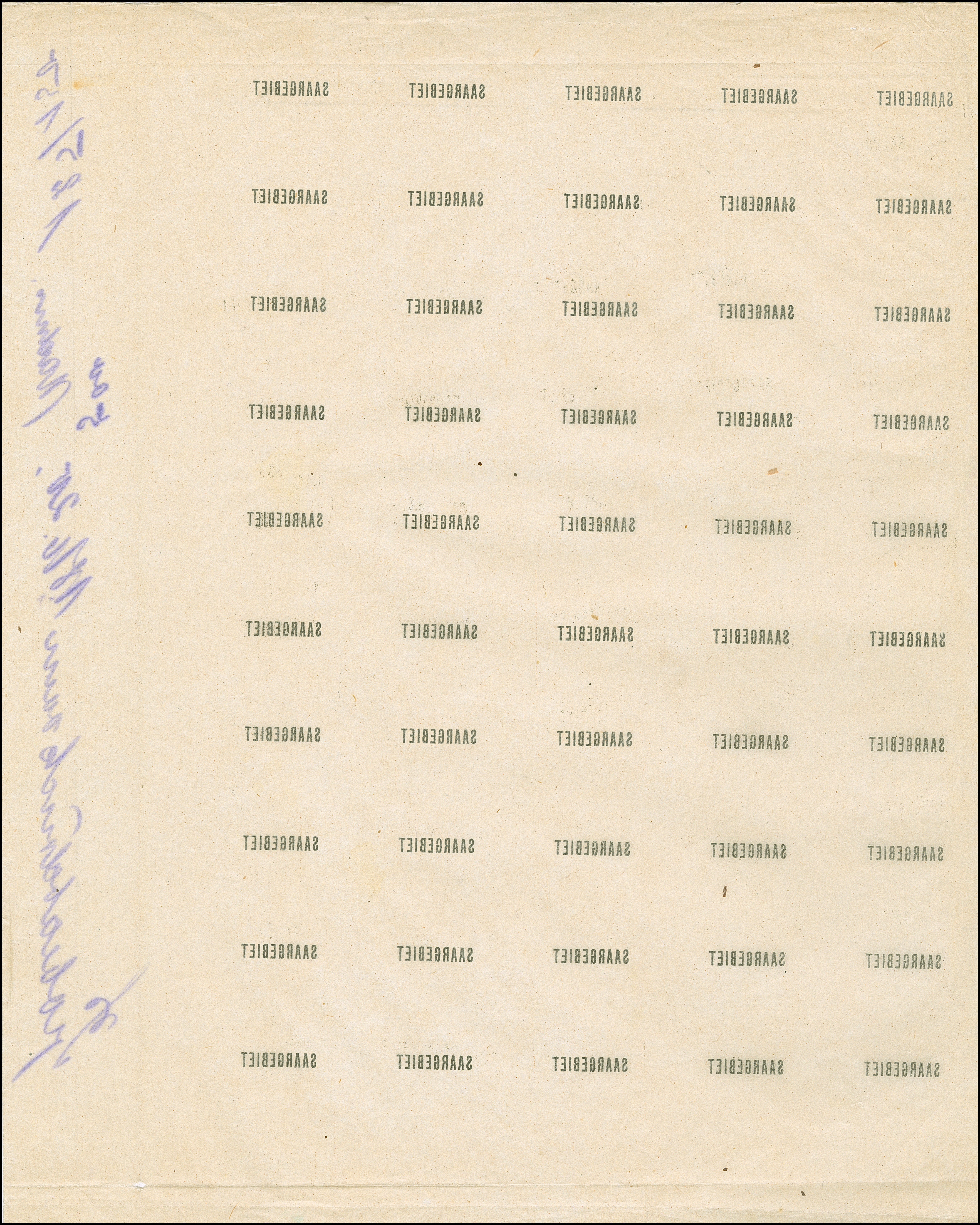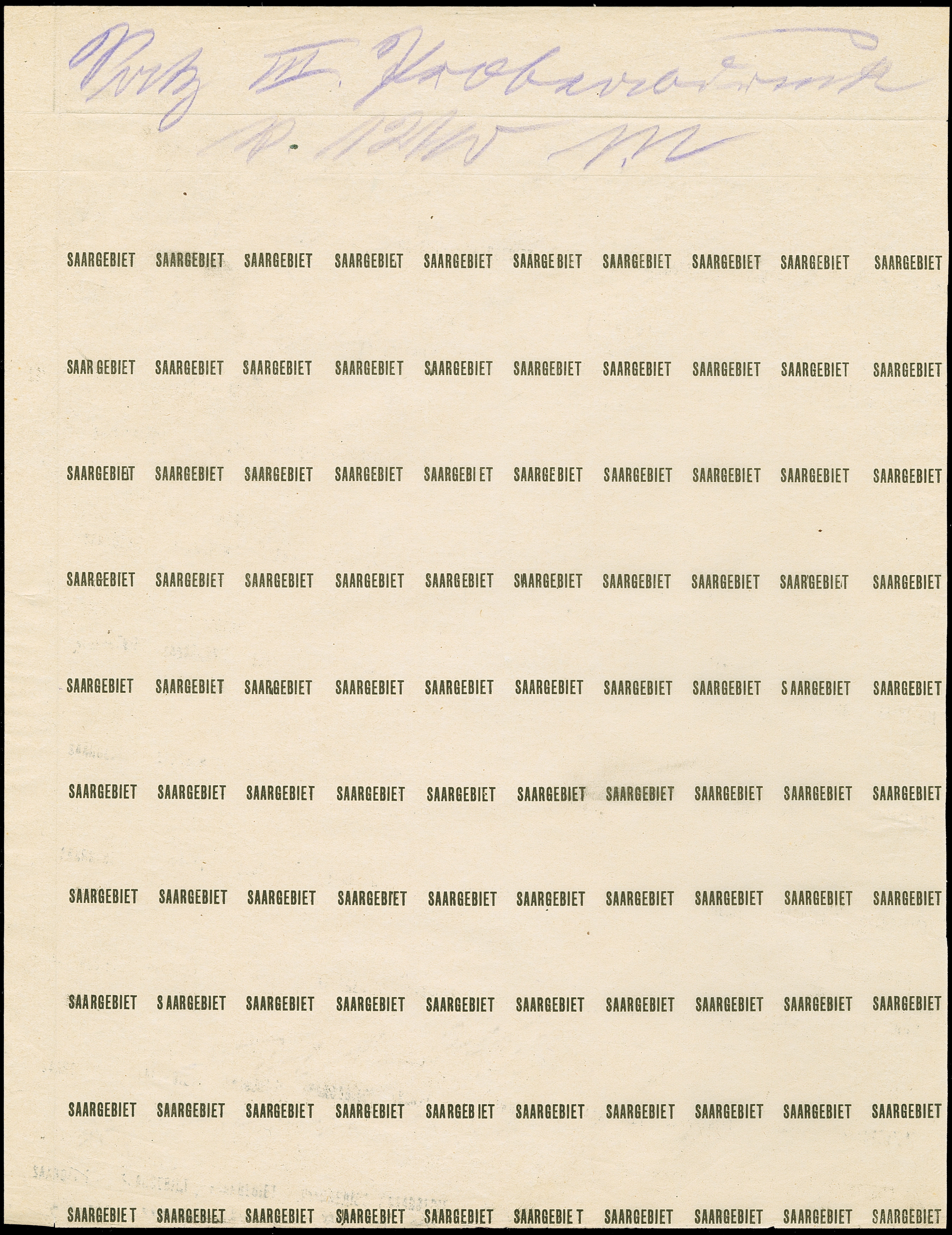 Kontrollabzug der Aufdruckplatte III auf dünnem Maschinenpapier, im Oberrand mit handschriftlicher Angabe “Satz III Probedruck 10 12/20 m”, wie üblich leicht bügig und kleine Randrisschen, einwandfrei, Fotoattest Bernhard BPP (2026)