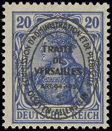 1920, Ovalaufdruck auf Germania 20 Pfennig lilaultramarin, postfrisch, tadellos, sign. Hey BPP mit Befund (2006)