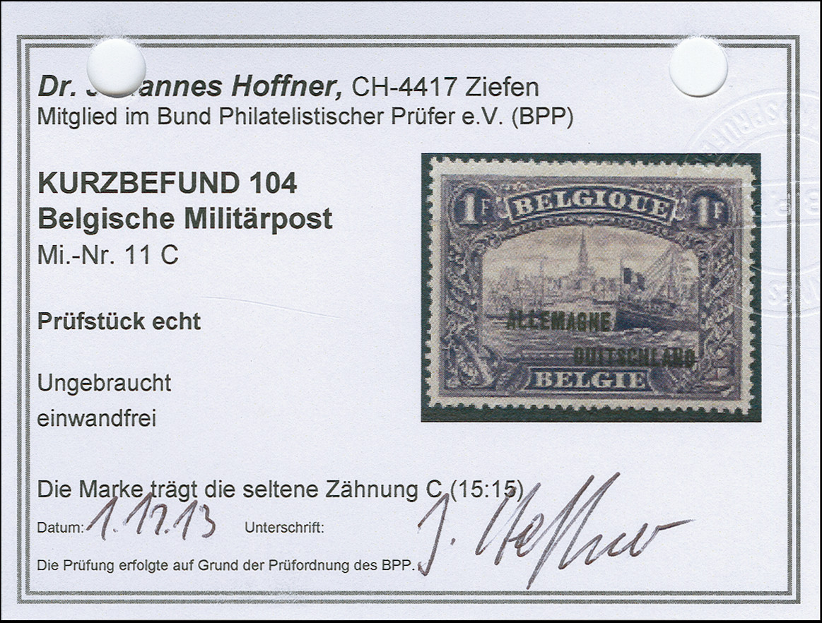1920, 1 Franc violett, Aufdrucktype II, gezähnt 14 ¾:15, sauber ungebraucht, tadellos, Kurzbefund Hoffner BPP (2013)