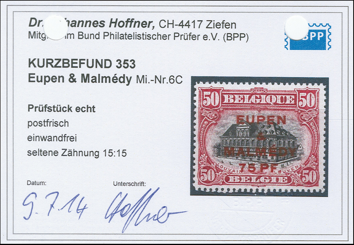 1920, 75 PF. auf 50 Cent karmin/schwarz, gezähnt 14 ¾:15, postfrisch, tadellos, selten, Kurzbefund Hoffner BPP (2014)