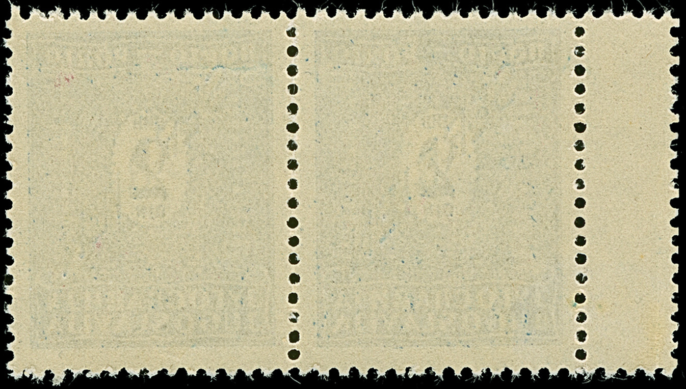 1941, 2 Dinar schwärzlichblau, waagerechtes Paar mit vollständig gezähntem, kleinen Leerfeld links, postfrisch, tadellos. Wesentlich seltener als die Katalognotierung es vermuten lässt, unsigniert mit Befund Kleymann BPP (2007)