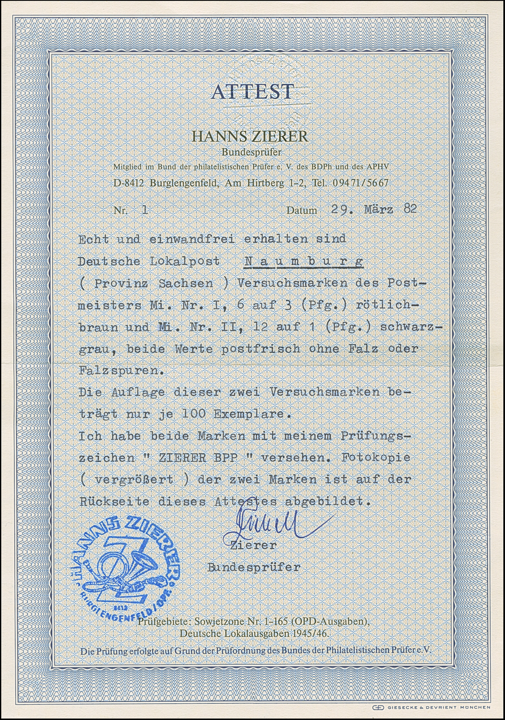 1945, Aufdruckausgabe 6 auf 3 Pfg. und 12 in rot auf 1 Pfg., postfrisch. Tadellos. Signiert Zierer BPP mit Attest (1982)