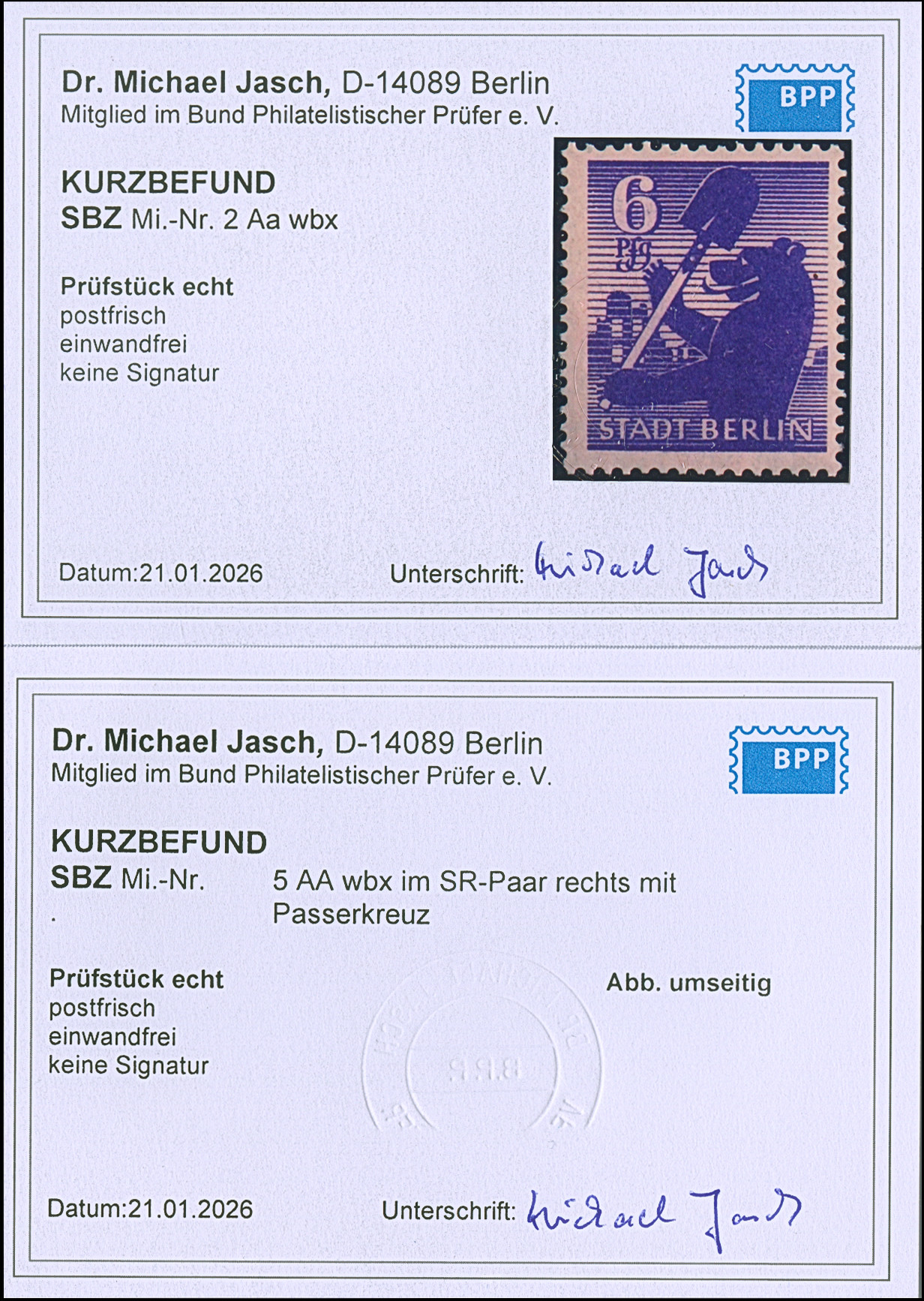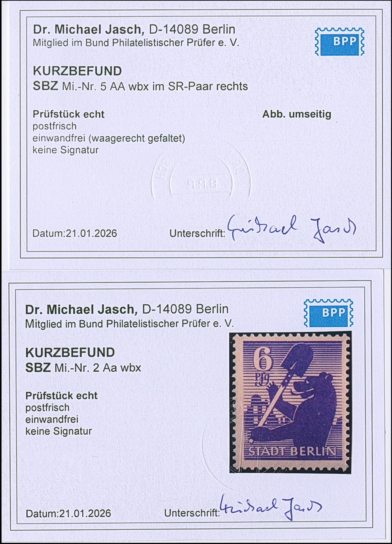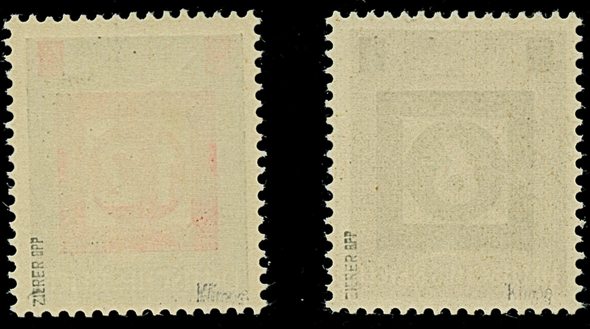 6 Pfg. und 12 Pfg. (senkrechtes Paar) auf Papier mit glatter Gummierung, postfrisch einwandfrei. Unsigniert und jeweils Kurzbefund Dr Jasch BPP.