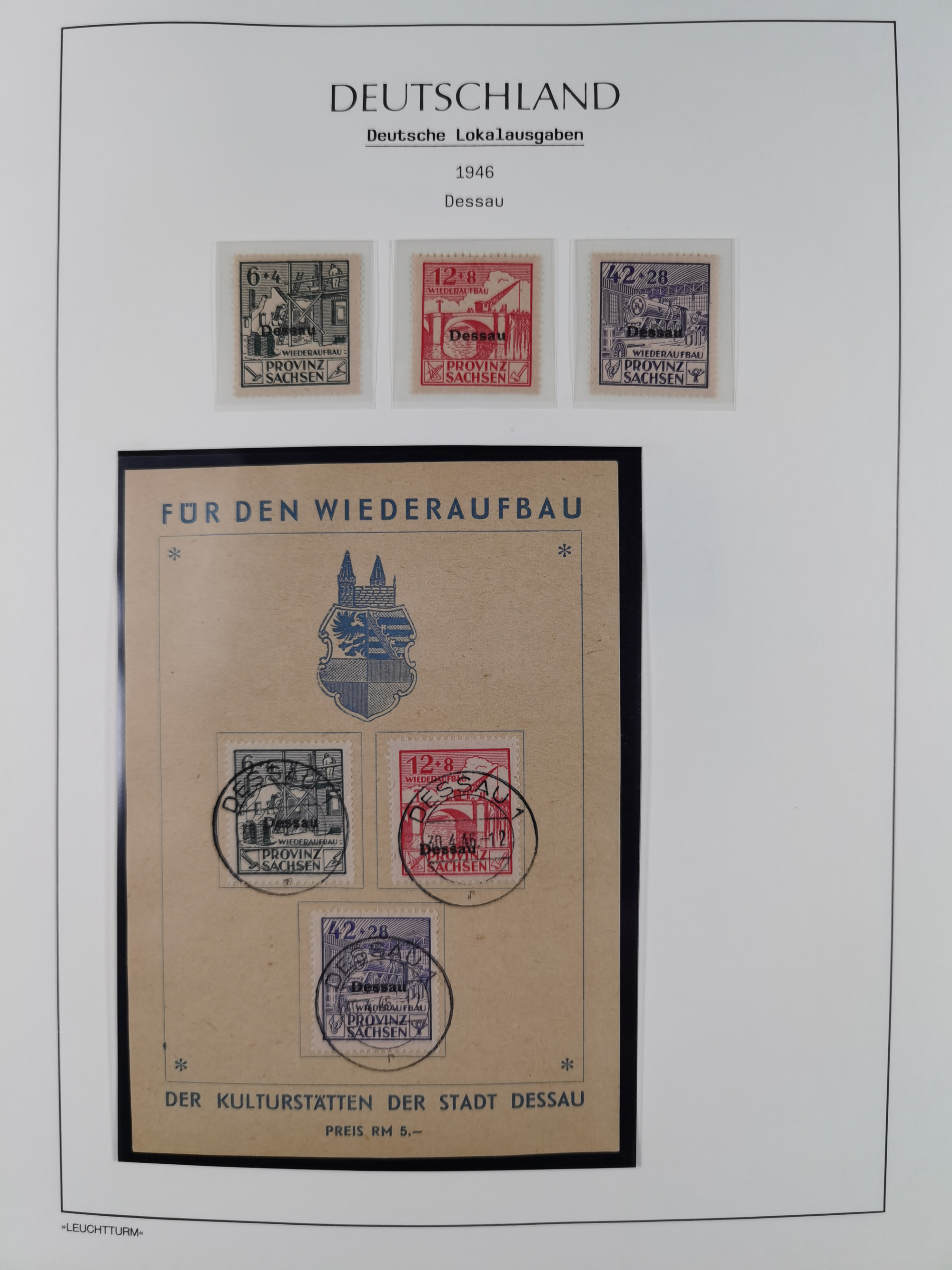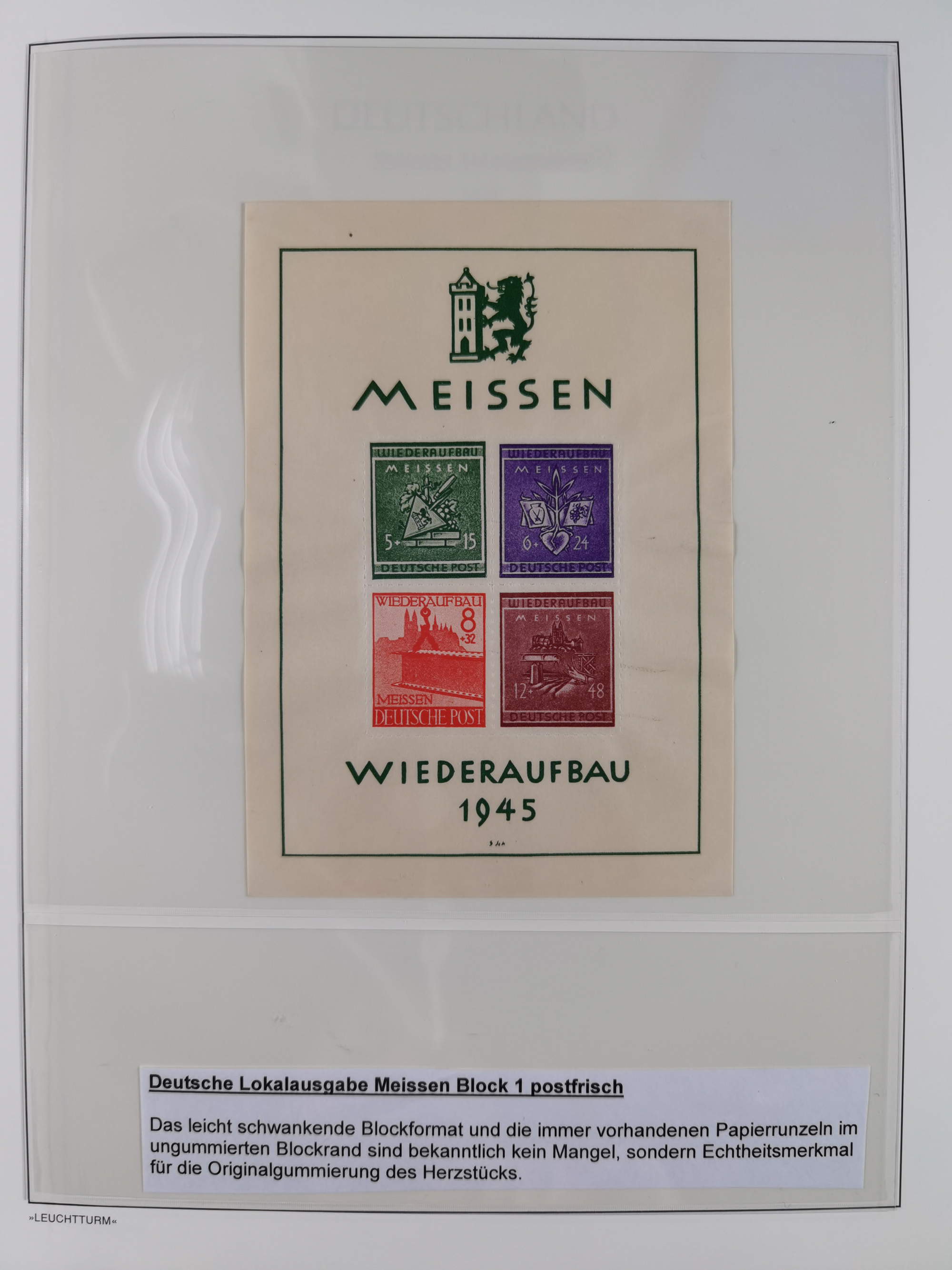1945/46, postfrische Sammlung mit vielen kompletten Ausgaben und Blocks, dabei Finsterwalde, Großräschen, Glauchau, Meißen, Oldenburg, Wittenberg, etc., teils sign., gute Erhaltung