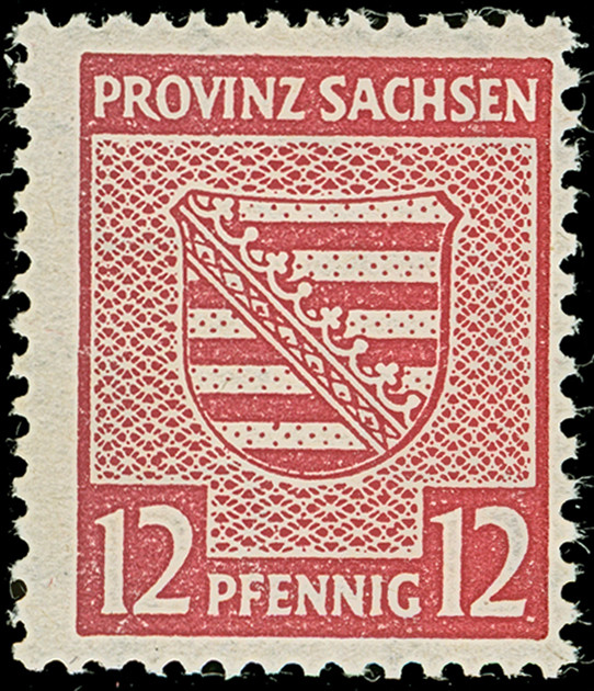 1945, Wappen 3 Pfg. mit Wasserzeichen “Stufen steigend”, Oberrandstück, allseits breitrandig, Marke postfrisch, im weiten Oberrand mit Falzrest, einwandfrei. Eine der großen Seltenheiten der SBZ. Mehrfach sign. und Fotoattest Dr. Herbst BPP (1983)