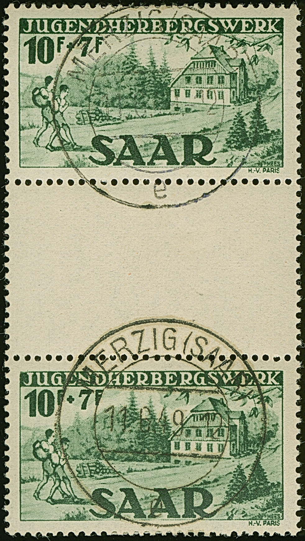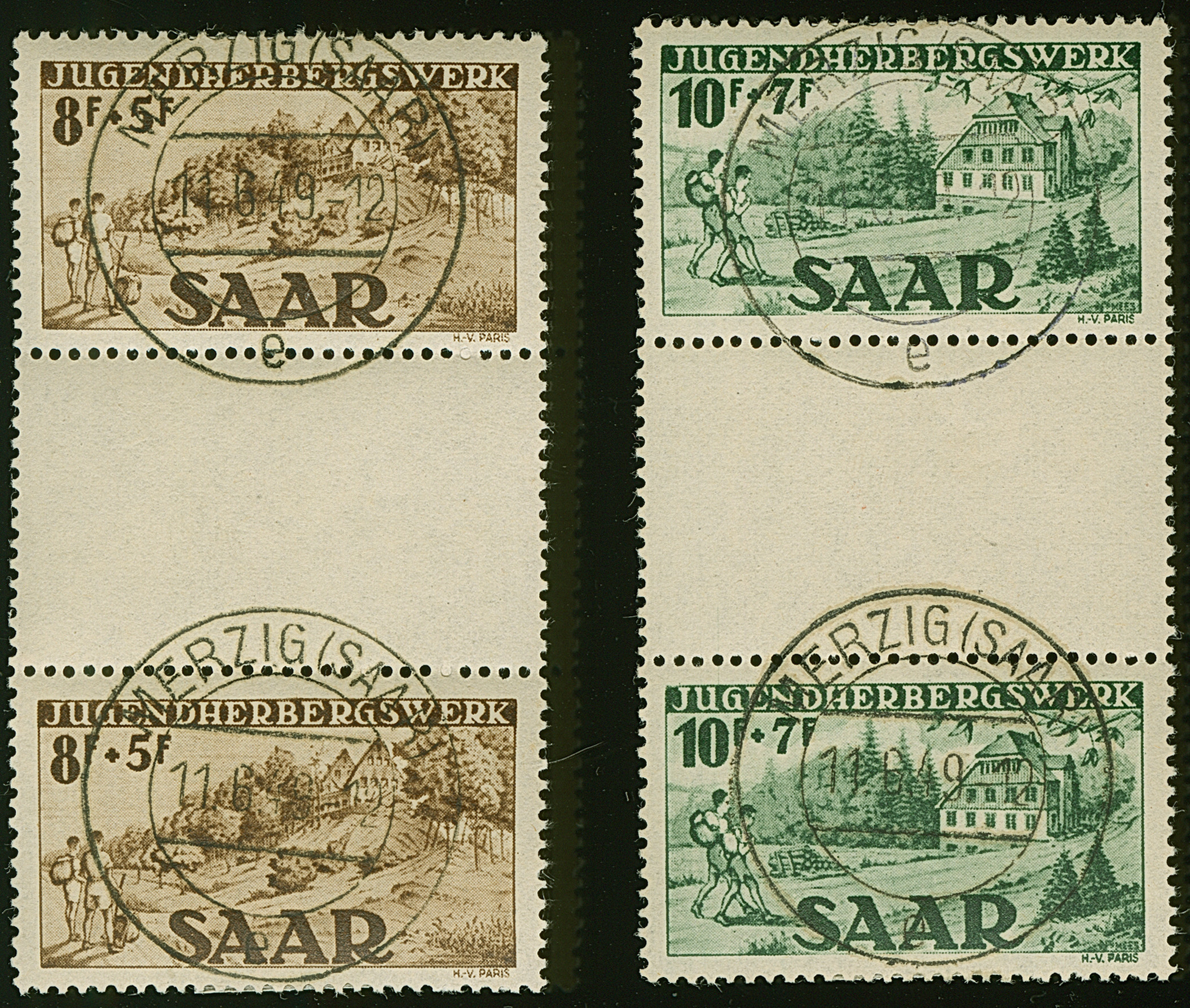 1949, Jugendherbergswerk 8 und 10 Fr., je im senkrechten Zwischenstegpaar, sauber gestempelt, tadellos, Fotobefund Ney BPP (2007)