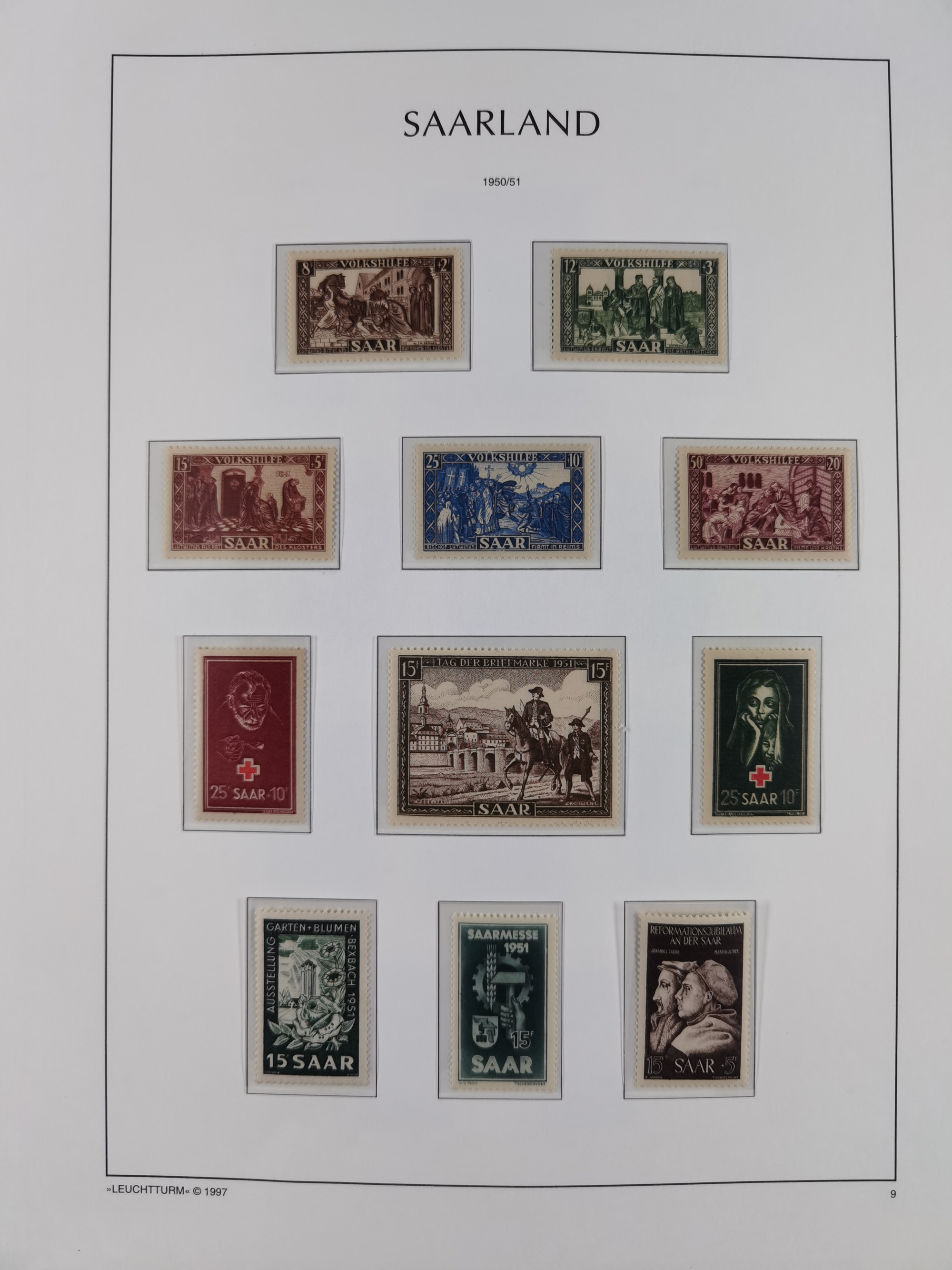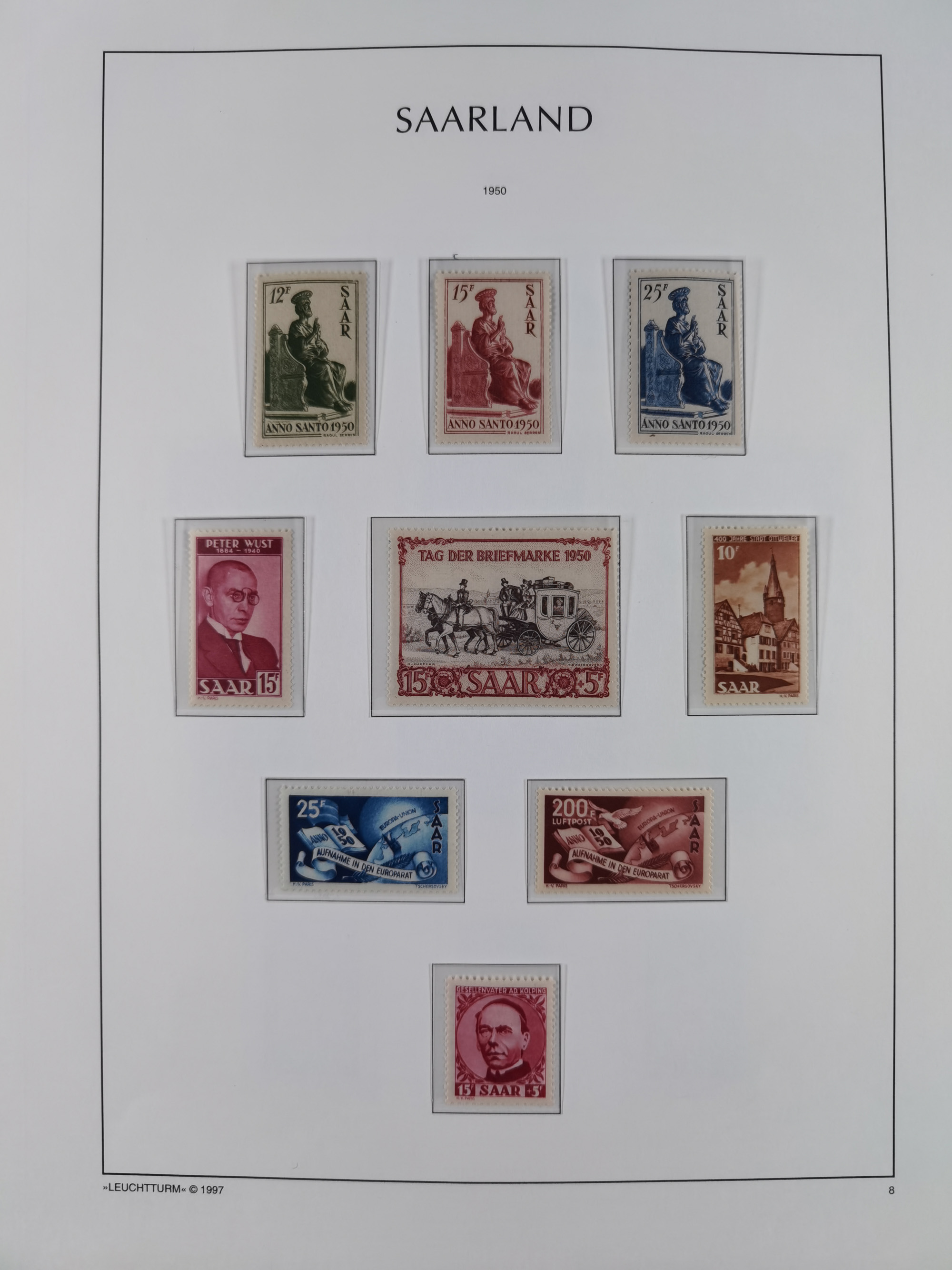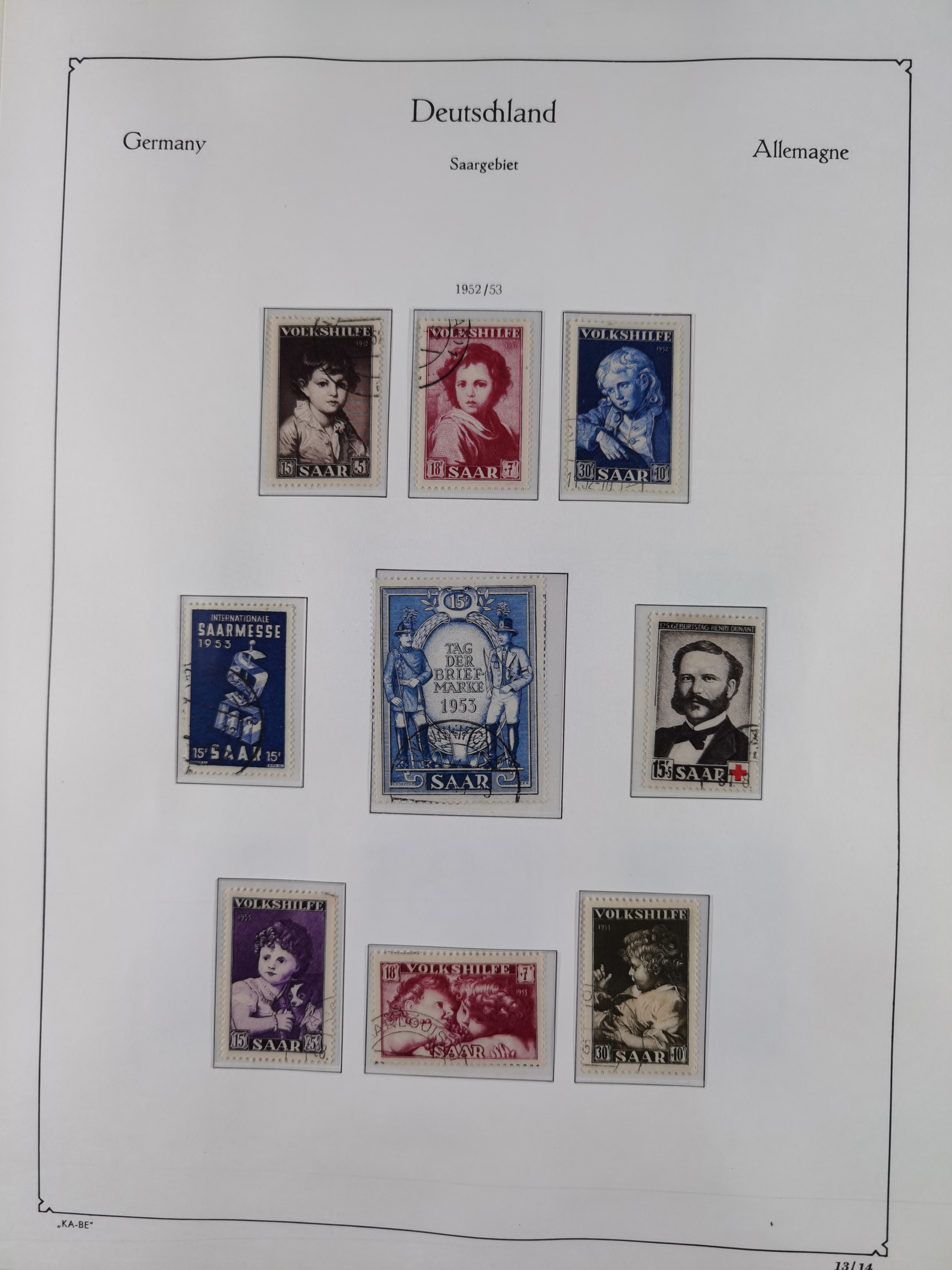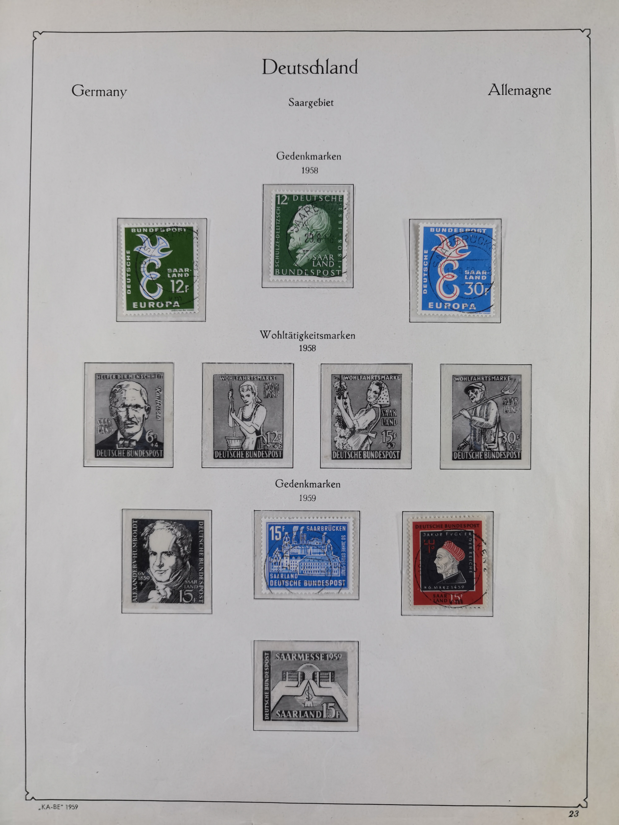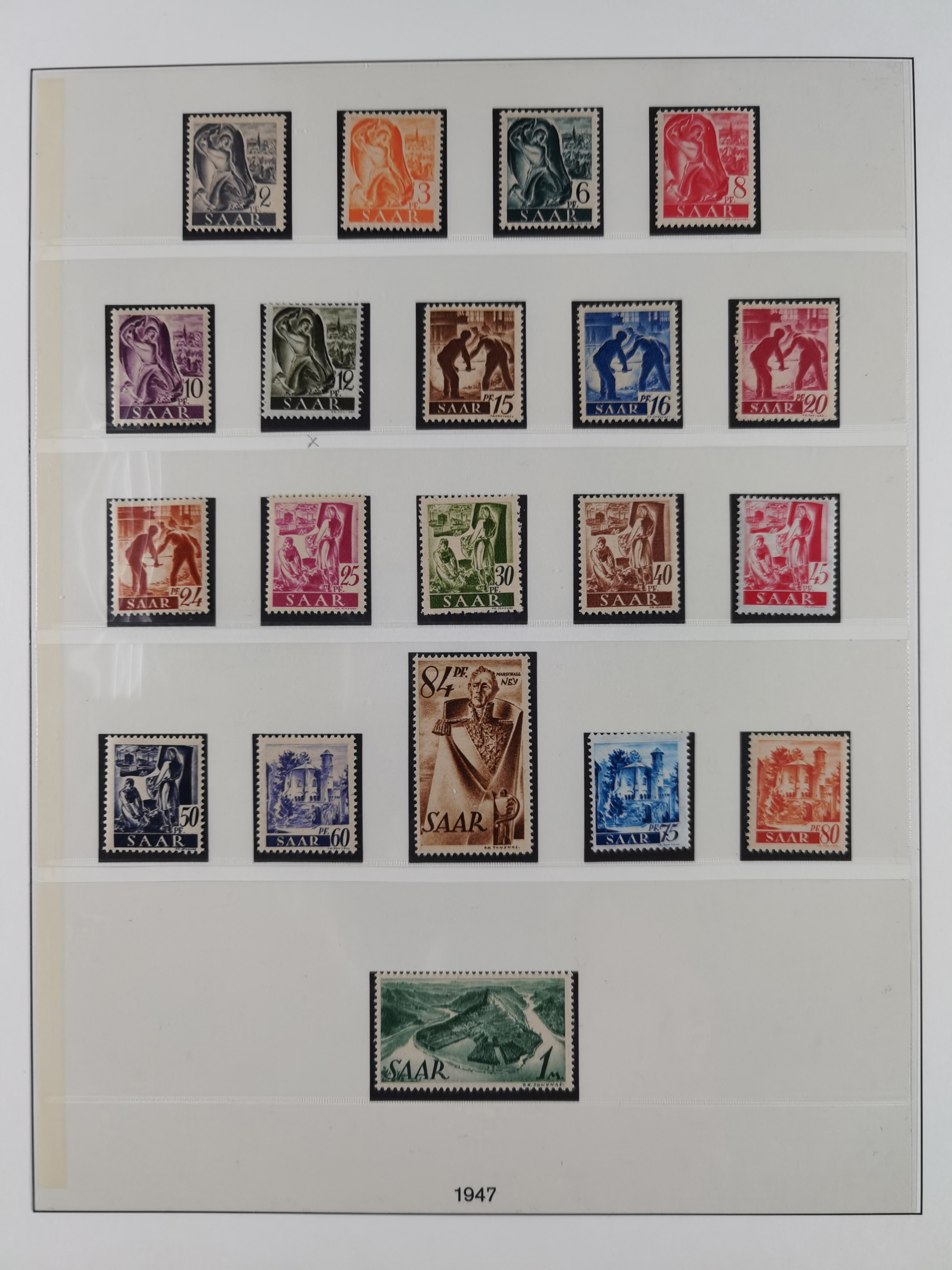 1920/59, in den Hauptnummern stark überkomplette fast ausnahmslos postfrische Sammlung inkl. Dienstmarken, dabei Mi.-Nr. 1-17, 1-17IA inkl. Farben mit 14aIA, Type II 7 Werte kpl., zusätzlich diese auch mit PF A (ohne 2aIIA), 1-17III mit 16IIIOR, 18-31 mit 30L und 31L, A31-C31 (B31 ungebraucht), ferner alle Volkshilfen inkl. Madonna mit Bogenrand, sowie Saarland mit unsigniertem Urdrucksatz, Hochwasserhilfe-Blockspaar, einigen Klbg., zusätzlich gestempelt 380-83 und 409-28 OR auf Briefstücken und MH1 postfrisch/ungebraucht (etwas fleckig), gute Erhaltung, 23 (Kurz-)Befunde und Atteste Ney, Geigle, Burger und Bernhard BPP, in zwei Vordruckalben