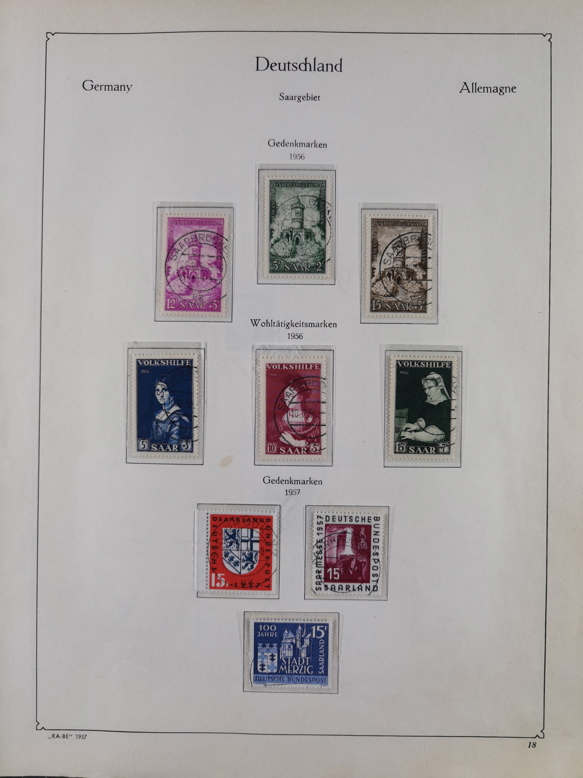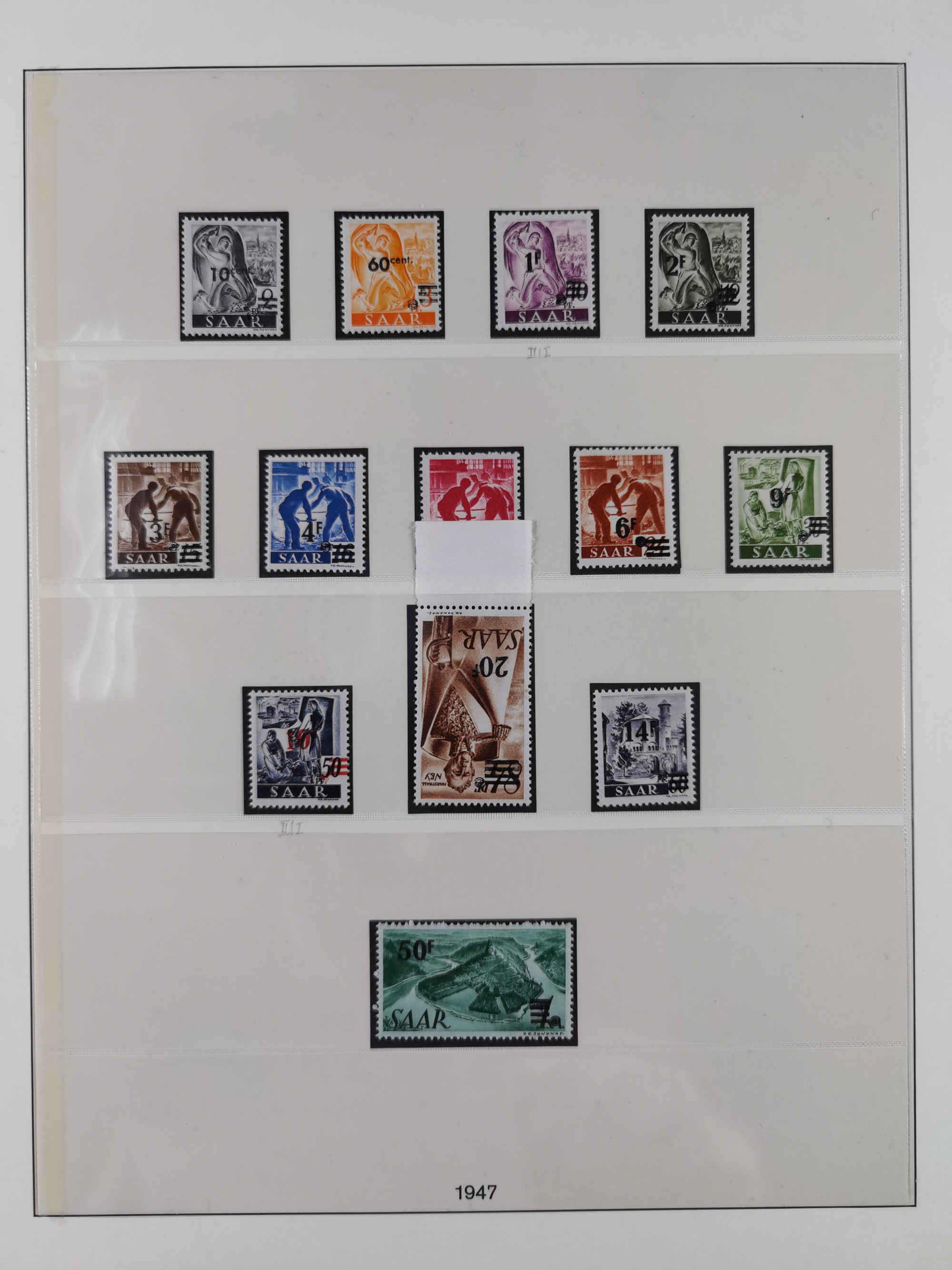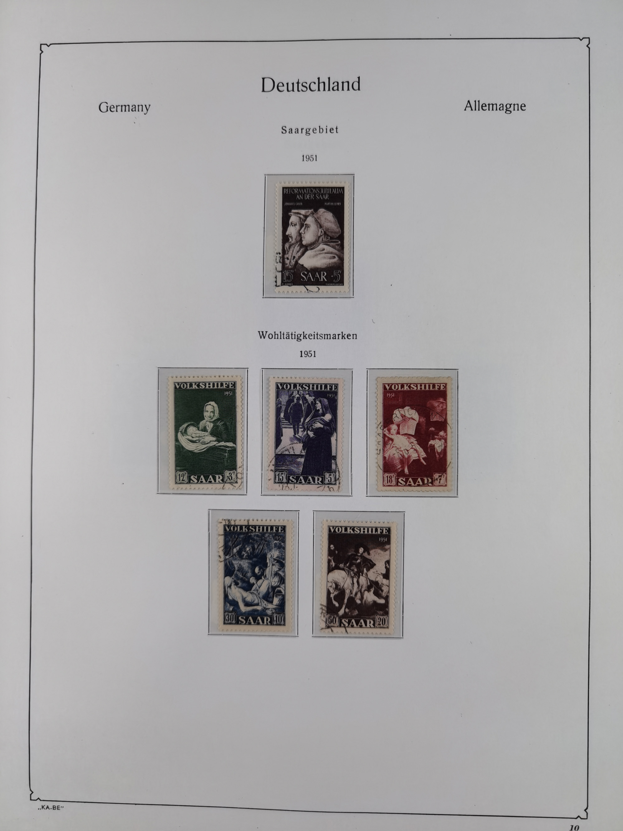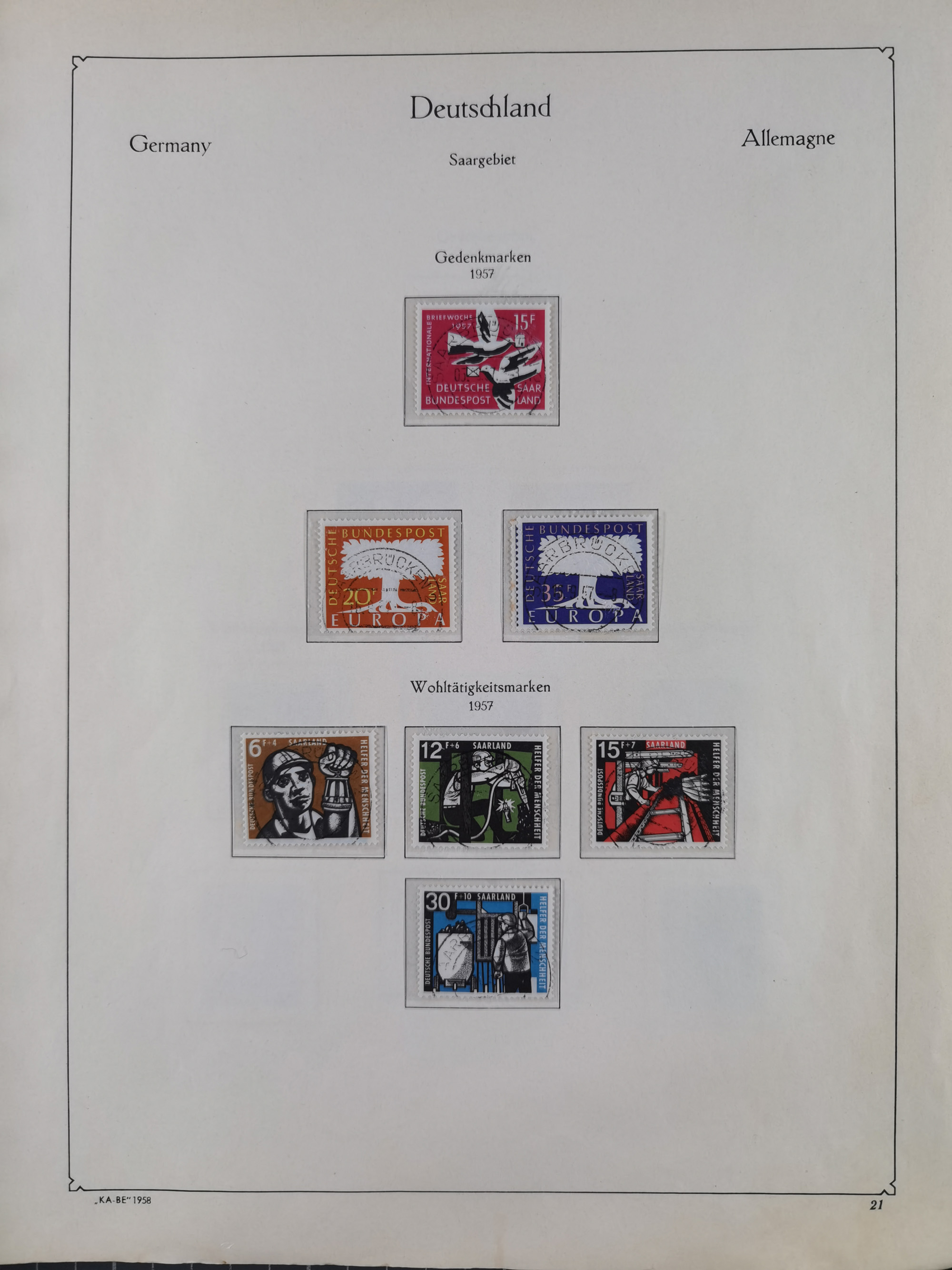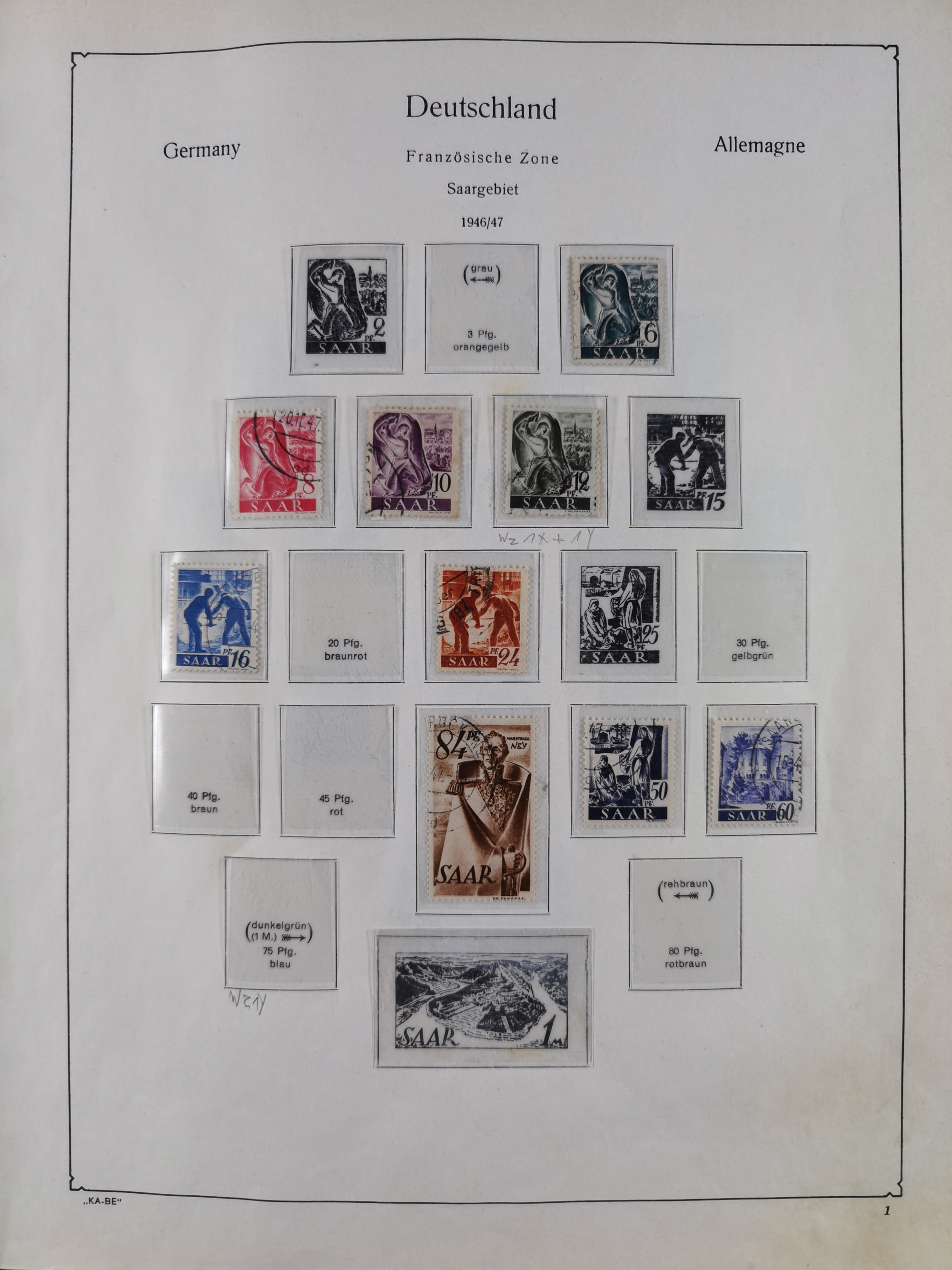 1920/59, in den Hauptnummern stark überkomplette fast ausnahmslos postfrische Sammlung inkl. Dienstmarken, dabei Mi.-Nr. 1-17, 1-17IA inkl. Farben mit 14aIA, Type II 7 Werte kpl., zusätzlich diese auch mit PF A (ohne 2aIIA), 1-17III mit 16IIIOR, 18-31 mit 30L und 31L, A31-C31 (B31 ungebraucht), ferner alle Volkshilfen inkl. Madonna mit Bogenrand, sowie Saarland mit unsigniertem Urdrucksatz, Hochwasserhilfe-Blockspaar, einigen Klbg., zusätzlich gestempelt 380-83 und 409-28 OR auf Briefstücken und MH1 postfrisch/ungebraucht (etwas fleckig), gute Erhaltung, 23 (Kurz-)Befunde und Atteste Ney, Geigle, Burger und Bernhard BPP, in zwei Vordruckalben