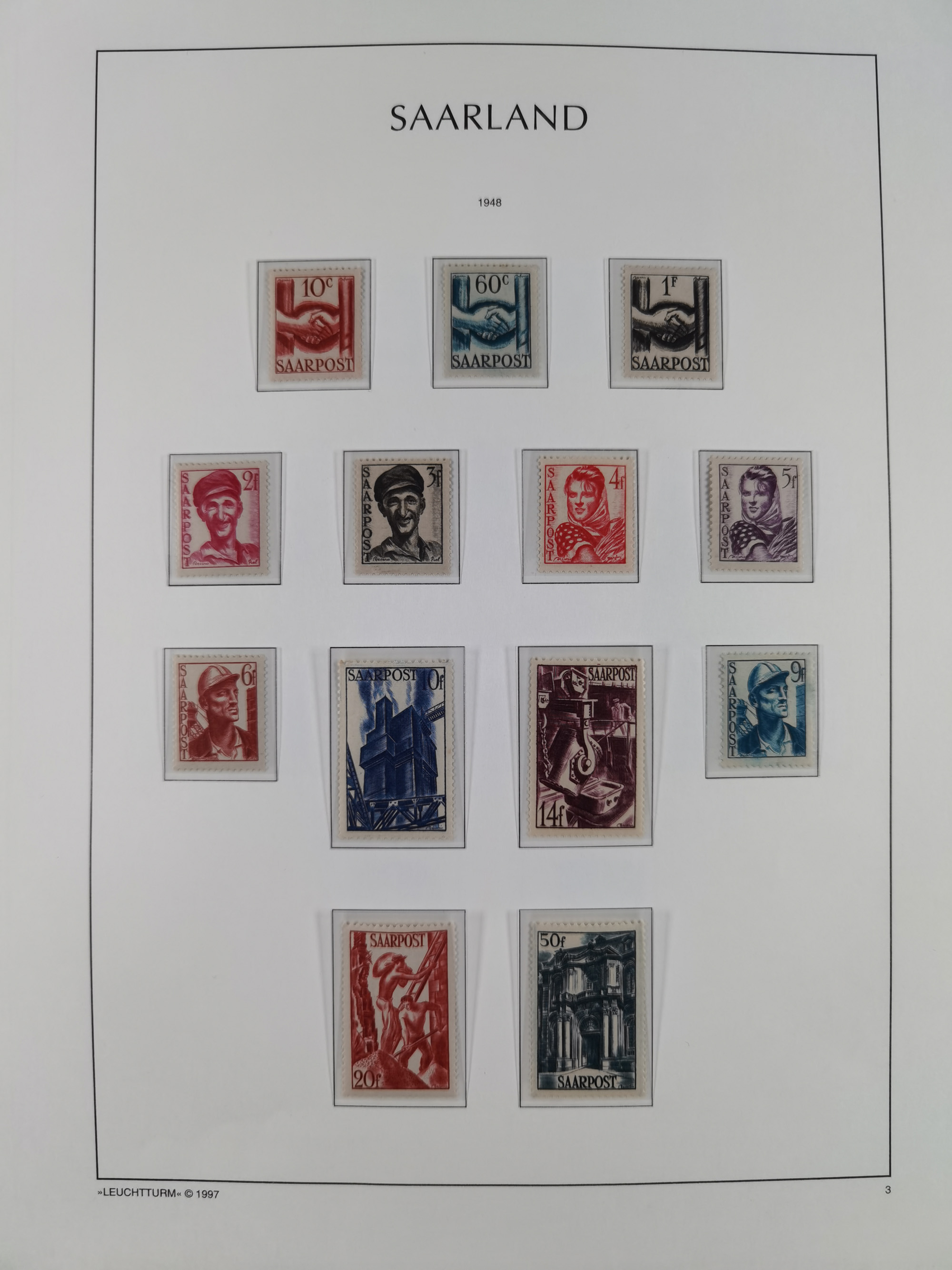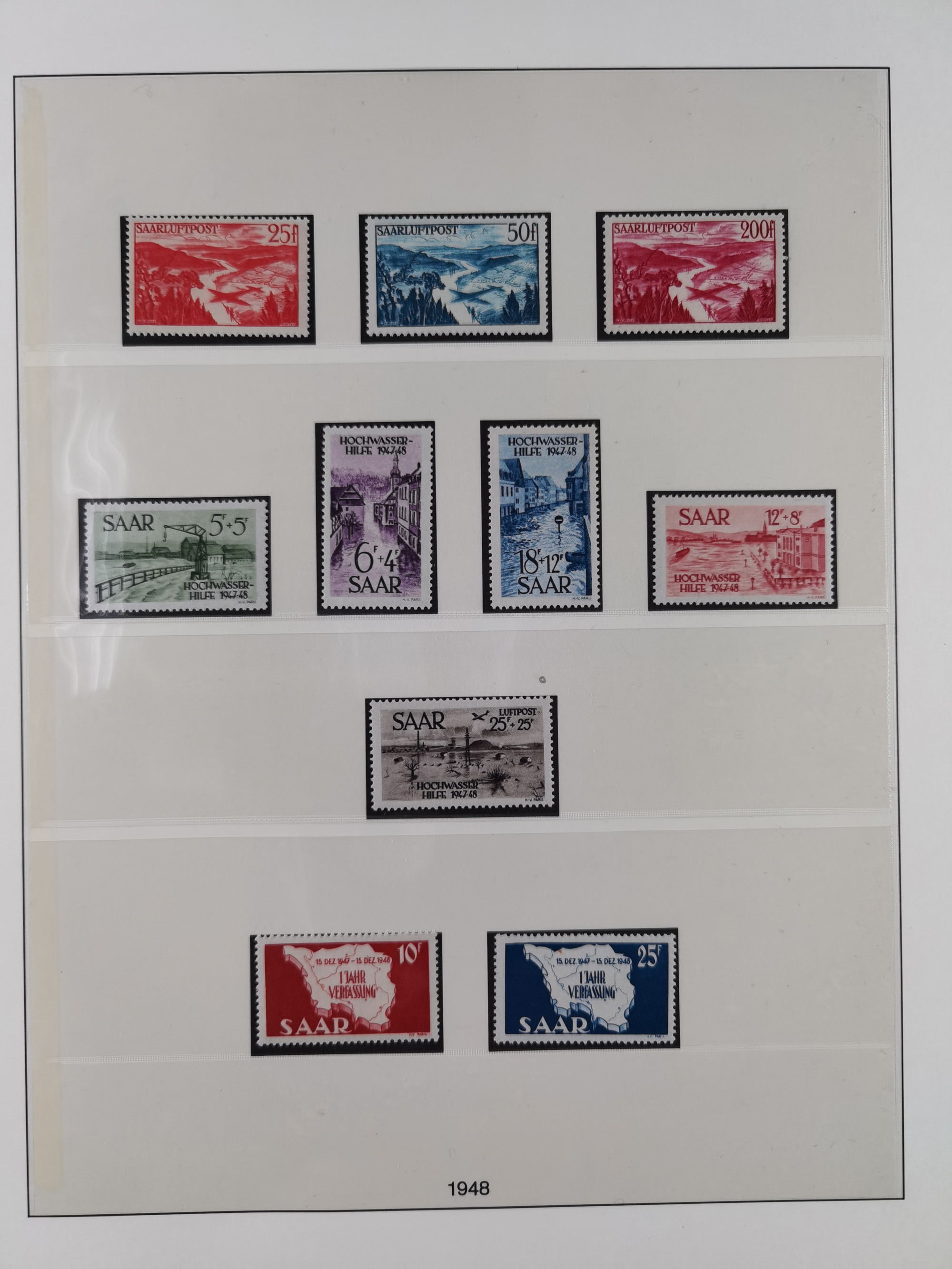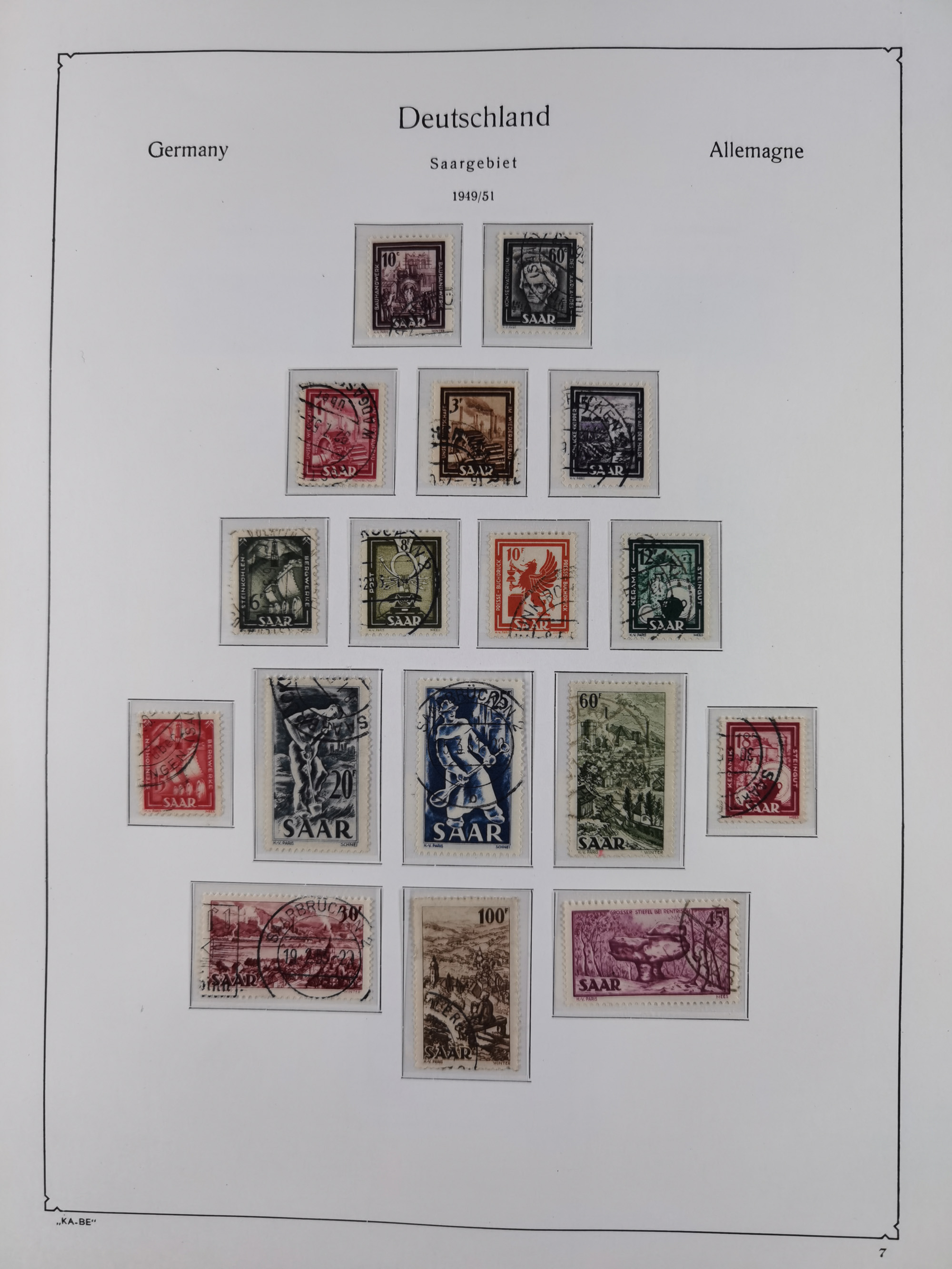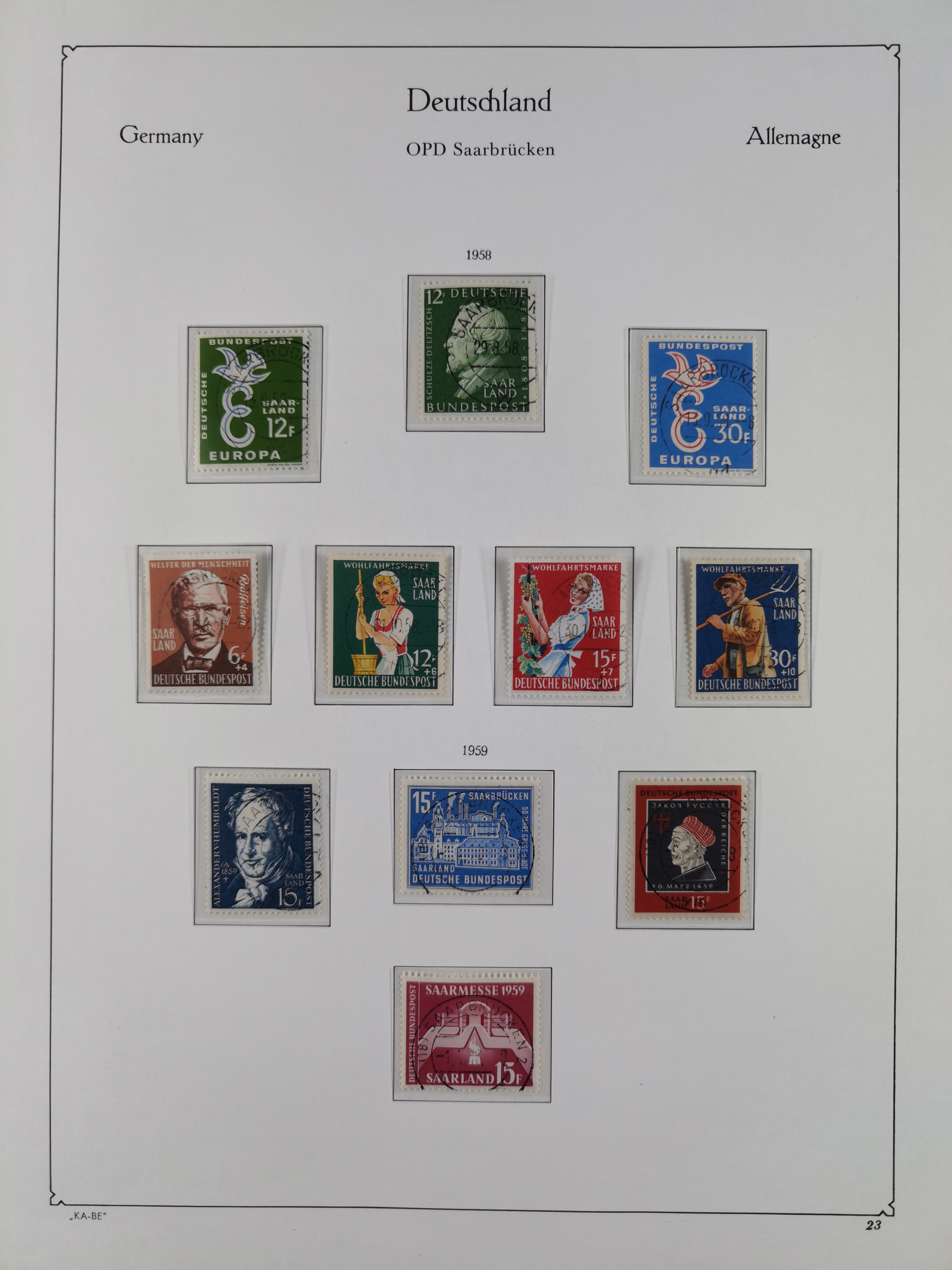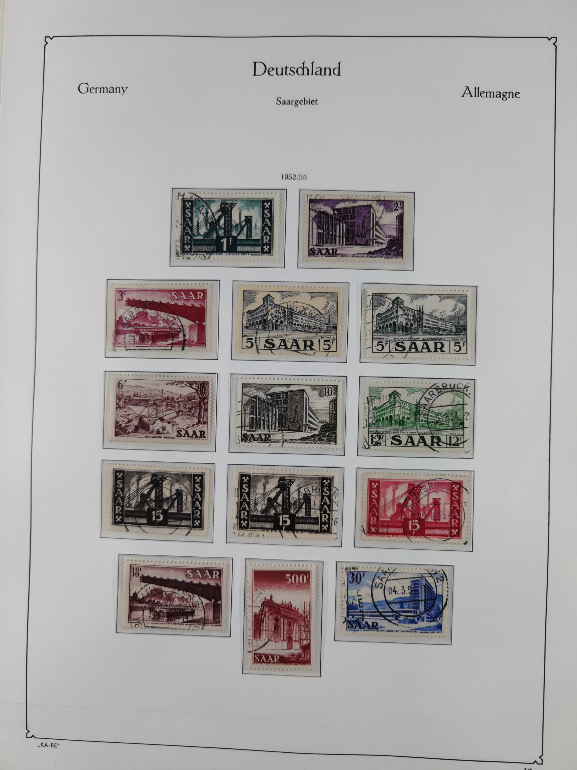 1920/59, in den Hauptnummern stark überkomplette fast ausnahmslos postfrische Sammlung inkl. Dienstmarken, dabei Mi.-Nr. 1-17, 1-17IA inkl. Farben mit 14aIA, Type II 7 Werte kpl., zusätzlich diese auch mit PF A (ohne 2aIIA), 1-17III mit 16IIIOR, 18-31 mit 30L und 31L, A31-C31 (B31 ungebraucht), ferner alle Volkshilfen inkl. Madonna mit Bogenrand, sowie Saarland mit unsigniertem Urdrucksatz, Hochwasserhilfe-Blockspaar, einigen Klbg., zusätzlich gestempelt 380-83 und 409-28 OR auf Briefstücken und MH1 postfrisch/ungebraucht (etwas fleckig), gute Erhaltung, 23 (Kurz-)Befunde und Atteste Ney, Geigle, Burger und Bernhard BPP, in zwei Vordruckalben