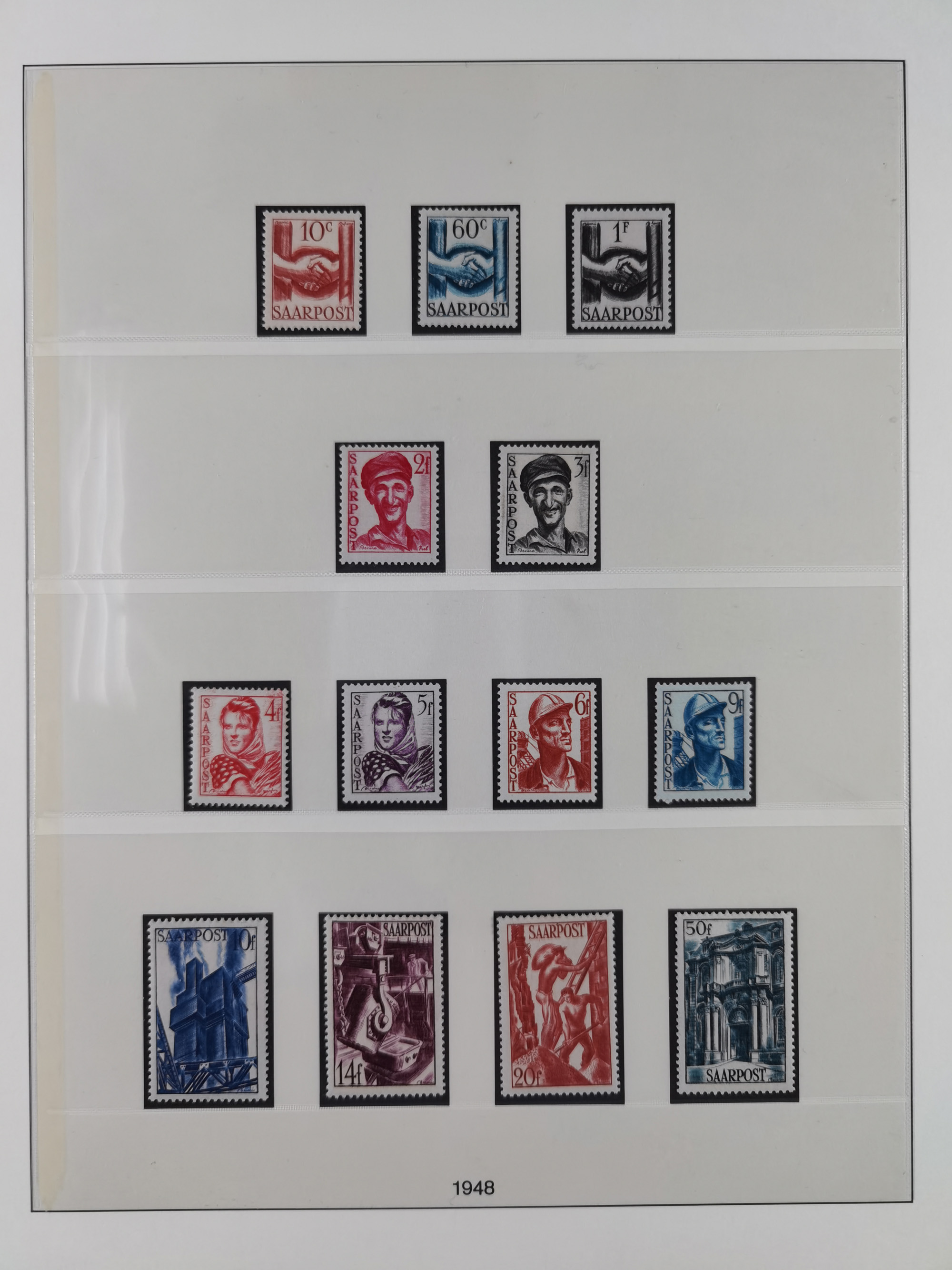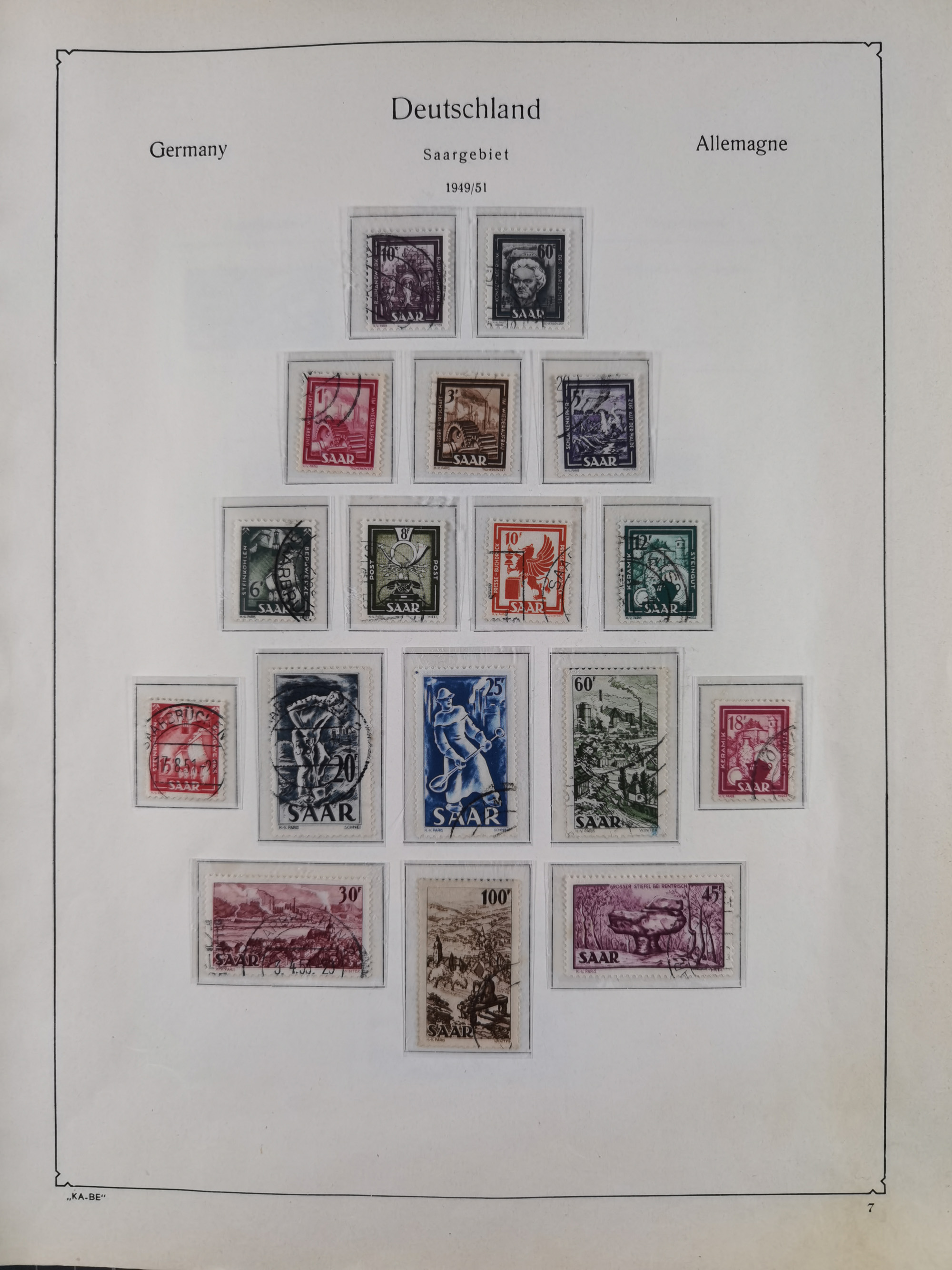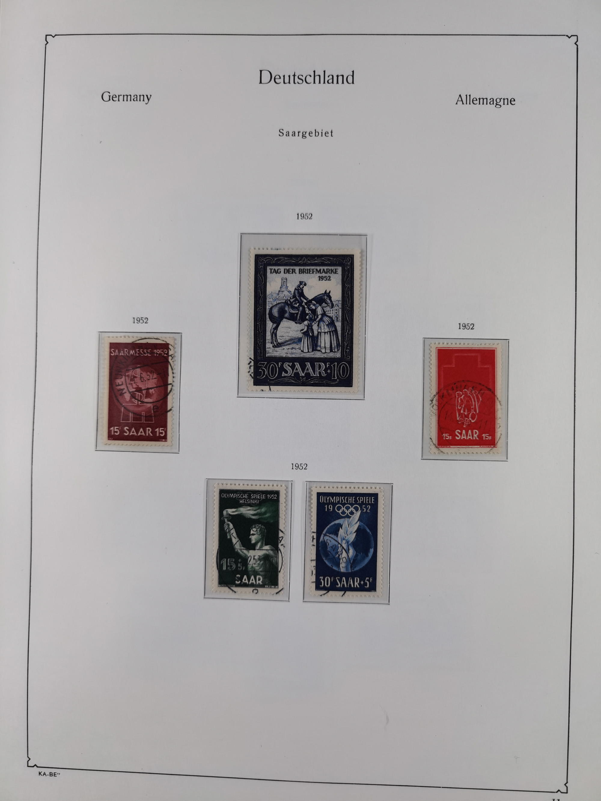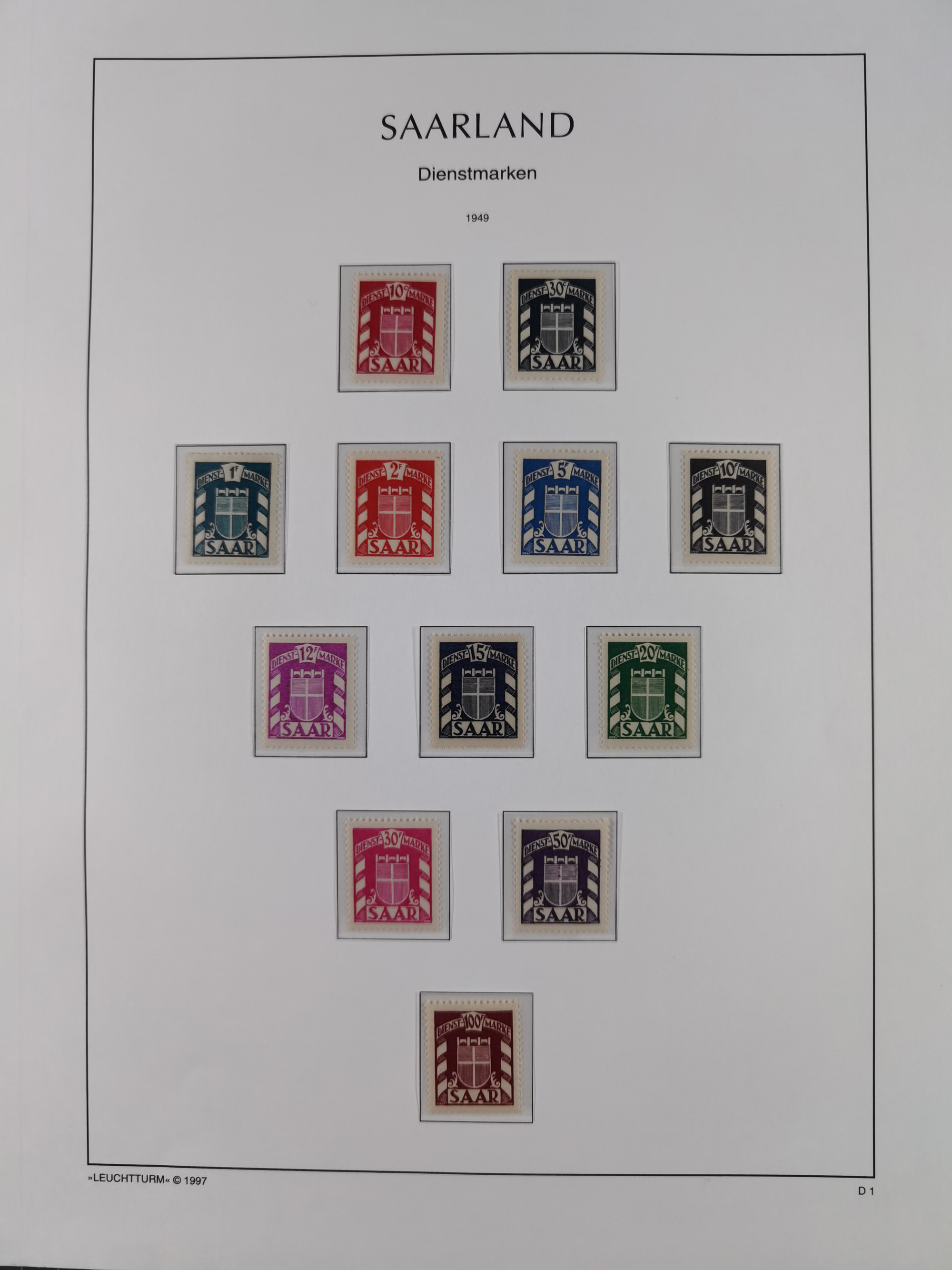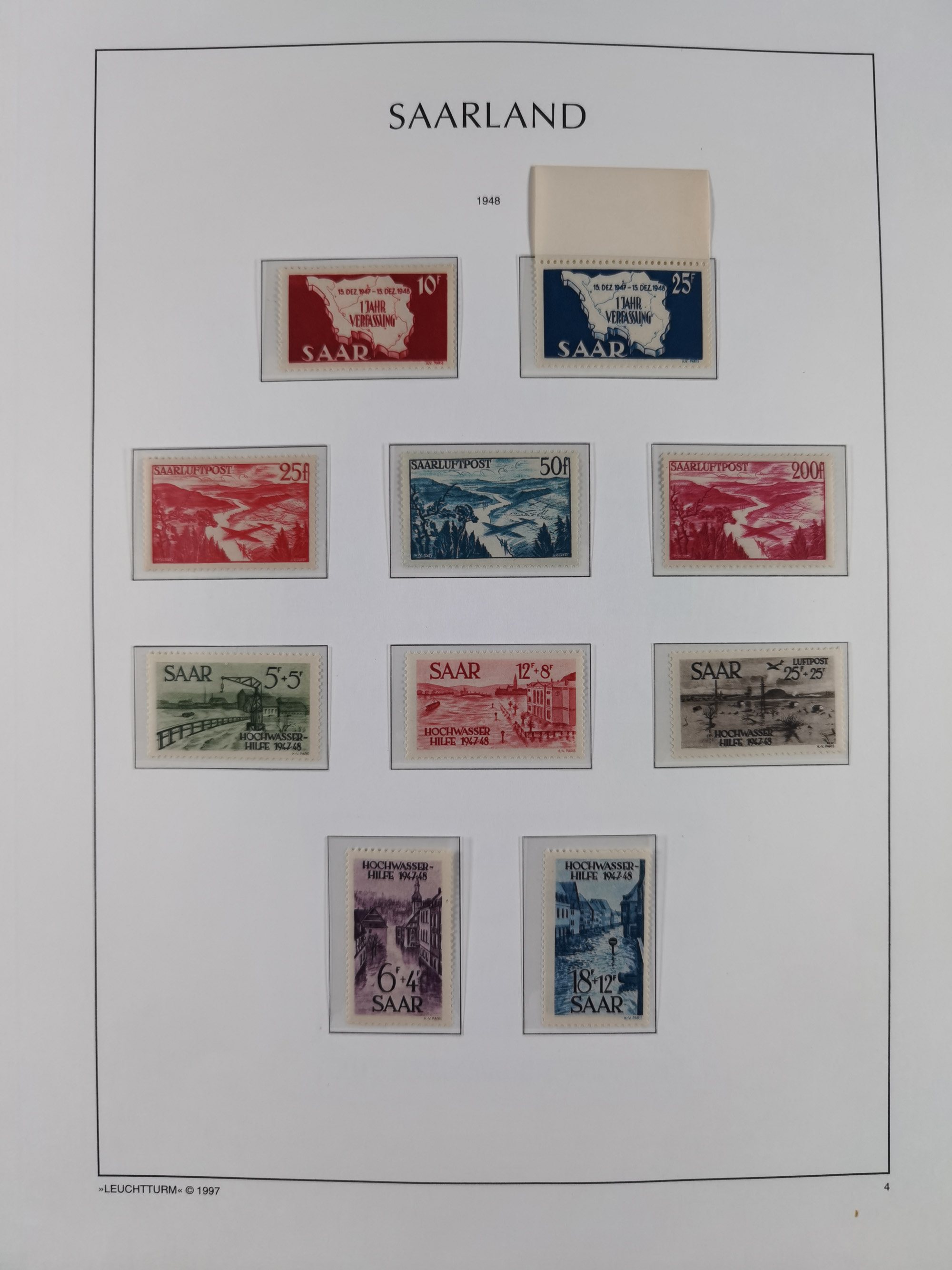 1920/59, in den Hauptnummern stark überkomplette fast ausnahmslos postfrische Sammlung inkl. Dienstmarken, dabei Mi.-Nr. 1-17, 1-17IA inkl. Farben mit 14aIA, Type II 7 Werte kpl., zusätzlich diese auch mit PF A (ohne 2aIIA), 1-17III mit 16IIIOR, 18-31 mit 30L und 31L, A31-C31 (B31 ungebraucht), ferner alle Volkshilfen inkl. Madonna mit Bogenrand, sowie Saarland mit unsigniertem Urdrucksatz, Hochwasserhilfe-Blockspaar, einigen Klbg., zusätzlich gestempelt 380-83 und 409-28 OR auf Briefstücken und MH1 postfrisch/ungebraucht (etwas fleckig), gute Erhaltung, 23 (Kurz-)Befunde und Atteste Ney, Geigle, Burger und Bernhard BPP, in zwei Vordruckalben