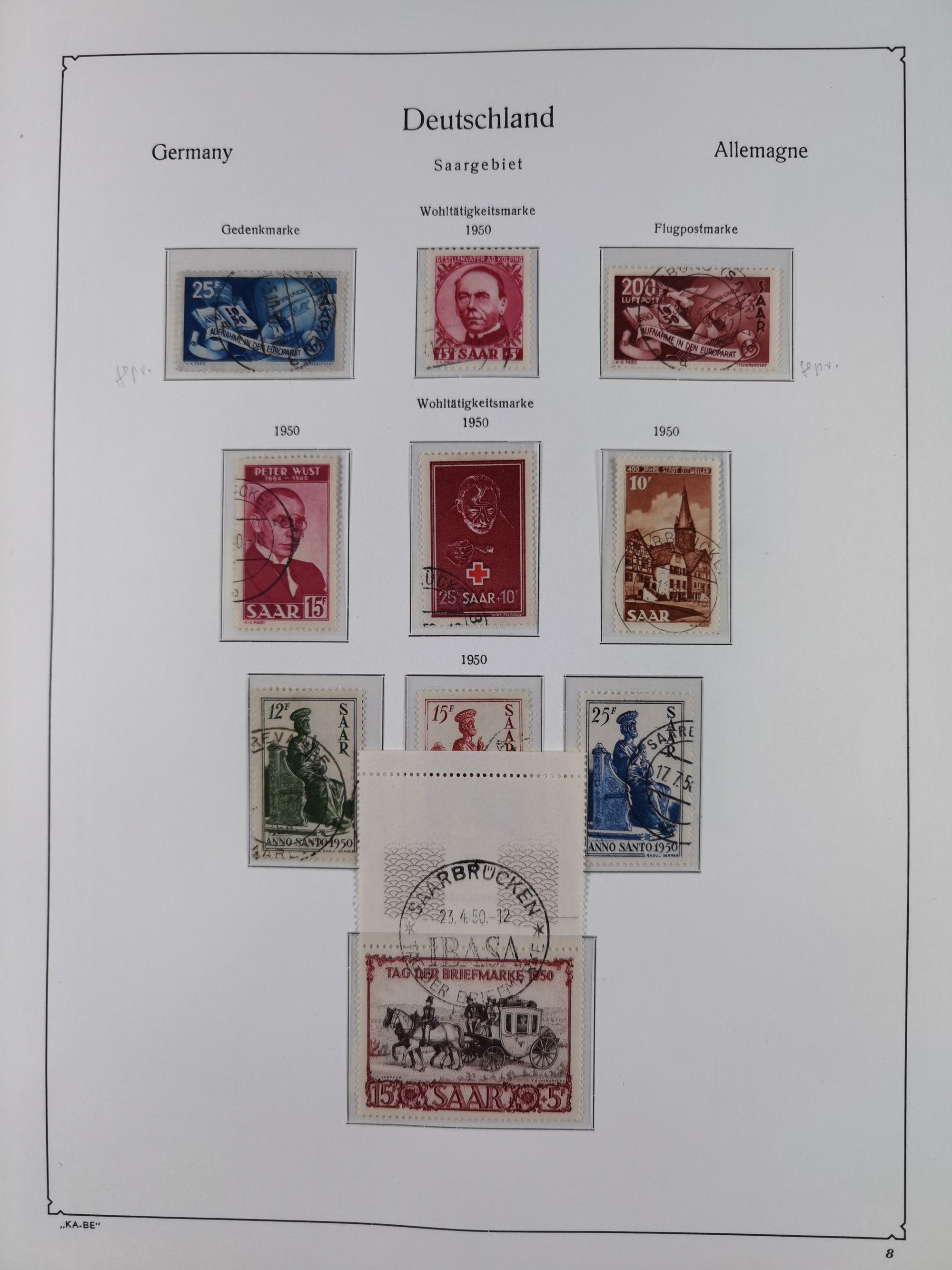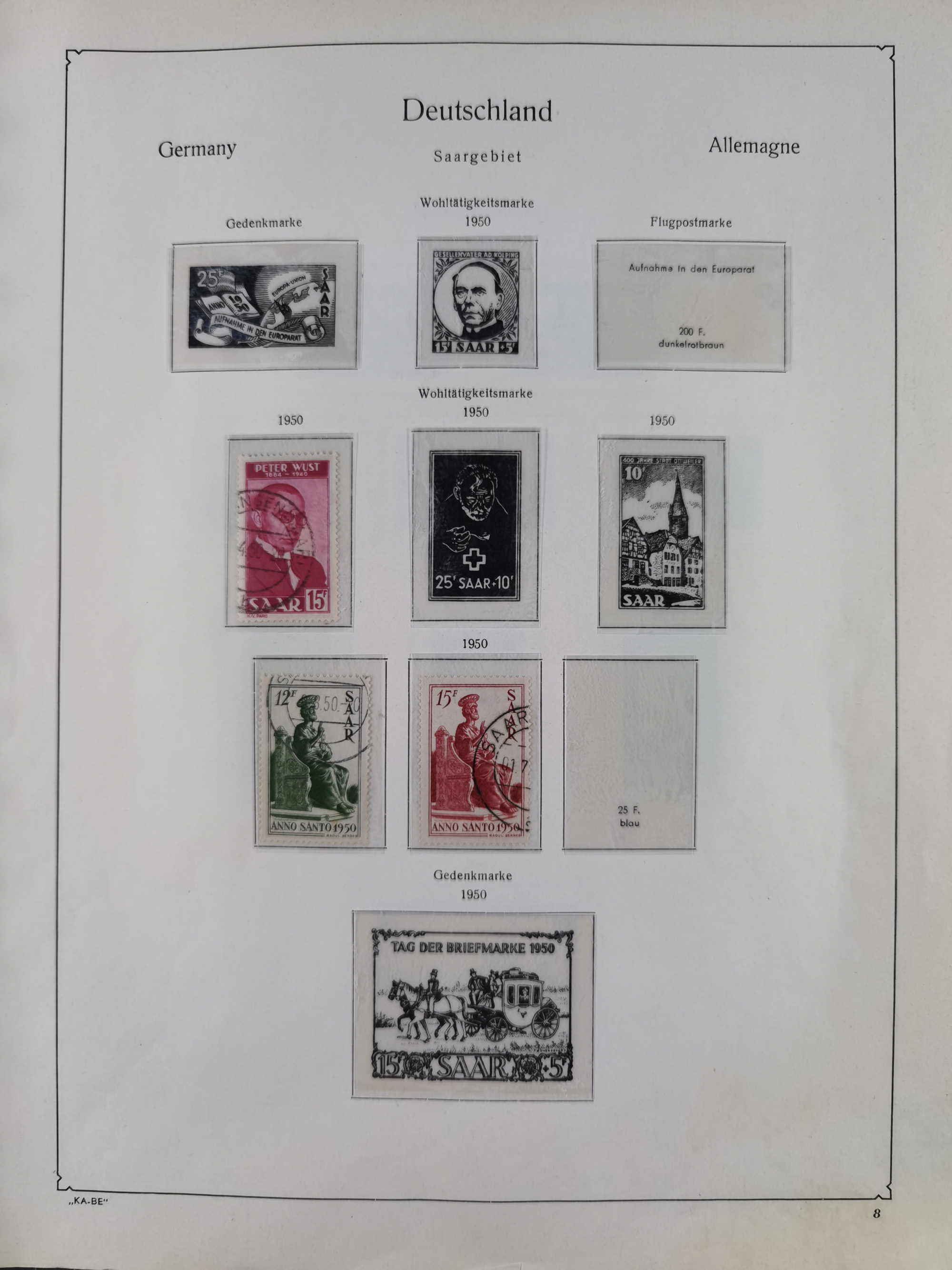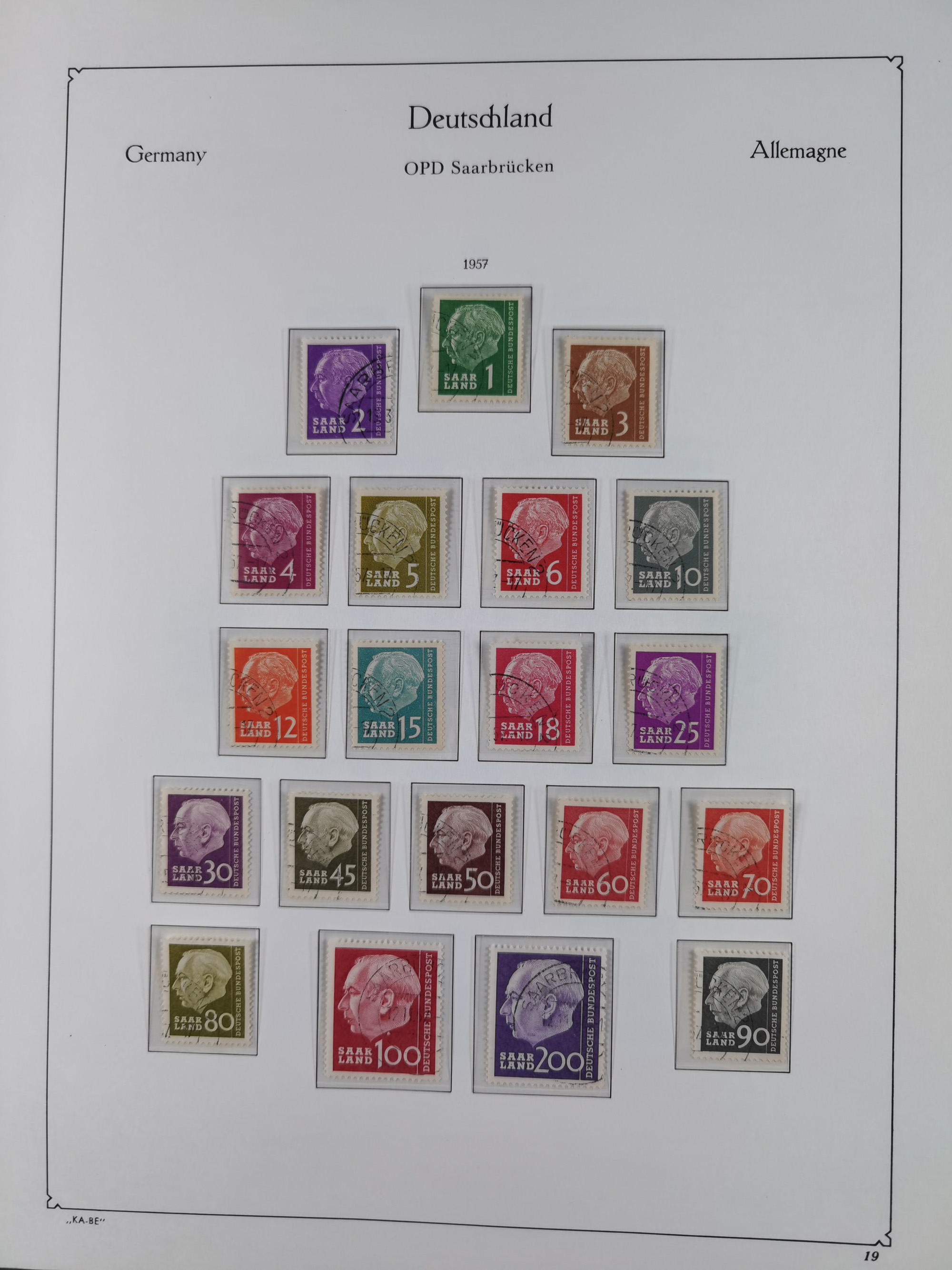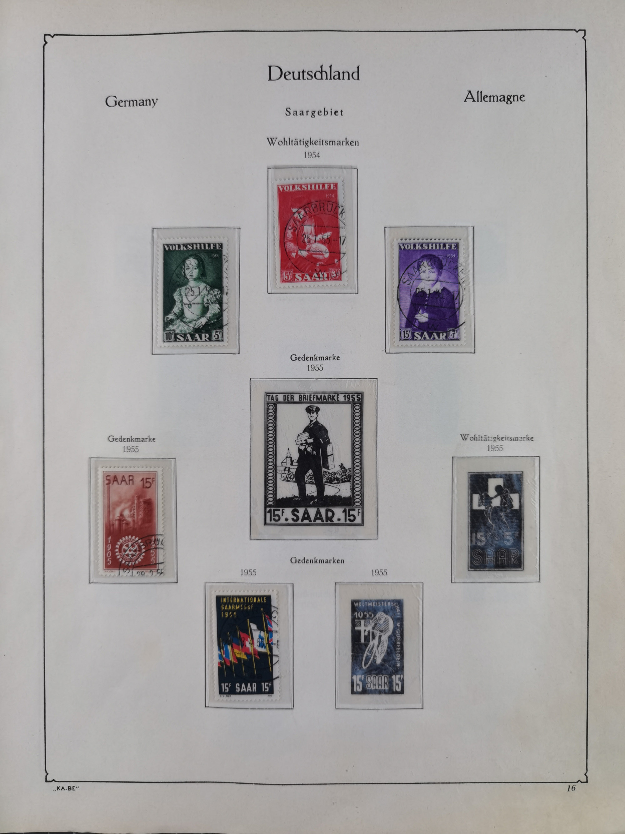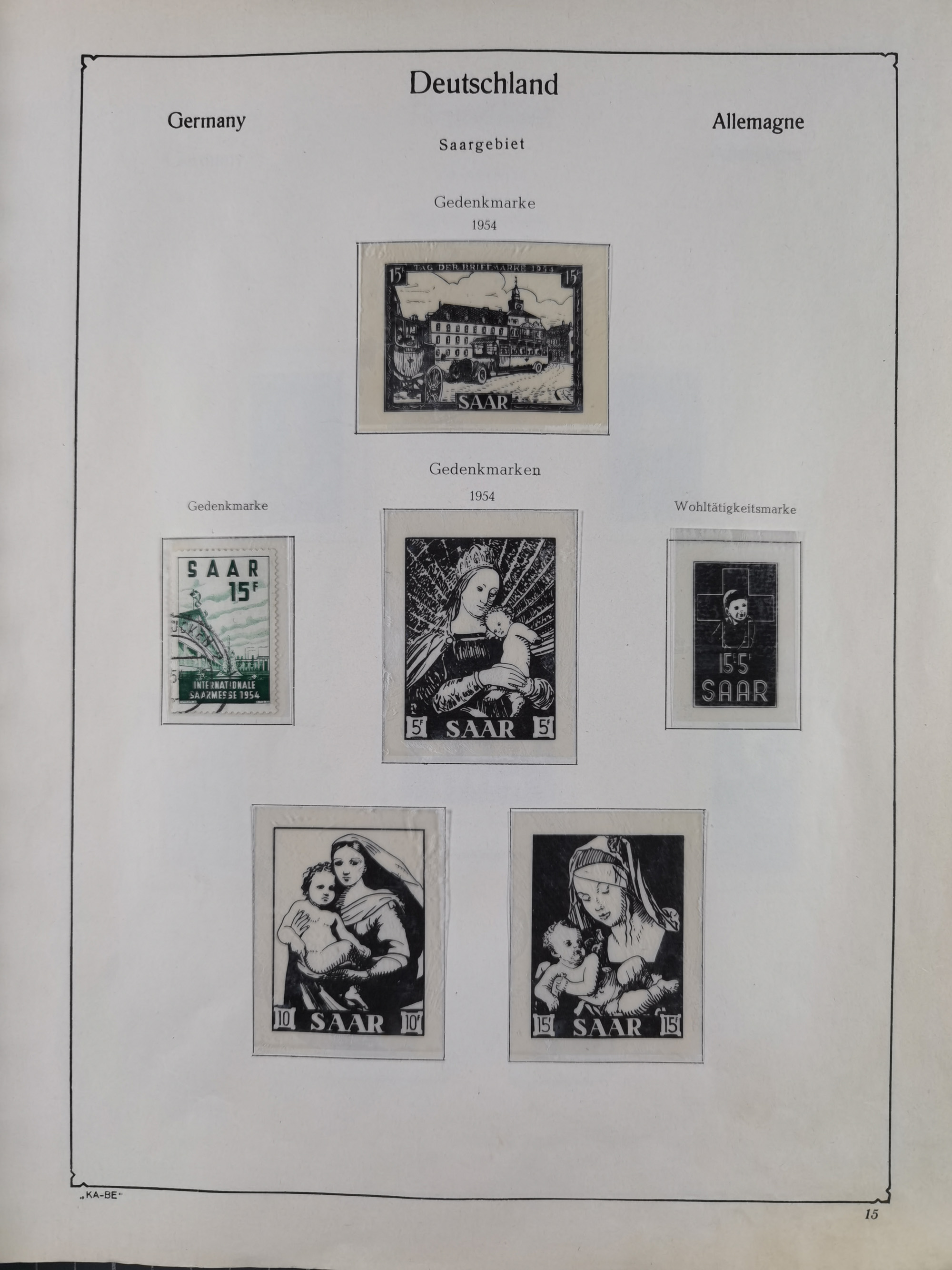 1920/59, in den Hauptnummern stark überkomplette fast ausnahmslos postfrische Sammlung inkl. Dienstmarken, dabei Mi.-Nr. 1-17, 1-17IA inkl. Farben mit 14aIA, Type II 7 Werte kpl., zusätzlich diese auch mit PF A (ohne 2aIIA), 1-17III mit 16IIIOR, 18-31 mit 30L und 31L, A31-C31 (B31 ungebraucht), ferner alle Volkshilfen inkl. Madonna mit Bogenrand, sowie Saarland mit unsigniertem Urdrucksatz, Hochwasserhilfe-Blockspaar, einigen Klbg., zusätzlich gestempelt 380-83 und 409-28 OR auf Briefstücken und MH1 postfrisch/ungebraucht (etwas fleckig), gute Erhaltung, 23 (Kurz-)Befunde und Atteste Ney, Geigle, Burger und Bernhard BPP, in zwei Vordruckalben