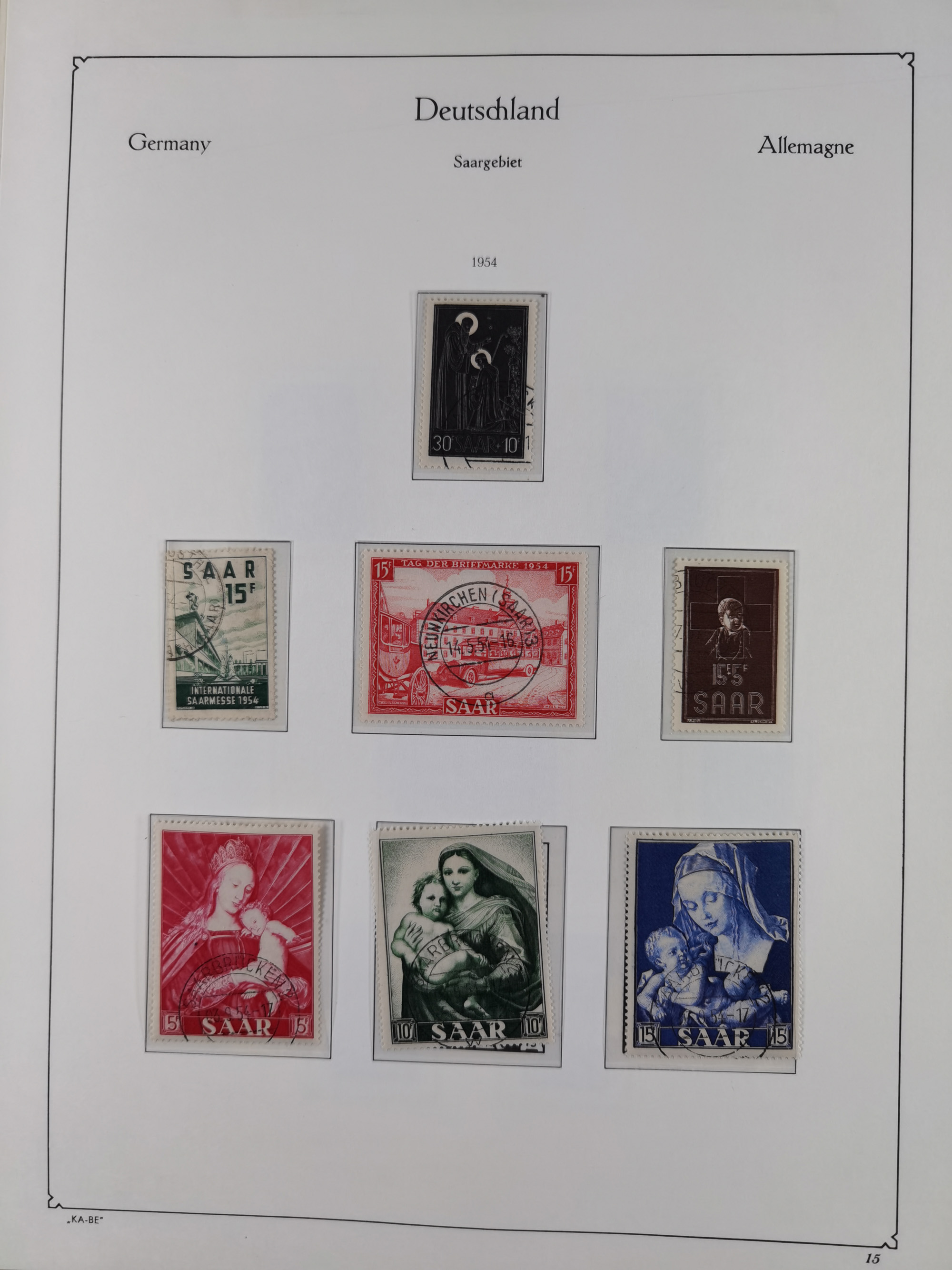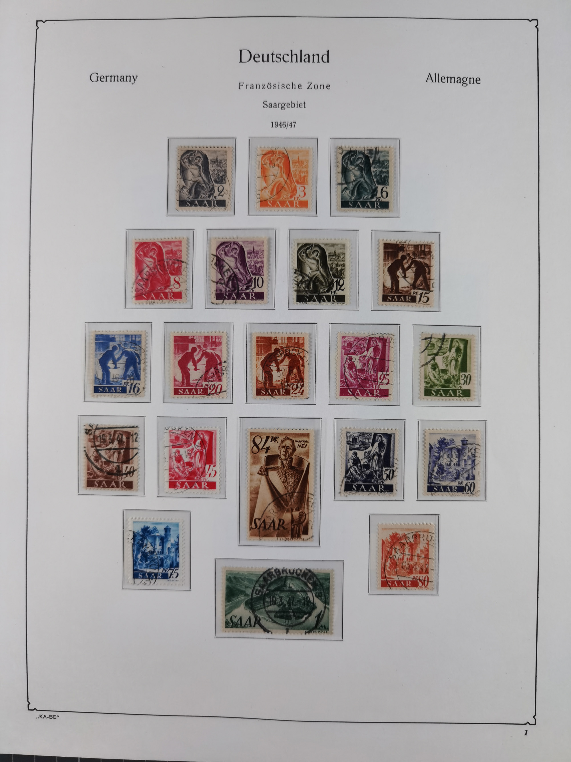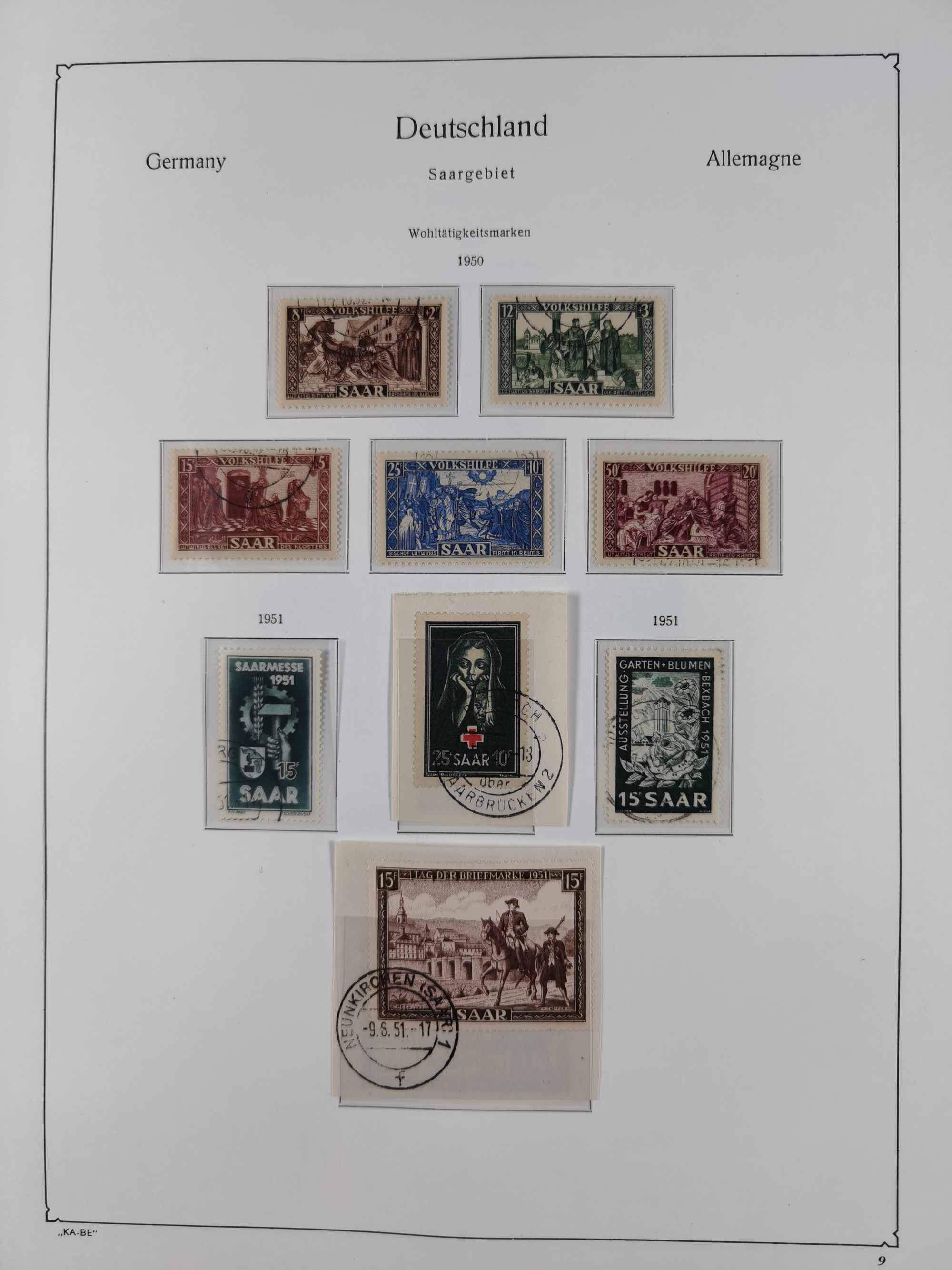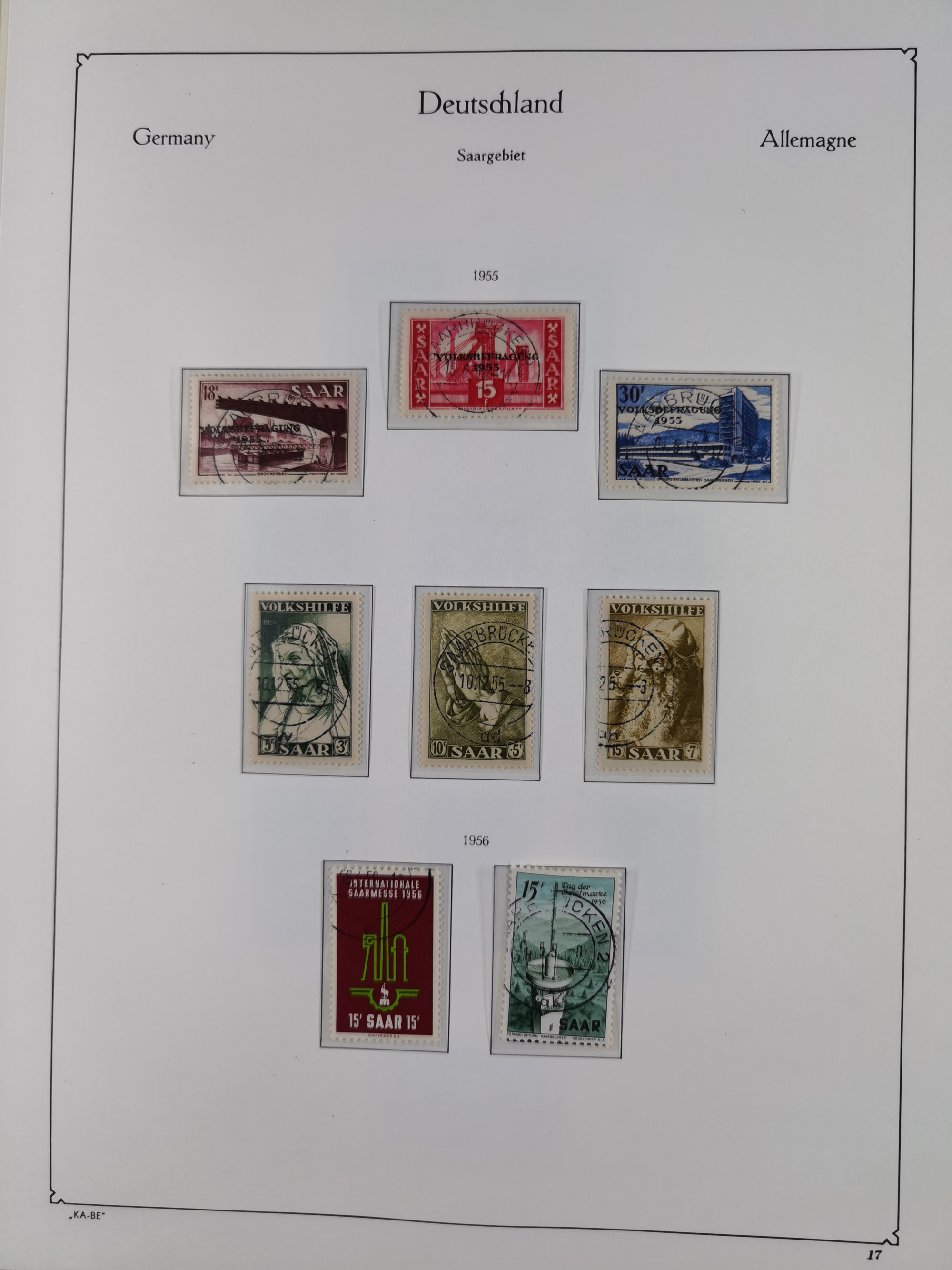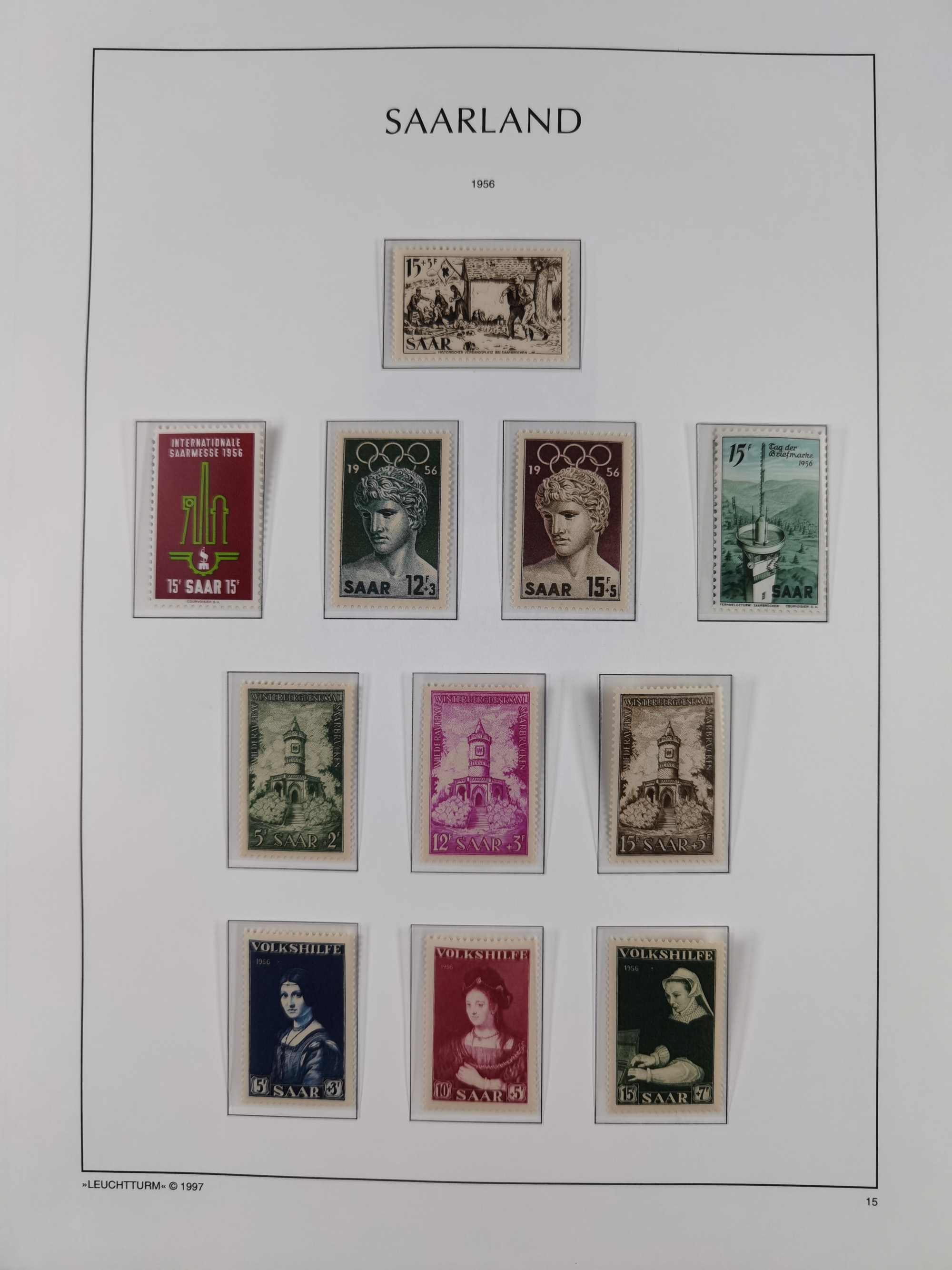 1920/59, in den Hauptnummern stark überkomplette fast ausnahmslos postfrische Sammlung inkl. Dienstmarken, dabei Mi.-Nr. 1-17, 1-17IA inkl. Farben mit 14aIA, Type II 7 Werte kpl., zusätzlich diese auch mit PF A (ohne 2aIIA), 1-17III mit 16IIIOR, 18-31 mit 30L und 31L, A31-C31 (B31 ungebraucht), ferner alle Volkshilfen inkl. Madonna mit Bogenrand, sowie Saarland mit unsigniertem Urdrucksatz, Hochwasserhilfe-Blockspaar, einigen Klbg., zusätzlich gestempelt 380-83 und 409-28 OR auf Briefstücken und MH1 postfrisch/ungebraucht (etwas fleckig), gute Erhaltung, 23 (Kurz-)Befunde und Atteste Ney, Geigle, Burger und Bernhard BPP, in zwei Vordruckalben
