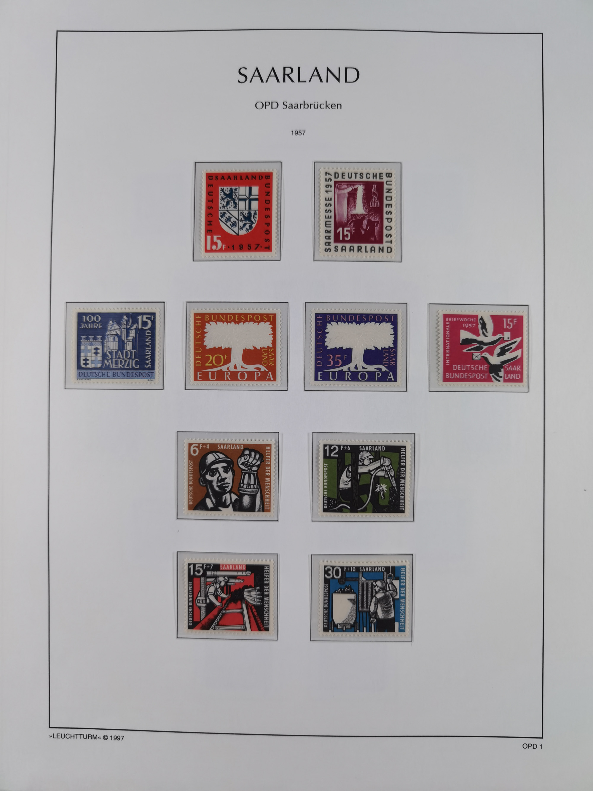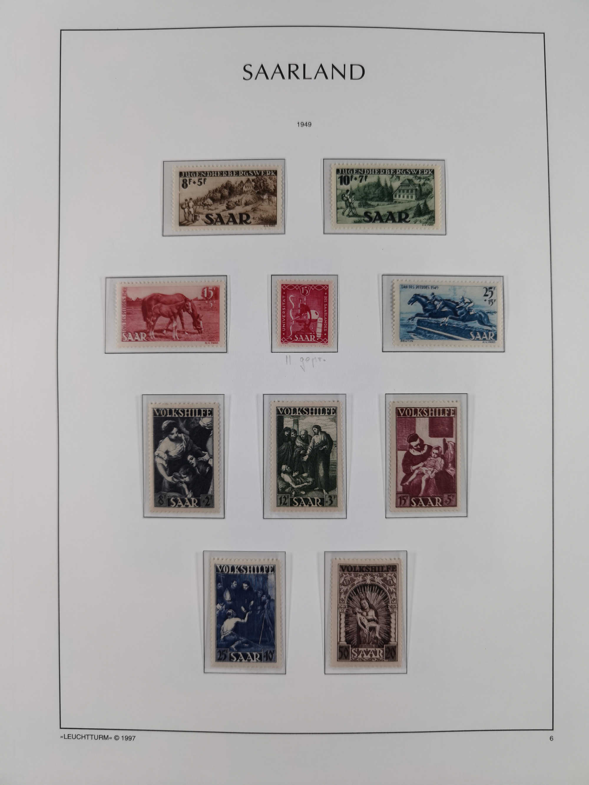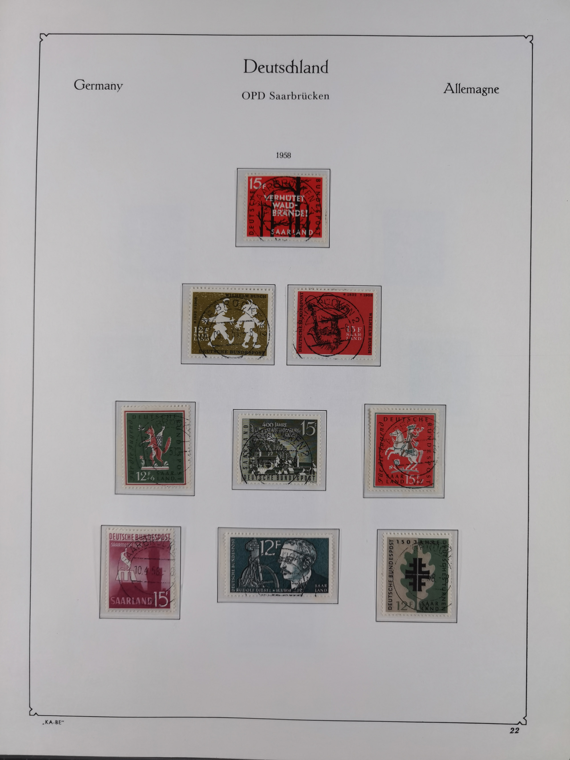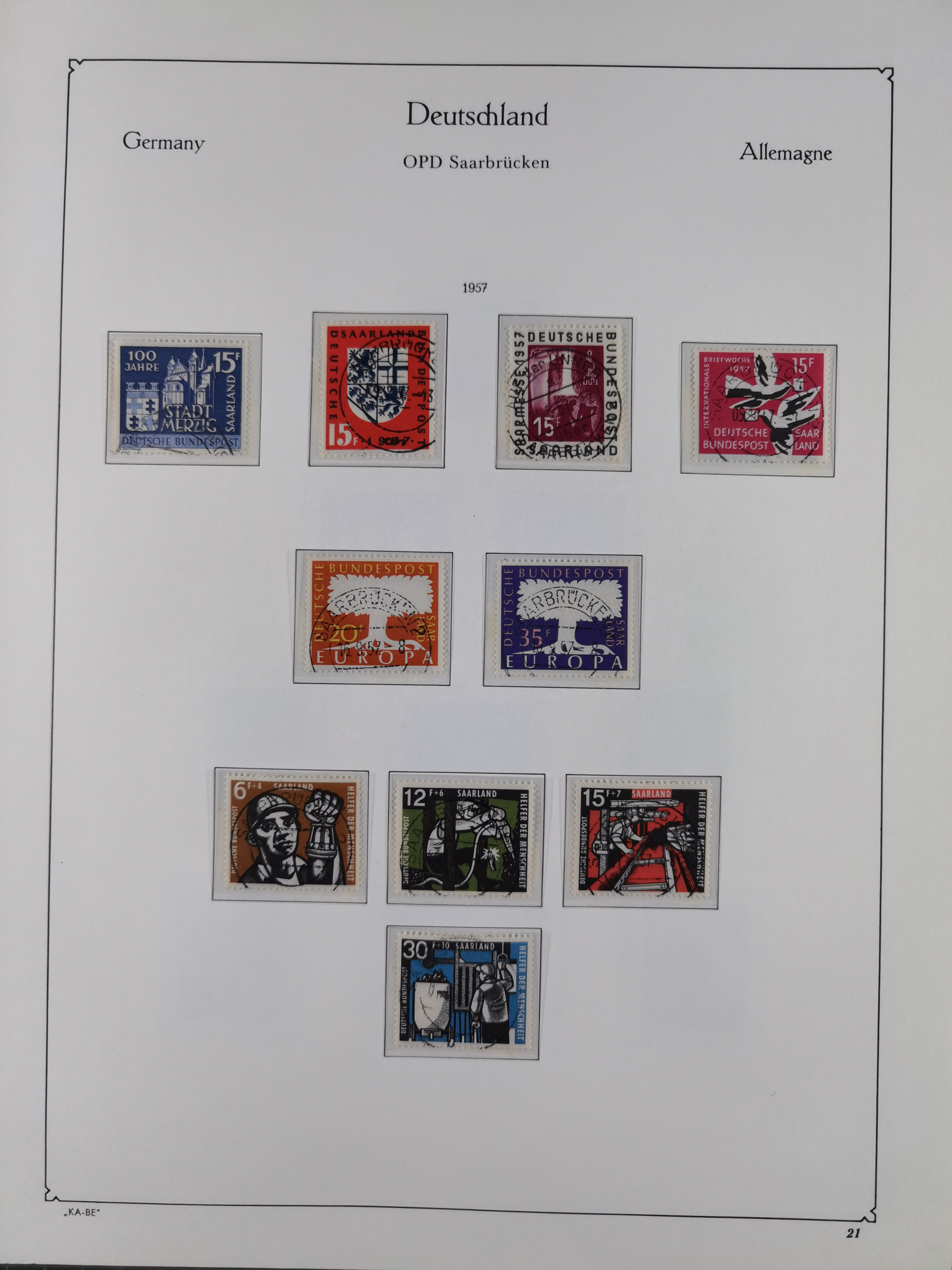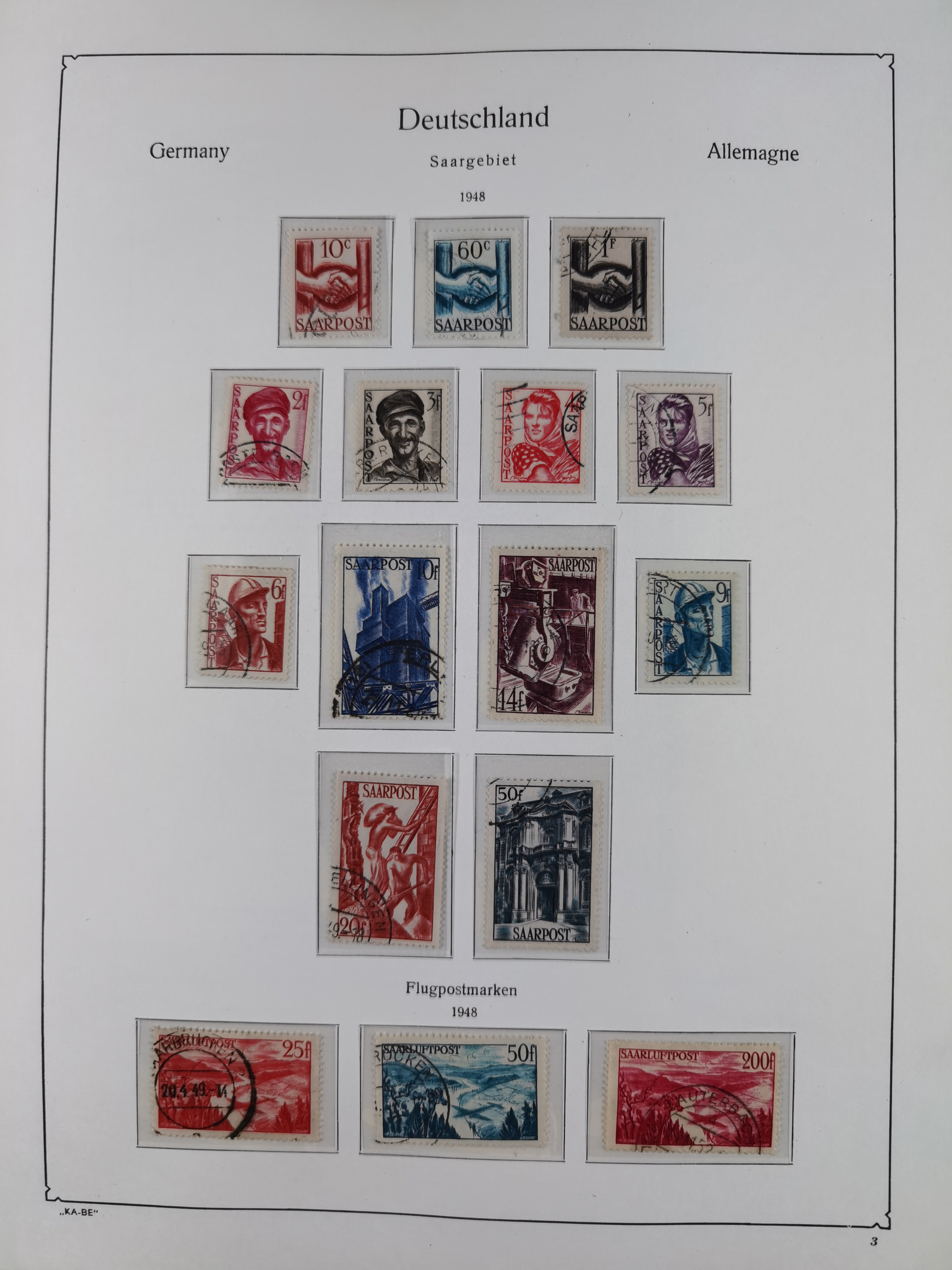 1920/59, in den Hauptnummern stark überkomplette fast ausnahmslos postfrische Sammlung inkl. Dienstmarken, dabei Mi.-Nr. 1-17, 1-17IA inkl. Farben mit 14aIA, Type II 7 Werte kpl., zusätzlich diese auch mit PF A (ohne 2aIIA), 1-17III mit 16IIIOR, 18-31 mit 30L und 31L, A31-C31 (B31 ungebraucht), ferner alle Volkshilfen inkl. Madonna mit Bogenrand, sowie Saarland mit unsigniertem Urdrucksatz, Hochwasserhilfe-Blockspaar, einigen Klbg., zusätzlich gestempelt 380-83 und 409-28 OR auf Briefstücken und MH1 postfrisch/ungebraucht (etwas fleckig), gute Erhaltung, 23 (Kurz-)Befunde und Atteste Ney, Geigle, Burger und Bernhard BPP, in zwei Vordruckalben