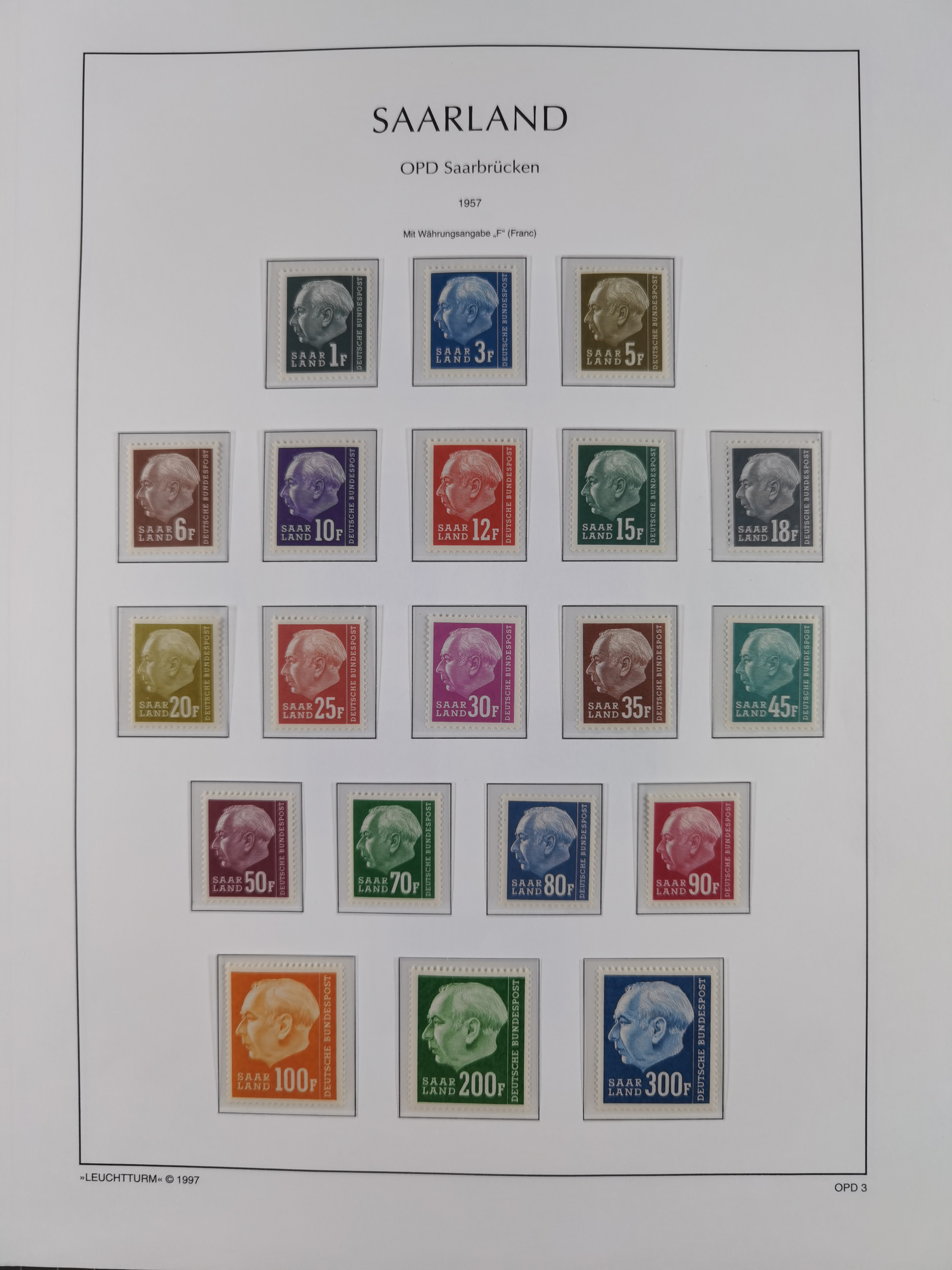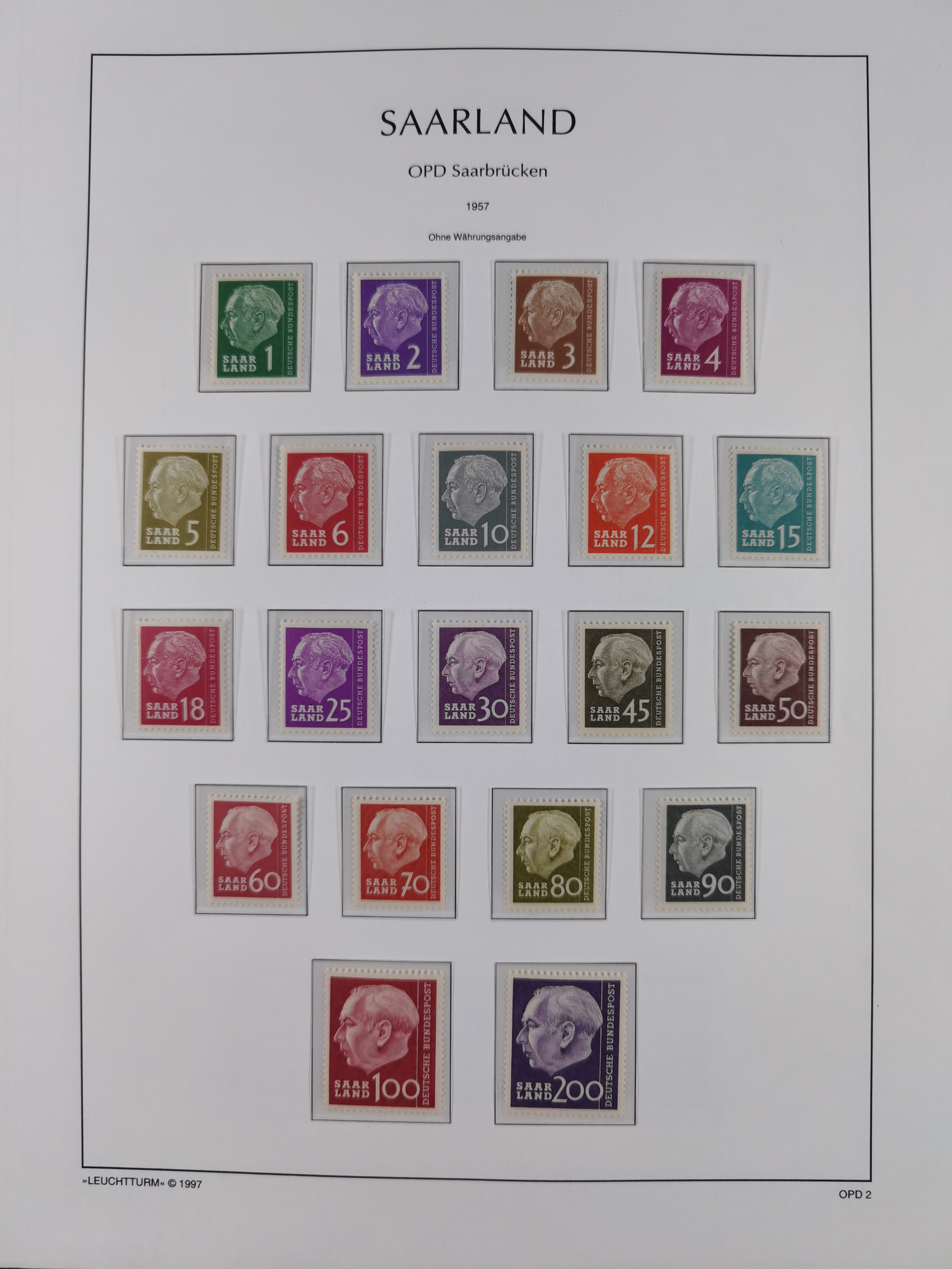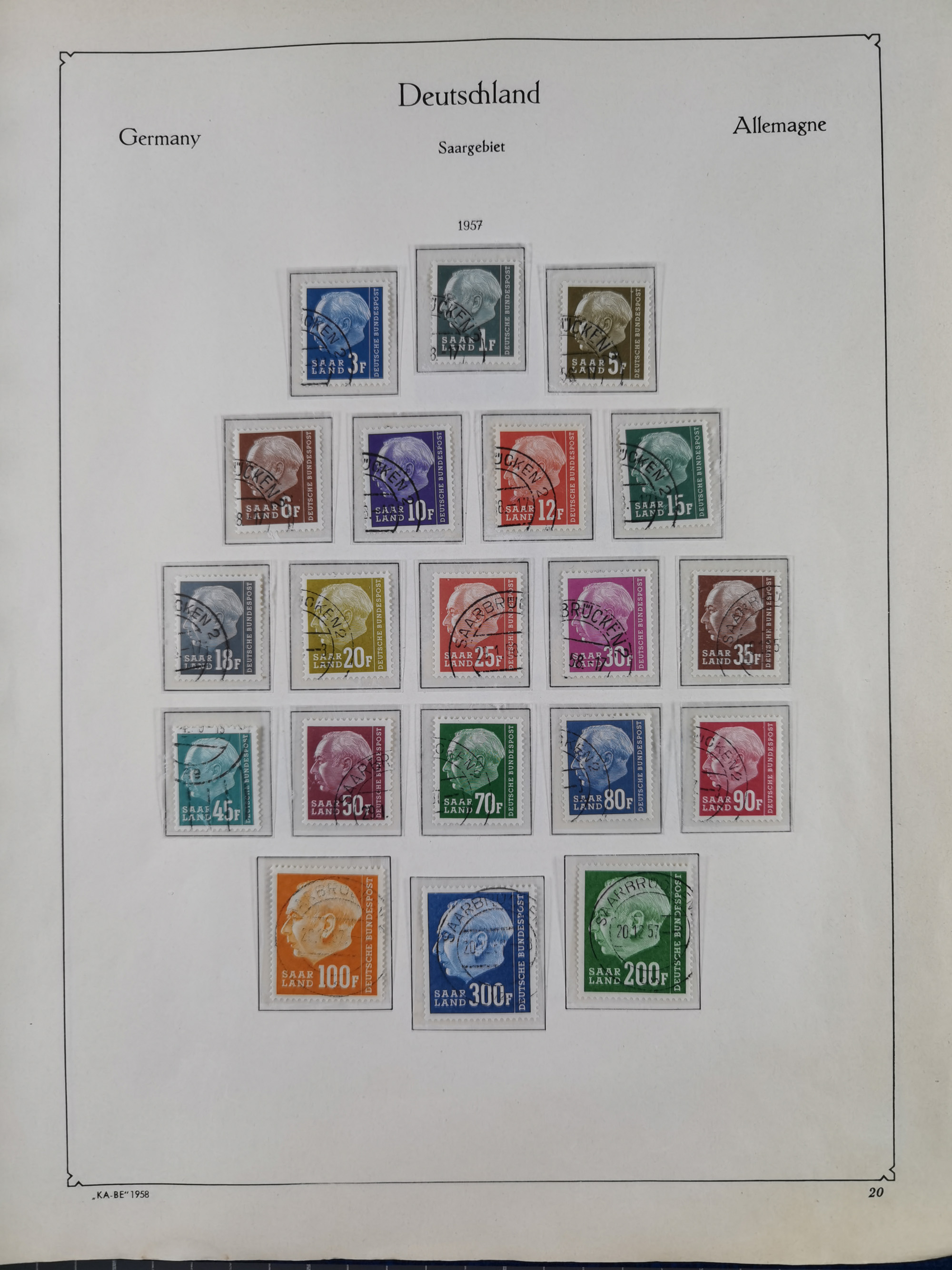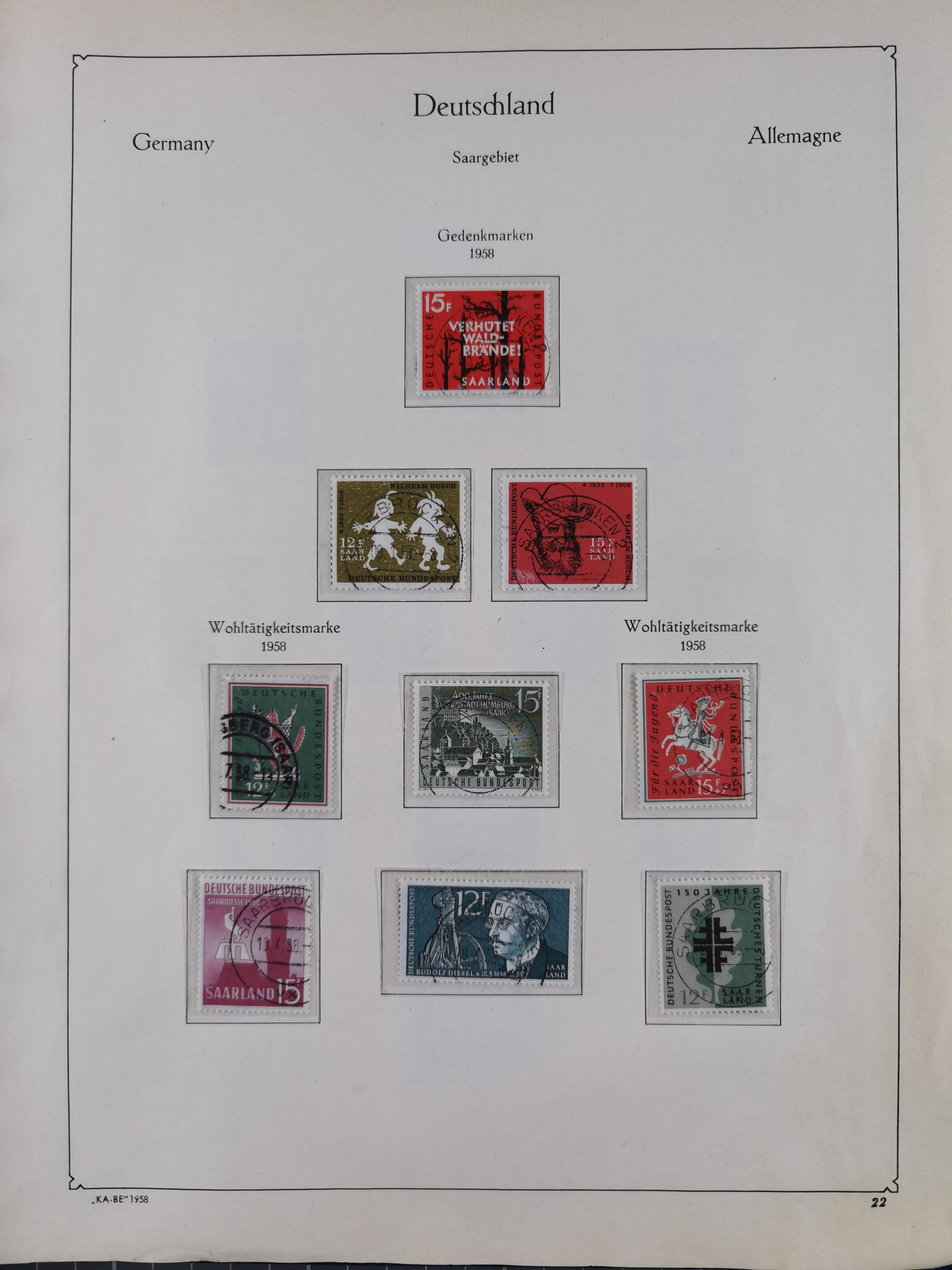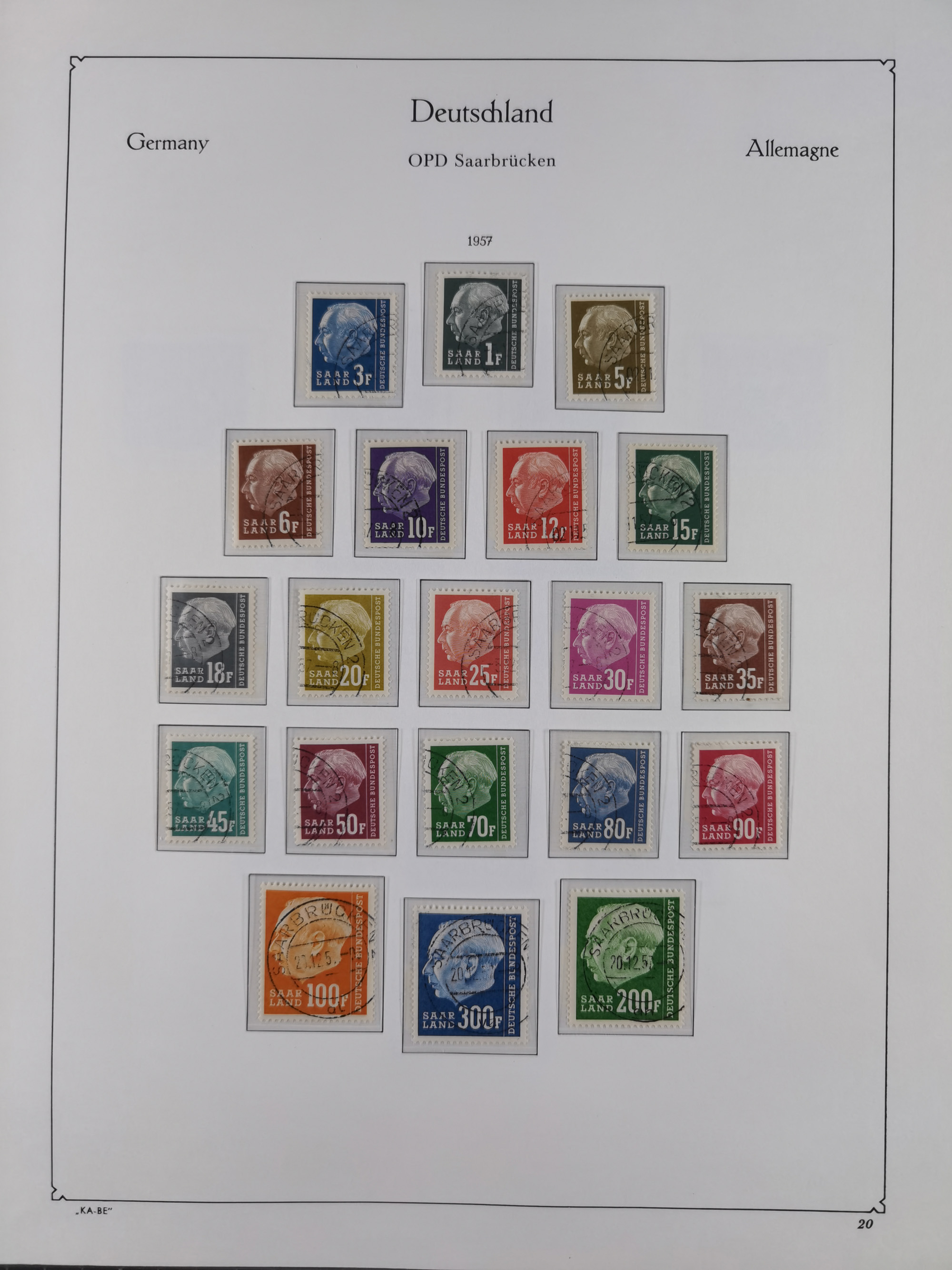 1920/59, in den Hauptnummern stark überkomplette fast ausnahmslos postfrische Sammlung inkl. Dienstmarken, dabei Mi.-Nr. 1-17, 1-17IA inkl. Farben mit 14aIA, Type II 7 Werte kpl., zusätzlich diese auch mit PF A (ohne 2aIIA), 1-17III mit 16IIIOR, 18-31 mit 30L und 31L, A31-C31 (B31 ungebraucht), ferner alle Volkshilfen inkl. Madonna mit Bogenrand, sowie Saarland mit unsigniertem Urdrucksatz, Hochwasserhilfe-Blockspaar, einigen Klbg., zusätzlich gestempelt 380-83 und 409-28 OR auf Briefstücken und MH1 postfrisch/ungebraucht (etwas fleckig), gute Erhaltung, 23 (Kurz-)Befunde und Atteste Ney, Geigle, Burger und Bernhard BPP, in zwei Vordruckalben